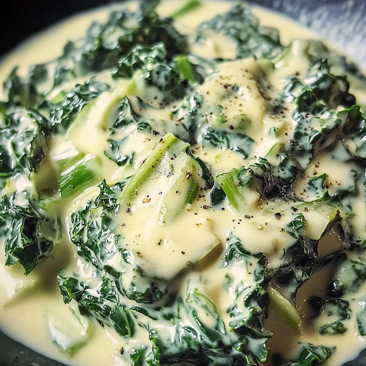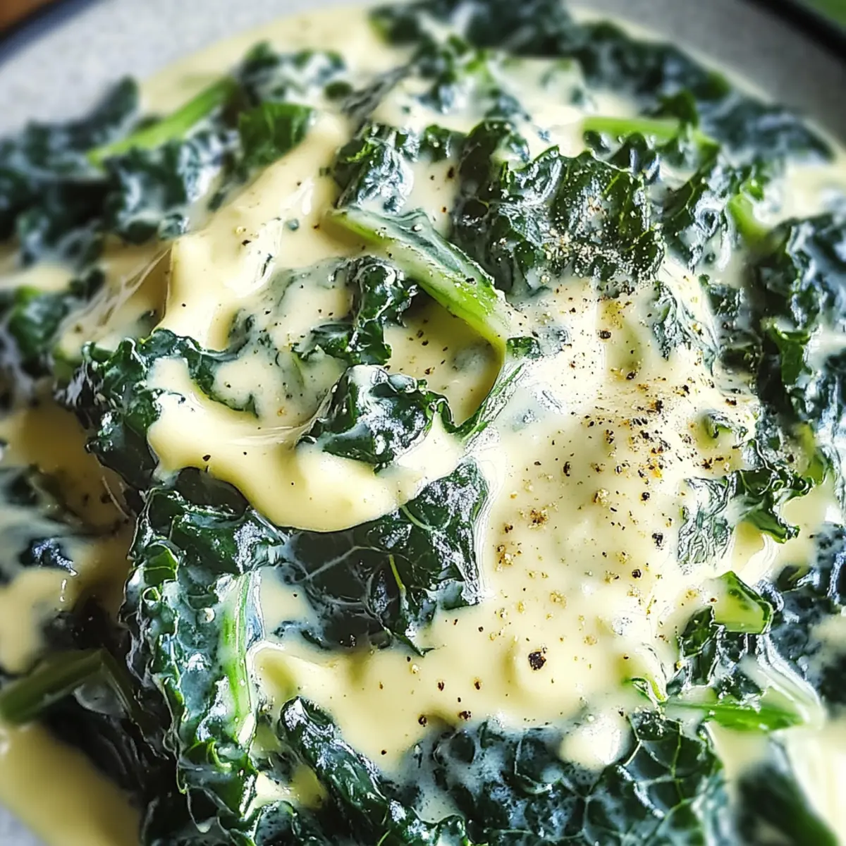 Ein warmer Duft von zartem Grünkohl durchdringt meine Küche und lässt mich sofort an Winterabende denken, an denen ich es mir mit einer herzhaften Mahlzeit gemütlich mache. Heute teile ich mein Rezept für Grünkohl mit Sahne, ein absolutes Wohlfühlessen, das nicht nur sättigt, sondern auch die Vitaminzufuhr an kalten Tagen unterstützt. Die Kombination aus der erdigen Note des Grünkohls und der cremigen Sauce ergibt ein Gericht, das sowohl als Hauptgericht als auch als leckere Beilage begeistert. Komfortabel, nährstoffreich und leicht zuzubereiten – dieser köstliche Genuss ist perfekt für alle, die sich von der Hektik der Fast-Food-Welt abwenden möchten. Neugierig, wie man dieses unwiderstehliche Gericht zubereitet? Lass uns gemeinsam in die Welt des Grünkohls eintauchen! Warum ist Grünkohl mit Sahne so besonders? Herzhaft lecker: Grünkohl mit Sahne vereint die erdigen Aromen von frischem Grünkohl mit einer köstlich cremigen Sauce, die jeden Bissen zum Genuss macht. Nährstoffreich: Dank der Vielzahl an Vitaminen, die in diesem Gericht stecken, ist es nicht nur lecker, sondern auch eine gesunde Wahl für kalte Tage. Einfach zuzubereiten: Mit wenigen Zutaten und einer unkomplizierten Zubereitung steht dieses Gericht im Handumdrehen auf dem Tisch. Vielseitig servierbar: Ob als Hauptgang oder Beilage, diese Rezeptur passt perfekt zu vielen Gerichten und weckt das Interesse von Familien und Freunden. Perfekt für Gemütlichkeit: Der warme Duft und die cremige Textur schaffen eine einladende Atmosphäre, ideal für ein entspanntes Abendessen. Wenn dir die Ideen für Beilagen fehlen, schau dir unsere köstlichen Vorschläge an, die perfekt zu diesen klassischen Gerichten passen! Grünkohl mit Sahne Zutaten • Entdecke die Grundzutaten für ein cremiges Wintergericht! Für den Grünkohl Grünkohl – Entscheide dich für frischen Grünkohl für den besten Geschmack und die beste Textur. Zwiebel (optional) – Fügt Süße und Tiefe hinzu; kann für eine einfachere Version weggelassen werden. Knoblauch (optional) – Frischer Knoblauch sorgt für ein intensives Aroma und kann je nach Vorliebe dosiert werden. Für die Sauce Sahne – Verleiht reichhaltige Cremigkeit; als pflanzliche Alternative kannst du Kokoscreme verwenden. Salz – Verstärkt die Aromen; passe die Menge je nach deinen diätetischen Bedürfnissen an. Pfeffer – Frisch gemahlener schwarzer Pfeffer bringt Wärme; optimal für mehr Geschmack. Mache dich bereit, dieses köstliche Grünkohl mit Sahne zuzubereiten und genieße ein nährstoffreiches Wintergericht, das jeden begeistert! Schritt-für-Schritt-Anleitung für Grünkohl mit Sahne Step 1: Grünkohl vorbereiten Wasche den Grünkohl gründlich unter fließendem Wasser, um eventuellen Sand und Schmutz zu entfernen. Achte darauf, die dicken Stiele zu entfernen, bevor du die Blätter in mundgerechte Stücke schneidest. Diese Vorbereitung dauert etwa 10 Minuten und sorgt dafür, dass der Grünkohl gleichmäßig kocht und gut zu essen ist. Step 2: Zwiebeln anbraten Erhitze in einer großen Pfanne bei mittlerer Hitze einen Esslöffel Butter oder Öl. Falls du Zwiebeln verwendest, füge sie jetzt hinzu und brate sie etwa 3-4 Minuten lang an, bis sie weich und leicht goldbraun sind. Dies verleiht deinem Grünkohl mit Sahne eine süßliche Note, die wunderbar mit der Cremigkeit harmoniert. Step 3: Grünkohl hinzufügen Sobald die Zwiebeln weich sind, gib den vorbereiteten Grünkohl in die Pfanne. Reduziere die Hitze leicht und lass den Grünkohl unter gelegentlichem Rühren etwa 5-7 Minuten lang zusammenfallen. Achte darauf, dass die Farben leuchtend bleiben und der Grünkohl zart, aber nicht matschig wird. Step 4: Sahne einfüllen Gieße nun die Sahne gleichmäßig über den Grünkohl und rühre gut um, um die Blätter vollständig zu bedecken. Lass die Mischung bei niedriger Hitze für etwa 5 Minuten köcheln, bis die Sahne eindickt und sich mit dem Grünkohl verbindet. Die cremige Konsistenz ist entscheidend für den Geschmack deines Gerichts. Step 5: Würzen und servieren Verfeinere das Gericht mit Salz und frisch gemahlenem schwarzen Pfeffer nach Geschmack, um die Aromen optimal zur Geltung zu bringen. Lass den Grünkohl mit Sahne noch einmal aufkochen, bevor du ihn servierst. Dieses köstliche Gericht schmeckt hervorragend zu Bratkartoffeln oder Würstchen und wird definitiv das Herz jedes Essers erfreuen. Meal Prep für Grünkohl mit Sahne: Zeit sparen leicht gemacht Grünkohl mit Sahne ist eine ideale Wahl für die Mahlzeitvorbereitung! Du kannst den frischen Grünkohl bis zu 24 Stunden im Voraus vorbereiten, indem du ihn gründlich wäschst, die dicken Stiele entfernst und die Blätter klein schneidest. Bewahre die vorbereiteten Blätter in einem luftdichten Behälter im Kühlschrank auf, um ihre Frische zu erhalten. Auch die Zwiebeln kannst du bis zu 3 Tage vorher anbraten und im Kühlschrank aufbewahren. Wenn du bereit bist, das Gericht zu servieren, erwärme einfach die Zwiebeln, füge den Grünkohl hinzu, gieße die Sahne darüber und lass es für weitere 5 Minuten köcheln. So hast du im Handumdrehen ein leckeres und nährstoffreiches Essen, das genauso gut schmeckt wie frisch zubereitet! Grünkohl mit Sahne Variationen Lass deiner Kreativität in der Küche freien Lauf und entdecke, wie du dieses köstliche Rezept nach deinem Geschmack anpassen kannst! Dairy-Free: Tausche die Sahne gegen Kokoscreme aus, um eine vegane und cremige Variante zu kreieren. Der subtile Kokosgeschmack ergänzt den Grünkohl wunderbar. Käse-Liebe: Füge kräftigen geriebenen Parmesan hinzu, um eine zusätzliche Schicht an Geschmack und Cremigkeit zu erzeugen. Der Käse schmilzt und verleiht dem Gericht eine köstliche Würze. Rauchige Note: Brate knusprige Speckwürfel an und mische sie unter den Grünkohl. Der Rauchgeschmack harmoniert perfekt mit der Cremigkeit und bringt den Wintergenuss auf eine neue Ebene. Würzige Kicks: Experimentiere mit einer Prise Muskatnuss für 