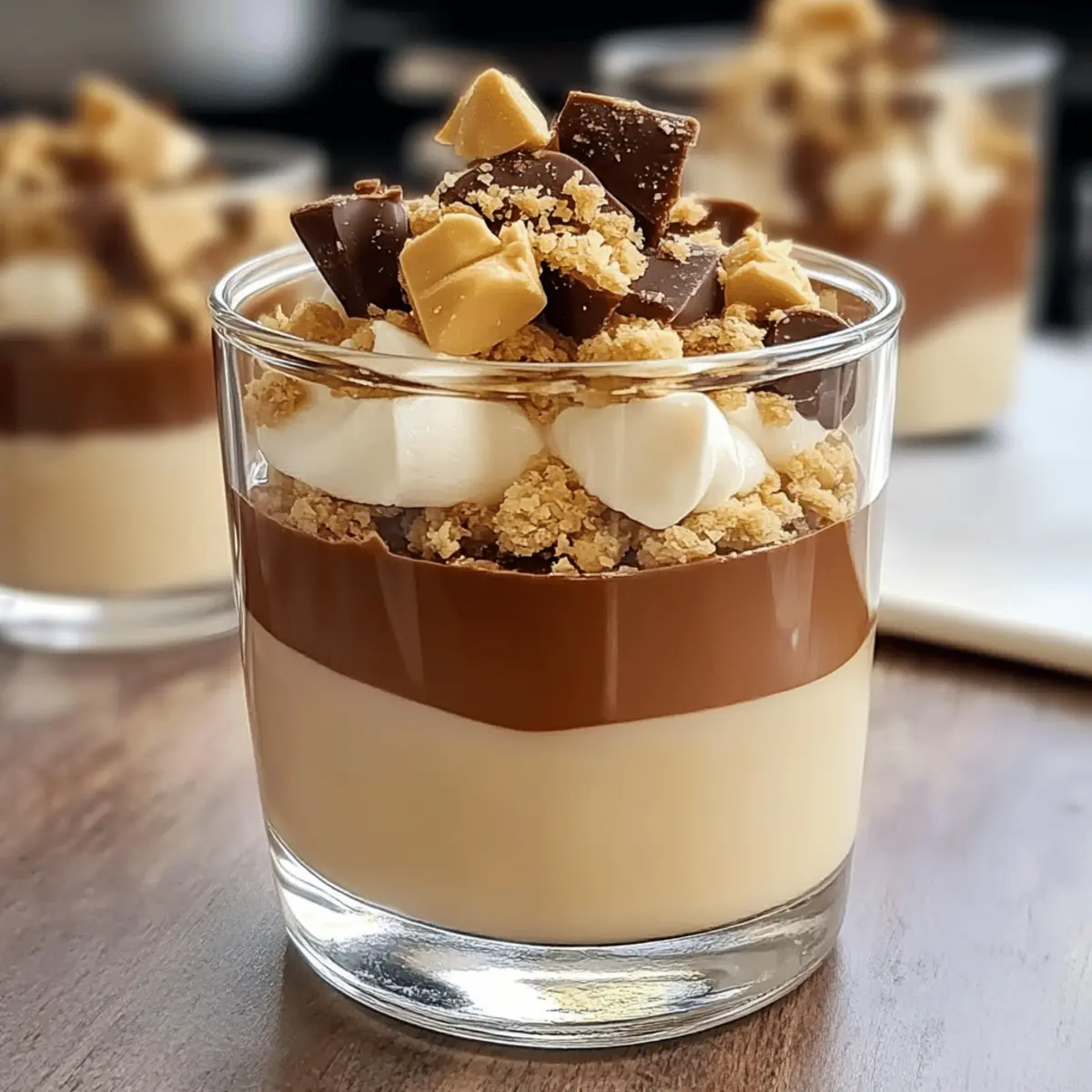 Der erste Biss in das Bueno Dessert im Glas wird Ihre Sinne begeistern und Sie in die Welt der süßen Versuchungen entführen. Diese cremige Kombination aus velvety Mascarpone-Hazelnusscreme und knusprigen Butterkeksen schafft nicht nur harmonische Texturen, sondern zaubert auch ein Lächeln auf jedes Gesicht. Mit nur fünf einfachen Schritten kreieren Sie ein Gutes Dessert im Glas, das das perfekte Highlight für Dinnerpartys oder den gemütlichen Genuss zu Hause ist. Egal, ob Sie Freunde beeindrucken oder sich selbst etwas gönnen möchten, dieses Dessert ist unkompliziert und anpassbar – perfekt für verschiedene Diäten, einschließlich glutenfreier Ansprüche. Wer könnte da widerstehen? Experimentieren Sie ruhig mit verschiedenen Toppings oder Zutaten und lassen Sie Ihrer Kreativität freien Lauf! Verpassen Sie nicht die Möglichkeit, dieses himmlische Dessert auszuprobieren – was würden Sie als Ihr persönliches Topping wählen? Warum wird dieses Dessert geliebt? Unvergesslicher Geschmack: Der kombinierte Geschmack von Mascarpone und Haselnüssen sorgt für ein wahrhaft genussvolles Erlebnis. Einfache Zubereitung: In nur fünf Schritten haben Sie ein köstliches Dessert gezaubert, das jeden Eindruck hinterlässt. Vielseitigkeit: Perfekt anpassbar, ob glutenfrei oder vegan, sodass jeder genießen kann. Blickfang: Die ansprechende Präsentation im Glas macht dieses Dessert zum Highlight auf jedem Tisch. Schnelle Zubereitung: Ideal für spontane Anlässe oder um Gäste zu beeindrucken, ohne viel Aufwand. Ein Genuss für alle: Egal ob für Partys oder einen gemütlichen Abend zu Hause, dieses Dessert begeistert einfach jeden! Wenn Sie noch mehr Inspiration brauchen, schauen Sie sich auch diese Variationen für ein Gutes Dessert im Glas an! Gutes Dessert im Glas Zutaten • Diese Zutaten sind die Grundlage für Ihr himmlisches Erlebnis! Für den Boden Butterkekse (Butter Cookies) – Sie sorgen für die knusprige Basis des Desserts, perfekt kombiniert mit der Cremigkeit der Füllung. Für eine glutenfreie Version, ersetzen Sie sie durch glutenfreie Kekse. Butter – Flüssige Butter bindet die Keksbrösel und intensiviert den Geschmack. Für die Füllung Mascarpone – Liefert eine reichhaltige und cremige Konsistenz, die das Dessert unwiderstehlich macht. Frischkäse (Cream Cheese) – Verleiht Leichtigkeit und eine dezente Säure zu der Füllung. Schlagsahne (Whipped Cream) – Sorgt für eine luftige Textur in der Creme-Mischung. Zucker (Sugar) – Süßt die Creme und harmonisiert die Aromen. Haselnusscreme (Hazelnut Cream) – Intensiviert den Haselnussgeschmack und macht die Füllung köstlich. Für das Topping Kinder Bueno – Fügt beim Topping süße und knackige Texturen hinzu, die jeden Bissen zum Genuss machen. Zusätzliche Haselnüsse (Chopped Hazelnuts) – Für extra Crunch und visuelle Anziehungskraft auf der obersten Schicht. Lassen Sie Ihrer Kreativität freien Lauf und passen Sie die Zutaten nach Ihren Vorlieben an, denn dieses Gutes Dessert im Glas ist nicht nur lecker, sondern auch vielseitig und anpassbar! Schritt-für-Schritt-Anleitung für Gutes Dessert im Glas Step 1: Basis vorbereiten Zuerst die Butterkekse in einen Mixer geben und zu feinen Krümeln pürieren. Danach die geschmolzene Butter hinzufügen und gut vermischen. Die Mischung gleichmäßig in kleine Gläser drücken, sodass eine feste, knusprige Schicht entsteht. Dies bildet die Grundlage für das Gutes Dessert im Glas. Die Gläser dann für 10 Minuten in den Kühlschrank stellen, damit die Basis fest wird. Step 2: Cremefüllung herstellen In einer großen Schüssel Mascarpone, Frischkäse, Schlagsahne, Zucker und Haselnusscreme gut vermengen. Mit einem Handmixer auf mittlerer Stufe schlagen, bis die Mischung glatt und luftig ist – das sollte etwa 3-5 Minuten dauern. Achten Sie darauf, dass keine Klumpen vorhanden sind, damit die Füllung für das Gutes Dessert im Glas cremig und gleichmäßig wird. Step 3: Dessert schichten Die fertige Cremefüllung großzügig mit einem Löffel auf die gekühlte Keksbasis in den Gläsern geben. Mit einem Spatel oder der Rückseite des Löffels die Oberfläche glatt streichen, um eine gleichmäßige und ansprechende Schicht zu schaffen. Diese Schichtung sorgt für das begehrte Aussehen des Gutes Desserts im Glas, das in den nächsten Schritten noch weiter verfeinert wird. Step 4: Topping hinzufügen Die Kinder Bueno in kleine Stücke brechen und gleichmäßig auf der Cremefüllung verteilen. Diese Stücke verleihen dem Dessert eine süße Note und einen schön knusprigen Kontrast. Achten Sie darauf, die Stücke gut zu verteilen, damit jeder Bissen des Gutes Desserts im Glas köstlich und abwechslungsreich ist. Step 5: Kühlen & Servieren Das fertig geschichtete Gutes Dessert im Glas für mindestens 2 Stunden in den Kühlschrank stellen, damit es gut durchkühlt und fest wird. Nach der Kühlzeit die Gläser herausnehmen und sofort servieren. Dieses Dessert schmeckt besonders erfrischend und ist ein Genuss, der sowohl optisch als auch geschmacklich begeistert! Tipps für das beste Gutes Dessert im Glas Vorbereitung im Voraus: Bereiten Sie das Dessert einen Tag vorher zu, damit die Aromen gut durchziehen und es beim Servieren perfekt ist. Glasgröße beachten: Wählen Sie Gläser mit einem Fassungsvermögen von etwa 130 ml, um die Portionen ideal zu portionieren. Alternative Toppings: Experimentieren Sie mit anderen Schokoladen oder Nüssen, um die nussige Note beizubehalten und neue Geschmäcker zu entdecken. Fruchtige Akzente setzen: Fügen Sie frische Beeren als Topping hinzu, um einen erfrischenden Kontrast zur süßen Creme zu schaffen. Konsistenz prüfen: Achten Sie darauf, die Cremefüllung gründlich zu schlagen, damit sie schön cremig wird und das Gutes Dessert im Glas sich perfekt präsentiert. Meal Prep für Gutes Dessert im Glas Das Gutes Dessert im Glas ist ideal für wahre Genießer, die Zeit sparen möchten! Sie können die Basis aus Butterkekse