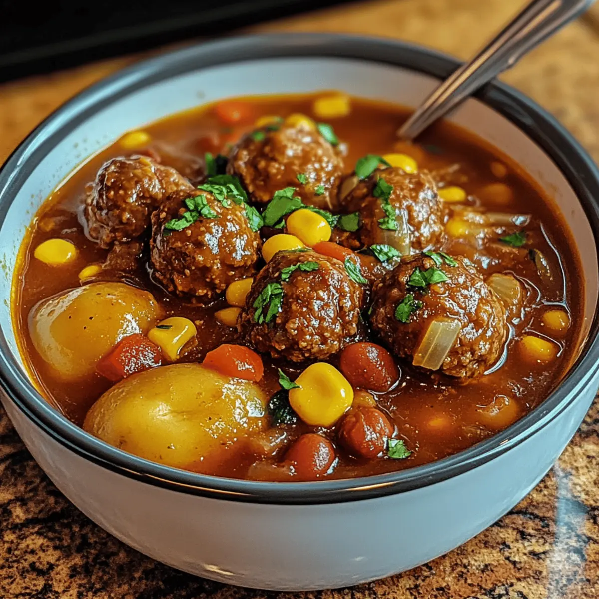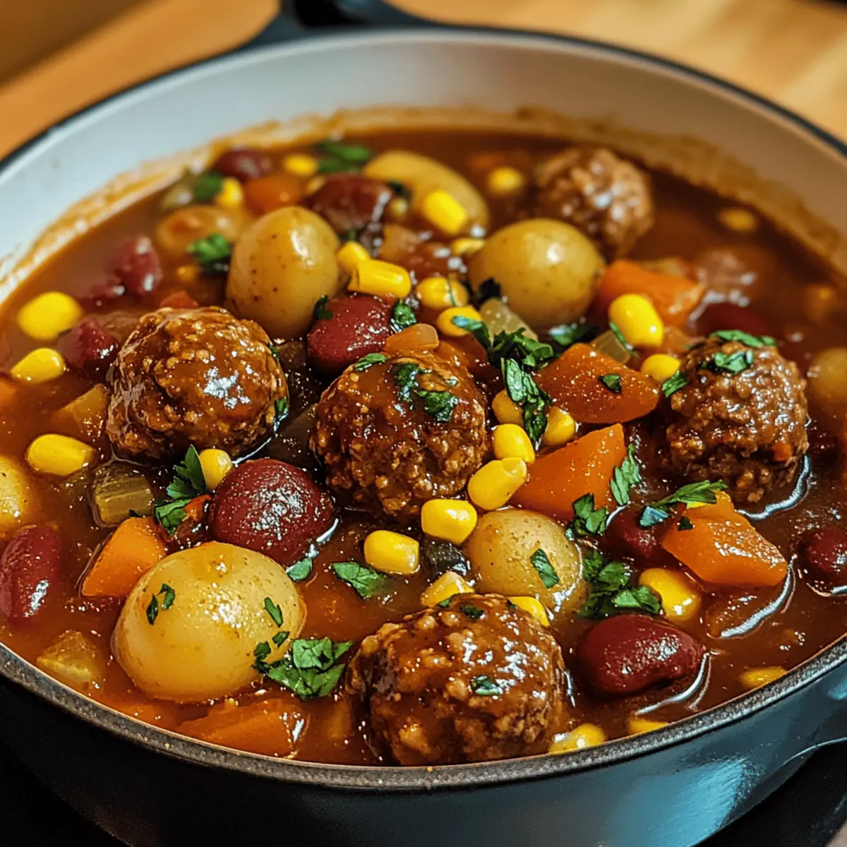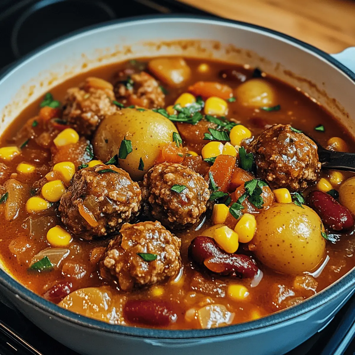 Es war einer dieser chaotischen Wochentage, an denen alles schiefzulaufen schien – ich war gestresst und hungrig zugleich. Als ich an meinem Herd stand, wusste ich, dass ich etwas Herzhaftes brauchte, das meine Seele wärmt: einen Hackbällchen-Eintopf mit Paprika, Mais und Kidneybohnen. Dieser Eintopf ist nicht nur ein Klassiker der Hausmannskost, sondern auch ein echtes Familienessen, das schnell zubereitet werden kann. Die Kombination aus saftigen Hackbällchen und einer reichen, tomatigen Brühe, durchzogen mit buntem Gemüse, sorgt für ein köstliches, nahrhaftes Gericht, das selbst die wählerischsten Esser begeistert. Es ist perfekt für hektische Abende, an denen man etwas Konstruktives schaffen möchte. Wollen Sie herausfinden, wie Sie diesen herzerwärmenden Eintopf zubereiten können, der sich auch wunderbar für Meal Prep eignet? Warum ist dieser Eintopf so besonders? Herzhaft und nahrhaft: Der Hackbällchen-Eintopf mit Paprika, Mais und Kidneybohnen ist eine perfekte Wahl für alle, die eine herzhafte Mahlzeit lieben. Die Kombination aus saftigen Hackbällchen und buntem, frischem Gemüse sorgt für ein Geschmackserlebnis, das Familien begeistert. Einfache Zubereitung: Mit nur wenigen Schritten sind Sie in kürzester Zeit am Ziel – ideal für hektische Wochentage, an denen wenig Zeit bleibt. Vielseitig anpassbar: Spielen Sie mit den Gewürzen! Wagen Sie einen scharfen Kick mit Cayennepfeffer oder bringen Sie mediterranen Flair durch frische Kräuter in Ihr Gericht. Tolle Meal Prep Option: Kochen Sie eine große Portion vor, und haben Sie für die nächsten Tage leckere, gesunde Mahlzeiten zur Hand! Begeisterung garantiert: Egal, ob für das Familienessen oder ein gemütliches Abendessen mit Freunden – dieser Eintopf wird sicher für zufriedene Gesichter sorgen. Pairen Sie ihn mit rustikalem Brot oder einem frischen Salat für eine vollendete Mahlzeit. Hackbällchen-Eintopf Zutaten Für die Hackbällchen Hackfleisch – die Hauptproteinquelle, die für einen tiefen Geschmack sorgt; Sie können auch eine Mischung aus Rind- und Schweinefleisch verwenden. Zwiebeln – sorgen für Süße und Aroma; nutzen Sie am besten gelbe Zwiebeln für ein optimales Kochergebnis. Knoblauch – verleiht dem Gericht Komplexität; frischer Knoblauch ist ideal, kann jedoch durch Knoblauchpulver ersetzt werden. Ei – bindet die Hackbällchenmasse, damit sie nicht zerfallen; für eine vegane Variante kann ein Leinsamen-Ei verwendet werden. Tomatenmark – intensiviert den Tomatengeschmack; kein direkter Ersatz, aber passierte Tomaten können eine andere Textur bieten. Paniermehl – sichert die Struktur der Hackbällchen; glutenfreies Paniermehl ist eine gute Alternative. Paprikapulver – bringt Farbe und einen Hauch von Süße; für einen zusätzlichen rauchigen Geschmack verwenden Sie geräuchertes Paprikapulver. Für den Eintopf Kartoffeln – dienen als stärkehaltige Basis; eine wachsende Sorte passt gut, süße Kartoffeln sind eine nahrhafte Option. Paprika – verleiht Süße und Farbe; Sie können sie durch andere milde Paprika ersetzen oder ganz weglassen. Kidneybohnen – fügen Protein und Ballaststoffe hinzu; verwenden Sie am besten abgetropfte Konservenbohnen für praktische Zubereitung. Mais – sorgt für Süße und einen schönen Texturkontrast; frischer oder gefrorener Mais können auch verwendet werden. Cayennepfeffer – optional für etwas Schärfe; reduzieren oder weglassen, wenn es milder sein soll. Dieser Hackbällchen-Eintopf mit Paprika, Mais und Kidneybohnen ist nicht nur einfach zuzubereiten, sondern auch ein absolutes Comfort Food, das die ganze Familie begeistert! Schritt-für-Schritt-Anleitung für Hackbällchen-Eintopf mit Paprika, Mais und Kidneybohnen Step 1: Zwiebeln und Knoblauch anbraten Erhitzen Sie in einem großen Topf bei mittlerer Hitze etwas Olivenöl. Fügen Sie die fein gehackten Zwiebeln und den Knoblauch hinzu und braten Sie alles für etwa 5 Minuten, bis die Zwiebeln glasig sind. Nehmen Sie den Topf vom Herd und lassen Sie die Mischung etwas abkühlen. Step 2: Hackbällchen-Masse vorbereiten In einer großen Schüssel kombinieren Sie das Hackfleisch, die abgekühlte Zwiebel-Knoblauch-Mischung, das Ei, das Tomatenmark, die Paniermehl, Salz, Pfeffer und Paprikapulver. Vermengen Sie alles gut, bis eine homogene Masse entsteht. Passen Sie die Feuchtigkeit an, falls die Mischung zu trocken ist. Step 3: Hackbällchen formen und anbraten Formen Sie aus der Fleischmasse 12–15 gleichgroße Hackbällchen. Erhitzen Sie in einer Pfanne etwas Öl und braten Sie die Hackbällchen bei mittlerer Hitze etwa 8–10 Minuten lang, bis sie rundherum goldbraun sind. Nehmen Sie die Hackbällchen aus der Pfanne und stellen Sie sie beiseite. Step 4: Gemüse anbraten Im selben Topf, in dem Sie die Hackbällchen gebraten haben, geben Sie die geviertelten Zwiebeln, die gehackten Knoblauchzehen und die gewürfelten Paprika. Braten Sie diese bei mittlerer Hitze für 3 Minuten an, bis das Gemüse leicht weich wird und duftet. Step 5: Brühe vorbereiten Fügen Sie das Tomatenmark, den Cayennepfeffer (falls gewünscht) und alle Gewürze hinzu und verrühren Sie alles gut. Deglacieren Sie die Mischung mit etwas Wasser und rühren Sie einen Brühewürfel ein, bis er sich aufgelöst hat. Lassen Sie die Aromen für 2 Minuten ziehen. Step 6: Kartoffeln und köcheln Geben Sie die gewürfelten Kartoffeln in den Topf und bringen Sie alles zum Kochen. Reduzieren Sie die Hitze und lassen Sie den Eintopf für etwa 10 Minuten köcheln, bis die Kartoffeln fast gar sind und die Aromen gut durchgezogen sind. Step 7: Bohnen und Mais hinzufügen Fügen Sie die abgetropften Kidneybohnen und den Mais in den Eintopf hinzu. Geben Sie die vorher gebratenen Hackbällchen zurück in den Topf und stellen Sie sicher, dass sie von der Brühe umgeben sind. Lassen Sie alles für weitere 10-15 Minuten köcheln, bis die Kartoffeln weich sind und die Hackbällchen durchgegart sind. Step 8: Servieren und ga