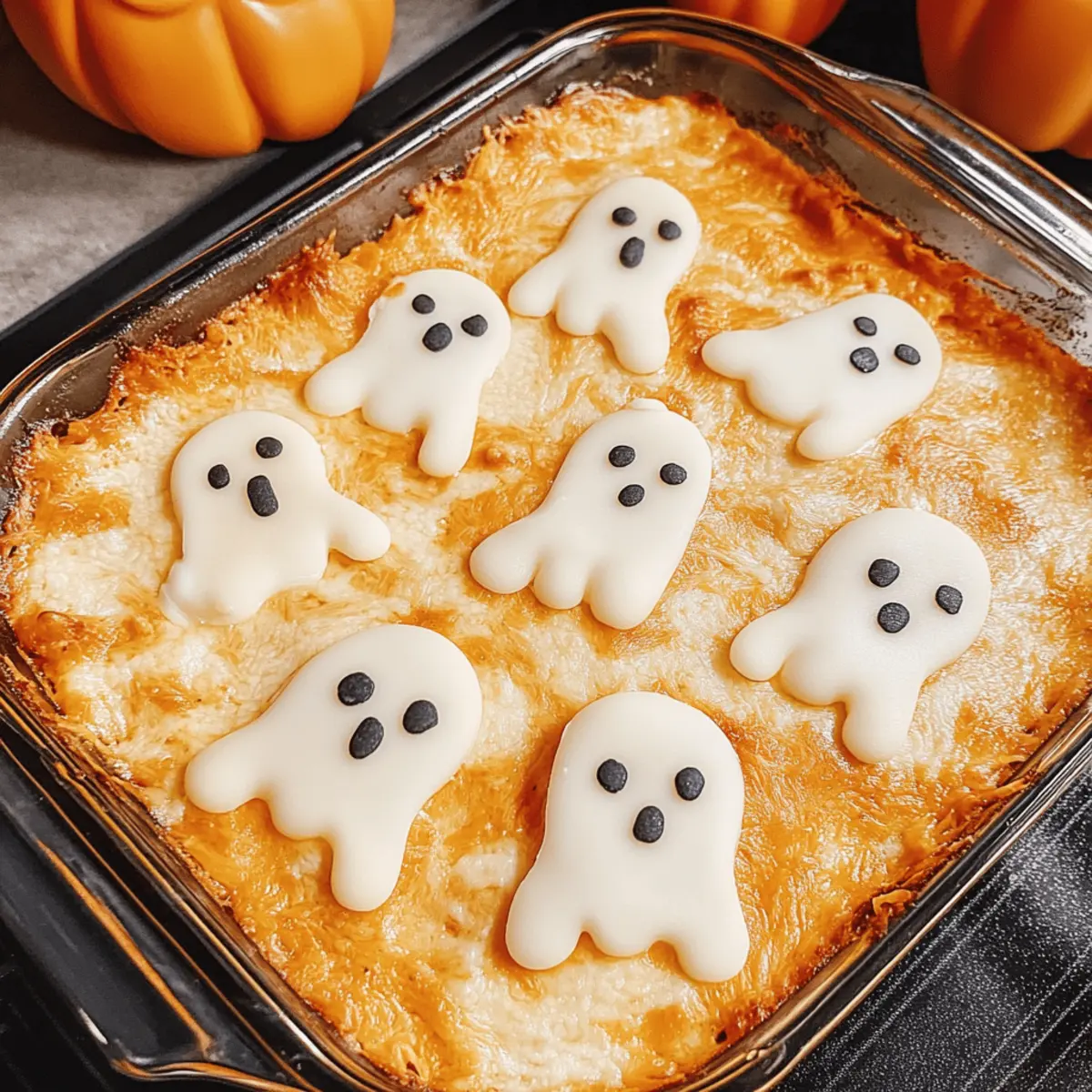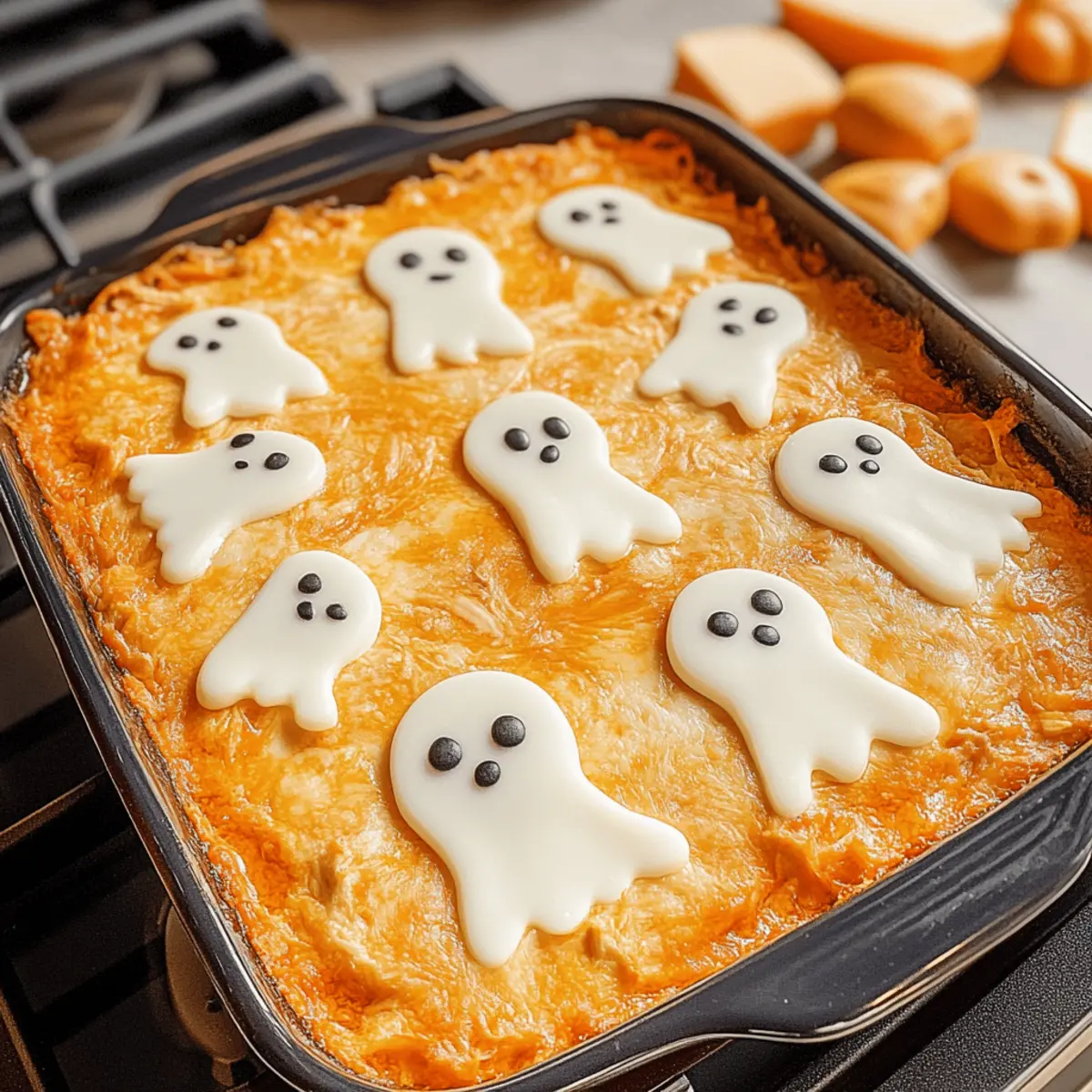 Der Herbst hat seine schaurigen Seiten, und nichts bringt die Halloween-Stimmung so sehr zum Leben wie unser Halloween Buffalo Chicken Dip – oder besser gesagt, der Boo-ffalo Dip! Dieses Rezept ist nicht nur kinderfreundlich, sondern auch unglaublich einfach zuzubereiten, sodass ihr euch auf das Wesentliche konzentrieren könnt: den Spaß und die Gesellschaft eurer Gäste. Mit cremigem Käse, würzigem Buffalo-Dressing und den süßen, gespenstischen Käse-Geistern wird dieser Dip garantiert zum Star jeder Halloween-Feier. Ob als leichtes Abendessen oder beim nächsten Grusel-Snack, er bietet den perfekten Kontrast zwischen schaurigem Spaß und köstlichem Genuss. Bist du bereit, diesen wunderbaren Dip auszuprobieren? Warum ist dieser Dip ein Muss? Einfachheit: Dieses Rezept gelingt auch Kochanfängern, denn es erfordert nur wenige Schritte und grundlegende Küchenfähigkeiten. Geschmacksexplosion: Die Kombination aus scharfer Buffalo-Sauce und cremigem Käse sorgt für ein unverwechselbar kräftiges Geschmackserlebnis, das die Geschmacksknospen erfreut. Visuelle Attraktivität: Mit den gespenstischen Käse-Geistern wird dieser Dip nicht nur geschmacklich, sondern auch optisch ein Hingucker auf jeder Halloween-Feier. Vielseitigkeit: Ideal für jede Gelegenheit, kannst du ihn je nach Geschmack variieren, zum Beispiel mit einer pflanzlichen Protein-Option oder mildem Buffalo-Dressing, um ihn kinderfreundlicher zu gestalten. Zeitersparnis: Bereite den Dip bis zu 24 Stunden im Voraus zu, sodass du am Tag der Feier sparen kannst! Serviere ihn warm mit Tortilla-Chips für den besten Genuss. Halloween Buffalo Chicken Dip Zutaten • Hinweis: Bereite deinen Halloween Buffalo Chicken Dip mit diesen einfachen Zutaten vor, um das perfekte Festmahl zu kreieren! Für die Füllung Zerfetztes Hähnchen – Verwende beispielsweise Rotisserie-Hähnchen, um Zeit zu sparen. Buffalo-Sauce – Passt den Schärfegrad nach eurem Geschmack an, mit milder oder scharfer Sauce. Frischkäse – Weich und cremig, sorgt er für die perfekte Grundlage; fettarme Varianten sind ebenfalls erhältlich. Für das Topping Geriebener Mozzarella – Schmelzt wunderbar und sorgt für eine köstliche, klebrige Schicht. Alternativ kann Cheddar verwendet werden. Ranch-Dressing – Perfekt, um die Cremigkeit zu verstärken; selbstgemachtes Ranch-Dressing ist eine tolle Option. Weiße Käsescheiben – Ideal für die gespenstischen Käseformen oben auf dem Dip; können leicht durch andere Weichkäse ersetzt werden. Step-by-Step Instructions for Halloween Buffalo Chicken Dip (Boo-ffalo Dip) Step 1: Hähnchen mit Sauce vermengen In einer großen Schüssel oder einem Zip-Lock-Beutel das zerfetzte Hähnchen mit der Buffalo-Sauce vermengen. Achte darauf, dass das Hähnchen gleichmäßig von der Sauce umhüllt wird. Dies verleiht dem Dip seine würzige Note. Lass die Mischung einen Moment stehen, damit sich die Aromen entfalten können. Step 2: Frischkäse vorbereiten Erhitze den Frischkäse für etwa 30 Sekunden in der Mikrowelle, bis er weich ist, aber nicht schmilzt. Anschließend gleichmäßig in einer Auflaufform verteilen, um die Basis für deinen Halloween Buffalo Chicken Dip zu schaffen. Die glatte und cremige Schicht sorgt für eine tolle Textur. Step 3: Buffalo-Hähnchen schichten Nun das gewürzte Hähnchen-Sauce-Gemisch gleichmäßig über die Frischkäse-Schicht glatt streichen. Diese Kombination sorgt für die perfekte Basis des Dips, die beim Backen köstlich miteinander verschmelzen wird. Achte darauf, dass die ganze Fläche bedeckt ist. Step 4: Käseschicht hinzufügen Verteile die geriebene Mozzarella gleichmäßig über die Hähnchenschicht. Dieser Käse wird beim Backen schmelzen und eine köstliche, klebrige Schicht bilden. Drizzle nun ein wenig Ranch-Dressing über den Käse, um zusätzliche Cremigkeit und Geschmack zu gewährleisten. Step 5: Gespenster formen Jetzt kommt der kreative Teil! Verwende einen Gespenster-Ausstecher, um aus den weißen Käsescheiben Gespensterformen auszustechen. Diese kannst du dann auf dem Dip anordnen. Wenn du keinen Ausstecher hast, kannst du die Formen auch freestyle schneiden – das verleiht dem Dip einen charmanten, unkonventionellen Look. Step 6: Backen Die Auflaufform in einen vorgeheizten Ofen bei 175°C (350°F) geben und etwa 15-20 Minuten backen. Der Dip ist fertig, wenn die Käseschicht goldbraun und sprudelnd ist. Ein verlockender Duft wird sicher durch die Küche ziehen! Step 7: Fertigstellen und servieren Nach dem Backen kannst du den Dip mit zusätzlichen Details versehen, wie z.B. kleinen Olivenstücken oder dekorativem Gel für die Augen der Geister. Serviere den Dip warm mit knusprigen Tortilla-Chips oder Baguettescheiben, um das Halloween-Erlebnis abzurunden. Expertentipps für den besten Halloween Buffalo Chicken Dip Vorbereitung: Bereite den Dip einen Tag vorher vor und lasse ihn im Kühlschrank ruhen. Dadurch können sich die Aromen perfekt entfalten, was den Geschmack deines Halloween Buffalo Chicken Dip verbessert. Käsewahl: Verwende frischen Käse für die beste Schmelze. Vorverpackter Käse kann in der Textur und im Geschmack variieren. Achte darauf, dass er gleichmäßig schmilzt und klebrig wird. Dipper kombinieren: Biete verschiedene Dipper an, wie Tortilla-Chips, Gemüsesticks oder knusprige Baguettescheiben. Das verhindert, dass die Dipper beim Eintauchen in den Dip zerbrechen und macht das Essen angenehmer. Spice Level anpassen: Probiere die Buffalo-Sauce bevor du sie hinzufügst! Wenn du Kinder erwartest, kannst du die Schärfe leicht reduzieren, indem du mehr Frischkäse oder Ranch-Dressing hinzufügst. Dekoriere kreativ: Lass deiner Kreativität bei der Geisterform freien Lauf! Wenn du keinen Ausstecher hast, schneide einfach kleine Gespensterformen von Hand. Das macht den Dip noch gespenstischer und sorgt für Gesprächsstoff! Schnell und einfach: Die Zubereitung sollte weniger als 30 Minuten dauern. Falls du es eilig hast, kannst du bereits vorbe
