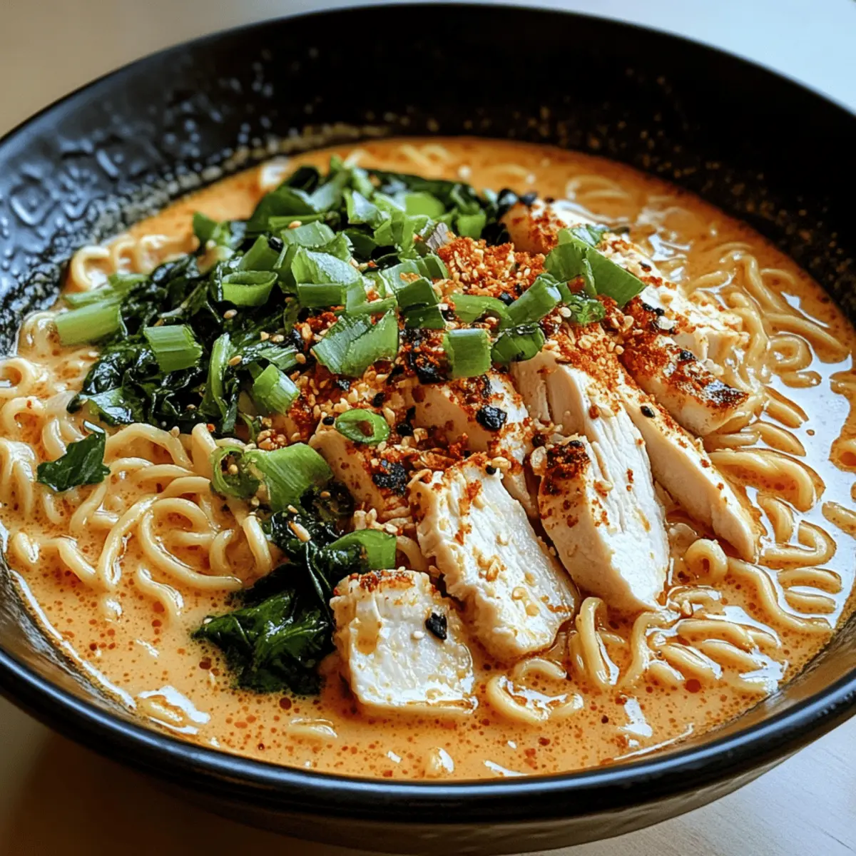 Wenn der Duft von Knoblauch und geschmolzenem Parmesan durch deine Küche zieht, kann man fast die Vorfreude schmecken. Heute lade ich dich ein, meine Version des Heirate Mich Hühnchen Ramen zu entdecken – ein Gericht, das schnell zubereitet ist und selbst die wählerischsten Esser begeistert. Diese cremige und würzige Köstlichkeit kombiniert zartes Hühnchen mit einer reichhaltigen Parmesan-Tomaten-Sauce und nussigen Ramen-Nudeln. Überzeugend in der Einfachheit und gleichzeitig genug, um deine Lieben zu überraschen, bietet dieses Rezept unzählige Anpassungsmöglichkeiten, von saisonalen Gemüsebeigaben bis hin zu verschiedenen Nudelvarianten. Bereit, dein nächstes kulinarisches Abenteuer zu starten? Lass uns gemeinsam in die Welt des Wohlfühlessens eintauchen! Warum wirst du dieses Rezept lieben? Einfachheit zu ihrem Besten: Die Zubereitung ist unkompliziert und erfordert nur grundlegende Kochkenntnisse. Köstlicher, reichhaltiger Geschmack: Die Kombination aus Parmesan und Kräutern sorgt für ein intensives Geschmackserlebnis. Vielseitigkeit für jeden Geschmack: Egal, ob du Ramen oder Udon verwenden möchtest, die Anpassungsmöglichkeiten sind grenzenlos. Ideal für ein schnelles Abendessen: Perfekt für geschäftige Tage, es ist in weniger als 30 Minuten fertig. Begeisterung garantiert: Deine Gäste werden dieses Gericht lieben und nach dem Rezept fragen! Probiere auch andere schnelle Rezepte für warme Mahlzeiten aus, die du lieben wirst. Heirate Mich Hühnchen Ramen Zutaten • Diese geschmackvolle Rezeptur enthält alles, was du für ein schnelles und köstliches Gericht brauchst! Für das Huhn Hühnchen – Verwende zarte, hautlose Hühnerschenkel für besonders saftigen Genuss. Knoblauch – Frisch gehackter Knoblauch bringt eine aromatische Tiefe in die Sauce. Für die Sauce Parmesankäse – Verleiht der Sauce Cremigkeit und reichhaltigen Geschmack; Pecorino Romano ist eine tolle Alternative. Tomatensauce – Dient als Grundlage und sorgt für die nötige Säure; du kannst auch zerdrückte Tomaten für mehr Textur verwenden. Italienische Kräuter – Frische Kräuter wie Basilikum und Oregano intensivieren den Geschmack und sorgen für ein frisches Aroma. Für die Nudeln Ramen-Nudeln – Diese schnell garenden Nudeln nehmen die Aromen der Sauce perfekt auf. Benutze auch Soba- oder Udon-Nudeln für eine Abwechslung. Für die Würze Chiliflocken oder Sriracha – Für den gewünschten Schärfegrad, den du nach Belieben anpassen kannst. Für die Extras Gemüse (Spinat, Champignons, Zuckerschoten) – Fügen Geschmack und Nährstoffe hinzu; setze saisonales Gemüse ein, um frische Akzente zu setzen. Zusätzlich kannst du für die ideale Garnitur frische Kräuter oder eine Prise geröstete Sesamsamen hinzufügen, um deinem Heirate Mich Hühnchen Ramen den letzten Schliff zu geben! Schritt-für-Schritt-Anleitung für Heirate Mich Hühnchen Ramen Schritt 1: Zutaten vorbereiten Sammle zunächst alle Zutaten für dein Heirate Mich Hühnchen Ramen. Dazu gehören das Hühnchen, der frisch gehackte Knoblauch, die italienischen Kräuter und die Tomatensauce. Achte darauf, dass du die Ramen-Nudeln bereit hast, um diese später schnell kochen zu können. Das Aufstellen der Zutaten sorgt für einen reibungslosen Kochablauf. Schritt 2: Hühnchen anbraten Erhitze in einer großen Pfanne etwas Öl bei mittlerer Hitze. Sobald das Öl heiß ist, füge die Hühnerschenkel hinzu und brate sie für etwa 5-7 Minuten an, bis sie goldbraun und durchgegart sind. Achte darauf, das Hühnchen regelmäßig zu wenden, damit es gleichmäßig bräunt. Nimm das Hühnchen anschließend aus der Pfanne und stelle es beiseite. Schritt 3: Sauce zubereiten Im gleichen Topf, in dem du das Hühnchen gebraten hast, füge bei mittlerer Hitze den gehackten Knoblauch hinzu und brate ihn für etwa 1-2 Minuten an, bis er duftet. Danach gib die Tomatensauce und den geriebenen Parmesan dazu. Rühre alles gut um, bis eine cremige, homogene Sauce entsteht, und lass sie für weitere 2-3 Minuten köcheln. Schritt 4: Nudeln kochen Während die Sauce köchelt, bringe in einem separaten Topf ausreichend Wasser zum Kochen. Füge die Ramen-Nudeln hinzu und koche sie gemäß den Anweisungen auf der Verpackung, normalerweise etwa 3-4 Minuten. Nachdem die Nudeln weich sind, gieße sie ab und stelle sie beiseite. Schritt 5: Alles kombinieren Gib das angebratene Hühnchen zurück in die Pfanne mit der Sauce. Mische anschließend die gekochten Ramen-Nudeln unter, sodass sie gut mit der Sauce überzogen werden. Schmecke die Kombination nach Belieben mit Salz, Pfeffer und Chili ab, um die perfekte Balance für dein Heirate Mich Hühnchen Ramen zu finden. Schritt 6: Anrichten und servieren Sobald alles gut vermischt und erhitzt ist, richte dein Heirate Mich Hühnchen Ramen in großen Schalen an. Garniere das Gericht mit frischen Kräutern oder einer Prise gerösteten Sesamsamen für zusätzlichen Geschmack und eine ansprechende Präsentation. Serviere das Gericht sofort, um den köstlichen Geschmack der cremigen Sauce zu genießen. Aufbewahrungstipps für Heirate Mich Hühnchen Ramen Raumtemperatur: Nicht empfohlen, da die cremige Sauce schnell verderben kann; sofort nach der Zubereitung verwenden. Kühlschrank: Heirate Mich Hühnchen Ramen kann bis zu 3 Tage in einem luftdichten Behälter aufbewahrt werden; zur Vermeidung von Austrocknen abdecken. Gefrierschrank: Das Gericht kann bis zu 2 Monate eingefroren werden; am besten die Nudeln separat lagern, um die Textur zu erhalten. Wiedererwärmung: Langsam bei niedriger Hitze auf dem Herd oder in der Mikrowelle erwärmen; ggf. etwas Brühe oder Wasser hinzufügen, um die cremige Konsistenz wiederherzustellen. Expert Tips für Heirate Mich Hühnchen Ramen Hühnchen richtig anbraten: Sorgfältig arbeiten, um das Hühnchen gleichmäßig goldbraun zu braten; überfülle die Pfanne nicht, sonst wird es nicht knackig. Sauce eindicken: Lass die Sauce länger köcheln, bevor du die Nudeln hinzu