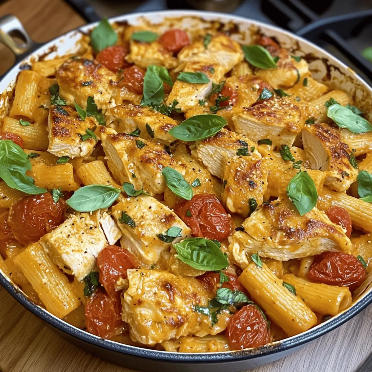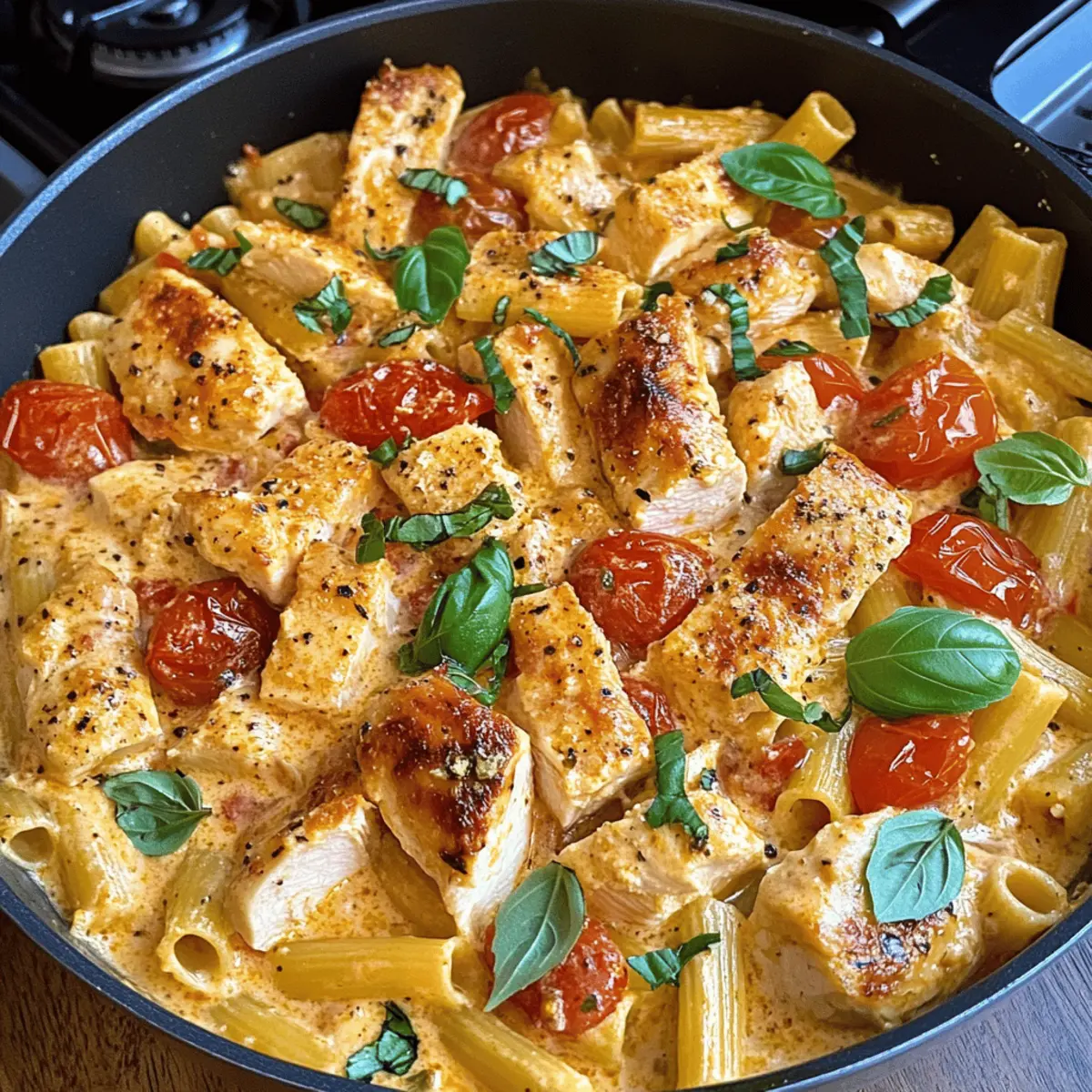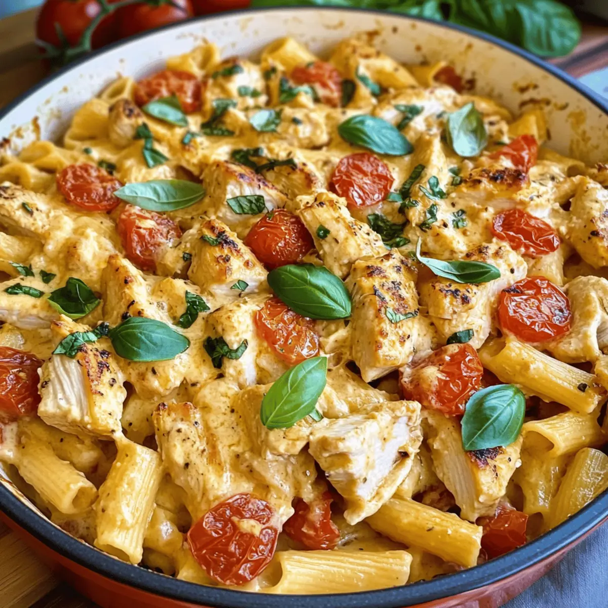 Cremiger Geschmack: Der besondere Tomaten-Milch-Sauce vereint frische Kräuter und herzhaftes Hähnchen für ein geschmackliches Erlebnis, das alle überzeugen wird.