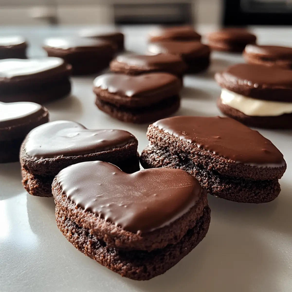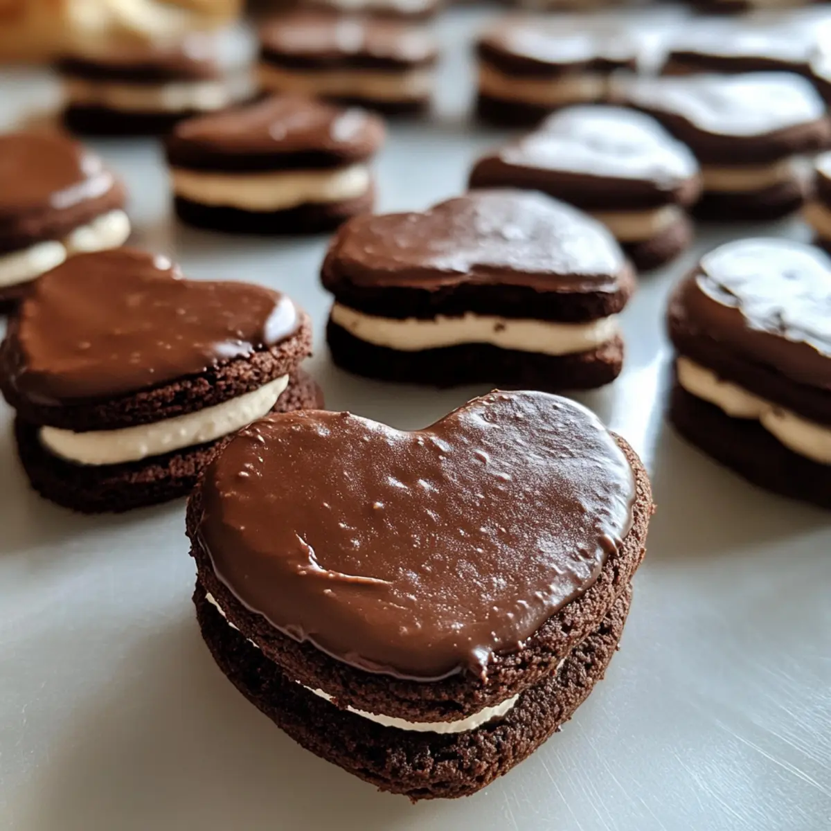 Bist du bereit, deine Liebsten mit etwas Einzigartigem zu überraschen? Diese herzförmigen Schokoladen-Sandwich-Kekse mit samtiger Ganache sind nicht nur ein köstlicher Genuss, sondern auch eine wunderbare Möglichkeit, besondere Momente zu zelebrieren – sei es zu Valentinstag, zu Geburtstagsfeiern oder einfach so! Mit nur ein paar einfachen Zutaten aus deiner Vorratskammer sind diese Kekse schnell zubereitet und erfreuen jeden Gaumen. Sie sind eine tolle Wahl, wenn du nach einer kreativen, aber einfachen Backidee suchst, die beeindruckt und gleichzeitig die Herzen erwärmt. Na, wer könnte da schon Widerstand leisten? Warum sind diese Kekse so besonders? Einzigartig im Aussehen: Diese herzförmigen Schokoladen-Sandwich-Kekse bringen Liebe und Freude auf jeden Tisch, besonders an besonderen Anlässen. Einfach zuzubereiten: Mit nur wenigen Zutaten aus deiner Vorratskammer ist die Zubereitung schnell und unkompliziert. Perfekt für Backanfänger! Vielseitig: Du kannst die Füllung nach Belieben anpassen, sei es mit Fruchtmarmelade oder verschiedenen Schokoladenvarianten. Familienfreundlich: Mach das Backen zu einem Familien-Event – Kinder lieben es, beim Ausstechen und Füllen zu helfen! Unvergesslicher Geschmack: Die Kombination aus zartschmelzender Ganache und den knackigen Keksen ist eine Geschmacksexplosion, die jeden Bissen besonders macht. Herzförmige Schokoladen-Sandwich-Keks-Zutaten • Diese köstlichen Herzförmige Schokoladen-Sandwich-Kekse erfordern keine komplizierten Zutaten – alles was du brauchst, um deine Liebsten zu verwöhnen! Für den Keksteig Allzweckmehl – sorgt für die Struktur der Kekse, du kannst auch eine glutenfreie Mehlmischung verwenden. Ungesüßtes Kakaopulver – verleiht den Keksen einen reichen Schokoladengeschmack, am besten verwendest du niederländisch behandeltes Kakaopulver für mehr Tiefe. Butter – macht die Kekse zart; du kannst sie durch Margarine oder pflanzliche Butter für eine milchfreie Option ersetzen. Brauner Zucker – fügt Feuchtigkeit und Geschmacksdimension hinzu, Kokoszucker oder zusätzlicher Kristallzucker funktionieren auch als Ersatz. Kristallzucker – intensifiziert die Süße und Textur, dieser sollte nicht ersetzt werden. Ei – bindet die Zutaten und sorgt für die Aufgehwirkung; ein Leinsamen-Ei eignet sich gut für eine vegane Variante. Vanilleextrakt – bringt ein aromatisches Aroma; unbedingt verwenden, für den vollen Geschmack. Backpulver & Salz – unverzichtbar für Lockerung und Geschmacksverbesserung; Standardzutaten, keine Substitution nötig. Für die Ganache Sahne – sorgt für eine seidige Textur in der Ganache; Vollfette Kokosmilch ist eine gute milchfreie Alternative. Schokoladenstückchen (halbsüß) – bildet die Füllung der Ganache; du kannst auch dunkle Schokoladenstückchen verwenden, um einen intensiveren Geschmack zu erzielen. Mit diesen Zutaten bist du bestens ausgestattet, um leckere herzförmige Schokoladen-Sandwich-Kekse zuzubereiten, die zu jedem Anlass passen! Schritt-für-Schritt-Anleitung für Herzförmige Schokoladen-Sandwich-Kekse Step 1: Ofen vorheizen Heize deinen Ofen auf 175°C (350°F) vor und lege ein Backblech mit Backpapier aus. Diese vorbereitenden Schritte sind wichtig, um sicherzustellen, dass deine herzförmigen Schokoladen-Sandwich-Kekse gleichmäßig backen und nicht am Blech haften bleiben. Step 2: Trockene Zutaten mischen In einer Schüssel das Allzweckmehl, ungesüßtes Kakaopulver, Backpulver und Salz vermengen. Mit einem Schneebesen alles gut vermischen, bis die trockenen Zutaten gleichmäßig verteilt sind. Dies sorgt für eine gleichmäßige Textur und den perfekten Schokoladengeschmack. Step 3: Butter und Zucker cremig rühren In einer großen Rührschüssel die Butter zusammen mit dem Kristall- und Braunen Zucker mit einem Handmixer auf mittlerer Geschwindigkeit ca. 3-4 Minuten schlagen, bis die Mischung hell und luftig erscheint. Dieser Schritt ist entscheidend, um die Herzförmigen Schokoladen-Sandwich-Kekse zart und lecker zu machen. Step 4: Feuchte Zutaten hinzufügen Das Ei und den Vanilleextrakt zur Butter-Zucker-Mischung hinzufügen und alles gut verrühren, bis es komplett eingearbeitet ist. Diese feuchten Zutaten sorgen für die Bindung und bringen zusätzliches Aroma in deinen Keksteig. Step 5: Trockene Zutaten einarbeiten Langsam die zuvor gemischten trockenen Zutaten in die feuchte Mischung einrühren. Mische vorsichtig, bis sich die Zutaten gerade so verbunden haben – achte darauf, nicht zu übermixen. So bleiben deine Kekse schön zart und erhalten die richtige Konsistenz. Step 6: Teig kühlen Teig auf ein Stück Backpapier geben, zu einem Rechteck formen und dann in den Kühlschrank legen. Lass den Teig mindestens 30 Minuten kühlen, damit er fest wird und die Kekse beim Backen nicht auseinanderlaufen. Step 7: Kekse ausstechen Den gekühlten Teig aus dem Kühlschrank nehmen und zwischen zwei weiteren Stückchen Backpapier auf ca. 0,5 cm (1/4 Zoll) Dicke ausrollen. Nutze einen herzförmigen Ausstecher, um Kekse auszustechen, und lege sie auf das vorbereitete Backblech. Step 8: Backen Backe die Kekse für 8-10 Minuten im vorgeheizten Ofen, bis sie fest und leicht aufgegangen sind. Lass die Kekse nach dem Backen vollständig auf einem Kuchengitter abkühlen, damit sie nicht zu weich sind, wenn du die Ganache aufträgst. Step 9: Ganache vorbereiten Erhitze die Sahne in einem kleinen Topf, bis sie leicht zu köcheln beginnt. Gieße die heiße Sahne über die Schokoladenstückchen in einer Schüssel und lasse sie 2-3 Minuten stehen. Rühre die Mischung anschließend glatt, bis eine cremige Ganache entsteht. Step 10: Kekse zusammensetzen Verteile die Ganache gleichmäßig auf der Unterseite der hälftigen Kekse und setze die anderen Kekshälften vorsichtig darauf. Lass die gefüllten Herzförmigen Schokoladen-Sandwich-Kekse an einem kühlen Ort für etwa 30 Minuten stehen, damit die Ganache fest wird. Lagerungstipps für Herzförmige Schokolade