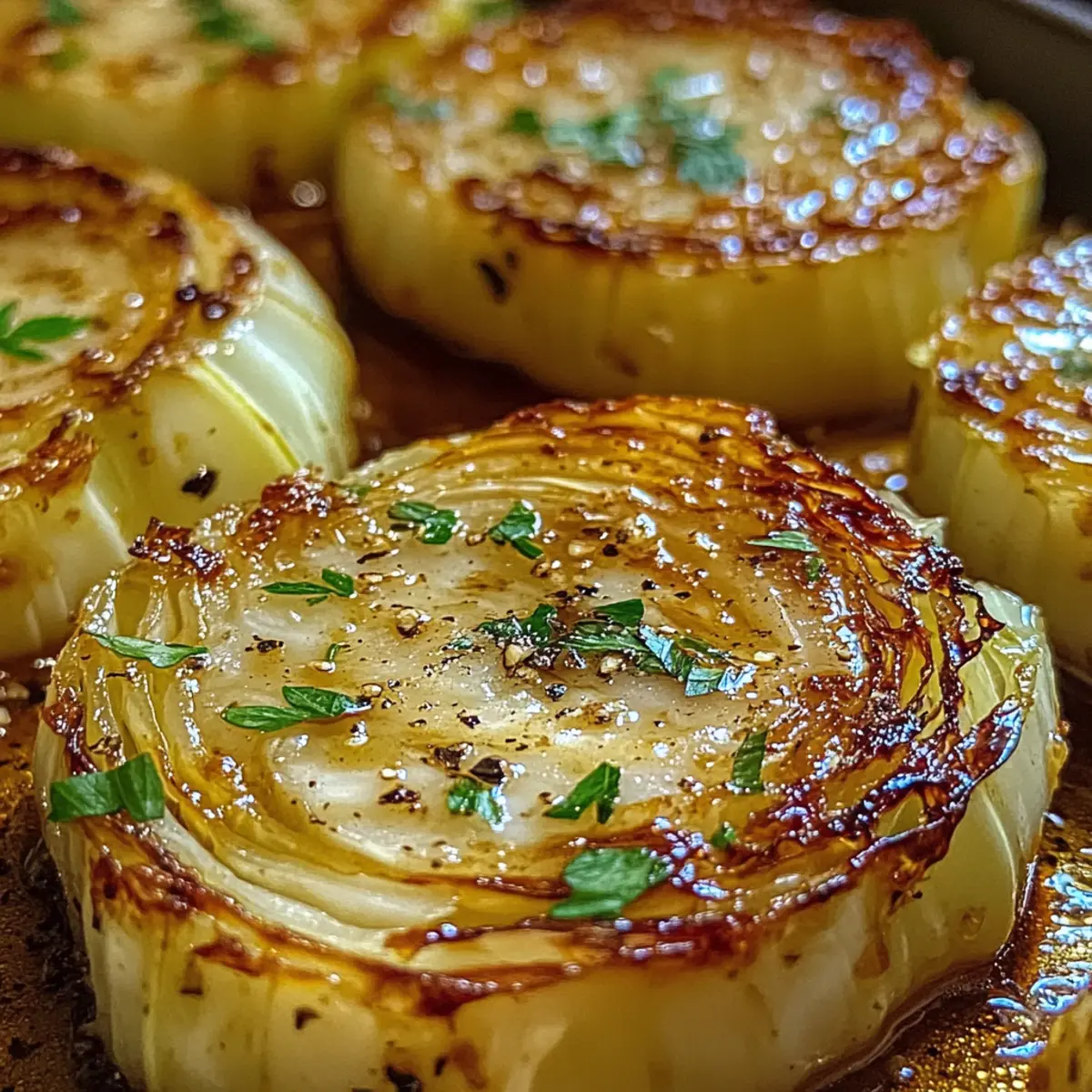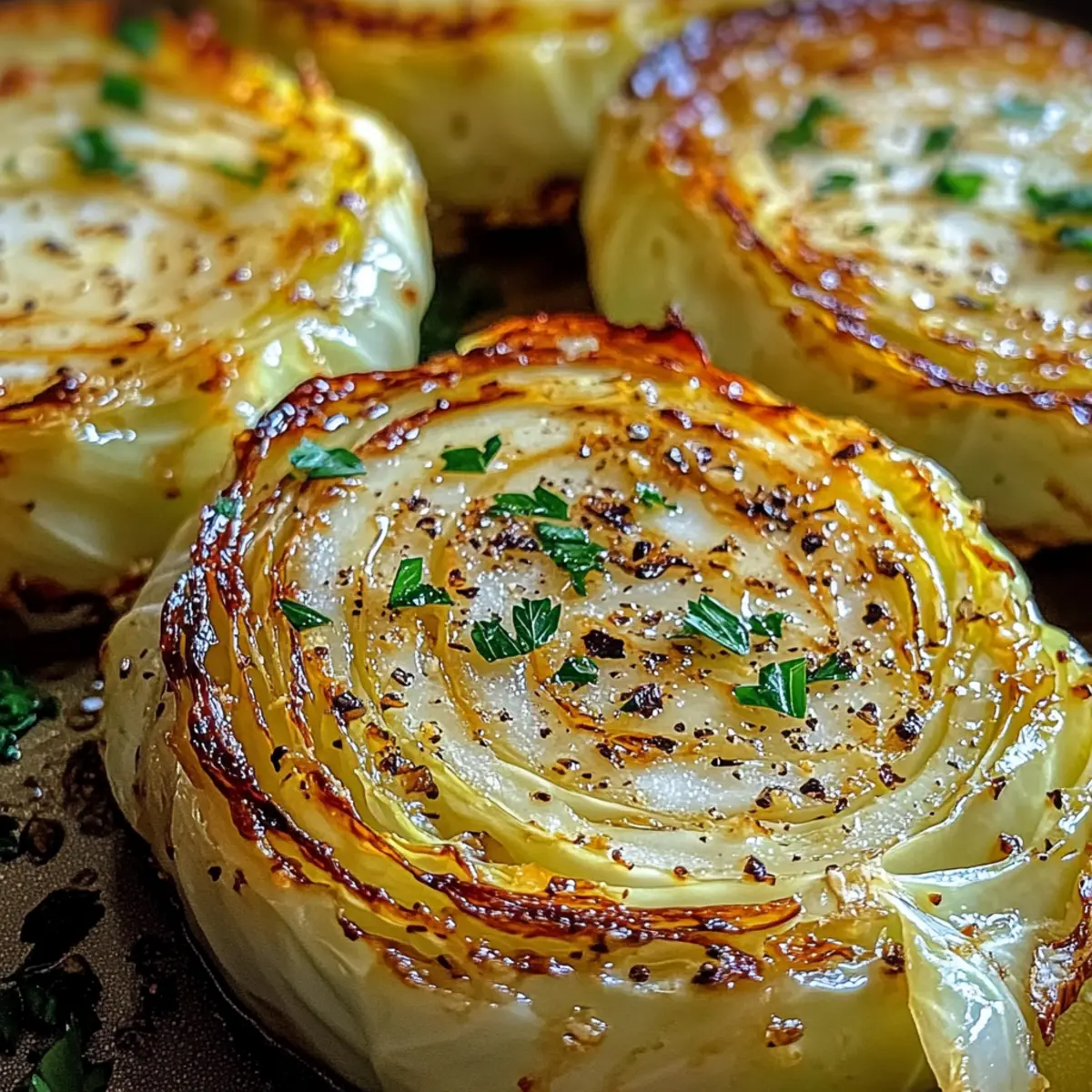 6. Nimm die Kohlsteaks heraus, lasse sie kurz ruhen und garniere sie mit Petersilie und optional Parmesan.