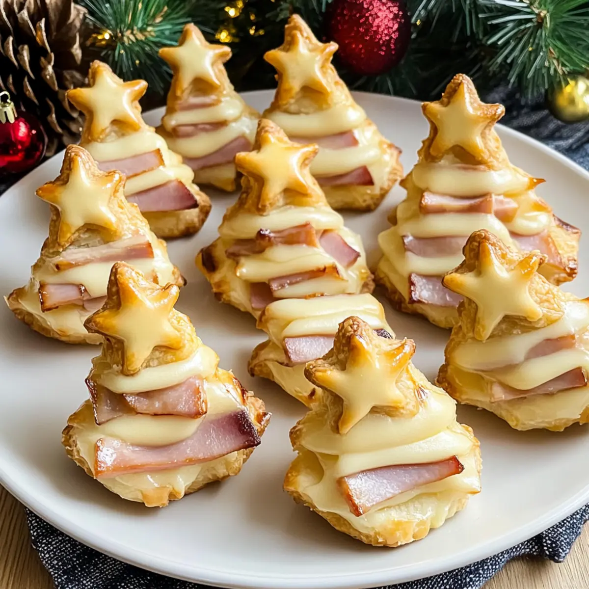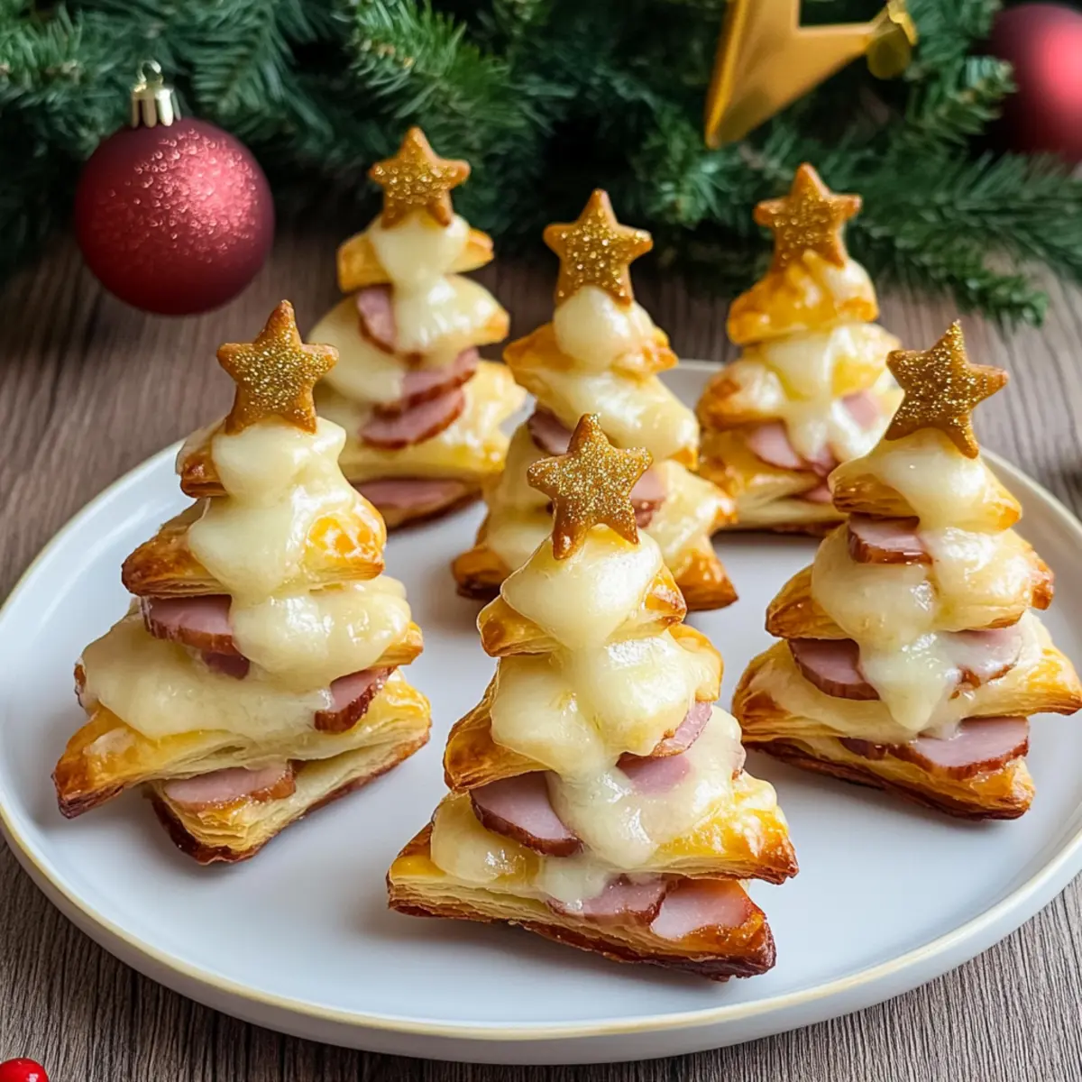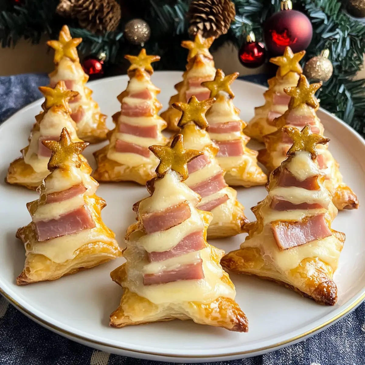 Köstliche herzhafte Tannenbäume aus Blätterteig für Feste, gefüllt mit Schinken und Gouda – perfekt für Ihre Feiertagsfeiern.