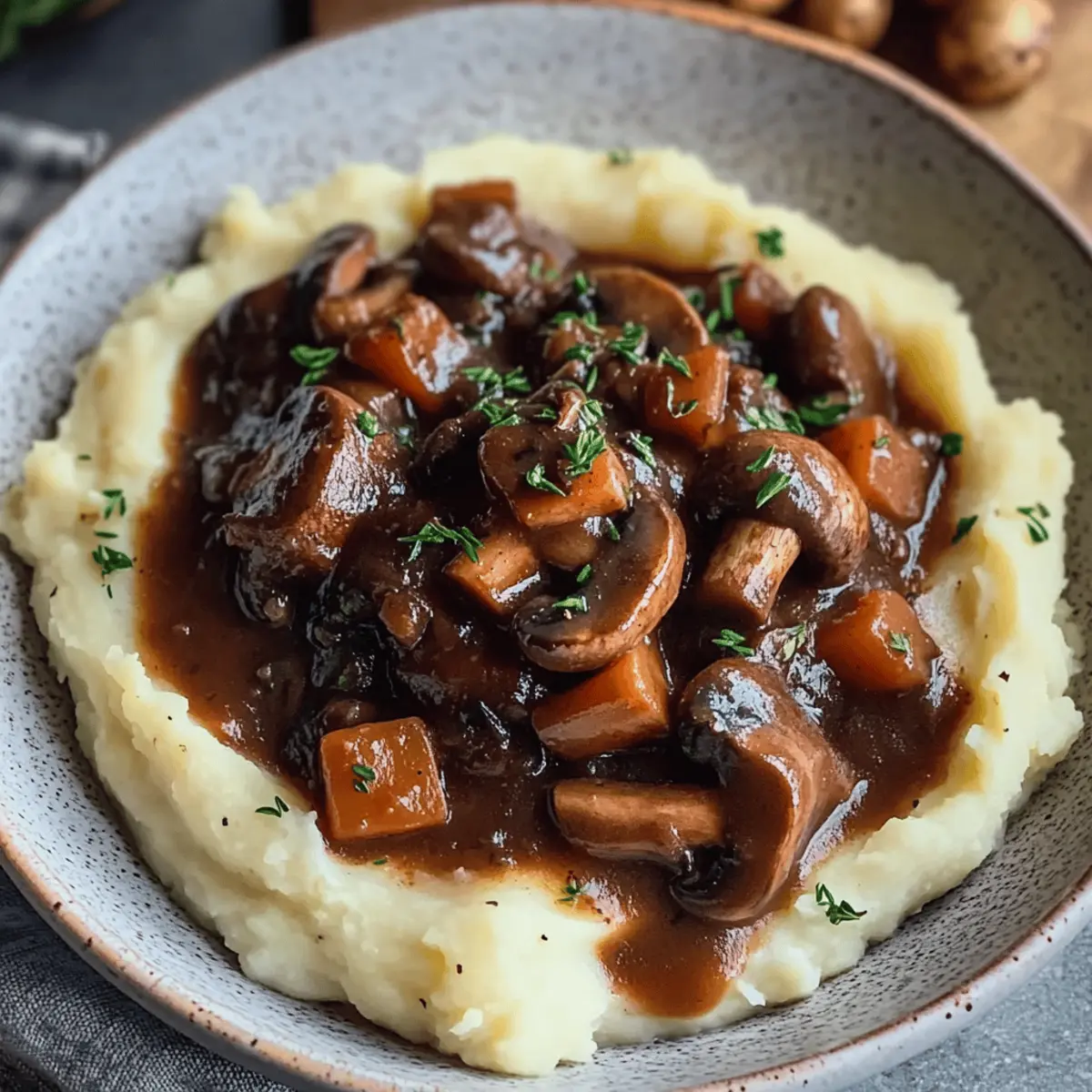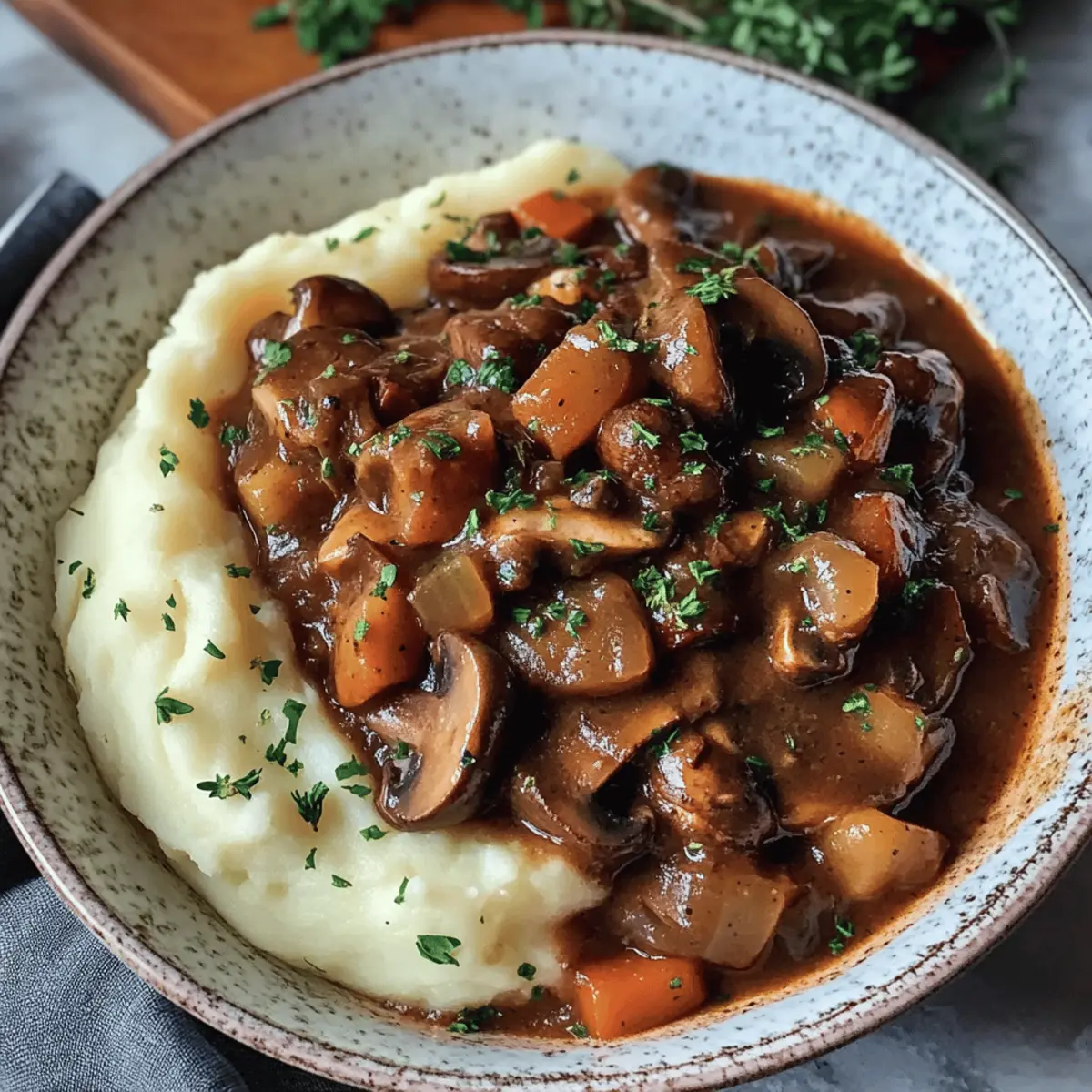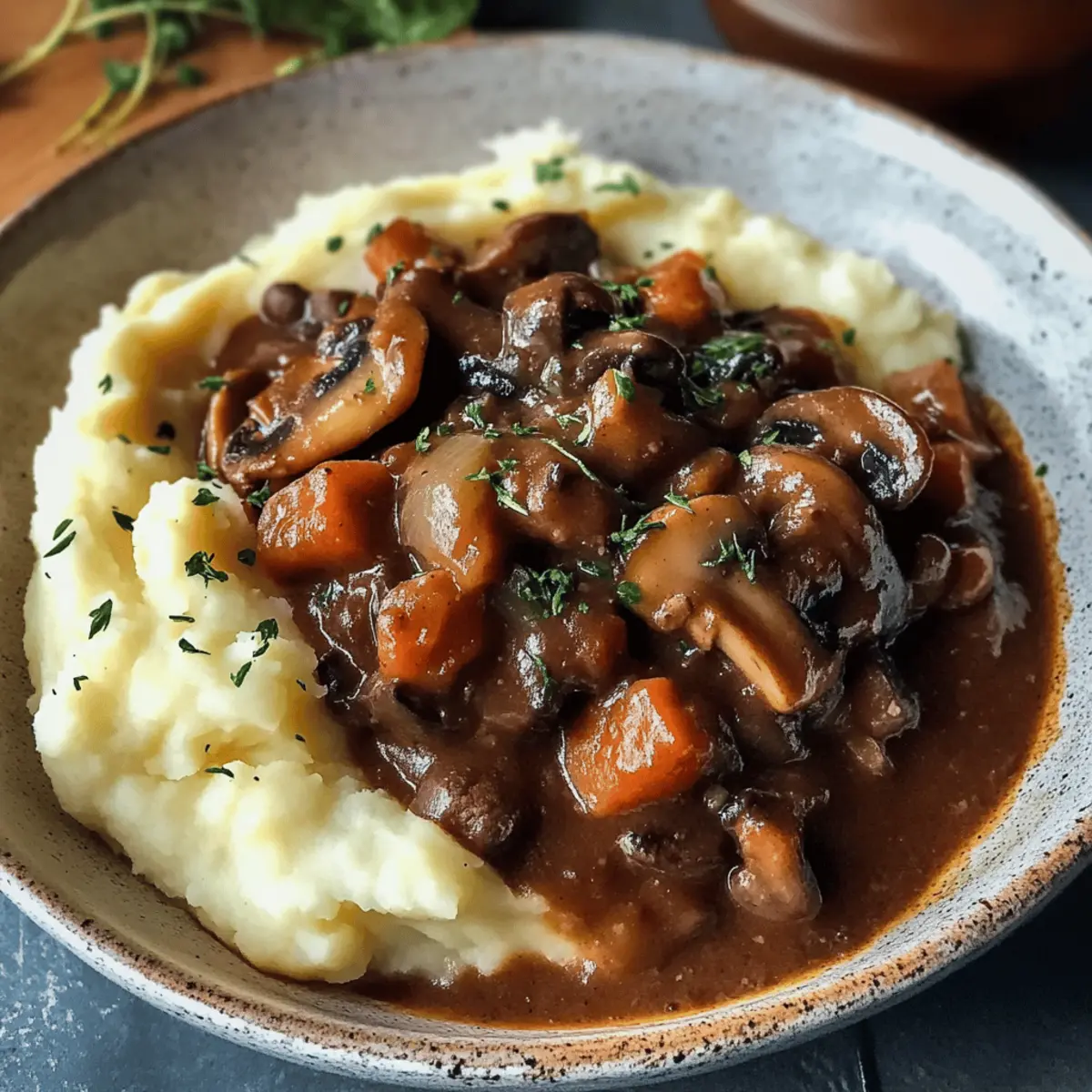 Gerade als ich die Lebkuchen im Supermarkt entdeckte, musste ich an die perfekten Herbstabende denken, an denen ein herzhaftes Gericht den Tag rettet. Jetzt stelle ich mir vor, wie ich in meiner Küche stehe, um ein köstliches Herzhaftes Pilz-Gulasch Bourguignon zuzubereiten. Diese vegane Alternative ist nicht nur ein wahres Komfortessen, sondern auch eine wunderbare Möglichkeit, saisonale Zutaten in dein Zuhause zu bringen. Eine tolle Eigenschaft dieses Gerichts ist die Anpassungsfähigkeit – ob du verschiedene Pilzsorten oder Gemüse verwenden möchtest, die Möglichkeiten sind endlos! Und vergessen wir nicht die cremigen Kartoffelpüree, die jede gabelnnehmende Seele verwöhnen. Robust, herzhaft und definitiv ein Hit für jeden Anlass – möchtest du wissen, wie du dieses Genusserlebnis selber kreieren kannst? Warum ist dieses Gericht so besonders? Herzhaftigkeit: Dieses Pilz-Gulasch Bourguignon ist eine tolle vegane Variante eines klassischen Gerichts, das mit reichhaltigen Aromen und einem herzhaften Geschmack begeistert. Anpassungsfähig: Du kannst verschiedene Pilze und Gemüse verwenden, um dein persönliches Geschmackserlebnis zu kreieren – ideal für kreative Köche! Einfachheit: Mit nur wenigen Grundzutaten und einfachen Schritten ist es kinderleicht, dieses Gericht zuzubereiten. Besonders praktisch, wenn du nach einem schnellen Rezept suchst. Gemütliches Essen: Perfekt für kühle Abende, bringt dieses Gericht Gemütlichkeit und warme Erinnerungen auf den Tisch. Es lässt sich zudem hervorragend für dein nächstes Fest abwandeln. Nährstoffreich: Mit ballaststoffhaltigen Zutaten wie Pilzen und Kartoffeln ist es nicht nur lecker, sondern auch gesund. Dabei unterstützt es eine pflanzliche Ernährung. Probiere dazu auch gerne ein einfaches Rezept für Kartoffelpüree! Herzhaftes Pilz-Gulasch Bourguignon Zutaten Für das Gulasch Pilze – Sie sind die Hauptquelle für Umami und Textur; mische z.B. braune Champignons, Shiitake oder Austernpilze für mehr Vielfalt. Rotwein – Verleiht der Sauce Tiefe und Reichtum; ersetze ihn durch alkoholfreien Rotwein oder zusätzliches Gemüsebrühe. Gemüsebrühe – Bildet die Basis der Bourguignon-Sauce und sorgt für Geschmack und Feuchtigkeit; frisch zubereitete Brühe hebt den Geschmack. Räucherpaprika – Sorgt für eine rauchige Note, die die Pilze perfekt ergänzt; verwende süße Paprika für eine mildere Variante. Thymian – Gibt einen erdigen, kräuterlichen Geschmack; frischer Thymian ist die beste Wahl. Für das Kartoffelpüree Kartoffeln – Der Grundbaustein für cremiges Kartoffelpüree, das für Komfort sorgt; Süßkartoffeln oder Blumenkohl sind aromatische Alternativen. Pflanzliche Milch – Schafft eine cremige Textur für das Püree; wähle ungesüßte Varianten für optimale Ergebnisse. Erbsen – Fügen einen Farbtupfer und zusätzliche Nährstoffe hinzu; ersetze sie durch grüne Bohnen oder Brokkoli, wenn gewünscht. Genieße die Zubereitung deines Herzhaftes Pilz-Gulasch Bourguignon und entdecke die Möglichkeiten der Variationen! Schritt-für-Schritt-Anleitung für Herzhaftes Pilz-Gulasch Bourguignon Step 1: Gemüse anbraten Erhitze in einer großen Pfanne bei mittlerer Hitze 2 Esslöffel Öl. Füge die grob gehackten Pilze hinzu und brate sie 5-7 Minuten lang an, bis sie goldbraun und weich sind. Achte darauf, dass die Pilze nicht zu viel Flüssigkeit abgeben, sie sollten schön gebräunt sein. Step 2: Sauce zubereiten Reduziere die Hitze und gieße 250 ml Rotwein in die Pfanne. Rühre 500 ml Gemüsebrühe, 1 Teelöffel geräucherte Paprika und 1 Teelöffel frischen Thymian unter. Lass die Mischung für etwa 10 Minuten auf kleiner Flamme köcheln, bis sie etwas eingedickt ist und die Aromen entfaltet sind. Step 3: Sauce eindicken Lass die Sauce für weitere 15-20 Minuten köcheln, bis sie eine sämige Konsistenz erreicht hat. Rühre gelegentlich um, um ein Anbrennen zu verhindern. Wenn die Sauce zu dick wird, kannst du nach Belieben etwas mehr Gemüsebrühe hinzufügen. Step 4: Kartoffeln kochen Während die Sauce köchelt, bringe einen großen Topf mit Wasser zum Kochen. Füge 1 kg geschälte und gewürfelte Kartoffeln hinzu und koche sie etwa 15-20 Minuten, bis sie zart sind. Prüfe mit einer Gabel, ob sie weich sind, bevor du sie abgießt. Step 5: Kartoffelpüree zubereiten Stampfe die gekochten Kartoffeln mit einem Kartoffelstampfer zu einem cremigen Püree. Füge langsam 150 ml ungesüßte pflanzliche Milch hinzu, bis die gewünschte Konsistenz erreicht ist. Schmecke das Püree mit Salz und Pfeffer ab. Step 6: Kombinieren und servieren Serviere das herzhaftes Pilz-Gulasch Bourguignon über einer großzügigen Portion des cremigen Kartoffelpürees. Füge nach Belieben frische Erbsen oder zusätzliches Gemüse hinzu, um Farbe und Nährstoffe zu fördern. Garniere je nach Vorliebe mit frischem Thymian. Lagerungstipps für Herzhaftes Pilz-Gulasch Bourguignon Zimmertemperatur: Das Gericht sollte nicht länger als 2 Stunden bei Zimmertemperatur stehen gelassen werden, um die Lebensmittelsicherheit zu gewährleisten. Kühlschrank: Bewahre dein Herzhaftes Pilz-Gulasch Bourguignon in einem luftdichten Behälter im Kühlschrank auf. Es bleibt bis zu 3 Tage frisch. Tiefkühler: Für längere Aufbewahrung kann das Gulasch eingefroren werden. Fülle es in einen gefriertauglichen Behälter und verwende es innerhalb von 2-3 Monaten. Wiedererwärmung: Zum Wiedererwärmen, erwärme es sanft auf dem Herd oder in der Mikrowelle, bis es durchgehend heiß ist. Füge bei Bedarf etwas Brühe hinzu, um die Konsistenz anzupassen. Variationen & Substitutionen für Herzhaftes Pilz-Gulasch Bourguignon Entdecke die spannenden Möglichkeiten, dein Herzhaftes Pilz-Gulasch Bourguignon ganz nach deinem Geschmack anzupassen! Veganer Proteinboost: Füge gewürfelten Tofu oder Seitan hinzu, um deinem Gericht zusätzliches Protein und Textur zu verleihen. So wird das Gulasch noch sättigender! Pilzauswahl: Experimentiere mit verschieden