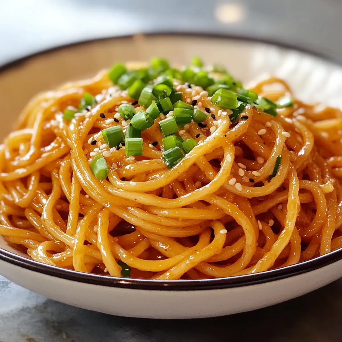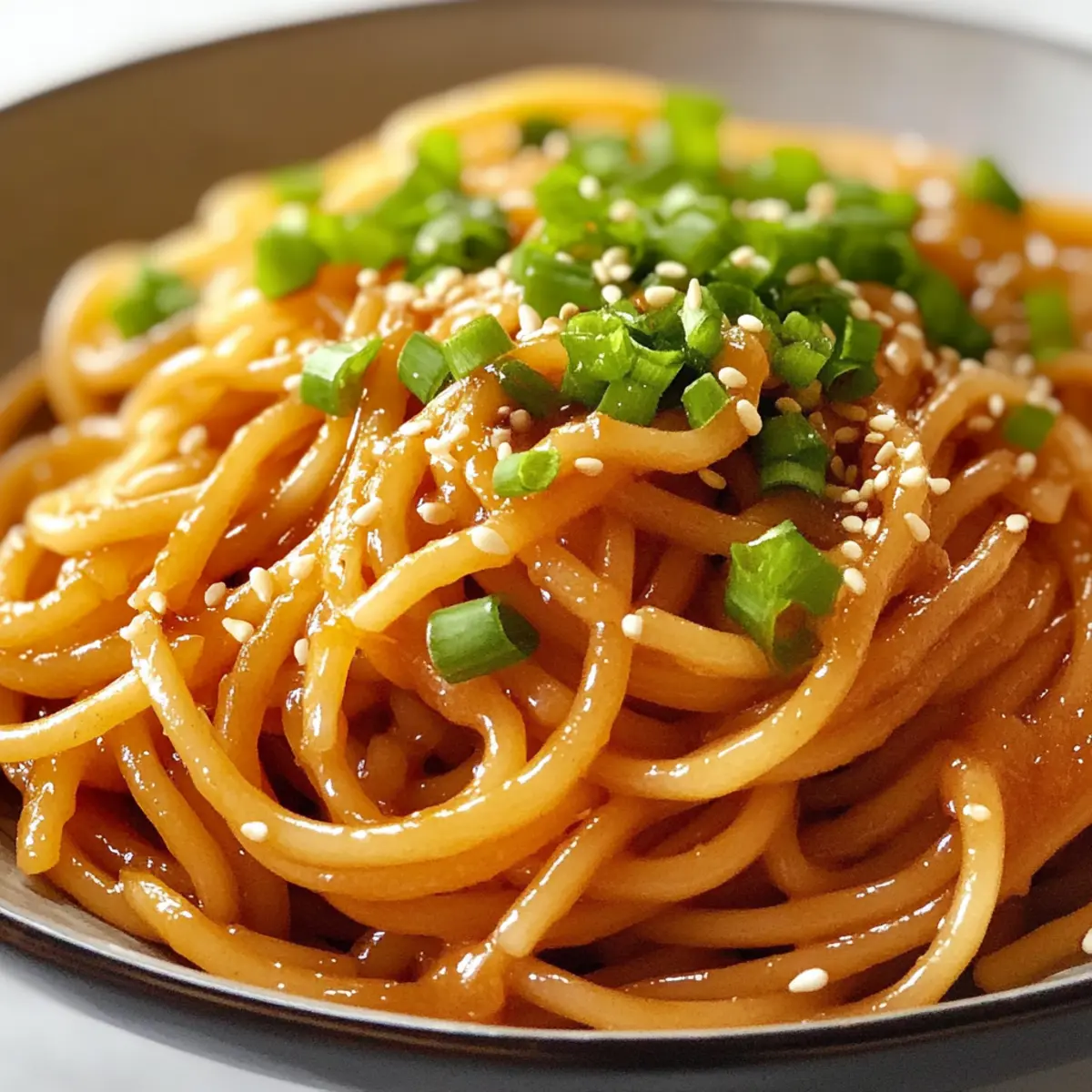 Als ich neulich in einem trendigen Restaurant das erste Mal Hibachi-Nudeln probierte, war ich sofort hin und weg. Dieses Hibachi-Nudeln Rezept kombiniert linguine in einer schmackhaften Knoblauch-Butter-Sauce mit Soja- und Teriyaki-Aromen, die ein wahres Fest für die Sinne sind. Egal, ob du nach einem schnellen Abendessen für die Familie suchst oder Gäste beeindrucken möchtest, diese köstlichen Nudeln sind nicht nur einfach zuzubereiten, sondern auch glutenfrei variierbar, sodass wirklich jeder etwas davon hat. Wie wäre es, deiner nächsten Mahlzeit mit dieser japanisch inspirierten Kreation einen besonderen Dreh zu geben? Lass uns gemeinsam die Geheimnisse dieser unwiderstehlichen Nudeln entdecken! Warum werden Sie dieses Rezept lieben? Schnelligkeit und Einfachheit: In nur 30 Minuten zaubern Sie diese köstlichen Hibachi-Nudeln, perfekt für hektische Werktage oder unerwartete Gäste. Aromatische Tiefe: Die Kombination von Knoblauch und Sojasauce sorgt für ein unverwechselbares Geschmackserlebnis, das sofort glücklich macht. Vielfältige Anpassungsmöglichkeiten: Ob vegetarisch oder mit Proteinen erweitert, dieses Rezept lässt sich ganz nach Belieben abwandeln. Gesunde Zutaten: Dank frischem Gemüse wie Karotten und Brokkoli bringen Sie Farbe und Nährstoffe auf den Teller. Köstlicher Komfort: Diese Nudeln sind nicht nur sättigend, sie schmecken auch wie vom Chefkoch höchstpersönlich zubereitet – ideal für ein gemütliches Abendessen zu Hause. Verpassen Sie nicht die Gelegenheit, es auszuprobieren! Hibachi-Nudeln Zutaten • Für eine gelungene Zubereitung: Nudeln – 200g, die Basis des Gerichts, die Sie köstlich mit der Sauce umhüllen. Pflanzenöl – 2 Esslöffel, sorgt für eine perfekte Bräunung und ein angenehmes Aroma. Knoblauch – 2 Zehen, gehackt – bringt aromatische Tiefe und Würze, verwende frischen Knoblauch für besten Geschmack. Zwiebel – 1, in Scheiben geschnitten – fügt Süße hinzu und macht die Kombination noch herzlicher. Karotte – 1, in Streifen geschnitten – sorgt für einen frischen Crunch und einen gesunden Touch. Paprika – 1, in Streifen geschnitten – bringt Farben und zusätzliche Süße, ideal für die visuelle Gestaltung. Brokkoli – 100g, ergänzt die Nährstoffe und sorgt für einen schönen Farbkontrast. Sojasauce – 2 Esslöffel, verleiht den Hibachi-Nudeln ihren charakteristischen Umami-Geschmack; verwenden Sie Tamari für eine glutenfreie Variante. Sesamöl – 1 Esslöffel, der letzte Schliff für einen nussigen Geschmack, der die andere Aromen perfekt abrundet. Salz und Pfeffer – nach Geschmack, um alle Aromen aufzufrischen und zu intensivieren. Frühlingszwiebeln – zum Garnieren, sorgen für Frische und knusprige Textur auf der Oberseite. Lass Dich von diesem Hibachi-Nudeln Rezept inspirieren und genieße eine Vielzahl an Geschmäckern in jedem Bissen! Step-by-Step Instructions für Hibachi-Nudeln Rezept Step 1: Nudeln kochen Kochen Sie zuerst die Nudeln in einem großen Topf mit kochendem Salzwasser gemäß den Anweisungen auf der Verpackung. Rühren Sie gelegentlich, damit sie nicht kleben, und lassen Sie sie al dente garen, was normalerweise etwa 8–10 Minuten dauert. Nach dem Garen die Nudeln abgießen und beiseite stellen, während Sie die Gemüse vorbereiten. Step 2: Öl erhitzen In einer großen Pfanne oder einem Wok, stellen Sie die Hitze auf mittelhoch und fügen Sie das Pflanzenöl hinzu. Lassen Sie das Öl für etwa 1–2 Minuten erhitzen, bis es anfängt zu schimmern. Achten Sie darauf, dass es nicht zu rauchen beginnt. Dieses heiße Öl bildet die Grundlage für eine köstliche Röstung des Gemüses. Step 3: Knoblauch und Zwiebel anbraten Fügen Sie die gehackten Knoblauchzehen und die in Scheiben geschnittenen Zwiebeln in die heiße Pfanne ein. Braten Sie sie für etwa 2 Minuten an, bis sie duften und die Zwiebeln leicht golden werden. Rühren Sie ständig, um ein Anbrennen zu vermeiden, da verbrannter Knoblauch bitter werden kann und den Geschmack Ihrer Hibachi-Nudeln beeinträchtigt. Step 4: Gemüse hinzufügen Geben Sie nun die geschnittenen Karotten, Paprika und den Brokkoli in die Pfanne. Rösten Sie das Gemüse für etwa 4–5 Minuten, bis es weich, aber noch knackig ist. Rühren Sie ständig um, damit alles gleichmäßig gegart wird. Die lebendigen Farben und aromatischen Düfte machen das Gericht schon jetzt unwiderstehlich. Step 5: Nudeln vermengen Fügen Sie die vorgekochten Nudeln in die Pfanne zu dem Gemüse hinzu und heben Sie alles vorsichtig mit einem Wender oder Holzlöffel untereinander. Lassen Sie die Mischung für 2–3 Minuten auf der Hitze, damit sich die Aromen der Hibachi-Nudeln gut entfalten können und die Nudeln leicht durchwärmen. Step 6: Sojasauce und Sesamöl einkochen Gießen Sie die Sojasauce und das Sesamöl über die Nudeln und das Gemüse. Rühren Sie alles gut um, sodass die Nudeln gleichmäßig mit der Sauce überzogen sind. Lassen Sie die Mischung für etwa 1–2 Minuten weiter braten, bis die Sauce leicht eindickt und die Nudeln eine glänzende Oberfläche erhalten. Step 7: Abschmecken und anrichten Schmecken Sie die Hibachi-Nudeln ab und würzen Sie mit Salz und Pfeffer nach Geschmack. Mischen Sie gut, um sicherzustellen, dass die Gewürze gleichmäßig verteilt sind. Servieren Sie die Nudeln heiß und garnieren Sie die Portionen mit frisch geschnittenen Frühlingszwiebeln für einen schönen Farbkontrast und zusätzlichen Crunch. Lagerungstipps für Hibachi-Nudeln Raumtemperatur: Die Hibachi-Nudeln sollten nicht länger als 2 Stunden bei Raumtemperatur stehen gelassen werden, um das Risiko von Bakterienwachstum zu vermeiden. Kühlschrank: Bewahren Sie die Reste in einem luftdichten Behälter im Kühlschrank für bis zu 3 Tage auf. Lassen Sie die Nudeln vor dem Kühlen vollständig abkühlen, um Kondensation zu vermeiden. Gefrierer: Für eine längere Lagerung können die Hibachi-Nudeln bis zu 2 Monate im Gefrierschrank aufbewahrt werden. Wickeln Sie sie 
