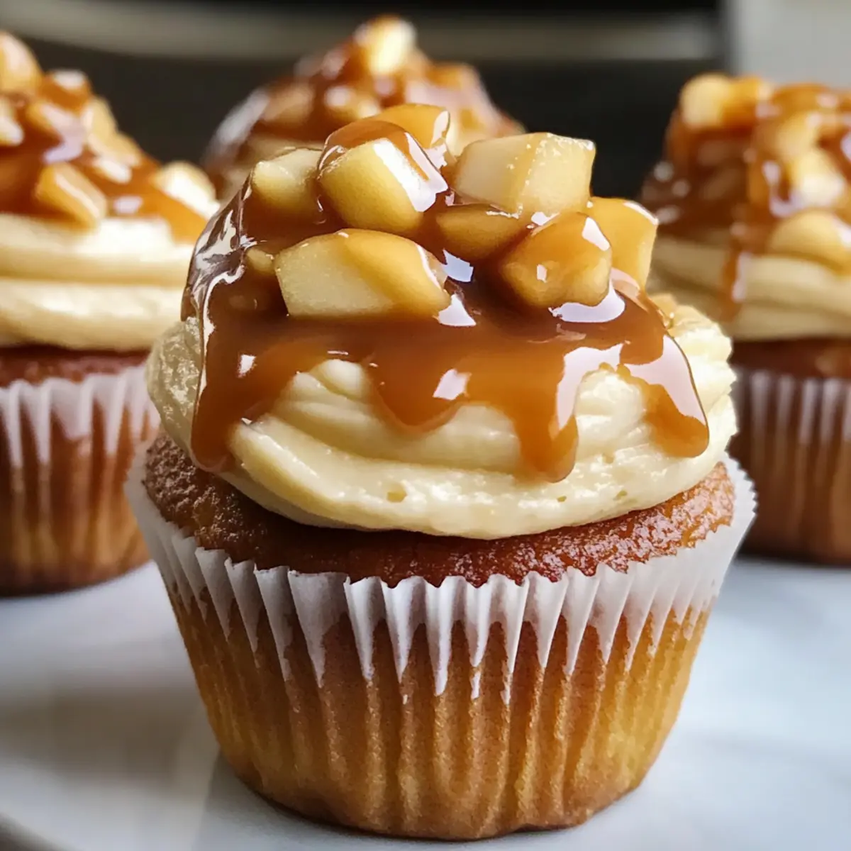 Wenn ich die ersten kühlen Herbstabende willkommen heiße, kann ich nicht anders, als auf die Suche nach warmen, herzerwärmenden Rezepten zu gehen. Eine meiner liebsten Kreationen sind diese Karamell-Apfel-Cupcakes, die mit einem herrlich süßen Apfelgeschmack und einer himmlischen Karamellglasur daherkommen. Diese feuchtigkeitsspendenden Cupcakes sind nicht nur eine schnelle Lösung für geschäftige Tage, sondern auch ein echter Blickfang für jede Zusammenkunft. In nur 40 Minuten zaubern Sie ein Dessert, das Ihre Liebsten begeistern wird und die Erinnerungen an den Herbst aufleben lässt. Neugierig, wie Sie diesen köstlichen Genuss in Ihrer eigenen Küche kreieren können? Lassen Sie uns anfangen! Warum sind diese Karamell-Apfel-Cupcakes so besonders? Saisonale Aromen: Diese Cupcakes bringen die besten Herbstgeschmäcker nach Hause, mit frischen Äpfeln und süßem Karamell, die perfekt harmonieren. Einfach zu machen: In nur 40 Minuten bereiten Sie diese delikaten Leckerbissen vor, ideal für geschäftige Tage oder unerwartete Gäste. Für alle Gelegenheiten: Ob bei einem Familienessen oder einer Feier mit Freunden, diese Cupcakes beeindrucken garantiert jeden. Feuchtigkeit pur: Mit ihrer fluffigen Textur und den zarten Apfelstückchen sind sie ein echter Genuss. Für eine Variante können Sie auch unsere Käsekuchengefüllte Schokoladenkekse ausprobieren! Minimaler Aufwand, maximaler Genuss: Mit einfachen Zutaten und wenigen Schritten ist dieser Genuss im Handumdrehen fertig. Vielseitige Anpassungen: Experimentieren Sie mit anderen Apfelsorten oder verschiedenen Toppings, um Ihre persönliche Note hinzuzufügen. Karamell-Apfel-Cupcakes Zutaten Für den Teig Allzweckmehl – Sorgt für Struktur und Textur; verwenden Sie Vollkornmehl für mehr Ballaststoffe. Backpulver – Lässt die Cupcakes aufgehen; essenziell für eine luftige, fluffige Konsistenz. Backsoda – Unterstützt das Backpulver beim Aufgehen; wichtig für die gewünschte Höhe. Salz – Verstärkt die Aromen und balanciert die Süße. Ungesalzene Butter – Verleiht Reichtum und Feuchtigkeit; verwenden Sie weiche Butter für einfaches Mischen. Zucker – Süßt die Cupcakes und trägt zur Textur bei; Sie können etwas davon durch einen Zuckerersatz ersetzen. Eier – Dienen als Bindemittel und tragen zur Struktur des Kuchens bei; idealerweise Zimmertemperatur für beste Mischresultate. Vanilleextrakt – Fügt Tiefe im Geschmack hinzu; verwenden Sie reinen Vanilleextrakt für den besten Geschmack. Milch – Hydriert den Teig; bei Bedarf mit Mandel- oder Hafermilch ersetzen. Fein gehackte Äpfel – Bringt Feuchtigkeit, Geschmack und Textur; eine Mischung aus süßen (wie Honeycrisp) und sauren Äpfeln (wie Granny Smith) ist empfehlenswert. Für das Topping Karamellsoße – Für das Topping, fügt Reichtum hinzu; Alternativen sind Frischkäsefrosting oder Butterscotchsoße. Schritt-für-Schritt-Anleitung für Karamell-Apfel-Cupcakes Step 1: Backofen vorheizen Heizen Sie den Backofen auf 175°C (350°F) vor und legen Sie ein Muffinblech mit Papierförmchen aus. Achten Sie darauf, dass alle Ihre Zutaten bereitstehen, um einen reibungslosen Ablauf zu gewährleisten. Während der Ofen aufheizt, können Sie mit den Vorbereitungen für den Teig beginnen. Step 2: Trockene Zutaten mischen In einer mittelgroßen Schüssel vermengen Sie das Allzweckmehl, Backpulver, Backsoda und Salz. Rühren Sie kräftig, bis alles gleichmäßig verteilt ist. Diese Mischung sorgt dafür, dass Ihre Karamell-Apfel-Cupcakes schön aufgehen und eine luftige Textur erhalten. Step 3: Butter und Zucker cremig schlagen In einer großen Rührschüssel schlagen Sie die weiche ungesalzene Butter und den Zucker mit einem Handmixer oder einer Küchenmaschine für 3 bis 5 Minuten, bis die Mischung leicht und fluffig ist. Achten Sie darauf, dass Sie die Ränder der Schüssel abkratzen, damit alles gut vermengt wird. Step 4: Eier und Vanille hinzufügen Fügen Sie die Eier nacheinander hinzu und mixen Sie nach jedem Ei gut durch. Geben Sie anschließend den Vanilleextrakt dazu und verrühren Sie alles, bis die Mischung homogen ist. Diese Zutaten verleihen Ihren Karamell-Apfel-Cupcakes eine wunderbare Geschmackstiefe. Step 5: Trockene und flüssige Zutaten kombinieren Fügen Sie nun die trockenen Zutaten abwechselnd mit der Milch zu den feuchten Zutaten hinzu. Beginnen Sie mit einem Drittel der trockenen Mischung, gefolgt von der Hälfte der Milch, und wiederholen Sie den Vorgang, bis alles gut vermengt ist. Achten Sie darauf, nicht zu übermixen, um die Luftigkeit der Cupcakes zu erhalten. Step 6: Äpfel unterheben Heben Sie die fein gehackten Äpfel vorsichtig unter den Teig, bis sie gleichmäßig verteilt sind. Diese Apfelstückchen sorgen für zusätzliche Feuchtigkeit und einen frischen Geschmack in Ihren Karamell-Apfel-Cupcakes. Step 7: Cupcake-Förmchen füllen Verteilen Sie den Teig gleichmäßig in die vorbereiteten Muffinförmchen, bis sie etwa zu zwei Dritteln gefüllt sind. Nutzen Sie einen Esslöffel oder einen Eisportionierer, um das Einfüllen zu erleichtern und eine gleichmäßige Größe der Cupcakes zu gewährleisten. Step 8: Backen Backen Sie die Cupcakes im vorgeheizten Ofen für 18 bis 20 Minuten, bis ein Zahnstocher sauber herauskommt. Halten Sie während des Backens ein Auge auf die Cupcakes; sie sollten goldbraun und fluffig wirken, wenn sie fertig sind. Step 9: Abkühlen lassen Lassen Sie die Cupcakes nach dem Backen 5 Minuten im Blech stehen und nehmen Sie sie dann vorsichtig heraus, um sie auf ein Kuchengitter zu transferieren. Lassen Sie sie vollständig abkühlen, denn das verhindert, dass die Karamellsoße schmilzt, wenn sie aufgetragen wird. Step 10: Karamellsoße hinzufügen Sobald die Karamell-Apfel-Cupcakes vollständig abgekühlt sind, träufeln Sie die Karamellsoße großzügig über jeden Cupcake. Genießen Sie das Zusammenspiel von süßem Karamell und frischen Äpfeln, das Ihre Gäste begeistern wird! Karamell-Apfel-Cupc