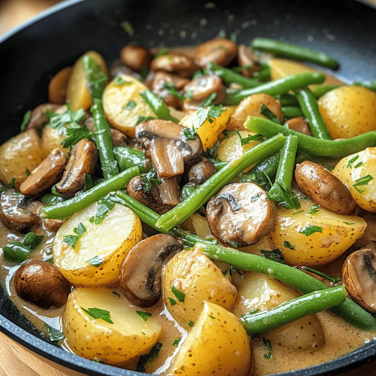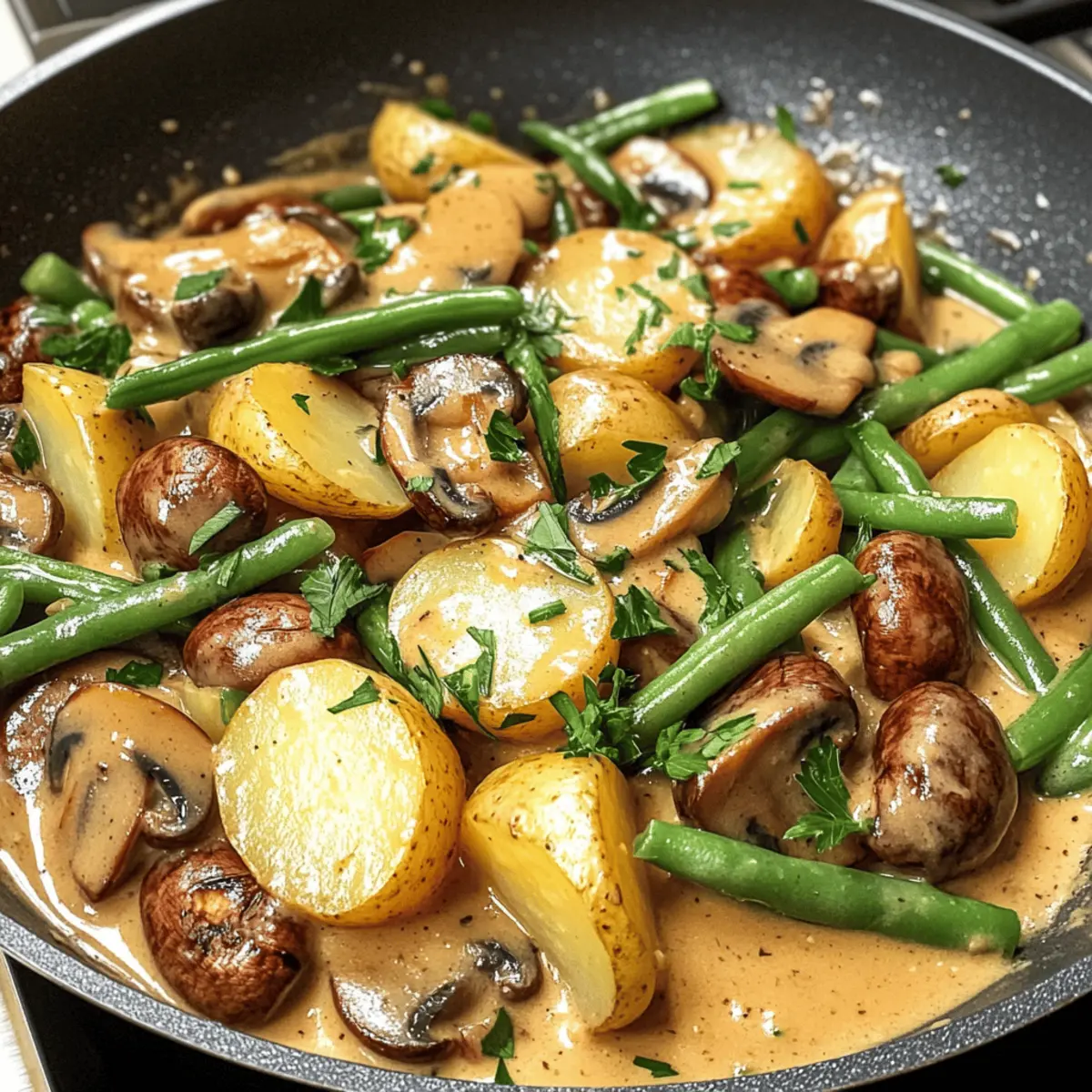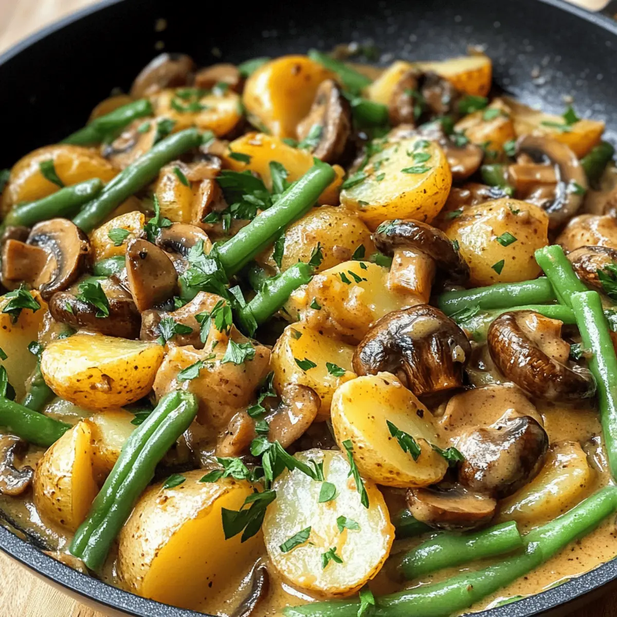 In der Atmosphäre einer herbstlichen Küche, wo die Blätter von goldenen Tönen durchzogen sind, bereite ich das Herzstück meines heutigen Abends vor: die Kartoffel-Pilz-Pfanne mit Bohnen. Diese einfache, saisonale Mahlzeit vereint nicht nur die erdigen Aromen von Kartoffeln und Champignons, sondern besticht auch durch die knackige Frische der grünen Bohnen. Was ich an diesem Rezept besonders liebe, ist seine Vielseitigkeit – es ist nicht nur ein absolutes Wohlfühlessen, sondern auch eine wahre Freude für alle, die gesund und pflanzlich kochen möchten. Die cremige Misosauce und der geräucherte Paprika verleihen diesem Gericht den letzten Schliff und machen es zu einer perfekten Wahl für ein gemütliches Abendessen unter der Woche. Neugierig, wie diese köstliche Kombination auf den Tisch kommt? Lass uns den Kochlöffel schwingen! Warum ist dieses Rezept unwiderstehlich? Einfachheit, die Zutaten sind leicht erhältlich und die Schritte sind unkompliziert, ideal für Kochanfänger. Saisonale Frische macht sie besonders schmackhaft, während die Mischung aus Kartoffeln, Pilzen und Bohnen ein herzhaftes Wohlfühlgericht ergibt. Vielseitig kann die Rezeptur leicht angepasst werden – ob mit zusätzlichen Gemüsesorten oder neuen Gewürzen. Proteinreich und nahrhaft, ist es ideal für alle, die pflanzenbasierte Mahlzeiten schätzen und sich gesund ernähren wollen. Diese Kartoffel-Pilz-Pfanne mit Bohnen ist nicht nur köstlich, sondern auch perfekt für ein gemütliches Familienessen oder ein schnelles Abendessen unter der Woche! Kartoffel-Pilz-Pfanne Zutaten • Die perfekte Basis für dein Gericht wartet auf dich! Für die Pfanne 500 g kleine Butterkartoffeln (Drillinge) – Sie bilden die herzhafte Basis; du kannst sie auch durch andere festkochende Kartoffeln ersetzen. 200 g grüne Bohnen – Fügen Farbe, Crunch und Nährstoffe hinzu; frische Bohnen sind ideal, gefrorene sind aber eine gute Alternative. 250 g braune Champignons – Diese bringen umami Geschmack und Textur; du kannst sie auch durch andere Pilzsorten, wie z.B. Portobello, ersetzen. 1 Knoblauchzehe – Verleiht dem Gericht aromatische Noten; im Notfall kannst du auch Knoblauchpulver verwenden. 1 EL Olivenöl – Eignet sich hervorragend zum Anbraten und liefert gesunde Fette; alternativ kannst du auch Pflanzenöl benutzen. ½ TL geräuchertes Paprikapulver – Bittersüßer Geschmack mit tiefer, rauchiger Note; wenn du es milder magst, verwende süßes Paprikapulver. 1 TL helle Misopaste – Sorgt für eine cremige Konsistenz und Umami-Geschmack; tahini oder Sojasauce können ebenfalls genutzt werden. 200 ml pflanzliche Sahne – Basis für die cremige Sauce, ideal für vegane Zubereitung; ungesüßte Mandel- oder Sojasahne sind gute Alternativen. 1 TL Gemüsebrühpulver – Verstärkt den Gesamtgeschmack; du kannst auch frische Gemüsebrühe verwenden, wenn du diese zur Hand hast. Muskatnuss, Pfeffer, ggf. etwas Salz – Gewürze, die das Gericht verfeinern; passe sie nach deinem Geschmack an. 3-4 Stängel glatte Petersilie – Für den frischen Geschmack und zur Garnierung; auch andere Kräuter wie Thymian oder Schnittlauch sind möglich. Schritt-für-Schritt-Anleitungen für Kartoffel-Pilz-Pfanne mit Bohnen Step 1: Kartoffeln vorkochen Die kleinen Butterkartoffeln gründlich waschen und in der Mitte teilen oder ganz lassen. In einem Topf mit kochendem, gesalzenem Wasser etwa 15 Minuten garen, bis sie garantiest noch fest sind. Danach abgießen und beiseite stellen, um kurz abkühlen zu lassen. Step 2: Bohnen blanchieren Die grünen Bohnen waschen, die Enden abschneiden und in einem weiteren Topf mit kochendem, gesalzenem Wasser für 8–10 Minuten blanchieren. Die Bohnen sollten leuchtend grün und knackig bleiben. Anschließend abgießen und beiseite stellen, während du die Pilze und den Knoblauch vorbereitest. Step 3: Pilze und Knoblauch vorbereiten Die braunen Champignons gründlich reinigen und in Scheiben schneiden. Während die Bohnen blanchieren, die Knoblauchzehe fein hacken. Diese Zutaten sind wichtig für die schmackhafte Basis der Kartoffel-Pilz-Pfanne mit Bohnen und sorgen für ein intensives Aroma. Step 4: Mischung anbraten In einer großen Pfanne das Olivenöl bei mittlerer Hitze erhitzen. Die geschnittenen Champignons hinzugeben und 2–3 Minuten braten, bis sie leicht bräunen. Den gehackten Knoblauch dazugeben und für weitere 30 Sekunden mitbraten, um die Aromen zu entfalten. Step 5: Sauce zubereiten In einer Schüssel die pflanzliche Sahne, geräuchertes Paprikapulver, Misopaste und Gemüsebrühpulver gut vermischen, bis eine homogene Masse entsteht. Dies wird die cremige Sauce für die Kartoffel-Pilz-Pfanne mit Bohnen sein, die dem Gericht seine besondere Note verleiht. Step 6: Zutaten kombinieren Die vorgekochten Kartoffeln und die blanchierten Bohnen zur Pilz-Knoblauch-Mischung in der Pfanne geben. Die vorbereitete Sauce gleichmäßig darüber gießen und alles vorsichtig mischen, damit die Kartoffeln und Bohnen gut mit der Sauce benetzt werden. 3–4 Minuten sanft köcheln lassen. Step 7: Überbacken Den Ofen auf 200°C vorheizen und die Pfanne in den vorgeheizten Grill schieben. Für 2–3 Minuten backen, bis die Oberseite Blasen wirft und leicht goldbraun wird. Dies verleiht der Kartoffel-Pilz-Pfanne mit Bohnen einen köstlichen, knusprigen Kanten. Step 8: Servieren Vor dem Servieren die fertige Pfanne mit frisch gehackter Petersilie garnieren. Dies bringt zusätzliche Frische und Farbe. Genießen Sie Ihre Kartoffel-Pilz-Pfanne mit Bohnen zusammen mit knusprigem Brot oder einem erfrischenden Salat für eine ausgewogene Mahlzeit. Vorbereitung der Kartoffel-Pilz-Pfanne mit Bohnen für stressfreie Mahlzeiten Diese Kartoffel-Pilz-Pfanne mit Bohnen ist ideal für diejenigen, die Zeit sparen möchten! Du kannst die Kartoffeln bereits bis zu 24 Stunden vor dem Kochen vorkochen und im Kühlschrank aufbewahren, damit sie beim späteren Anbraten perfekt sind. Auch die Bohnen können blanchiert 
