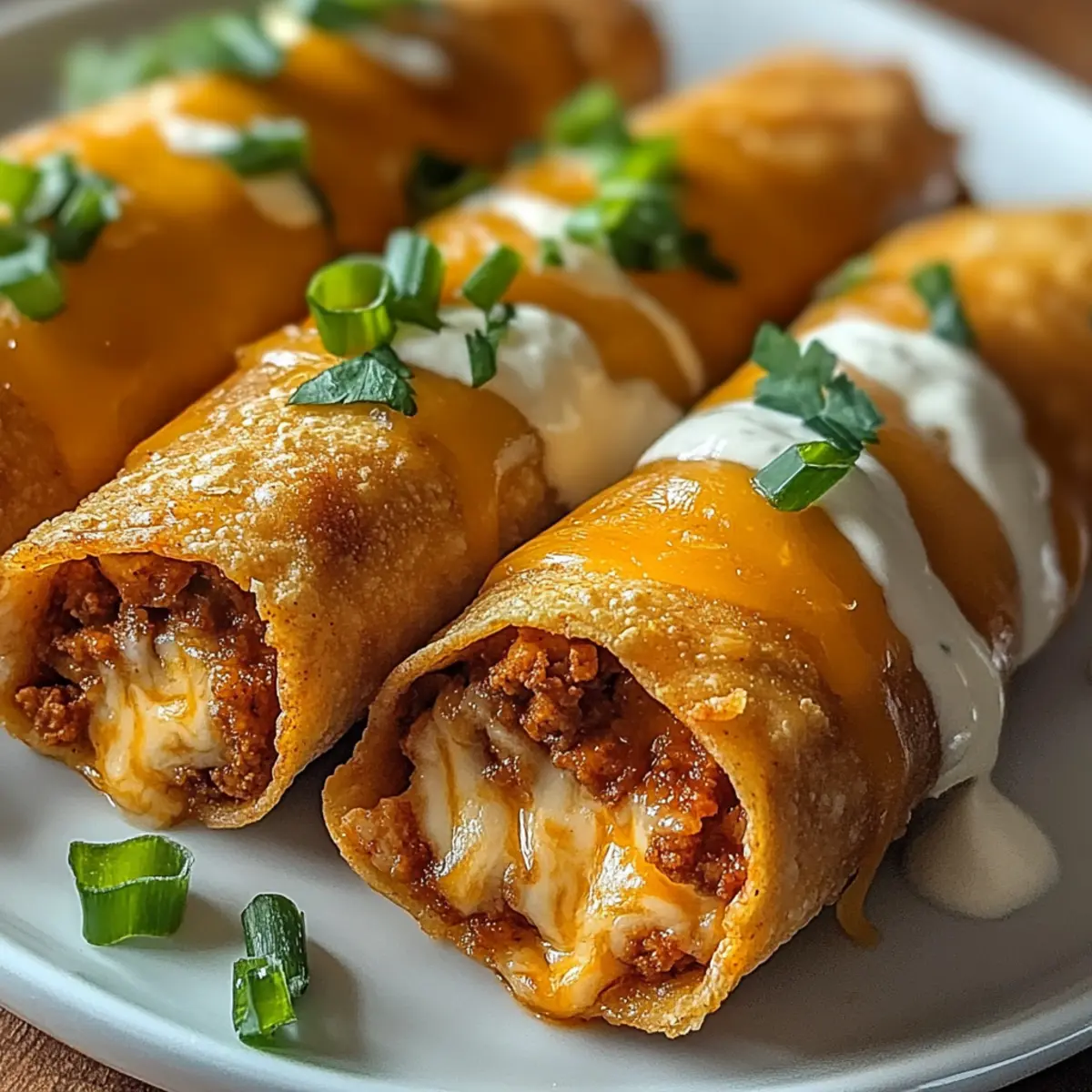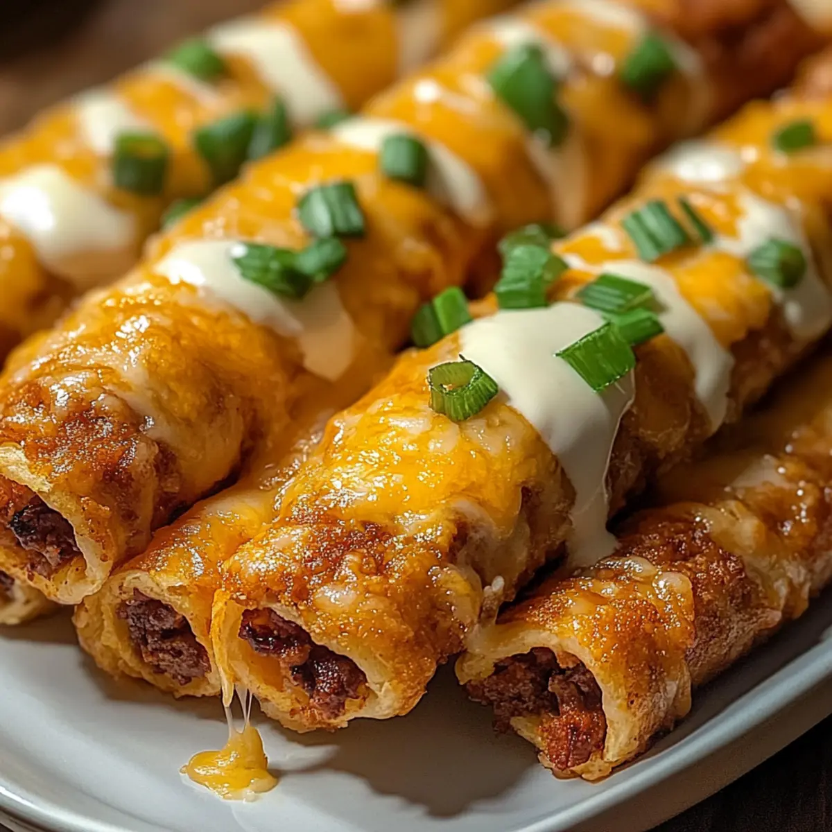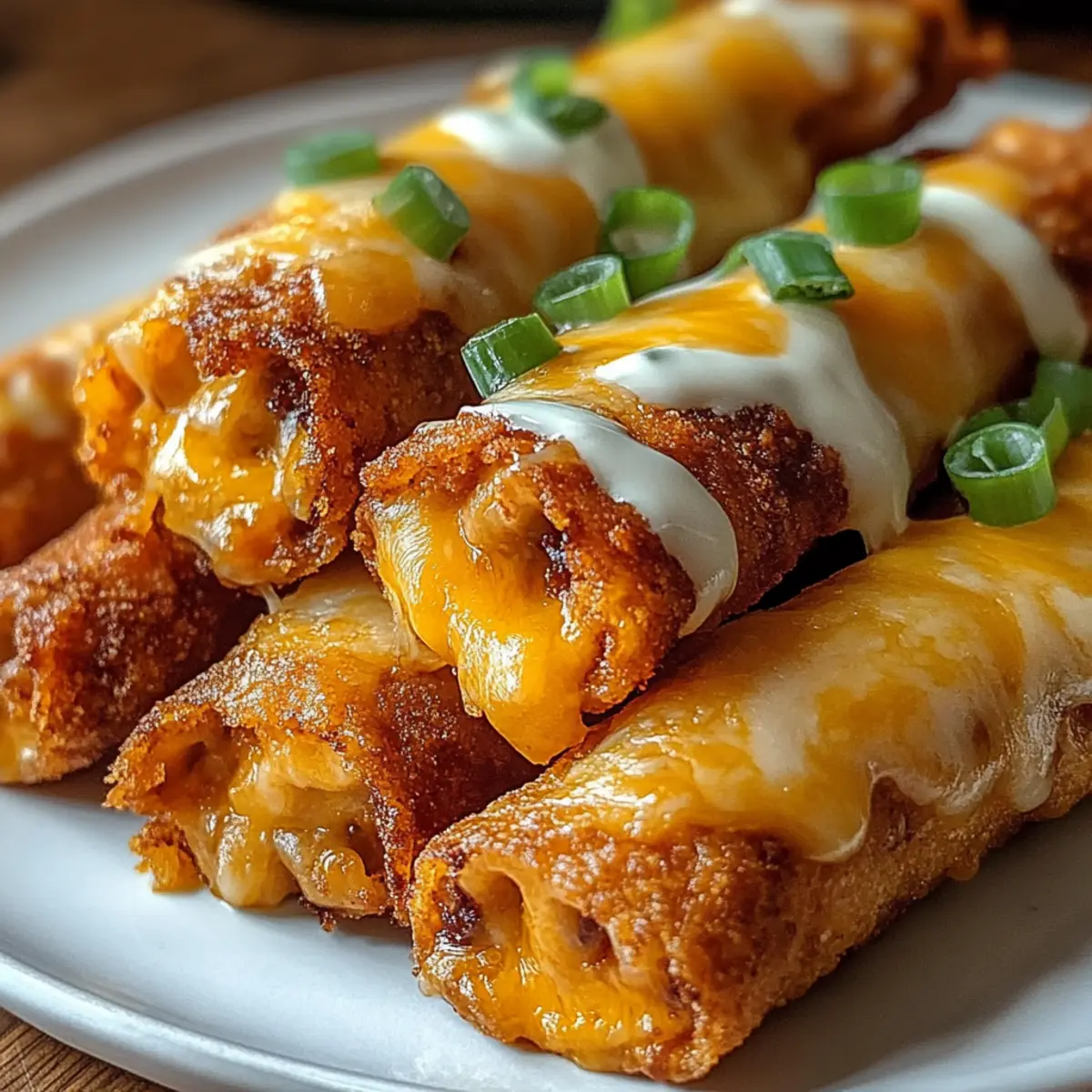 Stell dir vor, ein Abend voller Freunde, lachen und leckeres Essen – und das Highlight? Käsige Taco-Sticks! Diese kleinen Häppchen sind außen knusprig und innen cremig, gefüllt mit würzigem Rinderhack und geschmolzenem Cheddar, alles eingekuschelt in einen goldbraunen Blätterteig. Was ich an diesem Rezept liebe, ist die Vielseitigkeit: Ob du nun die klassische Variante wählst oder mit frischen Gemüsefüllungen experimentierst, jede Version wird zum Hit! Diese Tex-Mex Fingerfood ist nicht nur perfekt für Partys, sondern auch als schnelles Abendessen oder als kinderfreundlicher Snack. Und das Beste? Sie sind im Handumdrehen zubereitet! Hast du dich schon für deine Lieblingsfüllung entschieden? Warum wirst du diese Taco-Sticks lieben? Einfachheit in der Zubereitung: Das Rezept ist unkompliziert und erfordert nur grundlegende Kochfähigkeiten, sodass es für jeden machbar ist. Vielfältige Füllungen: Ob mit Cheddar, Mozzarella oder für die Vegetarier unter uns – die Möglichkeiten sind schier endlos! Perfektes Fingerfood: Ideal für Partys und gesellige Abende, diese Taco-Sticks sind der Hit bei deinen Freunden und Familie. Köstlicher Geschmack: Die Kombination aus würzigem Fleisch und schmelzendem Käse macht jeden Bissen unwiderstehlich. Du kannst sie auch mit frischen Gemüsefüllungen anpassen, um noch mehr Abwechslung zu bieten. Zeitsparend: Sie sind schnell zubereitet und du kannst sie sogar im Voraus vorbereiten und einfrieren, perfekt für spontane Gäste! Käsige Taco-Stick Zutaten Für den Teig • Blätterteig – Die Basis für deine leckeren Sticks, alternativ kannst du glutenfreien Blätterteig verwenden. Für die Füllung • Rinderhackfleisch – Das Fleisch gibt den Taco-Sticks ihren herzhaften Geschmack; als vegetarische Option sind auch schwarze Bohnen oder Linsen möglich. • Cheddar-Käse, gerieben – Für die unverwechselbare Cremigkeit und das Aroma; auch Mozzarella oder geräucherter Käse sind geeignete Alternativen. • Taco-Gewürzmischung – Diese gibt den Taco-Sticks den authentischen Tex-Mex-Geschmack; du kannst sie auch selbst aus Gewürzen wie Kreuzkümmel und Paprika mischen. • Wasser – Hilft dabei, die Füllung gut zu vermischen. • Frühlingszwiebeln, in feine Ringe – Frisch und aromatisch; optional für zusätzliche Geschmacksnuancen. • Jalapeños (optional) – Für alle, die es schärfer mögen; passe die Menge deinem Geschmack an. • Öl – Zum Anbraten des Fleisches, sorgt für einen köstlichen Geschmack. Für den Glanz • Ei – Das verquirlte Ei sorgt für eine goldene, glänzende Oberfläche nach dem Backen. Schritt-für-Schritt-Anleitung für Käsige Taco-Sticks Step 1: Fleisch anbraten Erhitze etwas Öl in einer Pfanne bei mittlerer Hitze und brate das Rinderhackfleisch unter ständigem Rühren an, bis es vollständig durchgegart und braun ist (ca. 5-7 Minuten). Füge die Taco-Gewürzmischung und 2 Esslöffel Wasser hinzu, rühre gut um und lasse die Mischung für weitere 3 Minuten köcheln. Rühre dann den geriebenen Cheddar-Käse unter und lasse die Füllung etwas abkühlen. Step 2: Blätterteig vorbereiten Rolle den Blätterteig auf einer leicht bemehlten Arbeitsfläche aus, bis er etwa 3 mm dick ist. Schneide den Teig in 8 gleich große Streifen, die etwa 8 cm breit sind. Achte darauf, dass die Kanten ordentlich sind, um das Füllen und Rollen zu erleichtern. Step 3: Füllen Nimm jeweils 1-2 Esslöffel der abgekühlten Füllung und platziere sie am unteren Ende jedes Teigstreifens. Achte darauf, genügend Platz zu lassen, damit der Teig beim Rollen nicht reißt. Verteile die Füllung gleichmäßig, um einen leckeren Biss in jedem Stück zu garantieren. Step 4: Rollen und Versiegeln Beginne, jeden Teigstreifen eng aufzurollen, wobei du die Enden leicht einklappst, um die Füllung zu versiegeln. Achte darauf, dass die Rolle fest, aber nicht zu straff ist, damit der Blätterteig beim Backen aufgehen kann. Lege die röllchen mit der Nahtseite nach unten auf ein mit Backpapier ausgelegtes Blech. Step 5: Backen Heize den Ofen auf 200°C vor. Pinsel die Oberseiten der Taco-Sticks großzügig mit dem verquirlten Ei, um eine goldene, glänzende Oberfläche zu erzielen. Backe die Käsigen Taco-Sticks im vorgeheizten Ofen für 15-18 Minuten, bis sie schön goldbraun und knusprig sind. Step 6: Servieren Lass die Taco-Sticks nach dem Backen kurz auf dem Blech auskühlen. Bestreue sie optional mit frischen Frühlingszwiebeln, um Farbe und zusätzlichen Geschmack hinzuzufügen. Serviere sie warm mit Salsa, Guacamole oder saurer Sahne als köstlichen Dip, um das Geschmackserlebnis zu vervollständigen. Aufbewahrungstipps für Käsige Taco-Sticks Raumtemperatur: Lass die Taco-Sticks nach dem Backen auf einem Gitter auskühlen und bewahre sie dann in einem luftdichten Behälter bei Raumtemperatur für bis zu 2 Tage auf. Kühlschrank: Vor dem Kühlen sollten die Käsigen Taco-Sticks vollständig abgekühlt sein. Im Kühlschrank halten sie sich bis zu 3 Tage. Decke sie mit Frischhaltefolie oder in einem verschlossenen Behälter ab, um die Frische zu bewahren. Gefrierschrank: Du kannst die Taco-Sticks bis zu 3 Monate einfrieren. Lege die ungebackenen, gefüllten Teigrollen zwischen Schichten von Backpapier in einen Gefrierbeutel. Backe sie direkt aus dem Gefrierfach, füge dafür einige Minuten zur Backzeit hinzu. Wiedererwärmen: Für das beste Ergebnis empfehle ich, die Taco-Sticks im Ofen bei 180°C (356°F) für etwa 10 Minuten zu erwärmen, bis sie wieder knusprig sind. So bleiben sie köstlich und lecker! Was passt zu Käsigen Taco-Sticks? Stell dir vor, ein bunter Tisch voller köstlicher Beilagen und Dips, die perfekt zu deinen knusprigen Taco-Sticks passen! Frische Guacamole: Diese cremige Avocado-Mischung bringt eine köstliche Frische und einen milden Geschmack, der die würzige Füllung wunderbar ergänzt. Salsa Fresca: Die knackige, pikante Salsa aus Tomaten und Zwiebeln sorgt für einen fruchtigen Kontrapunkt, der j