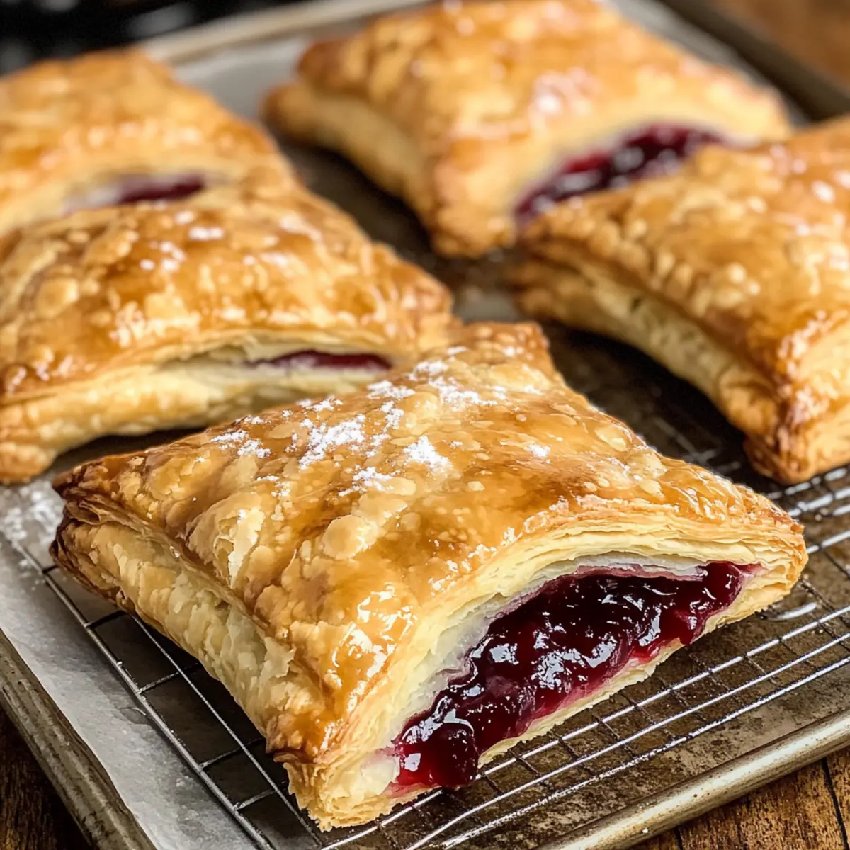 Einfachheit: Die Zubereitung der Kirschen Blätterteig-Taschen ist kinderleicht und benötigt nur wenige Zutaten. Schneller Genuss: In nur 30 Minuten hast du diese köstlichen Leckereien frisch aus dem Ofen. Vielseitigkeit: Diese Taschen eignen sich hervorragend als Frühstück, Snack oder Dessert, perfekt für jede Gelegenheit. Unvergleichlicher Geschmack: Die Kombination aus süßen Kirschen und buttrigem Teig sorgt für ein unvergessliches Geschmackserlebnis. Perfekte Textur: Außen knusprig und innen saftig – diese Taschen sind einfach unwiderstehlich! Du kannst sie sogar mit einer Kugel Eiscreme servieren für einen zusätzlichen Genuss.