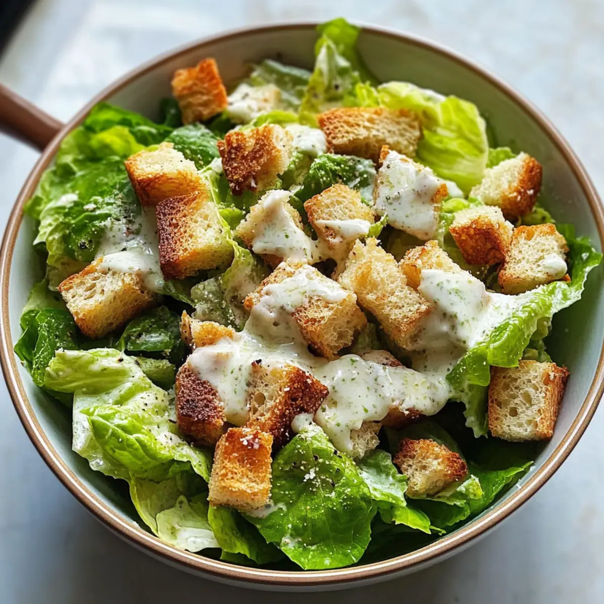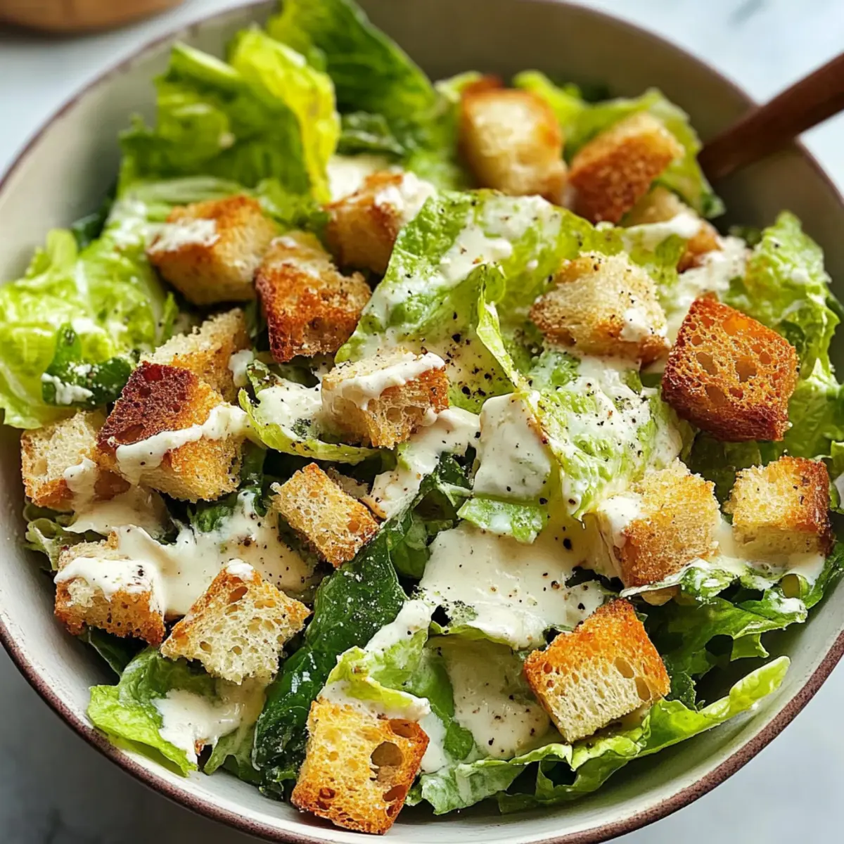 Der Duft von frisch gebackenem Brot mischt sich mit dem säuerlichen Aroma von Zitrone und dem herzhaften Hauch von Parmesan – das ist die perfekte Einladung zu einem unwiderstehlichen, selbstgemachten Klassiker. In diesem Rezept für den Klassischen Caesar-Salat mit hausgemachtem Dressing und knusprigen Croutons bringe ich euch die Leichtigkeit der italienischen Küche direkt nach Hause. Diese Variante ist nicht nur schnell zubereitet, sondern auch ein echter Publikumsliebling, der selbst die anspruchsvollsten Gaumen begeistert. Mit seiner knackigen Romaine und dem cremigen Dressing ist dieser Salat eine wunderbare Wahl für ein leichtes Mittagessen oder als Beilage zu jedem Festmahl. Bastelt ihr auch gerne in der Küche? Dann dürft ihr diese einfache, aber köstliche Kreation auf keinen Fall verpassen! Warum ist dieser Caesar-Salat besonders? Frische Zutaten: Dieser Salat wird mit knackigem Romaine-Salat zubereitet, der für ein erfrischendes Geschmackserlebnis sorgt. Hausgemacht: Das Dressing ist einfach zuzubereiten und benötigt nur wenige Zutaten, was es besonders frisch und aromatisch macht. Spezieller Crunch: Die knusprigen Croutons aus selbst gebackenem Brot bringen eine wunderbare Textur ins Spiel, die den Salat perfekt ergänzt. Vielfältig: Egal ob als leichtes Mittagessen oder Beilage – dieser Caesar-Salat passt zu jedem Anlass und kommt gut bei Gästen an. Für alle, die Abwechslung lieben, sind die Variationen, wie die Verwendung von vegetarischer Worcestershire-Sauce, eine tolle Möglichkeit, das Rezept anzupassen. Klassischer Caesar-Salat mit hausgemachtem Dressing Zutaten Für den Salat Romaine-Salat – sorgt für Knackigkeit und Frische; frische, ganze Blätter für beste Textur verwenden. Kruste Brot – schafft hausgemachte Croutons; am besten eignet sich altbackenes Brot für eine perfekte Knusprigkeit. Schwarzer Pfeffer (frisch gemahlen) – für die Würze; hebt den gesamten Geschmack hervor. Für die Croutons Extra natives Olivenöl – verleiht Geschmack und ist entscheidend für die Zubereitung der Croutons; hochwertiges Öl wird empfohlen. Meersalz – verstärkt alle Aromen; nach Geschmack anpassen. Für das Dressing Mayonnaise – bildet die Basis für das cremige Dressing und ist notwendig für den klassischen Geschmack. Zitronensaft – sorgt für eine frische Säure im Dressing; frisch gepresst ist am besten. Dijon-Senf – gibt dem Dressing Tiefe; je nach Geschmack anpassen. Knoblauch (gerieben) – trägt zum Geschmacksprofil des Dressings bei; frischer Knoblauch sorgt für das beste Ergebnis. Worcestershire-Sauce – liefert Komplexität und Umami; kann durch eine vegetarische Variante ersetzt werden. Parmesan-Käse (gerieben & gehobelt) – sorgt für einen reichen, nussigen Geschmack, der für einen Caesar-Salat unerlässlich ist. Dieser Klassische Caesar-Salat mit hausgemachtem Dressing und knusprigen Croutons wird bestimmt ein Hit in deiner Küche sein! Schritt-für-Schritt-Anleitung für den Klassischen Caesar-Salat mit hausgemachtem Dressing und knusprigen Croutons Step 1: Ofen vorheizen Heize den Ofen auf 180 °C vor und lege ein Backblech mit Backpapier aus. Das Backpapier sorgt dafür, dass die Croutons gleichmäßig gebräunt werden und nicht ankleben. Während der Ofen aufheizt, kannst du dich um die Zubereitung der Croutons kümmern. Step 2: Croutons vorbereiten Schneide das altbackene Brot in kleine Würfel und gebe sie in eine Schüssel. Beträufle die Brotwürfel mit extra nativem Olivenöl und streue eine Prise Meersalz darüber. Mische alles gut durch, sodass die Würfel gleichmäßig mit Öl und Salz bedeckt sind. Verteile das gesalzene Brot gleichmäßig auf dem vorbereiteten Backblech. Step 3: Croutons backen Schiebe das Backblech in den vorgeheizten Ofen und backe die Croutons 10 bis 18 Minuten lang, bis sie goldbraun und knusprig sind. Achte darauf, die Croutons nach der Hälfte der Zeit einmal umzurühren, damit sie gleichmäßig bräunen. Nach dem Backen nimm das Blech heraus und lasse die Croutons abkühlen. Step 4: Dressing zubereiten Während die Croutons abkühlen, kannst du das hausgemachte Dressing für den Klassischen Caesar-Salat vorbereiten. In einer Schüssel verrühre Mayonnaise, Olivenöl, frisch gepressten Zitronensaft, Dijon-Senf, geriebenen Knoblauch, Worcestershire-Sauce, eine Prise Meersalz und frisch gemahlenen schwarzen Pfeffer. Mische alles gut, bis eine cremige und glatte Konsistenz entsteht. Step 5: Parmesan einrühren Füge nun den geriebenen Parmesan zur Dressing-Mischung hinzu. Rühre den Käse sorgfältig unter das Dressing und passe die Konsistenz nach Wunsch an, indem du gegebenenfalls etwas Wasser hinzufügst. Das Dressing sollte geschmeidig sein und gut an den Romaine-Blättern haften. Step 6: Salat anrichten In einer großen Schüssel oder einem Holzsalatkorb die grob zerrissenen Romaine-Salatblätter, die Hälfte des Dressings, die Hälfte der knusprigen Croutons und die Hälfte des gehobelten Parmesans miteinander vermengen. Achte darauf, alles sanft zu vermischen, sodass der Salat gleichmäßig mit Dressing bedeckt ist. Step 7: Garnieren & Servieren Toppe den Salat mit den verbleibenden Croutons und gehobeltem Parmesan für zusätzlichen Geschmack und eine schöne Präsentation. Wenn gewünscht, füge ein paar extra Parmesan-Späne oder gehackte Petersilie für einen Farbkontrast hinzu. Serviere den Klassischen Caesar-Salat sofort, um die frische und Knusprigkeit der Zutaten zu gewährleisten. Meal Prepping für den Klassischen Caesar-Salat mit hausgemachtem Dressing und knusprigen Croutons Die Zubereitung des Klassischen Caesar-Salats mit hausgemachtem Dressing und knusprigen Croutons ist ideal für alle, die ihre Mahlzeiten im Voraus planen möchten! Du kannst die Croutons bis 3 Tage im Voraus zubereiten und in einem luftdichten Behälter aufbewahren, um ihre Knusprigkeit zu bewahren. Das Dressing kannst du ebenfalls bis zu 5 Tage im Kühlschrank aufbewahren; achte darauf, es gut umzurü