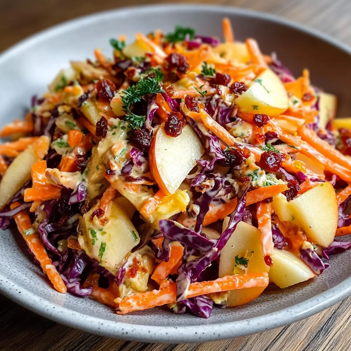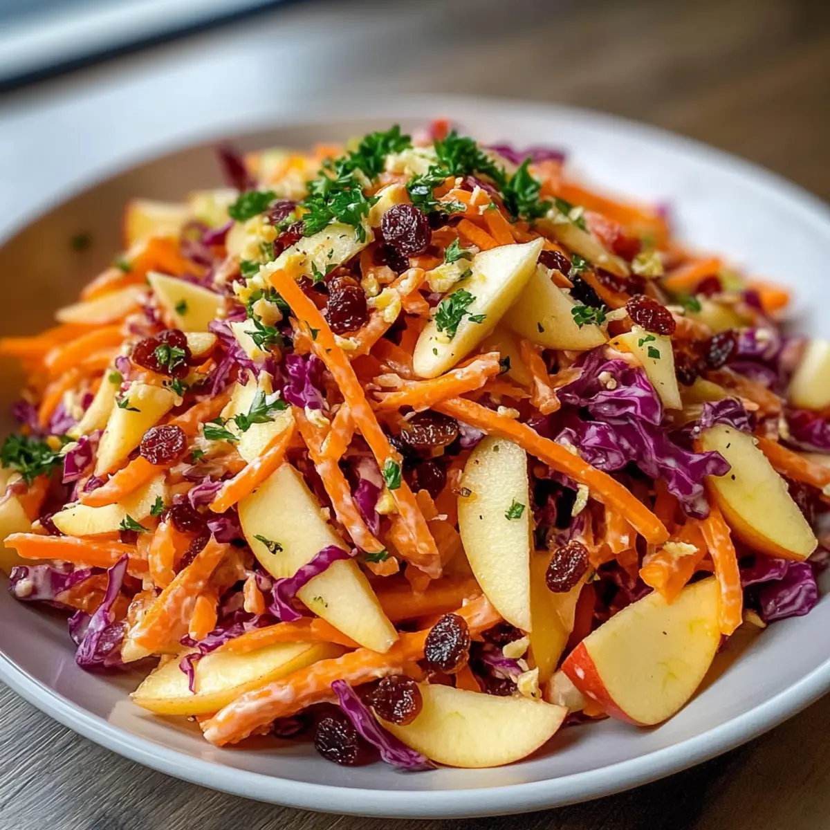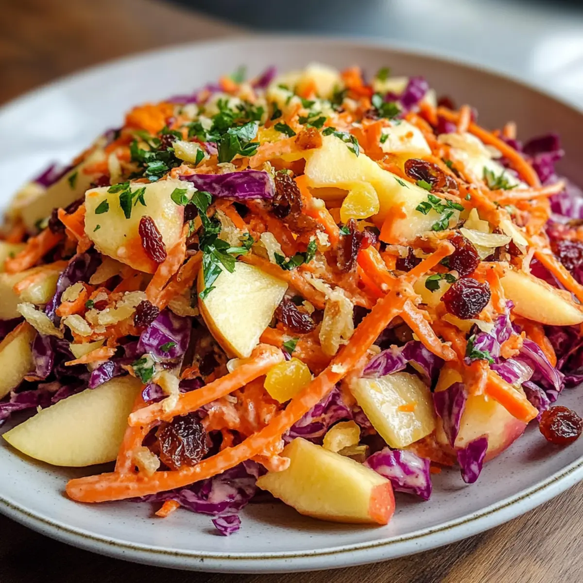 Wenn ich diesen knackigen Apfel-Möhren-Salat mit cremigem Zitrusdressing zubereite, verwandelt sich meine Küche in eine Farbenpracht! Die süßen Äpfel begegnen den erdigen Möhren und das Ergebnis ist nicht nur ein Genuss fürs Auge, sondern auch ein Fest für die Sinne. Diese erfrischende und nahrhafte Beilage lässt sich schnell zubereiten, perfekt für hektische Wochentage oder feierliche Zusammenkünfte. Mit einer köstlichen Kombination aus knackigen Texturen und einem cremigen Dressing, das einen Hauch von Zitrusfrische mit sich bringt, ist es kein Wunder, dass dieser Salat bei meinen Gästen immer gut ankommt. Wer kann bei so viel Geschmack und gesundem Genuss schon widerstehen? Bist du bereit, deine nächste Mahlzeit mit diesem einfachen Rezept aufzuwerten? Warum ist dieser Salat unwiderstehlich? Farbenfroh und einladend: Die leuchtenden Farben des knackigen Apfel-Möhren-Salats machen jeden Tisch lebendiger. Gesunde Zutaten: Mit frischen Äpfeln und Karotten bietet dieser Salat eine nährstoffreiche Option für alle, die ihre Ernährung verbessern wollen. Schnell zubereitet: In weniger als 20 Minuten hast du eine köstliche Beilage, die perfekt in deinen Wochenalltag passt. Cremiges Dressing: Die Kombination aus griechischem Joghurt und Zitrussaft bringt eine wunderbare Frische, die den Geschmack hebt. Vielseitig einsetzbar: Egal ob als Beilage zu Grillgerichten oder als Teil eines Buffet, dieser Salat ist immer ein Hit. Besonderer Crunch: Die Nüsse fügen nicht nur Geschmack hinzu, sondern sorgen auch für den perfekten Biss, der Gäste begeistert. Knackiger Apfel-Möhren-Salat Zutaten • Hier findest du alles, was du brauchst! Für den Salat Karotten – sorgen für einen süßen, erdigen Crunch und sind reich an Ballaststoffen. Äpfel (Granny Smith oder Honeycrisp) – bringen Süße und Frische; wähle knackige Sorten für optimalen Geschmack. Roter Kohl – fügt leuchtende Farbe und eine robuste Textur hinzu, die das Knusprige verstärkt. Trockenfrüchte (Rosinen oder Cranberries) – sorgen für süße und herzhafte Geschmackserlebnisse in jedem Bissen. Nüsse (Walnüsse oder Pekannüsse) – bieten einen reichhaltigen, nussigen Geschmack und zusätzlichen Crunch. Frische Petersilie – balanciert die Cremigkeit des Dressings und bringt eine frische Note ins Spiel. Für das Dressing Griechischer Joghurt – bildet die cremige Basis und fügt Protein hinzu, während er die Säure ausgleicht. Mayonnaise – erhöht die Cremigkeit und lässt das Dressing wunderbar am Salat haften. Frischer Orangensaft – bringt eine süße Zitrusnote, die das Dressing aufhellt und perfektioniert. Zitronensaft – fügt eine spritzige Säure hinzu, die die Frische der Zutaten verstärkt. Honig – balanciert die Tartheit und Süße des Dressings für einen runden Geschmack. Salz und Pfeffer – unverzichtbare Gewürze, die den Geschmack des Salats intensivieren. Schritt-für-Schritt-Anleitung für den Knackigen Apfel-Möhren-Salat mit cremigem Zitrusdressing Step 1: Karotten reiben Beginne damit, die geschälten Karotten mit einer Reibe in eine große Schüssel zu reiben. Achte darauf, dass die Karotten fein gerieben werden, damit sie gut mit den anderen Zutaten vermischt werden können. Das wird etwa 5 Minuten in Anspruch nehmen und sorgt für den süßen, erdigen Crunch, der die Basis für deinen knackigen Apfel-Möhren-Salat bildet. Step 2: Äpfel schälen und würfeln Entferne das Kerngehäuse der Äpfel und schneide sie sofort in kleine Würfel. Füge die Apfelschnitze direkt in die Schüssel mit den geriebenen Karotten hinzu, um ein Dunkelwerden zu verhindern. Wähle knackige Sorten wie Granny Smith oder Honeycrisp für den besten Geschmack. Dieser Schritt dauert etwa 3 Minuten und verleiht dem Salat eine erfrischende Süße. Step 3: Rotkohl und andere Zutaten hinzufügen Schneide den roten Kohl in feine Streifen und gebe ihn zusammen mit deinen Trockenfrüchten, Nüssen und der frischen Petersilie in die Schüssel. Diese Zutaten sorgen für eine zusätzliche Textur und Farbenpracht im Knackigen Apfel-Möhren-Salat. Dieser Schritt nimmt etwa 5 Minuten in Anspruch und sorgt für einen kräftigen, nahrhaften Crunch. Step 4: Dressing zubereiten In einer separaten Schüssel vermische den griechischen Joghurt, die Mayonnaise, den frischen Orangensaft, den Zitronensaft, den Honig, Salz und Pfeffer. Mit einem Schneebesen alles gut verrühren, bis eine glatte Konsistenz erreicht ist. Dieser Vorgang dauert 2–3 Minuten und das cremige Dressing wird eine herrlich erfrischende Note zu deinem Salat hinzufügen. Step 5: Dressing hinzufügen und vermengen Gieße das cremige Zitrusdressing über die Mischung aus Karotten, Äpfeln, Rotkohl und anderen Zutaten in der großen Schüssel. Verwende zwei große Löffel, um alles vorsichtig zusammenzufügen, bis alle Teile gleichmäßig mit dem Dressing bedeckt sind. Diese Mischung sollte etwa 2 Minuten in Anspruch nehmen und sorgt dafür, dass der Knackige Apfel-Möhren-Salat perfekt harmoniert. Step 6: Abschmecken und kühlen Schmecke den Salat ab und füge bei Bedarf mehr Salz oder Pfeffer hinzu. Decke die Schüssel ab und stelle den Salat für etwa 15 Minuten in den Kühlschrank. Diese Zeit ermöglicht es allen Aromen, sich zu entfalten und miteinander zu verbinden, was den Genuss deines knackigen Apfel-Möhren-Salats mit cremigem Zitrusdressing intensiviert. Step 7: Servieren Sobald der Salat gut durchgezogen ist, serviere ihn kalt oder bei Zimmertemperatur. Garniere ihn optional mit zusätzlichen Nüssen oder frischer Petersilie, um ihm den letzten Schliff zu geben. Diese Präsentation wird nicht nur deine Gäste beeindrucken, sondern auch eine wunderbare Ergänzung zu deiner Mahlzeit darstellen. Aufbewahrungstipps für den Knackigen Apfel-Möhren-Salat Kühlschrank: Bewahre den Salat in einem luftdichten Behälter auf und genieße ihn innerhalb von 1 Tag für die beste Frische und Knackigkeit. Nüsse: Füge die Nüsse erst kurz vor dem Serviere