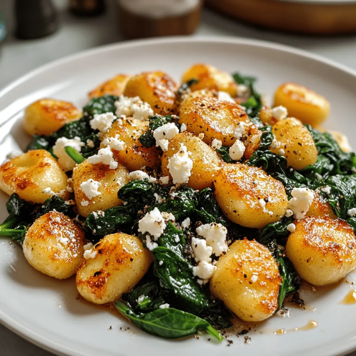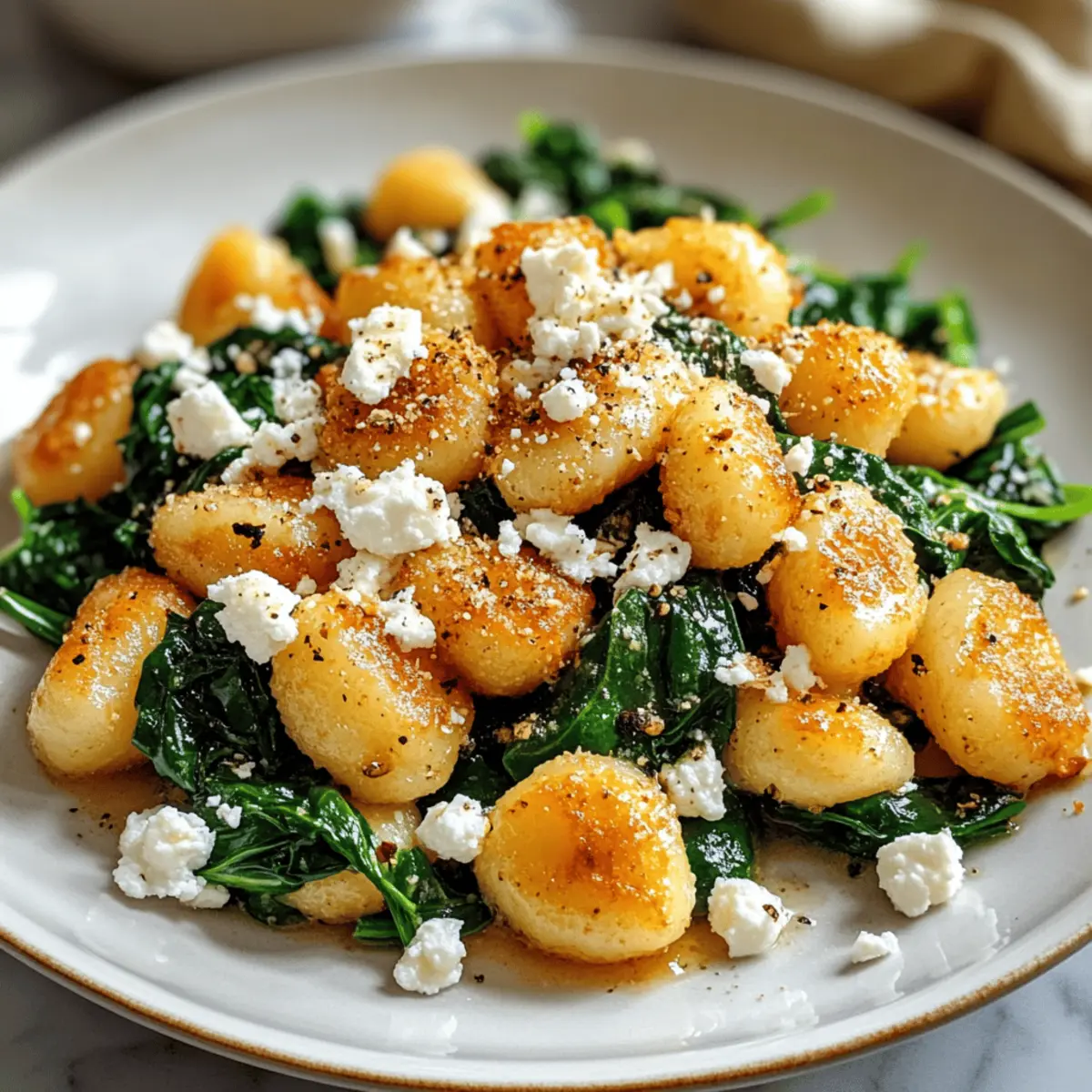 Knusprige Gnocchi mit Spinat und Feta für den Genuss