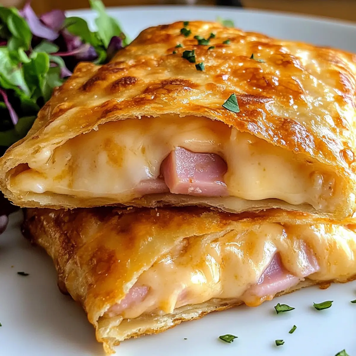 Entdecke die köstlichen Knusprigen Schinken-Käse-Taschen, die schnell zubereitet sind und ideal als Snack oder Mittagessen dienen.