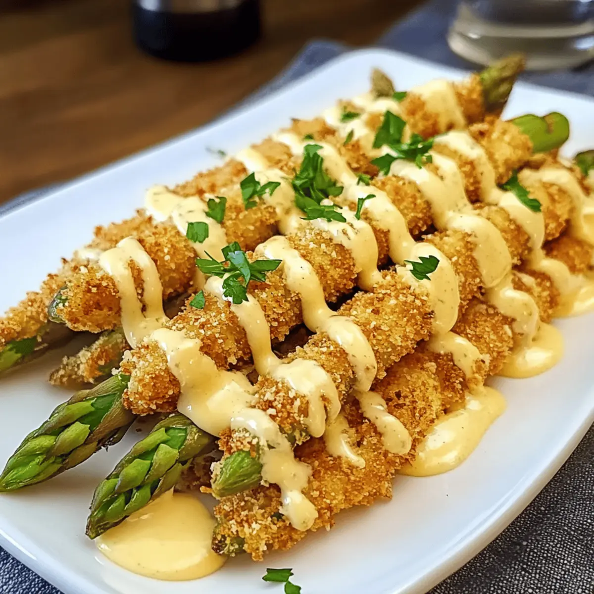 Als ich neulich durch den Markt schlenderte, wurde ich von dem frischen, frühlingshaften Duft von Spargel angezogen und wusste sofort, dass ich ein Gericht zaubern musste, das diesen Geschmack perfekt einfängt. Heute möchte ich mit euch das Rezept für knusprigen Spargel mit Parmesanpanade teilen – ein unglaublich köstliches Gericht, das nicht nur einfach zuzubereiten ist, sondern auch als perfekter Fingerfood-Genuss dient. Die Kombination aus der knusprigen Kruste und dem zarten Spargelinneren wird euch begeistern! Ob als Appetizer, Snack oder Beilage – dieses Gericht ist der Star eurer nächsten Frühlingsfeier und hebt sich mit seiner Vielseitigkeit von der schnellen Küche ab. Bereit, eure Küche in ein kleines Spargelparadies zu verwandeln? Warum werden Sie dieses Rezept lieben? Köstlicher Genuss: Die Kombination aus knusprigem Pankobrot und savory Parmesan schafft einen unwiderstehlichen Geschmack, der jeden Biss zu einem Festmahl macht. Schnell und einfach: In nur wenigen Schritten können Sie dieses Gericht zubereiten, perfekt für vielbeschäftigte Tage oder spontane Gäste. Flexibilität: Ob im Airfryer oder im Ofen – Sie haben die Freiheit, je nach Vorliebe zu wählen und dennoch beste Ergebnisse zu erzielen. Vielfalt: Als Fingerfood oder Beilage passt dieser Spargel zu vielen Gerichten und erfreut die Herzen Ihrer Familie und Freunde. Frühlingsfrische: Das Rezept fängt die Essenz des Frühlings ein und bringt einen leichten, gesunden Geschmack auf den Tisch, der gleichsam befriedigend wie nahrhaft ist. Knuspriger Spargel Zutaten • Entdecken Sie die köstlichen Zutaten für knusprigen Spargel mit Parmesanpanade! 500 g Weißer Spargel: – Der Hauptbestandteil, der das Gemüsegerüst bildet. Achten Sie darauf, die holzigen Enden gleichmäßig abzuschneiden. 2 Eier: – Dienen als Bindemittel für die Panade. Sie können auch ein Flax- oder Chia-Ei als vegane Alternative verwenden. 100 g Mehl: – Bildet die erste Schicht der Panade, damit das Ei besser am Spargel haftet. Glutenfreies Mehl kann ebenfalls verwendet werden. 100 g Panko (oder normales Paniermehl): – Sorgt für zusätzliche Knusprigkeit der Panade. Panko bietet die beste Textur; alternatives Paniermehl kann bei Bedarf genutzt werden. 100 g Parmesan (gerieben): – Verleiht der Kruste einen herzhaften, nussigen Geschmack. Ersetzen Sie ihn durch eine pflanzliche Parmesan-Variante für eine milchfreie Option. Salz & Pfeffer: – Fördert den Gesamtgeschmack. Nach Geschmack anpassen. Sauce Hollandaise: – Eine reichhaltige, cremige Sauce, die perfekt zu dem Spargel passt. Für mehr Komfort können Sie auch eine Fertigversion verwenden. Frische Petersilie (gehackt): – Zur Garnitur. Frische Kräuter bringen Farbe und Frische auf den Teller. Schritt-für-Schritt-Anleitung für Knuspriger Spargel mit Parmesanpanade Step 1: Spargel vorbereiten Zuerst den weißen Spargel gründlich schälen und die holzigen Enden abschneiden. Achten Sie darauf, dass der Spargel gleichmäßig geschält wird, damit er beim Kochen eine gleichmäßige Textur erhält. Sobald der Spargel vorbereitet ist, legen Sie ihn beiseite und kümmern sich um die Panade. Step 2: Panierstation einrichten Richten Sie Ihre Panierstation ein, indem Sie drei Schalen vorbereiten. Geben Sie das Mehl in die erste Schale, die geschlagenen Eier, gewürzt mit Salz und Pfeffer, in die zweite und eine Mischung aus Panko und geriebenem Parmesan in die dritte Schale. Diese Kombination ist die Grundlage für die köstliche Kruste des Knusprigen Spargels mit Parmesanpanade. Step 3: Spargel panieren Nehmen Sie jeden Spargelstängel und wälzen Sie ihn zuerst im Mehl, bis er vollständig bedeckt ist. Dann tauchen Sie ihn in die Ei-Mischung und lassen das überschüssige Ei abtropfen. Zuletzt wälzen Sie den Spargel in der Panko-Parmesan-Mischung, sodass er gleichmäßig und dick bedeckt ist. Dieser Schritt sorgt für die aromatische und knusprige Kruste. Step 4: Kochoptionen vorbereiten Wählen Sie Ihre bevorzugte Kochmethode: Für den Airfryer heizen Sie das Gerät auf 200 °C vor. Wenn Sie den Ofen verwenden möchten, heizen Sie ihn ebenfalls auf 200 °C vor und legen Sie ein Backblech mit Backpapier aus, um ein Anhaften zu verhindern. Beide Methoden sind perfekt für das Knusprige Spargel mit Parmesanpanade. Step 5: Spargel garen Legen Sie die panierten Spargelstängel im Airfryer in einer einzigen Schicht aus und garen Sie sie 13 bis 20 Minuten lang, bis sie goldbraun und knusprig sind. Für den Ofen legen Sie die Stängel auf das vorbereitete Backblech, träufeln Sie etwas Öl darüber und backen Sie sie 15 bis 20 Minuten lang, bis sie eine schöne Kruste haben. Beobachten Sie die Farbe, um den idealen Gargrad zu erreichen. Step 6: Anrichten und Servieren Nach dem Garen nehmen Sie den Knusprigen Spargel mit Parmesanpanade vorsichtig aus dem Airfryer oder Ofen und lassen ihn kurz abkühlen. Anrichten Sie die köstlichen Spargelstängel auf einem Teller und träufeln Sie die warme Hollandaise darüber. Garnieren Sie das Gericht mit frisch gehackter Petersilie, um eine frische Note hinzuzufügen und servieren Sie es warm als perfekten Snack oder Fingerfood. Variationen zum knusprigen Spargel mit Parmesanpanade Entdecken Sie kreative Anpassungen für dieses Rezept, um es nach Ihrem Geschmack zu gestalten! Vegan: Ersetzen Sie die Eier durch ein Flachs- oder Chia-Ei und nutzen Sie veganen Parmesan. So bleibt das Gericht pflanzlich und lecker. Würzig: Fügen Sie eine Prise Cayennepfeffer oder geräuchertes Paprikapulver zur Panade hinzu, um einen scharfen Kick zu verleihen. Jeder Biss wird aufregender! Käsevielfalt: Experimentieren Sie mit anderen Käsesorten wie Gruyère oder Cheddar für zusätzliche Geschmacksrichtungen. Es ist erstaunlich, wie der Käse das Aroma bereichert. Kräuterfrisch: Mischen Sie getrocknete italienische Kräuter in die Panade, um einen mediterranen Flair zu erzeugen. Das verleiht dem Gericht eine völlig neue Dimension. Zitronenfri