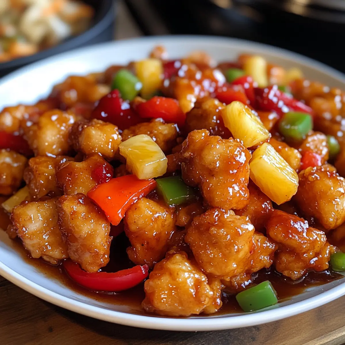 In einem kleinen Restaurant, das ich kürzlich besucht habe, entdeckte ich ein Gericht, das sofort meine Aufmerksamkeit erregte: knuspriges süß-saures Huhn. Der Mix aus perfekt frittiertem Huhn und einer fruchtig-sauren Sauce war einfach unwiderstehlich! Diese Rezeptur bringt genau diese Aromen mit nach Hause und sorgt dafür, dass du in nur 35 Minuten etwas Köstliches zaubern kannst. Egal, ob du das Rezept klassisch mit Huhn, oder kreativ mit Garnelen oder Tofu umsetzt, dieser Genuss ist nicht nur schnell zubereitet, sondern auch anpassbar an deinen persönlichen Geschmack. Stell dir vor, wie diese Kombination aus knusprigem Hühnerfleisch und frischen Ananasstückchen in deiner Küche entsteht – ein echtes Highlight für jedes Abendessen! Neugierig, wie du das perfekte süß-saure Erlebnis auf den Tisch bringst? Warum du dieses Rezept lieben wirst Einfachheit, die begeistert: Die Zubereitung ist unkompliziert und benötigt keine speziellen Kochkünste, sodass du in kürzester Zeit zum Ziel kommst. Wunderbare Aromen: Die Mischung aus fruchtiger Ananas und der süß-sauren Sauce sorgt für ein Geschmackserlebnis, das dich sofort in den Bann ziehen wird. Vielseitigkeit auf dem Teller: Egal, ob du Huhn, Garnelen oder Tofu verwendest – das Rezept lässt sich ganz nach deinen Vorlieben anpassen. Schnell und praktisch: In nur 35 Minuten hast du ein leckeres Essen, das perfekt für ein schnelles Abendessen unter der Woche oder für Gäste ist. Ein Hit bei allen: Dieses Gericht wird sowohl Kinder als auch Erwachsene begeistern, sodass es ideal für Familienessen oder gesellige Abende ist. Wenn du nach weiteren Ideen suchst, wie du dein knuspriges süß-saures Huhn mit Beilagen kombinieren kannst, schau dir unsere Serviervorschläge an! Knuspriges süß-saures Huhn Zutaten • Dieses Rezept bietet alle notwendigen Zutaten für ein köstliches und anpassbares Gericht! Für das Huhn Hähnchenbrust – Hauptprotein, bietet die perfekte Textur und Saftigkeit. Maisstärke – Sorgt für eine knusprige Hülle; unerlässlich beim Frittieren. Eier – Binden die Maisstärke am Hähnchen und helfen, eine knusprige Kruste zu erreichen. Öl (zum Frittieren) – Hoch erhitzbares Öl wie Pflanzen- oder Erdnussöl sorgt für ein optimales Frittierergebnis. Für die Sauce Frische Ananas – Bringt natürliche Süße; frische Ananas hat einen intensiveren Geschmack als die aus der Dose. Paprika (rot/grün) – Fügt Farbe und Knusprigkeit hinzu; kann mit anderen Gemüsesorten wie Karotten ersetzt werden. Sojasauce – Sorgt für Umami; wähle eine natriumarme Variante für eine gesündere Option. Zucker – Balanciert die Säure; kann durch Honig oder Agavendicksaft ersetzt werden, um eine andere Süße zu entwickeln. Essig (weiß oder Reis) – Verleiht dem Gericht die nötige Säure; Reisessig hat einen milderen Geschmack. Chiliflocken oder Sriracha (optional) – Für zusätzliche Schärfe; je nach Vorliebe anpassen. Neugierig auf die Zubereitung? Lass uns gemeinsam dein knuspriges süß-saures Huhn zum Leben erwecken! Schritt-für-Schritt-Anleitung für Knuspriges süß-saures Huhn Step 1: Hähnchen vorbereiten Schneide die Hähnchenbrust in mundgerechte Stücke. In einer Schüssel mische die Maisstärke mit den verquirlten Eiern, bis eine gleichmäßige Masse entsteht. Tauche jedes Hähnchenstück zuerst in die Mischung und sorge dafür, dass es gut ummantelt ist. Der nächste Schritt bezieht sich auf das Frittieren, also bereite dein Öl vor, während die Hähnchenstücke ruhen. Step 2: Hähnchen frittieren Erhitze in einer tiefen Pfanne pflanzliches oder Erdnussöl auf etwa 180 Grad Celsius. Frittiere die Hähnchenstücke in kleinen Portionen für etwa 4–5 Minuten, bis sie goldbraun und knusprig sind. Achte darauf, dass das Öl heiß genug ist, damit die Stücke nicht im Öl schwimmen. Nimm die fertigen Stücke heraus und lasse sie auf Küchenpapier abtropfen, um überschüssiges Öl zu entfernen. Step 3: Sauce vorbereiten In einer separaten Pfanne erhitze bei mittlerer Hitze 100 ml Wasser, 4 Esslöffel Zucker und 100 ml Sojasauce. Gib 3 Esslöffel Essig dazu und bringe die Mischung zum Köcheln. Rühre die Zutaten gut um, bis sich der Zucker vollständig aufgelöst hat. Achte darauf, die Sauce nicht zu lange zu kochen, damit sie nicht zu dick wird. Step 4: Ananas und Paprika hinzufügen Füge der Sauce 200 g gewürfelte frische Ananas und 1–2 Paprika (rot oder grün) hinzu. Koche alles zusammen für etwa 3–4 Minuten, bis die Paprika leicht weich wird und die Ananas den Geschmack der Sauce annimmt. Rühre gelegentlich um, damit nichts anbrennt und die Aromen gut verschmelzen. Step 5: Hähnchen kombinieren Sobald die Sauce gut gekocht ist, füge das knusprige Hähnchen hinzu und rühre um, damit es gleichmäßig mit der Sauce überzogen wird. Lasse das Ganze für weitere 1–2 Minuten auf dem Herd, bis das Hähnchen vollständig durchgewärmt ist. Achte darauf, dass die Sauce nicht zu dick wird; sie sollte leicht fließen, wenn du sie servierst. Step 6: Anrichten Jetzt ist dein Knuspriges süß-saures Huhn bereit zum Servieren! Übertrage das Gericht auf eine große Platte oder in eine Schüssel und garniere es nach Belieben mit frischen Frühlingszwiebeln oder Sesam. Serviere es heiß, idealerweise zusammen mit gedämpftem Reis oder gebratenen Nudeln für ein rundum tolles Geschmackserlebnis. Variationen für knuspriges süß-saures Huhn Lass deiner Kreativität freien Lauf und passe das Rezept nach deinem Geschmack an – die Möglichkeiten sind nahezu unbegrenzt! Meeresfrüchte: Ersetze das Huhn durch Garnelen für einen leckeren Meeresgeschmack. Einfach die Garnelen kurz frittieren und wie im Rezept beschrieben verfahren. Vegetarisch: Tausche das Huhn gegen Tofu aus. Den Tofu in mundgerechte Stücke schneiden, vorher mariniert und dann frittieren, um noch mehr Geschmack zu erzielen. Zusätzliche Gemüse: Füge frische Erbsenschoten oder Brokkoli hinzu. Einfach in der Sauce mitköcheln las