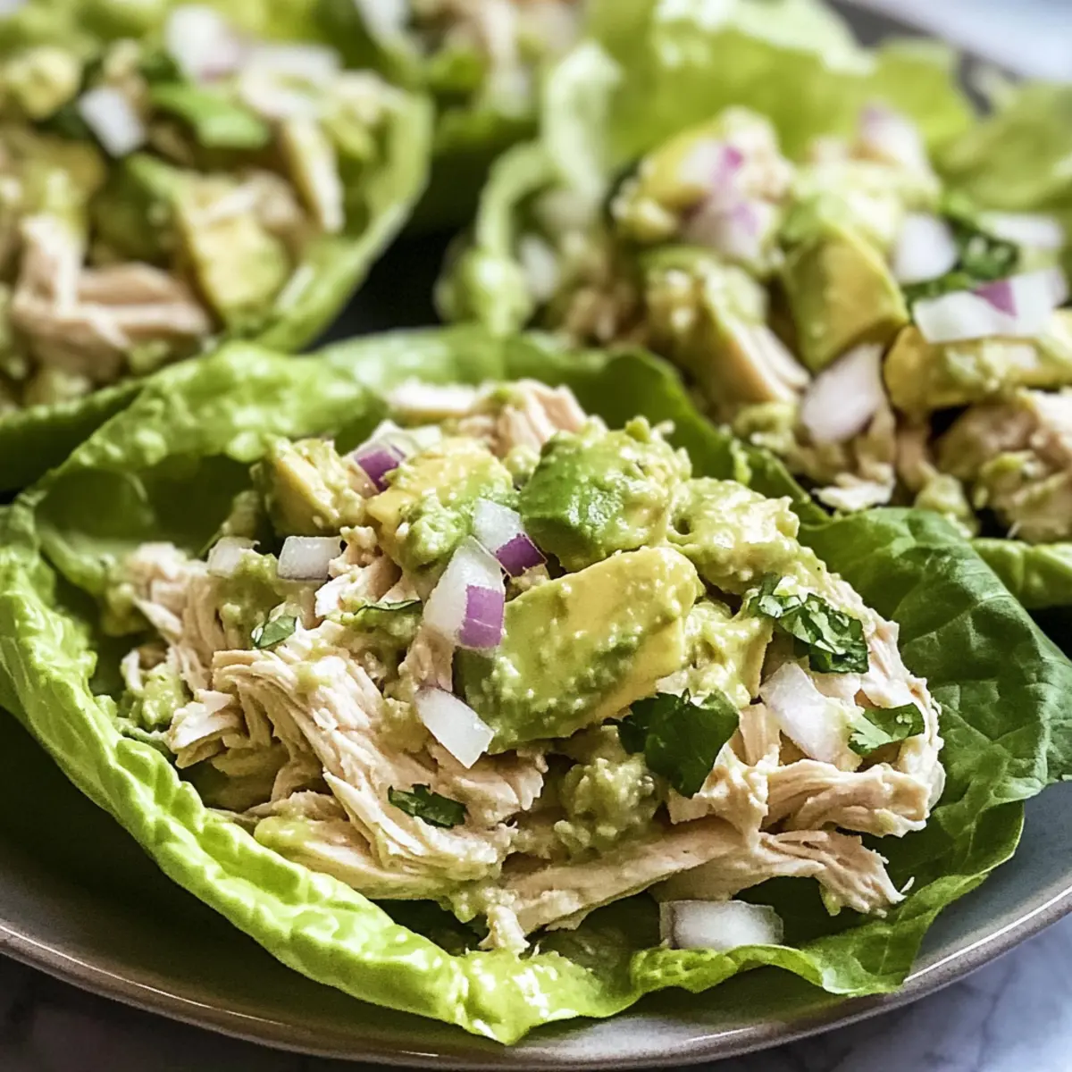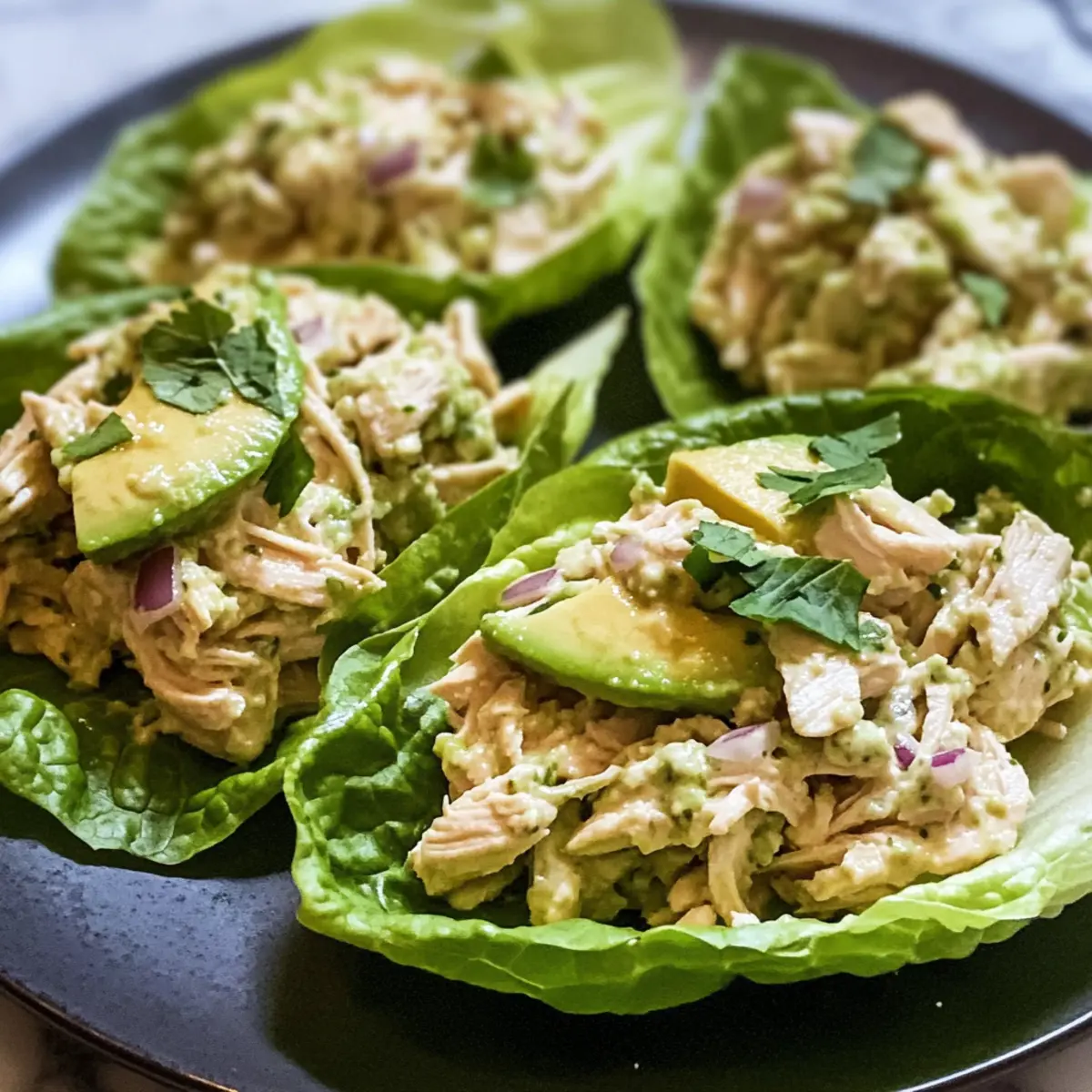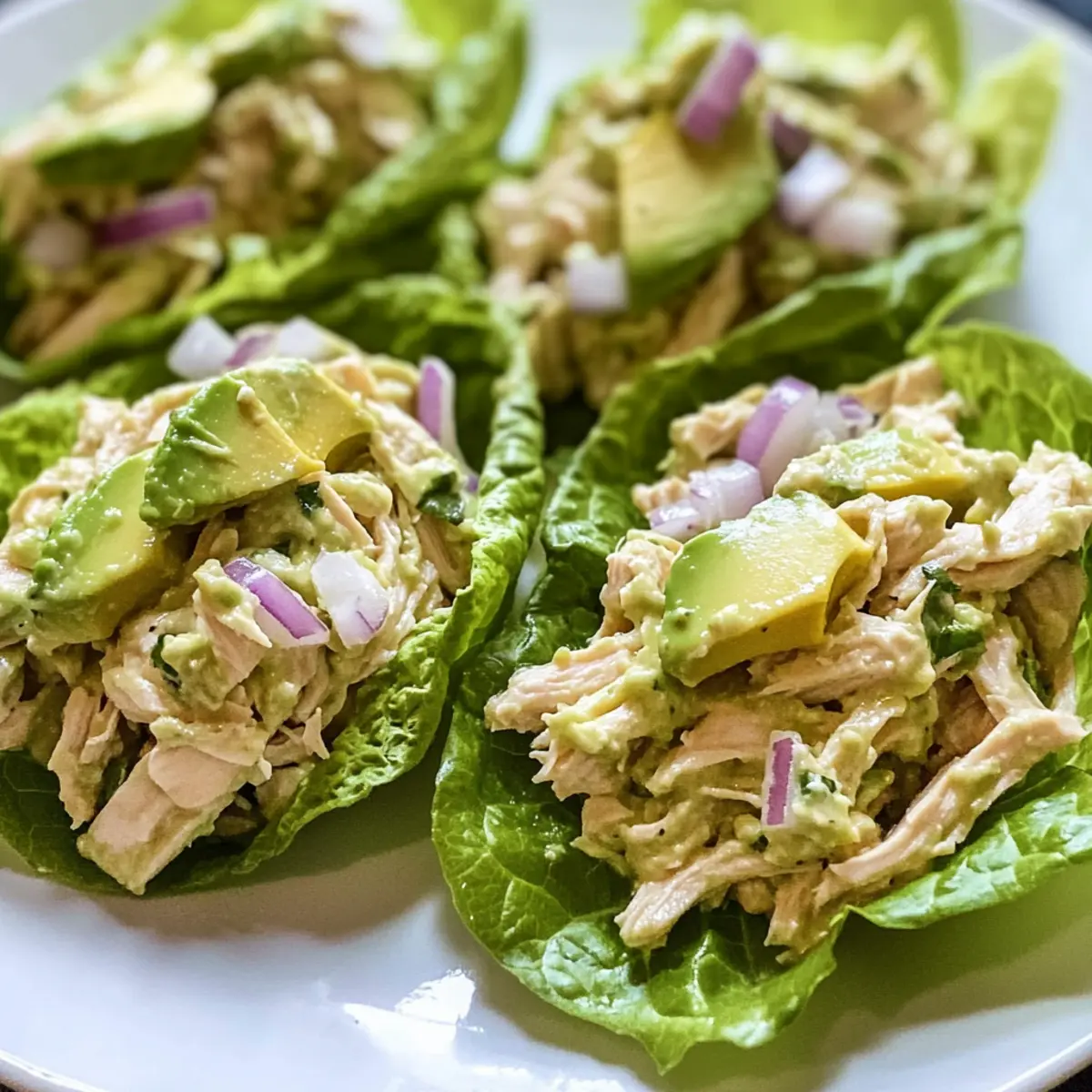 Im stressigen Alltag erlebe ich oft ein wahres Geschmacksabenteuer in der Küche. Heute lade ich euch ein, mit mir in die Welt der Köstlichen Avocado-Hühnchen-Salat-Salatwickel für schnelle Snacks einzutauchen. In nur 10 Minuten zubereitet, vereinen diese Wraps zarte Hühnchenstücke und cremige Avocados in einem knackigen Salatblatt, perfekt für ein schnelles Mittagessen oder leichte Abendessen. Die Kombination aus frischen Zutaten macht dieses Gericht nicht nur zu einem wahren Genuss, sondern auch zu einer kohlenhydratarmen, gesunden Wahl, die sich wunderbar in einen aktiven Lebensstil integriert. Diese Wraps sind nicht nur einfach zuzubereiten, sondern auch unglaublich vielseitig – ihr könnt sie nach Belieben mit anderen Proteinquellen verfeinern. Seid ihr bereit, diese erfrischenden Snacks zu entdecken und dabei eure Geschmacksnerven zu verwöhnen? Warum sind diese Wraps so beliebt? Köstliche Avocado-Hühnchen-Salat-Wraps sind die perfekte Lösung für alle, die eine gesunde und schnelles Mahlzeit suchen. Einfach zuzubereiten, in nur 10 Minuten stehen diese Wraps auf dem Tisch! Vielseitig wie sie sind, könnt ihr das Hühnchen leicht gegen Thunfisch oder Pute austauschen. Frische Zutaten sorgen für ein aufregendes Geschmackserlebnis, das nicht nur euch, sondern auch eure Gäste begeistern wird. Und nicht zu vergessen: sie sind glutenfrei und passen perfekt zu einer ketogenen Ernährung, was sie zu einer hervorragenden Wahl für ernährungsbewusste Genießer macht. Wenn ihr auf der Suche nach weiteren schnellen Rezepten seid, probiert doch auch mal die Buffalo Drumsticks Leckere oder die Zucchini Rolls Ofen! Köstliche Avocado-Hühnchen-Salat-Wraps Zutaten Für den Salat Zerfleddertes Hühnchen – Eine schnelle Proteinquelle, perfekt für den herzhaften Geschmack. Naturjoghurt – Fügt Cremigkeit hinzu und reduziert die Kalorien; kann durch fettarmen Joghurt ersetzt werden. Mayonnaise – Verbessert den Geschmack und die Textur; je nach Vorliebe anpassen. Fein gehackte Zwiebeln – Bringt Crunch und Aroma; für einen milderen Geschmack eignen sich Frühlingszwiebeln oder Schalotten. Zitronensaft – Sorgt für Frische und Säure, frisch gepresst ist am besten. Salz & Pfeffer – Unverzichtbar für die Würze, um die Aromen zu intensivieren. Reife Avocados – Fügt cremige Textur und gesunde Fette hinzu; für den besten Geschmack sollten sie echt reif sein. Für die Wraps Römersalat oder Bibb-Lettuce – Dient als Wrap; auch Butter-Lettuce kann für ein anderes Geschmacksprofil verwendet werden. Schritt-für-Schritt-Anleitung für Köstliche Avocado-Hühnchen-Salat-Wraps für schnelle Snacks Step 1: Hühnchen und Dressing vermengen In einer großen Schüssel das zerfledderte Hühnchen, Naturjoghurt und Mayonnaise gründlich vermischen, bis eine cremige Textur entsteht. Nutze eine Gabel, um Klumpen zu zerdrücken und eine gleichmäßige Verteilung zu gewährleisten. Dieser Schritt sollte etwa 2-3 Minuten in Anspruch nehmen und sorgt dafür, dass die Basis für die Köstlichen Avocado-Hühnchen-Salat-Wraps schön geschmeidig wird. Step 2: Mit Gewürzen abschmecken Füge nun eine Prise Salz und frisch gemahlenen Pfeffer hinzu, nachdem du die Mischung gut probiert hast. Schmecke das Dressing an und passe es nach Belieben an. Achte darauf, dass die Aromen gut balanciert sind – das macht den Unterschied. Dieser Schritt sollte nur etwa 1-2 Minuten dauern, ist jedoch entscheidend für den Geschmack deiner Wraps. Step 3: Avocados vorsichtig einarbeiten Halbiere die reifen Avocados, entferne den Kern und extrahiere das Fruchtfleisch, indem du es mit einem Löffel herauslöffelst. Schneide das Fruchtfleisch in kleine Würfel und hebe sie vorsichtig unter die Hühnchenmischung, um deren Stückigkeit zu bewahren. Dies dauert etwa 2 Minuten und sorgt für die cremige Textur, die die Köstlichen Avocado-Hühnchen-Salat-Wraps so besonders macht. Step 4: Salatblätter vorbereiten Nun ist es an der Zeit, die Römersalat- oder Bibb-Lettuce-Blätter vorzubereiten. Spüle die Blätter gründlich unter kaltem Wasser ab und tupfe sie dann mit einem Küchentuch trocken, um sicherzustellen, dass sie knusprig und frisch bleiben. Dieser Schritt sollte maximal 3 Minuten in Anspruch nehmen, da frische Blätter die Struktur deiner Wraps unterstützen. Step 5: Füllen und rollen Löffle etwa 2-3 Esslöffel der Hühnchen-Avocado-Mischung in das Salatblatt, je nach Größe der Blätter und nach persönlichem Geschmack. Falt die Seiten des Blattes über die Füllung und rolle es auf, um eine sichere Wicklung zu gewährleisten. Dieser Schritt ist schnell erledigt, sollte jedoch etwa 2 Minuten in Anspruch nehmen, um sicherzustellen, dass die Füllung gut eingewickelt ist. Step 6: Servieren und genießen Die fertigen Köstlichen Avocado-Hühnchen-Salat-Wraps sofort servieren, um die frische Knackigkeit des Lattes zu genießen. Als Garnierung kannst du Zitronenschnitze oder frische Kräuter verwenden, um das Gericht zu verfeinern. Diese abschließende Präsentation sollte nicht länger als eine Minute in Anspruch nehmen und hebt das gesamte Erlebnis auf die nächste Stufe. Expert Tips für Köstliche Avocado-Hühnchen-Salat-Wraps • Frische Zutaten nutzen: Verwende reife Avocados und frischen Römersalat, um das beste Geschmackserlebnis zu erzielen. Frische sorgt für maximale Knackigkeit! • Wraps kurz vor dem Servieren zusammenstellen: Damit der Salat frisch bleibt und das Salatblatt nicht matschig wird, erst kurz vor dem Servieren die Wraps füllen. • Lagerung beachten: Bewahre die Hühnchenmischung in einem luftdichten Behälter auf, jedoch getrennt von den Salatblättern, um die Frische zu halten. • Würzen und anpassen: Taste die Mischung mit Gewürzen genau ab und passe sie an deinen Geschmack an; ein wenig mehr Salz oder Pfeffer kann einen großen Unterschied machen. • Variationen ausprobieren: Für Abwechslung kannst du anstelle von Hühnchen auch Thunfisch oder Putenfleisch verwenden, um de