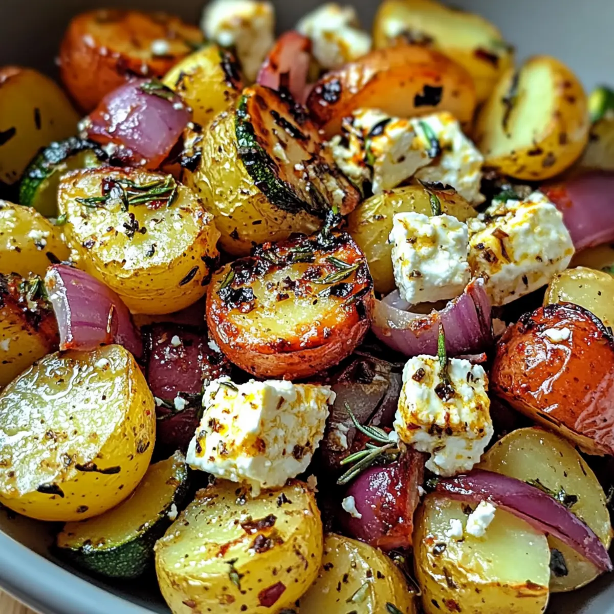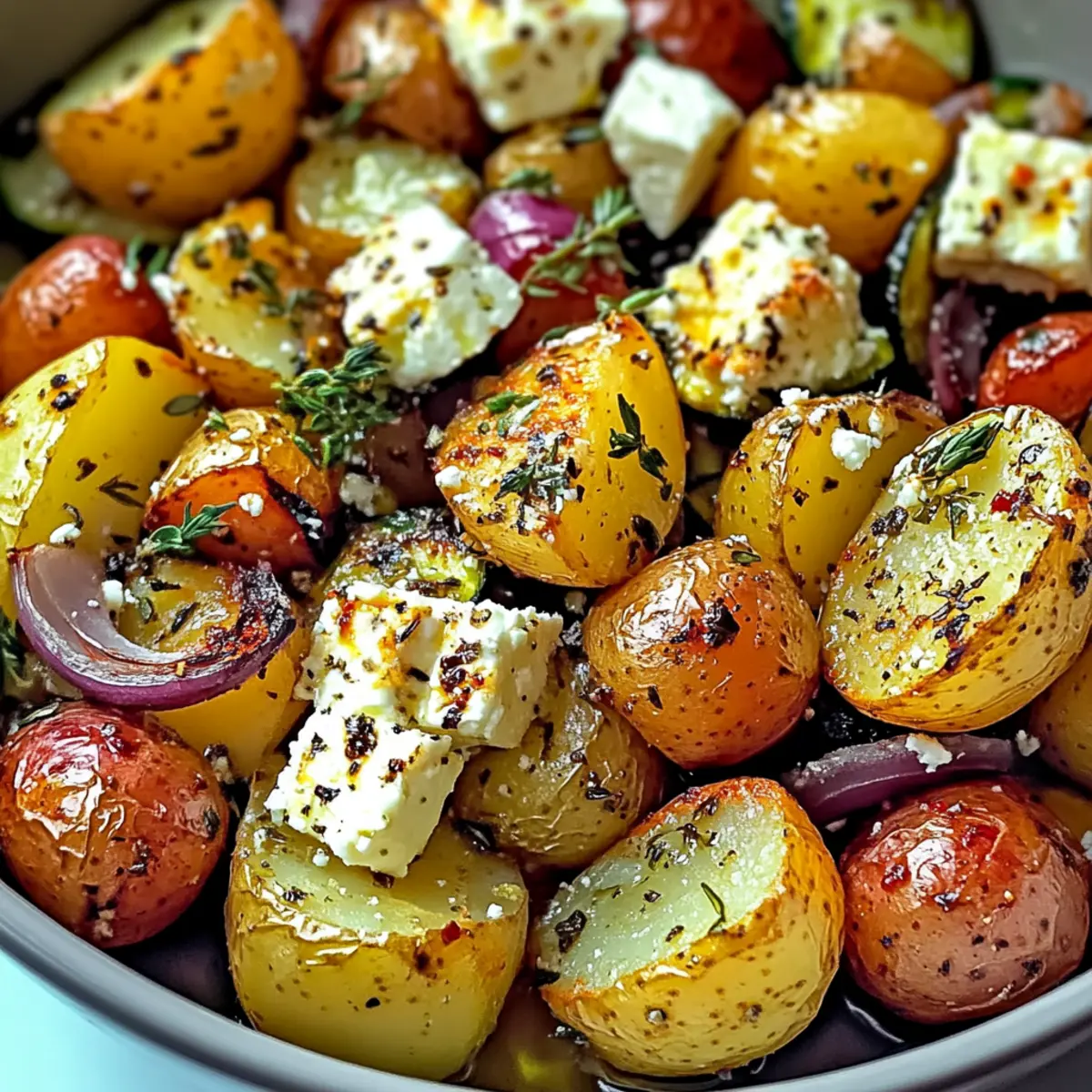 Es ist der Moment, in dem ich die Küche betrete und der verführerische Duft frisch gerösteter Kartoffeln und Gemüse in die Nase steigt – ein Gefühl, das dich sofort an die sonnenverwöhnten Küsten des Mittelmeers entführt. Mein Rezept für köstliches Feta Kartoffeln Ofengemüse ist dabei nicht nur eine einfache Mahlzeit, sondern ein Fest aus bunten, gesunden Zutaten, das in nur wenigen Schritten auf dem Tisch steht. Ideal für stressige Wochentage, bringt dieses vielseitige Gericht frischen Schwung auf deinen Teller und garantiert zufriedene Gesichter bei deinen Gästen oder deiner Familie. Egal, ob du dein Gemüse nach Saison anpassen oder eine vegane Variante mit pflanzlichem Feta ausprobieren möchtest, dieses Rezept lässt keine Wünsche offen. Bereit, deine Küche in ein mediterranes Paradies zu verwandeln? Warum wirst du dieses Rezept lieben? Einfachheit: Die Zubereitung ist unkompliziert und erfordert lediglich grundlegende Kochfähigkeiten. Vielseitigkeit: Du kannst saisonale Gemüse verwenden und das Rezept an deinen Geschmack anpassen, sodass es immer frisch bleibt. Gesundheitlich: Köstliches Feta Kartoffeln Ofengemüse ist eine gesunde Wahl, die gut in eine mediterrane Ernährung passt und glutenfreie Optionen bietet. Aromatische Erfahrung: Die Kombination aus gerösteten Kartoffeln und Feta entfaltet ein reichhaltiges, herzhaftes Aroma, das den Gaumen erfreut. Schnell und schmackhaft: In nur 30 Minuten bist du bereit, eine nahrhafte Mahlzeit zu servieren, perfekt für hektische Abende. Lass dich von diesem Rezept inspirieren, um leckere Gerichte zu kreieren, die deine Familie begeistern werden! Köstliches Feta Kartoffeln Ofengemüse Zutaten • Für das Gemüse Festkochende Kartoffeln – bilden die herzhafte Grundlage für das Gericht; Yukon Gold oder rote Kartoffeln sind ebenfalls geeignet. Zucchini – bringt eine zarte Textur und milden Geschmack; frische, feste Zucchinis wählen. Paprika – sorgt für Süße und Farbe; jede Farbe ist toll, auch Paprika kann verwendet werden. Rote Zwiebel – fügt Süße und Geschmacksdimension hinzu; gelbe Zwiebeln sind ein guter Ersatz. Knoblauchzehen – intensiviert das Aroma; alternativ kann auch Knoblauchpulver eingesetzt werden. • Für den Belag Feta-Käse – sorgt für Cremigkeit und verleiht dem Gericht Reichtum; probiere veganen Feta für eine pflanzliche Variante. Olivenöl – umhüllt das Gemüse beim Rösten; Avocadoöl ist eine geeignete Alternative. • Für die Gewürze Getrockneter Oregano – bringt mediterränen Kräutergeschmack; frischer Oregano erhöht die Intensität. Getrockneter Thymian – ergänzt den Geschmack; frischer Thymian ist geschmacklich intensiver. Salz und Pfeffer – unerlässlich für die Würze; nach Belieben anpassen. Frische Petersilie – optional zur Garnierung für mehr Frische und Farbe. Lass dich von diesem köstlichen Feta Kartoffeln Ofengemüse inspirieren und genieße die Aromen des Mittelmeers in deiner eigenen Küche! Step-by-Step Instructions für Köstliches Feta Kartoffeln Ofengemüse Step 1: Ofen vorheizen Heize deinen Ofen auf 200°C vor (180°C für Umluft). Diese Temperatur sorgt dafür, dass das Gemüse gleichmäßig röstet und die Kartoffeln goldbraun und knusprig werden. Achte darauf, alle benötigten Zutaten bereit zu legen, damit du nach dem Vorheizen direkt weiterarbeiten kannst. Step 2: Gemüse vorbereiten Wasche die festkochenden Kartoffeln gründlich und schneide sie in etwa 2–3 cm große Stücke. Die Zucchini in 1 cm dicke Scheiben schneiden, während du die Paprika und die rote Zwiebel in gleichmäßige Stücke hackst. Diese gleichmäßigen Schnitte sorgen für ein gleichmäßiges Garen im köstlichen Feta Kartoffeln Ofengemüse. Step 3: Knoblauch hinzufügen Nimm die Knoblauchzehen und presse sie, bis sie kräftig duften. Gib den Knoblauch zusammen mit den vorbereiteten Gemüse in eine große Schüssel. Damit wird das Gemüse aromatisch und verspricht einen intensiven Geschmack, der nach dem Rösten in diesem Gericht besonders zur Geltung kommt. Step 4: Öl und Gewürze hinzufügen Träufle großzügig Olivenöl über die Gemüsemischung und füge getrockneten Oregano sowie Thymian hinzu. Würze das Ganze mit Salz und Pfeffer nach deinem Geschmack. Vermenge alles gut mit den Händen oder einem Löffel, damit die Aromen gleichmäßig verteilt sind und jedes Stück Gemüse gut gewürzt wird. Step 5: Gemüse rösten Verteile das Gemüse gleichmäßig auf ein mit Backpapier ausgelegtes Backblech. Achte darauf, dass die Stücke nicht übereinander liegen, damit sie gleichmäßig rösten. Schiebe das Blech in den vorgeheizten Ofen und röste das Gemüse für etwa 25–30 Minuten, bis die Kartoffeln goldbraun und zart sind; drehe das Gemüse nach der Hälfte der Zeit um. Step 6: Feta hinzufügen Nach den ersten 25–30 Minuten der Röstzeit nimm das Blech vorsichtig aus dem Ofen und verteile die gewürfelten Feta-Käse-Stücke gleichmäßig über das Gemüse. So kann der Feta in den letzten 10–15 Minuten schmelzen und eine köstliche, goldene Kruste bilden, die dem Gericht zusätzliche Cremigkeit verleiht. Step 7: Anrichten und servieren Sobald das Gemüse mit dem Feta fertig geröstet ist, nimm das Blech aus dem Ofen und lasse das Gericht etwas abkühlen. Garniere das köstliche Feta Kartoffeln Ofengemüse nach Belieben mit frischer Petersilie, um zusätzliche Farbe und Frische hinzuzufügen. Serviere es warm und genieße die mediterranen Aromen mit deiner Familie oder Freunden. Köstliches Feta Kartoffeln Ofengemüse Variationen Lass deiner Kreativität freien Lauf und passe dieses Rezept nach deinem Geschmack an. Jede Variante bringt neue Aromen und Texturen ins Spiel! Veganer Feta: Verwende pflanzlichen Feta, um das Gericht komplett vegan und ebenso lecker zu machen. So kannst du das Rezept für jeden Genuss anpassungsfähig halten. Saisonales Gemüse: Probiere verschiedene Gemüsesorten wie Auberginen oder Brokkoli aus, um die Aromen der Saison he