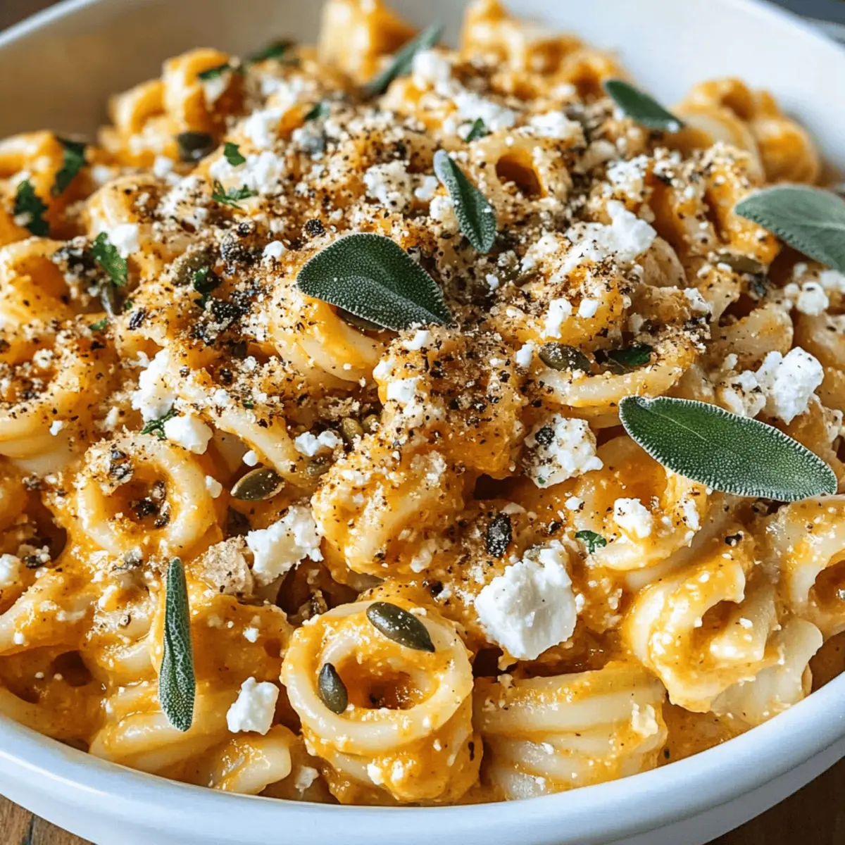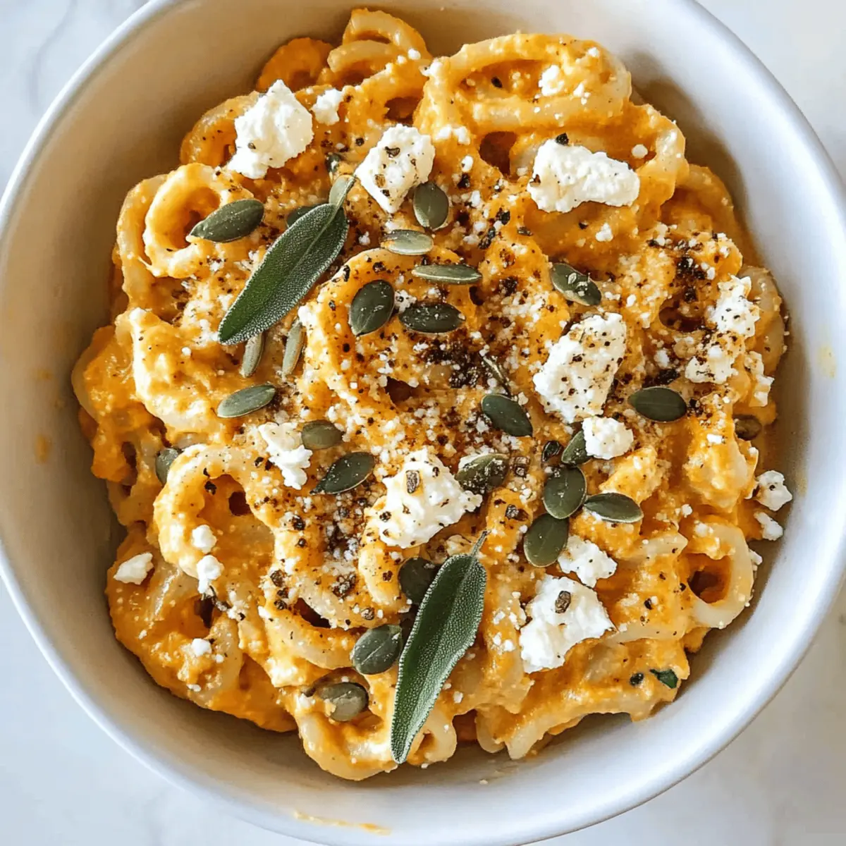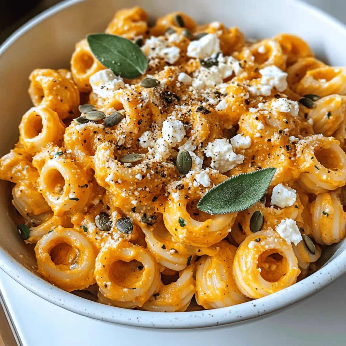 Die goldene Herbstsonne strahlt durch die Fenster, während ich in der Küche stehe und beginne, an meinem neuen Lieblingsgericht zu arbeiten: Kürbis-Feta-Nudeln. Diese himmlische Kombination aus cremigem Kürbis, salzigem Feta und al dente Pasta bringt nicht nur die Aromen des Falls auf den Teller, sondern lässt sich auch blitzschnell zubereiten – perfekt für hektische Wochentage oder elegante Abendessen mit Freunden. Die Kombination aus saisonalen Zutaten und der knackigen Textur von gerösteten Kürbiskernen machen diese Pasta zu einem ganz besonderen Genuss. Bist du bereit, deiner Familie und Freunden ein köstliches herbstliches Wohlfühlessen zu servieren, das sie mit jedem Bissen verzaubern wird? Warum sind Kürbis-Feta-Nudeln so besonders? Einfachheit: Diese Rezept ist kinderleicht zuzubereiten und erfordert keine speziellen Kochkünste. Saisonale Aromen: Die Kombination von cremigem Kürbis und salzigem Feta bringt die Wonne des Herbstes auf den Tisch. V Vielseitigkeit: Du kannst es leicht anpassen, indem du zusätzliches Gemüse oder verschiedene Käsesorten hinzufügst. Schnell und lecker: Ideal für ein schnelles Abendessen unter der Woche, ohne auf Geschmack zu verzichten. Geselligkeit: Perfekt zum Teilen – beeindrucke deine Familie oder Freunde mit diesem exquisiten Gericht! Gesundheit: Reich an Ballaststoffen und gesunden Fetten, sodass du auch beim Genuss auf deine Ernährung achten kannst. Schau dir auch unsere Anleitung zu Variationen für gesunde Pasta-Rezepte an! Zutaten für Kürbis-Feta-Nudeln • Diese köstlichen Kürbis-Feta-Nudeln benötigen nur frische, hochwertige Zutaten, um ihr volles Aroma entfalten zu können. Für die Pasta Pasta – Wähle deine Lieblingsform wie Penne oder Rigatoni für die perfekte Textur. Für die Sauce Kürbispüree – Sorgt für die cremige Basis; Verwende unbedingt aus der Dose, nicht das für Pies. Feta-Käse – Fügt einen salzigen, würzigen Geschmack hinzu; kann durch Ziegenkäse ersetzt werden. Schlagsahne – Macht die Sauce reichhaltig; für eine vegane Option einfach pflanzliche Sahne benutzen. Parmesankäse – Steigert den umami-Geschmack; für eine vegane Variante mit Nährhefe substituieren. Knoblauch – Gibt der Sauce eine aromatische Tiefe; frisch ist am besten! Olivenöl – Zum Anbraten verwendet; kann auch durch Butter oder Avocadoöl ersetzt werden. Frischer Salbei – Bringt einen warmen, kräuterigen Geschmack; getrockneten Salbei kannst du ebenfalls verwenden. Rote Pfefferflocken – Optional für eine würzige Note; lass sie weg, wenn du es mild magst. Salz & Pfeffer – Um die Aromen zu verstärken; nach Geschmack anpassen. Kürbiskerne (Pepitas) – Zum Garnieren und für den crunch; können durch Sonnenblumenkerne ersetzt werden. Butter – Fügt zusätzliche Reichhaltigkeit hinzu; kann weggelassen werden, wenn du es leichter magst. Zwiebel – Sorgt für eine süße Basis; Schalotten können ebenfalls verwendet werden. Gemüsebrühe/Pasta-Wasser – Hilft, die Sauce zu verdünnen; benutze Wasser, wenn keine Brühe verfügbar ist. Entdecke, wie einfach und köstlich diese Kürbis-Feta-Nudeln zuzubereiten sind und genieße das volle Geschmackserlebnis! Schritt-für-Schritt-Anleitung für Kürbis-Feta-Nudeln Step 1: Zwiebel anbraten Erhitze 2 Esslöffel Olivenöl in einer großen Pfanne über mittlerer Hitze. Füge eine gewürfelte Zwiebel hinzu und brate sie für etwa 5–7 Minuten, bis sie weich und glasig ist. Achte darauf, dass sie nicht anbrennt, da dies den Geschmack der gesamten Kürbis-Feta-Nudeln beeinträchtigen könnte. Step 2: Knoblauch und Salbei hinzufügen Gib eine gehackte Knoblauchzehe und ein paar frische Salbeiblätter in die Pfanne. Koche alles für etwa 1 Minute, bis der Knoblauch wohlriechend und leicht goldbraun ist. Rühre dabei ständig um, um ein Anbrennen zu verhindern und die Aromen gut zu vermischen. Step 3: Kürbispüree einrühren Füge 1 Tasse Kürbispüree in die Pfanne und rühre es gut unter die Zwiebel-Knoblauch-Mischung. Koche die Mischung für 2–3 Minuten, damit das Kürbispüree leicht erwärmt wird und seine Aromen entfalten kann. Die Farbe sollte sich intensivieren und es einen cremigen Eindruck hinterlassen. Step 4: Schlagsahne und Parmesan hinzufügen Gieße 1/2 Tasse Schlagsahne und 1/4 Tasse geriebenen Parmesan in die Pfanne. Rühre kräftig um, bis alles gut vermischt und die Sauce glatt ist. Lass die Mischung für etwa 2 Minuten köcheln, bis sie anfängt, leicht zu blubbern und eine cremige Konsistenz erreicht hat. Step 5: Würzen und köcheln lassen Verfeinere die Sauce mit Salz, Pfeffer und optionalen roten Pfefferflocken nach Geschmack. Lasse die Sauce bei niedriger Hitze für 10–15 Minuten leicht köcheln, dabei gelegentlich umrühren. Füge je nach Bedarf etwas Gemüsebrühe oder Pasta-Wasser hinzu, um die gewünschte Konsistenz zu erreichen. Step 6: Pasta kochen Setze in einem großen Topf Wasser auf und bringe es zum Kochen. Füge eine großzügige Menge Salz hinzu und koche die Pasta deiner Wahl gemäß der Packungsanleitung bis sie al dente ist. Bewahre etwas Kochwasser auf, bevor du die Pasta abgießt, um die Sauce später zu verfeinern. Step 7: Pasta mit der Sauce vermengen Gib die abgetropfte Pasta in die Pfanne mit der Kürbis-Feta-Sauce. Mische alles gut, sodass die Pasta gleichmäßig mit der Sauce bedeckt ist. Achte darauf, dass die Pasta und die Sauce harmonisch miteinander verbunden sind und die Aromen schön verschmelzen. Step 8: Sauce anpassen Falls die Sauce zu dick ist, füge nach Bedarf etwas vom reservierten Pasta-Wasser hinzu. Rühre kontinuierlich, bis die gewünschte Konsistenz erreicht ist. Die Sauce sollte cremig und gut haftend an der Pasta sein, um die besten Kürbis-Feta-Nudeln zu erhalten. Step 9: Feta einarbeiten Rühre die Hälfte der zerbröselten Feta-Käse unter die Pasta. Lass die Restwärme der Pasta den Käse leicht schmelzen und integriere ihn gut in die Sauce. Dies verleiht den Kürbis-Feta-Nudeln einen he