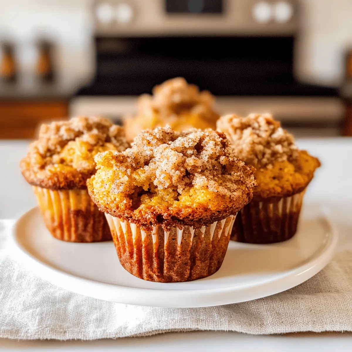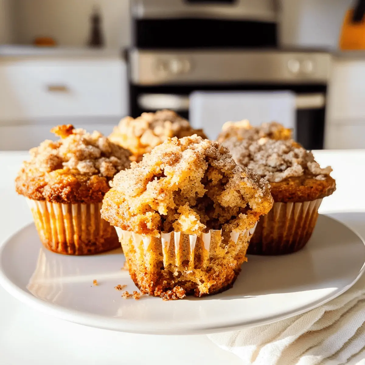 Als ich gestern in meiner Küche stand, um die warmen Aromen des Herbstes einzufangen, kam mir die Idee, diese perfekten kleinen Leckerbissen zu kreieren: Kürbis-Streusel-Muffins. Diese kleinen Köstlichkeiten vereinen die süße Frische von Äpfeln und die herzhafte Cremigkeit von Kürbis in einem zarten Teig, der mit einer knusprigen, buttrigen Zimtstreuselkruste gekrönt wird. Ideal für ein schnelles Frühstück oder als Snack für zwischendurch, bietet dieses Rezept für kleine Mengen gerade genug für eine kleine Runde oder um das tägliche Muffinverlangen zu stillen, ohne sich mit einer riesigen Portion herumzuschlagen. Stellen Sie sich vor, wie der köstliche Duft Ihrer Küche beim Backen dieser Muffins die Herzen Ihrer Liebsten erwärmt – bereit, sich dem nächsten Genuss hinzugeben? Warum sind diese Muffins besonders? Kürbis-Liebhaber, aufgepasst! Diese Muffins bringen die warmen, herbstlichen Aromen direkt in Ihre Küche. Kleine Portionen, große Freude! Mit nur vier Muffins ist dieses Rezept perfekt für kleine Haushalte oder einen schnellen Genuss. Einzigartige Geschmacksnoten von Äpfeln und Kürbis sorgen für ein Geschmackserlebnis, das den klassischen Muffin neu definiert. Knusprige Streusel geben jedem Biss das gewisse Etwas! Und das Beste: sie sind schnell zubereitet und eignen sich hervorragend für das Frühstück oder als herzhaften Snack. Entdecken Sie auch unsere weitere herbstliche Backrezepte! Kürbis-Streusel-Muffins Zutaten Schlüsselzutaten für köstliche Muffins: Diese Kürbis-Streusel-Muffins vereinen die besten Aromen des Herbstes in einem kleinen, köstlichen Paket. Allzweckmehl – sorgt für Stabilität und Struktur; für eine herzhaftere Textur kann Vollkornmehl verwendet werden. Ungesalzene Butter – verleiht den Muffins Reichhaltigkeit und unterstützt die knusprige Streuselkruste; kaltes Kokosöl ist eine gute, milchfreie Alternative. Heller Rohrzucker – sorgt für Feuchtigkeit und einen Hauch von Karamellgeschmack; verwenden Sie Haushaltszucker für eine weniger intensive Süße. Kristallzucker – verstärkt die Süße der Muffins; Kokoszucker ist eine niedrigere glykämische Option. Salz – balanciert die Aromen; Meersalz kann für einen intensiveren Geschmack eingesetzt werden. Gemahlener Zimt – bringt Wärme und Gewürz; ideal, um das herbstliche Geschmacksprofil zu verstärken; Sie können auch Pumpkin-Pie-Gewürz verwenden. Würfelige Äpfel – sorgen für Feuchtigkeit und Textur; feste Apfelsorten wie Braeburn oder Granny Smith sind perfekt. Sauerrahm – trägt zur Feuchtigkeit und Cremigkeit bei; Griechischer Joghurt kann für eine leichtere Option verwendet werden. Pürierter Kürbis aus der Dose – unerlässlich für den Geschmack und die Feuchtigkeit; achten Sie darauf, kein Kürbispüree oder -füllung zu verwenden. Apfelsaft – verstärkt die Süße und sorgt für zusätzliche Feuchtigkeit; Orangensaft oder Wasser können im Notfall verwendet werden. Eidotter – dient als Bindemittel und sorgt für Reichhaltigkeit; für eine vegane Option ist gemahlener Flachs mit Wasser eine gute Wahl. Vanilleextrakt – verleiht Tiefe und Komplexität; Mandelextrakt kann für einen anderen Geschmack verwendet werden. Backsoda – sorgt dafür, dass die Muffins schön aufgehen; Backpulver kann ersetzt werden, muss aber im doppelten Maß verwendet und eventuell die Flüssigkeitsmenge angepasst werden. Pumpkin Pie Spice – eine Gewürzmischung, die perfekt zum Kürbis passt; Sie können Ihr eigenes mit Zimt, Muskatnuss und Ingwer herstellen. Entdecken Sie die Freude am Backen mit diesen Kürbis-Streusel-Muffins und lassen Sie sich von den herbstlichen Aromen verzaubern! Schritt-für-Schritt-Anleitung für Kürbis-Streusel-Muffins Step 1: Streusel-Topping vorbereiten In einer Schüssel Allzweckmehl, ungesalzene Butter, hellen Rohrzucker, Kristallzucker, Salz und Zimt vermengen. Die Butter mit einem Teigmischer oder zwei Gabeln in die trockenen Zutaten einarbeiten, bis kleine, erbsengroße Krümel entstehen. Fügen Sie die gewürfelten Äpfel hinzu und stellen Sie die Mischung für 15 Minuten in den Kühlschrank. Step 2: Ofen vorheizen Heizen Sie den Ofen auf 220°C vor und legen Sie ein Muffinblech mit Muffinförmchen aus. Diese hohe Temperatur sorgt dafür, dass die Muffins schön aufgehen und ihre knusprige Oberseite entwickeln, während sie gleichzeitig den köstlichen Duft der Kürbis-Streusel-Muffins verbreiten. Step 3: Feuchte Zutaten mischen In einer separaten Schüssel Sauerrahm, pürierten Kürbis, Apfelsaft, beide Zuckersorten, das Eigelb und Vanilleextrakt gut verquirlen, bis die Mischung glatt ist. Fügen Sie die gewürfelten Äpfel hinzu und heben Sie sie vorsichtig unter, damit die Früchte gleichmäßig verteilt werden. Step 4: Trockene Zutaten kombinieren In einer weiteren Schüssel das Allzweckmehl, Backnatron, Salz und Pumpkin Pie Spice vermengen. Mischen Sie die trockenen Zutaten schrittweise unter die feuchten Zutaten, bis gerade so alles miteinander verbunden ist. Achten Sie darauf, den Teig nicht zu übermixen, um die zarte Konsistenz der Muffins zu bewahren. Step 5: Muffinförmchen füllen Verteilen Sie den Teig gleichmäßig auf die Muffinförmchen, sodass sie etwa zu zwei Dritteln gefüllt sind. Geben Sie dann großzügig das vorbereitete Streusel-Topping auf jeden Muffin, sodass es schön knusprig wird, wenn die Kürbis-Streusel-Muffins gebacken werden. Step 6: Backen Backen Sie die Muffins zuerst bei 220°C für 5 Minuten und senken Sie dann die Temperatur auf 175°C. Backen Sie die Muffins für weitere 11-13 Minuten, bis ein Zahnstocher, der in die Mitte eines Muffins gestochen wird, feucht, aber nicht nass herauskommt. Step 7: Abkühlen lassen Lassen Sie die Muffins nach dem Backen 10 Minuten im Muffinblech abkühlen. Danach nehmen Sie sie vorsichtig aus der Form und legen sie auf ein Kuchengitter, um vollständig abzukühlen. Der köstliche Duft der Kürbis-Streusel-Muffins wird Ihre Küche durchziehen und d