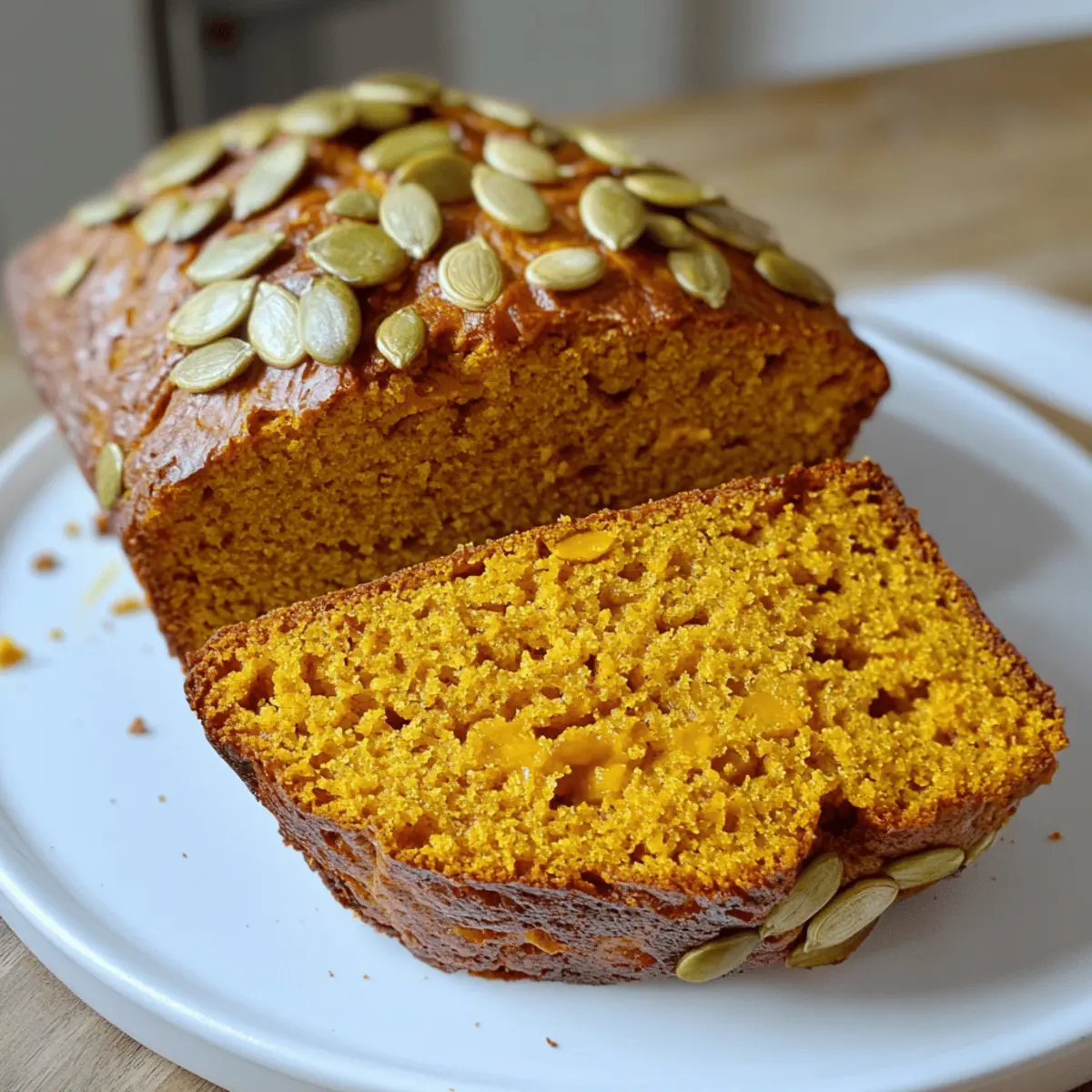 Als ich neulich in der Wohnung den aromatischen Duft von frisch gebackenem Kürbisbrot wahrnahm, wusste ich, dass der Herbst endlich eingezogen war. Dieses Rezept für Kürbisbrot – innen saftig und zart knusprig selber backen – vereint die perfekte Balance aus süßem, würzigem Kürbispüree und dem unerwarteten Knusper der gerösteten Kürbiskerne. Die Zubereitung ist kinderleicht und das Ergebnis ein echter Publikumsmagnet, besonders wenn Freunde und Familie vorbeischauen. Dieses köstliche Brot ist nicht nur ideal für den nachmittäglichen Kaffee, sondern auch eine hervorragende Möglichkeit, um die reiche Erntezeit und all die wunderbaren Aromen des Herbstes zu genießen. Neugierig, wie man dieses herzhafte Rezept selbst zaubern kann? Lass uns gemeinsam in die Welt des selbstgemachten Kürbisbrots eintauchen! Warum sollte ich Kürbisbrot backen? Ein Aromenfeuerwerk: Der süße Geschmack von Kürbispüree und die würzige Note der Gewürze machen dieses Brot zum perfekten herbstlichen Highlight. Einfach zuzubereiten: Mit nur wenigen Zutaten ist das Backen ein Kinderspiel – ideal für alle, die frische Backwaren lieben! Wunderbare Textur: Die Kombination aus saftigem Innenleben und knusprigen Kürbiskernen sorgt für ein unglaubliches Geschmackserlebnis. Vielseitig wie nie: Ob als snack, zum Frühstück mit Butter oder zum Nachmittagskaffee – dieses Brot passt einfach zu jeder Gelegenheit! Suchst du nach weiteren köstlichen Rezepten? Probiere auch unser gebackener Hokkaido Kürbis oder einen saftigen Zucchinikuchen. Kürbisbrot Zutaten • Für alle, die selbstgemachtes Kürbisbrot – innen saftig und zart knusprig selber backen möchten! Für den Teig Kürbispüree – Sorgt für Feuchtigkeit und intensiven Geschmack; verwende frisches oder aus der Dose, aber kein Kürbiskuchen-Füllung. Weißes Mehl – Das Grundgerüst des Brotes; für eine glutenfreie Variante kannst du eine glutenfreie Backmischung verwenden. Zucker – Bringt die Süße; brauner Zucker verleiht einen tieferen Geschmack. Backpulver – Wirkt als Treibmittel und sorgt für die perfekte Lockerheit. Salz – Verstärkt den Geschmack und balanciert die Süße. Eier – Binden die Zutaten und fügen Reichhaltigkeit hinzu; für eine vegane Variante können Leinsamen-Eier verwendet werden. Für den Knusper Kürbiskerne – Für Textur und nussigen Geschmack; das Rösten verstärkt den Crunch und das Aroma. Bereite dich vor, die köstliche Aromen des Herbstes in deinem Zuhause zu erleben! Schritt-für-Schritt-Anleitung für Kürbisbrot – innen saftig und zart knusprig selber backen Step 1: Zutaten vorbereiten Heize zunächst deinen Ofen auf 180°C vor und bereite eine Kastenform oder einen Bräter vor, indem du ihn leicht einfettest oder mit Backpapier auslegst. Dies sorgt dafür, dass das Kürbisbrot später problemlos herausgenommen werden kann. Achte darauf, alle Zutaten griffbereit zu haben, um einen reibungslosen Ablauf sicherzustellen. Step 2: Trockene Zutaten vermengen In einer großen Schüssel vermischst du das weiße Mehl, den Zucker, das Backpulver und das Salz sorgfältig miteinander. Verwende einen Schneebesen oder einen Löffel, um sicherzustellen, dass die Zutaten gleichmäßig verteilt sind. Dieses Grundgerüst trägt wesentlich zur Struktur deines Kürbisbrotes bei, also achte darauf, dass keine Klumpen bleiben. Step 3: Feuchte Zutaten kombinieren In einer separaten Schüssel schlägst du die Eier auf und gibst das Kürbispüree hinzu. Mit einem Schneebesen verrührst du die Mischung gut, bis sie cremig und glatt ist. Achte darauf, dass das Kürbispüree mit den Eiern vollständig kombiniert ist, da dies für die saftige Konsistenz deines Kürbisbrotes wichtig ist. Step 4: Zutaten zusammenführen Gib nun die feuchte Mischung zu den trockenen Zutaten. Verwende einen Gummispatel, um die Zutaten vorsichtig zusammenzufalten, bis sie gerade so kombiniert sind. Achte darauf, nicht zu lange zu mischen; eine kurze Vermengung sorgt dafür, dass das Kürbisbrot – innen saftig und zart knusprig bleibt und nicht gummiartig wird. Step 5: Kürbiskerne hinzufügen Falte nun die gerösteten Kürbiskerne unter den Teig. Diese geben deinem Kürbisbrot nicht nur eine angenehme Knusprigkeit, sondern auch einen nussigen Geschmack, der perfekt mit dem süßen Kürbispüree harmoniert. Achte darauf, dass die Kürbiskerne gleichmäßig verteilt sind, bevor du zum nächsten Schritt übergehst. Step 6: Backen Fülle den Teig gleichmäßig in die vorbereitete Kastenform und streiche die Oberfläche glatt. Schiebe die Form dann in den vorgeheizten Ofen und backe das Kürbisbrot für etwa 50-60 Minuten. Du kannst testen, ob das Brot fertig ist, indem du einen Zahnstocher in die Mitte steckst – er sollte sauber herauskommen, wenn das Brot richtig gebacken ist. Step 7: Abkühlen und Servieren Lass das Kürbisbrot nach dem Backen für ca. 10 Minuten in der Form abkühlen, bevor du es auf ein Kuchengitter stürzt. Dies verhindert, dass es am Boden feucht wird. Lasse es vollständig auskühlen, bevor du es in Scheiben schneidest. So kannst du die zarte, saftige Textur am besten genießen. Tipps für das beste Kürbisbrot • Zutatenqualität: Verwende frisches Kürbispüree: Dies verbessert den Geschmack und die Konsistenz. Achte darauf, keine fertige Kürbiskuchen-Füllung zu verwenden. • Teig nicht übermischen: Mische die trockenen und feuchten Zutaten nur, bis sie gerade vermengt sind. Übermäßiges Mischen führt zu einem gummiartigen Kürbisbrot. • Backzeit im Auge behalten: Jeder Ofen kann unterschiedlich backen. Überprüfe das Brot nach 50 Minuten und achte darauf, dass ein Zahnstocher sauber herauskommt. • Kürbiskerne rösten: Röste die Kürbiskerne vor dem Hinzufügen zum Teig, um den knusprigen Effekt und den nussigen Geschmack zu maximieren. • Aufbewahrungstipps: Bewahre das Kürbisbrot in einem luftdichten Behälter auf, um die Frische zu erhalten. Es schmeckt am besten, wenn es innerhalb von 3 