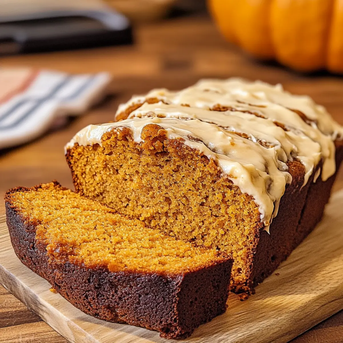 Hast du jemals in einen warmen, würzigen Kürbis gebissen und dich sofort in die gemütlichen Herbsttage zurückversetzt gefühlt? Mein Rezept für Kürbisbrot mit Frischkäse-Frosting ist genau das, was du brauchst, um diese besondere Zeit des Jahres in jede Küche zu bringen. Mit seiner feucht-weichen Textur und der perfekten Balance zwischen herbstlichen Gewürzen und dem süßlichen Topping ist dieses Brot nicht nur ein echter Hingucker, sondern auch eine großartige Möglichkeit, etwas Liebe zu teilen. Ob zum Frühstück mit einer Tasse Kaffee oder als süßer Snack am Nachmittag – dieses Rezept ist einfach und schnell zubereitet und sorgt garantiert für begeisterte Gesichter. Bist du bereit, in die Welt der herbstlichen Köstlichkeiten einzutauchen? Warum wirst du dieses Kürbisbrot lieben? Einfache Zubereitung: Nigel dank der klaren Anleitung gelingt dir dieses Kürbisbrot im Handumdrehen. Herzhaftes Aroma: Die aromatischen Gewürze wie Zimt und Muskatnuss versetzen dich sofort in herbstliche Stimmung. Perfekte Konsistenz: Mit seiner feucht-weichen Textur und dem cremigen Frischkäse-Frosting ist es ein wahres Geschmackserlebnis. Für Jeden Anlass: Ob zum Frühstück oder als Nachmittags-Snack – dieses Brot passt zu jeder Gelegenheit und lässt sich auch wunderbar mit Freunden teilen. Vielfältige Variationen: Du kannst mit Nüssen oder Schokoladenstückchen experimentieren, um deinem Kürbisbrot eine persönliche Note zu verleihen. Nimm dir außerdem einen Blick auf unsere Kürbisrezepte, um deinen herbstlichen kulinarischen Horizont zu erweitern! Kürbisbrot Zutaten • Köstliche Basis für dein Kürbisbrot. Für den Teig: Allzweckmehl – sorgt für die Struktur; kann durch glutenfreies Mehl ersetzt werden. Backsoda – als Treibmittel; achte darauf, dass es frisch ist für optimales Aufgehen. Backpulver – zusätzliches Treibmittel; überprüfe das Ablaufdatum für die wirksame Verwendung. Salz – verstärkt den Geschmack; verwende koscheres oder Meersalz. Gemahlener Zimt – sorgt für das typische Aroma; kann durch Kürbiskuchengewürz ersetzt werden. Gemahlener Ingwer – bringt zusätzliches Aroma; optional auch durch gemahlene Piment ersetzen. Gemahlene Muskatnuss – für den perfekten Herbstgeschmack; frisch gerieben sorgt für mehr Aroma. Gemahlene Nelken – optional; können weggelassen werden, wenn gewünscht. Gemahlener Piment – ebenfalls optional; trägt zur Gewürzmischung bei. Zucker – sorgt für Süße und Feuchtigkeit; brauner Zucker kann für einen volleren Geschmack verwendet werden. Ausgewählte Kürbispüree – bringt Feuchtigkeit und Geschmack; frischer Kürbis kann auch verwendet werden, benötigt jedoch mehr Aufwand. Pflanzenöl – sorgt für zusätzliche Feuchtigkeit; kann durch geschmolzenes Kokosöl ersetzt werden. Eier – für Struktur und Feuchtigkeit; können durch Leinsamen-Eier oder Apfelmus für eine vegane Variante ersetzt werden. Vanilleextrakt – für zusätzlichen Geschmack; optional kann auch Ahornextrakt verwendet werden. Für das Frosting: Frischkäse – Basis für das Frosting; vegane Alternativen sind möglich. Ungesalzene Butter – sorgt für den reichen Geschmack; Margarine kann als milchfreie Variante verwendet werden. Puderzucker – für die Süße des Frostings; kann durch gemahlenen Zucker ersetzt werden, falls nötig. Milch – zur Anpassung der Konsistenz des Frostings; pflanzliche Milch kann ebenfalls verwendet werden. Schritt-für-Schritt-Anleitung für Kürbisbrot mit Frischkäse-Frosting Step 1: Vorbereiten der Backform Heize den Ofen auf 175°C vor und fette eine Kastenform (9×5 Zoll) ein. Achte darauf, dass die Form gut gefettet ist, damit das Kürbisbrot nach dem Backen leicht herausgenommen werden kann. Diese Vorbereitungen sind entscheidend für ein perfektes Backergebnis. Step 2: Trockene Zutaten vermengen Siebe in einer großen Schüssel das Allzweckmehl, Backsoda, Backpulver, Salz, Zimt, Ingwer, Muskatnuss, Nelken und Piment zusammen. Durch das Sieben werden Klumpen entfernt und die Zutaten gleichmäßig verteilt. Diese Mischung bildet die Grundlage für dein köstliches Kürbisbrot und sorgt für eine gleichmäßige Textur. Step 3: Feuchte Zutaten vermischen In einer separaten Schüssel verrühre Zucker, Kürbispüree, Pflanzenöl, Eier und Vanilleextrakt, bis die Mischung schön glatt ist. Verwende einen Schneebesen oder einen Handmixer, um sicherzustellen, dass alle Zutaten gut integriert sind. Die feuchten Zutaten verleihen dem Brot seinen einzigartigen Geschmack und seine Feuchtigkeit. Step 4: Zutaten kombinieren Füge nach und nach die trockenen Zutaten zu den feuchten hinzu und falte sie vorsichtig unter. Achte darauf, nicht zu lange zu rühren, um ein trockenes Brot zu vermeiden. Die Mischung sollte gerade so zusammenkommen, ohne dass Klumpen sichtbar sind. Diese Kombination ist der Schlüssel zu deiner saftigen Kürbisbrotbasis. Step 5: Backen Gieße den Teig in die vorbereitete Kastenform und verteile ihn gleichmäßig. Backe das Kürbisbrot für 60-70 Minuten im vorgeheizten Ofen. Überprüfe mit einem Zahnstocher, ob das Brot fertig ist – er sollte sauber herauskommen. Ein leicht goldbrauner Rand zeigt, dass dein Brot perfekt gebacken ist. Step 6: Abkühlen lassen Lass das Kürbisbrot für etwa 10 Minuten in der Form abkühlen. Danach kannst du es vorsichtig auf ein Kuchengitter stürzen, um es vollständig erkalten zu lassen. Es ist wichtig, dass das Brot vollständig abgekühlt ist, bevor du mit dem Frosting beginnst, damit es nicht schmilzt. Step 7: Frosting zubereiten Schlage in einer Schüssel Frischkäse und ungesalzene Butter zusammen, bis die Mischung leicht und luftig ist. Füge dann den Vanilleextrakt und Puderzucker hinzu und mixe alles gut, wobei du nach Bedarf Milch hinzufügst, um die gewünschte Konsistenz zu erreichen. Das Frosting sollte cremig und gut streichfähig sein. Step 8: Frosting auftragen und servieren Verteile das Frosting großzügig über das vollstän