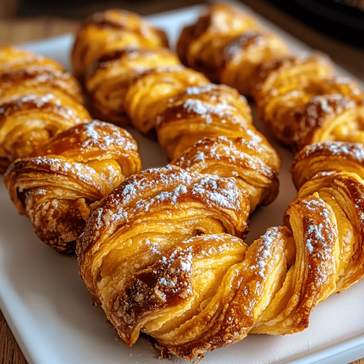Der Duft von frisch gebackenem Gebäck zieht durch die Küche, als ich die goldenen Kürbiskuchen-Twists aus dem Ofen hole. Diese verführerischen Leckereien vereinen die herzhaften Aromen eines traditionellen Kürbiskuchens und die knusprige Textur von Blätterteig, perfekt für gemütliche Herbsttage. Mit gerade einmal 15 Minuten Vorbereitungszeit sind sie nicht nur anfängerfreundlich, sondern auch ein echter Blickfang bei jeder Versammlung. Jede Drehung und Wendung dieser kleinen Kunstwerke enthüllt die köstliche, gewürzte Kürbisschicht im Inneren. Egal, ob zum Nachmittagskaffee oder als süßer Snack, diese Kürbiskuchen-Twists sind eine Einladung, das köstliche Gefühl von Herbst auf den Tisch zu bringen. Wer kann da schon widerstehen? Warum sind diese Kürbiskuchen-Twists so besonders? Einfachheit: Der Prozess ist unkompliziert und erfordert nur grundlegende Küchentechniken. Mit dem vorgefertigten Blätterteig braucht man kaum Zeit für die Vorbereitung. Wärmender Geschmack: Die Kombination aus Kürbis und Gewürzen bringt den frischen Herbstgeschmack direkt auf deinen Teller. Vielseitigkeit: Serviere sie als Snack, beim Brunch oder als Dessert – diese Twists passen immer! Du kannst sie gerne mit einem Klecks Sahne oder einer Kugel Eis kombinieren. Begeisterung garantiert: Jeder Biss ist eine köstliche Überraschung, die deine Gäste begeistern wird. Es ist schwer, bei nur einem Stück zu bleiben! Perfekt für jedes Event: Egal, ob es sich um eine kleine Zusammenkunft oder eine große Feier handelt, diese Kürbiskuchen-Twists sind ein echter Hit, den jeder lieben wird. Kürbiskuchen-Twist Zutaten • Diese einfachen, aber köstlichen Zutaten machen die perfekten Kürbiskuchen-Twists aus. Für den Blätterteig • Blätterteig – Sorgt für die knusprige, buttrige Textur. Thawed store-bought puff pastry offers convenience. Für die Füllung • Kürbispüree – Bildet die Basis der Füllung und bringt den charakteristischen Kürbisgeschmack. Homemade pumpkin puree can also be used, just ensure it’s well-drained. • Zucker – Fügt Süße hinzu. Brauner Zucker sorgt für einen tieferen Geschmack. • Zimt – Liefert die wärmende Gewürznote, typisch für herbstliche Desserts. • Muskatnuss – Fügt Tiefe und Wärme zum Geschmacksprofil hinzu. • Ingwer – Bringt eine scharfe, spritzige Note, die den Kürbis ergänzt. • Gewürznelken – Trägt zur Gesamtgewürzigkeit bei und steigert den Geschmack. Für den Glanz • Ei (verquirlt) – Dient als Eiwaschmittel, um den Teig beim Backen goldbraun zu färben. • Puderzucker – (Optional) Zum Bestäuben, sorgt für eine süße und ansprechende finale Note. Jede dieser Zutaten spielt eine entscheidende Rolle in den großartigen Kürbiskuchen-Twists, garantiert herbstrichtige Köstlichkeiten zum Genießen! Schritt-für-Schritt-Anleitung für Kürbiskuchen-Twists Schritt 1: Ofen vorheizen Heize den Ofen auf 200°C vor und lege ein Backblech mit Backpapier aus. Diese vorbereitenden Schritte stellen sicher, dass die Kürbiskuchen-Twists gleichmäßig und knusprig backen können. Während der Ofen aufheizt, kannst du die Blätterteigplatten vorbereiten. Schritt 2: Blätterteig vorbereiten Rolle den aufgetauten Blätterteig auf einer bemehlten Arbeitsfläche aus, um eventuelle Falten zu glätten. Der Teig sollte dünn und geschmeidig sein, damit du ihn später perfekt zu Twists formen kannst. Achte darauf, dass der Teig nicht kleben bleibt, indem du immer wieder etwas Mehl hinzufügst. Schritt 3: Füllung zubereiten In einer Schüssel vermischst du das Kürbispüree, den Zucker, den braunen Zucker, den Zimt, die Muskatnuss, den Ingwer und die Gewürznelken, bis eine glatte Masse entsteht. Diese aromatische Mischung wird das Herz der Kürbiskuchen-Twists und sorgt für den klassischen Geschmack, den jeder liebt. Schritt 4: Füllung auftragen Verteile die Kürbisfüllung gleichmäßig über den ausgerollten Blätterteig, wobei du einen kleinen Rand an den Kanten frei lässt. Achte darauf, dass die Füllung gleichmäßig ist, damit jeder Biss voll von dem köstlichen Kürbisgeschmack ist. Dies ist der perfekte Moment, um die herbstlichen Aromen miteinander zu vereinen. Schritt 5: Pastry falten und versiegeln Falte den Blätterteig in der Mitte, um die Füllung zu umschließen, und drücke die Ränder sanft zusammen, um sie zu versiegeln. Achte darauf, dass keine Füllung ausläuft, damit die Kürbiskuchen-Twists beim Backen schön in Form bleiben. Diese einfache Technik sorgt für eine ansprechende Präsentation. Schritt 6: Teig in Streifen schneiden Schneide den gefüllten Blätterteig in etwa 2,5 cm breite Streifen. Diese Streifen werden in die köstlichen Twists verwandelt, die knusprig und goldbraun aus dem Ofen kommen. Experimentiere ruhig mit der Breite der Streifen, um unterschiedliche Größen und Formen zu kreieren. Schritt 7: Twists formen Drehe jeden Streifen mehrmals, um spiralförmige Twists zu formen. Platziere die gedrehten Streifen auf dem Backblech, wobei ausreichend Platz zwischen ihnen bleibt, damit sie beim Backen aufgehen können. Dies gibt den Kürbiskuchen-Twists Platz, um sich zu entfalten und eine knusprige Textur zu entwickeln. Schritt 8: Mit Ei bestreichen Bestreiche die Twists großzügig mit dem verquirlten Ei, um ihnen beim Backen einen schönen goldenen Glanz zu verleihen. Diese letzte Berührung sorgt dafür, dass deine Kürbiskuchen-Twists nicht nur herrlich schmecken, sondern auch ansprechend aussehen. Schritt 9: Backen Backe die Kürbiskuchen-Twists für 18-20 Minuten, bis sie aufgebläht und goldbraun sind. Halte während des Backens ein Auge darauf, um ein Überbräunen zu vermeiden. Der köstliche Duft des Backens wird dich in die richtige Herbststimmung versetzen. Schritt 10: Abkühlen und servieren Lass die Kürbiskuchen-Twists kurz auf einem Kuchengitter abkühlen. Bestäube sie nach Wunsch mit Puderzucker, bevor du sie servierst. Diese kleinen Leckereien sind perfekte Begleiter zu