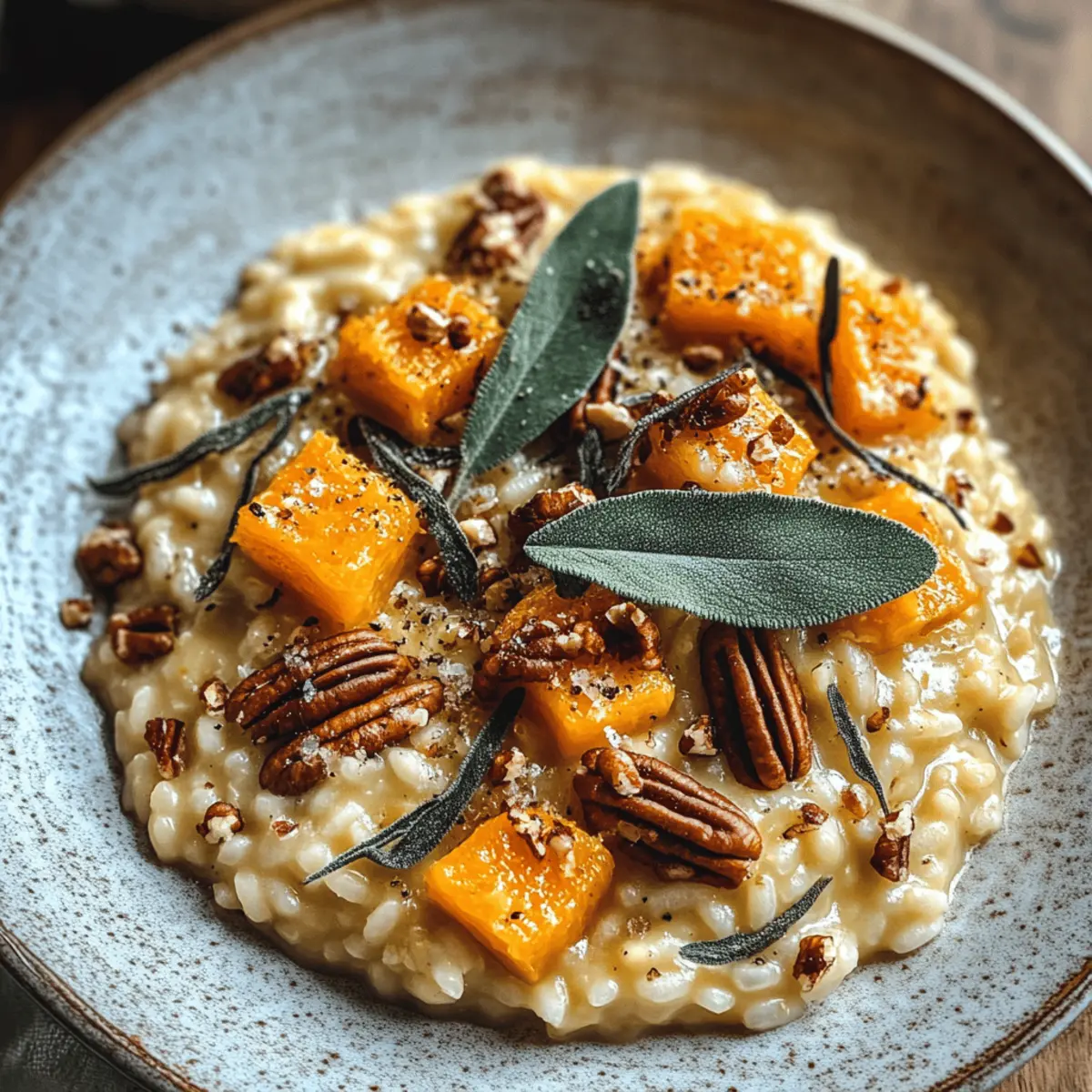 Wenn die Blätter sich golden färben und der Duft von frisch geröstetem Kürbis in der Luft liegt, ist es Zeit für ein gemütliches Abendessen. Mein gerösteter Butternut-Kürbis-Risotto mit Salbei und Pekannüssen ist wie eine Umarmung an einem kühlen Herbstabend und bringt die Aromen dieser besonderen Jahreszeit direkt auf den Tisch. Diese einfache und schnell zuzubereitende Köstlichkeit vereint cremigen Risotto mit der Süße des Kürbisses, während der knusprige Begleiter von Pekannüssen den perfekten Crunch liefert. Egal, ob Sie ein leidenschaftlicher Hobbykoch sind oder einfach nach einer gesunden Alternative zu Fast Food suchen – dieses Rezept ist Ihre Antwort auf herbstliche Seelenwärmer! Neugierig, wie Sie diese harmonische Kombination auf den Tisch bringen können? Warum Kürbisrisotto so besonders ist? Einfache Zubereitung: Mit nur wenigen grundlegenden Zutaten schaffen Sie einen festlichen Genuss, der nicht viel Zeit in Anspruch nimmt. Aromatische Mischung: Der geröstete Kürbis verbindet sich wunderbar mit dem erdigen Salbei und den knackigen Pekannüssen, um einen einzigartigen Geschmacksreichtum zu erzeugen, der lecker und sättigend ist. Vielseitige Alternativen: Variieren Sie das Rezept, indem Sie Kürbis durch Süßkartoffeln ersetzen oder andere Nüsse hinzufügen – es gibt endlose Möglichkeiten! Köstliche Textur: Die cremige Konsistenz des Risottos schmeichelt dem Gaumen und wird durch den Crunch der Pekannüsse perfekt ergänzt. Gemütliche Atmosphäre: Ideal für herbstliche Dinnerpartys oder ein einfaches Familienessen, dieses Gericht versprüht Wärme und lädt zum Genießen ein. Kürbisrisotto Zutaten • Für das Risotto: Butternut-Kürbis – Der Hauptbestandteil, sorgt für Süße und kann alternativ durch Kürbis ersetzt werden. Olivenöl – Zum Rösten des Kürbisses, bringt Tiefe in den Geschmack; ein neutrales Öl ist ebenfalls geeignet. Zwiebel – Gibt die grundlegende Aromatik; fein gehackt für einen sanften Geschmack. Knoblauch – Verleiht Aroma; gut gehackt, kann aber auch weggelassen werden, wenn Sie keinen Knoblauch mögen. Risottoreis (Arborio) – Für die cremige Textur; nicht abspülen vor dem Kochen, damit die Stärke erhalten bleibt. Weißwein – Für die nötige Säure; für eine alkoholfreie Variante können Sie Brühe verwenden. Gemüsebrühe – Um das Risotto zu kochen; verbessert den Geschmack. Parmesan – Für Cremigkeit und herzhaften Umami-Geschmack; frisch gerieben ist ideal. Butter – Für zusätzlichen Reichtum; pflanzliche Butter für vegane Optionen verwenden. Salbeiblätter – In Butter gebraten, für Geschmack und Dekoration; weglassen für eine mildere Note. Pekannüsse – Bieten einen Knusper-Effekt; Walnüsse sind eine gute Alternative. Salz & Pfeffer – Zum Abschmecken nach Belieben. In diesem Rezept für Kürbisrisotto verbinden sich die Aromen perfekt, um ein echtes Herbst-Highlight zu schaffen! Schritt-für-Schritt-Anleitungen für Geröstetes Butternut-Kürbis-Risotto mit Salbei und Pekannüssen Schritt 1: Ofen vorheizen Heizen Sie den Ofen auf 200°C vor, um die ideale Temperatur zum Rösten des Butternut-Kürbisses zu erreichen. Dies geschieht am besten, während Sie den Kürbis vorbereiten, sodass er sofort in den Ofen kommt, wenn Sie ihn angemessen gewürzt haben. Schritt 2: Kürbis vorbereiten Schneiden Sie den Butternut-Kürbis in gleichmäßige Würfel von etwa 1,5 cm. Vermengen Sie die Kürbiswürfel in einer Schüssel mit Olivenöl, Salz und Pfeffer, bis sie gleichmäßig bedeckt sind. Breiten Sie die gewürzten Würfel auf einem Backblech aus und achten Sie darauf, dass sie nicht überlappen, damit sie gleichmäßig rösten. Schritt 3: Kürbis rösten Legen Sie das Backblech mit den Kürbiswürfeln in den vorgeheizten Ofen und rösten Sie sie für etwa 25 bis 30 Minuten, bis sie goldbraun und zart sind. Wenden Sie die Würfel nach der Hälfte der Zeit einmal, um eine gleichmäßige Bräunung zu gewährleisten. Der köstliche Duft wird Ihnen das Wasser im Mund zusammenlaufen. Schritt 4: Zwiebel und Knoblauch anbraten Erhitzen Sie in einem großen Topf bei mittlerer Hitze etwas Olivenöl. Fügen Sie die fein gehackte Zwiebel hinzu und braten Sie sie für etwa 3-4 Minuten, bis sie glasig und weich ist. Geben Sie dann den gehackten Knoblauch dazu und braten Sie ihn für eine weitere Minute mit, um ein aromatisches Fundament für das Risotto zu schaffen. Schritt 5: Reis anrösten Fügen Sie den Arborio-Reis in den Topf und rösten Sie ihn unter Rühren für etwa 1-2 Minuten an, bis die Ränder des Reises glasig werden. Dies hilft, die Stärke freizusetzen und verleiht Ihrem gerösteten Butternut-Kürbis-Risotto eine cremige Textur. Schritt 6: Mit Wein ablöschen Gießen Sie nun den Weißwein in den Topf und rühren Sie kontinuierlich, bis der Wein fast vollständig vom Reis aufgenommen ist. Diese Phase bringt die Aromen zum Vorschein und verleiht dem Risotto einen wunderbaren, komplexen Geschmack. Schritt 7: Brühe hinzufügen Beginnen Sie nun, die heiße Gemüsebrühe in kleinen Mengen mit einer Kelle hinzuzufügen. Rühren Sie konstant, bis die Brühe vollständig vom Reis absorbiert ist, bevor Sie mehr hinzufügen. Wiederholen Sie diesen Prozess, bis der Reis cremig und al dente ist, was etwa 18-20 Minuten dauert. Schritt 8: Kürbis, Käse und Butter einrühren Wenn der Risotto die perfekte Konsistenz hat, fügen Sie den gerösteten Butternut-Kürbis, frisch geriebenen Parmesan und die Butter hinzu. Rühren Sie alles gut um, bis die Zutaten gut vermengt sind und dasRisotto schön cremig aussieht und einen leckeren Geschmack bekommt. Schritt 9: Salbeiblätter anbraten In einer kleinen Pfanne die Butter bei mittlerer Hitze erhitzen und die Salbeiblätter darin anbraten, bis sie knusprig sind – dies dauert etwa 1-2 Minuten. Entfernen Sie die Blätter und lassen Sie sie auf einem Küchenpapier abtropfen, um zusätzliches Fett zu entfernen und sie knusprig zu halten. Schritt 10: Anrichten un