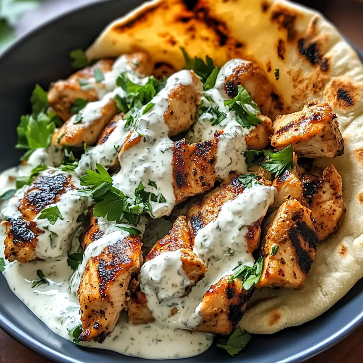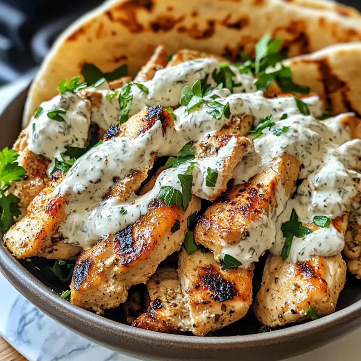 Die Aromen des Mittelmeers bringen mich immer wieder in eine andere Welt, und nichts ist dabei so verführerisch wie mein Rezept für leckeres Hühnchen Shawarma mit Knoblauchsauce. Diese köstliche Kreation ist nicht nur schnell zubereitet, sondern auch äußerst anpassbar – perfekt für alle, die ihre Mahlzeiten mit frischen, herzhaften Zutaten auffrischen möchten. Die Kombination aus zart mariniertem Hühnchen und einer cremigen Knoblauchsauce verwandelt selbst hektische Abende in ein kleines Festmahl. Egal, ob du Gäste bewirten oder einfach nur einen gesunden Leckerbissen für dich selbst zubereiten möchtest, dieses Rezept wird dich und deine Liebsten begeistern. Bereit, dich auf eine geschmackliche Reise einzulassen? Lass uns gemeinsam starten! Warum wirst du dieses Rezept lieben? Schnelle Zubereitung: Dieses Hühnchen Shawarma ist in weniger als 30 Minuten fertig, ideal für hektische Wochentage. Kreative Anpassungen: Du kannst die Zutaten nach deinem Geschmack variieren, ob mit Hähnchenbrust oder -keulen, und die Sauce mit Mayonnaise oder griechischem Joghurt zubereiten. Mediterraner Genuss: Gönn dir den Geschmack des Mittelmeers bei dir zu Hause, ohne dafür ins Restaurant zu müssen. Familienfreundlich: Egal ob kleines oder großes Familienessen, jeder wird dieses einfache, aber köstliche Gericht lieben! Mit diesem Rezept kannst du auch eine gesunde Alternative zu Fast Food bieten – warum nicht noch einige frische Zutaten hinzufügen? Schau dir unsere Variation Ideas für noch mehr Inspiration an! Leckeres Hühnchen Shawarma mit Knoblauchsauce Zutaten • Hol dir alles, was du brauchst, um dein eigenes köstliches Hühnchen Shawarma mit Knoblauchsauce zu zaubern! Für die Marinade Olivenöl – dient als Fettquelle für die Marinade und das Kochen; du kannst auch Avocadoöl verwenden für einen anderen Geschmack. Kreuzkümmel – gibt ein warmes, erdiges Aroma; kombiniere es mit Koriander für einen intensiveren Geschmack. Paprika – sorgt für Farbe und eine süßliche Note; probiere geräucherte Paprika für einen tieferen Geschmack. Kurkuma – verleiht eine goldene Farbe und milde Erdigkeit; optional für zusätzliche Farbgebung. Koriander – fügt zitrusartige Untertöne hinzu; ersetze es durch Petersilie, wenn gewünscht. Zimt – bringt Wärme und Tiefe; Muskatnuss kann auch als Ersatz dienen. Zehn Knoblauch – der Hauptgeschmacksträger; frischer Knoblauch macht einen deutlichen Unterschied. Zitronensaft – fügt Säure hinzu, um die Aromen auszubalancieren; Limettensaft ist ebenfalls eine gute Alternative. Salz und Pfeffer – intensivieren den Gesamtgeschmack; nach Belieben anpassen. Für die Knoblauchsauce Mayonnaise – die Basis der Knoblauchsauce, die Cremigkeit verleiht; ersetze sie durch griechischen Joghurt für eine leichtere Variante. Mehr gehackter Knoblauch (für die Sauce) – unerlässlich für den Knoblauchgeschmack; frisch ist immer am besten. Salz (für die Sauce) – nach Geschmack; passe die Intensität entsprechend an. Entdecke die Freude am Kochen mit diesem leckeren Hühnchen Shawarma mit Knoblauchsauce Rezept, das dir nicht nur Zeit spart, sondern auch die Möglichkeit bietet, kreativ zu werden! Schritt-für-Schritt-Anleitung für Leckeres Hühnchen Shawarma mit Knoblauchsauce Rezept Step 1: Marinade vorbereiten In einer großen Schüssel Olivenöl, Kreuzkümmel, Paprika, (wenn verwendet) Kurkuma, Koriander, Zimt, gehackten Knoblauch, Zitronensaft, Salz und Pfeffer gut vermischen. Mit einem Schneebesen die Zutaten so lange rühren, bis sie vollständig verbunden sind und eine cremige Konsistenz entsteht. Die Marinade soll aromatisch und einladend duften, um das Hühnchen Shawarma optimal zu würzen. Step 2: Hühnchen marinieren Die Hühnchenstreifen in die Marinade geben und gründlich umrühren, sodass alle Stücke gleichmäßig bedeckt sind. Decke die Schüssel ab und lasse das Hughen mindestens 30 Minuten im Kühlschrank marinieren. Für intensiveren Geschmack kann das Hühnchen auch bis zu einer Nacht mariniert werden. So können die Aromen tief ins Fleisch eindringen, bevor du es weiterverarbeitest. Step 3: Hühnchen braten Eine Grillpfanne oder einen Grill auf mittelhohe Hitze vorheizen. Die marinierten Hühnchenstreifen vorsichtig in die heiße Pfanne legen und etwa 5-7 Minuten pro Seite braten, bis sie goldbraun sind und eine Innentemperatur von 75°C (165°F) erreichen. Achte darauf, dass das Hühnchen nicht überfüllt ist, um ein gleichmäßiges Garen zu ermöglichen und ein saftiges Ergebnis zu erhalten. Step 4: Knoblauchsauce zubereiten Während das Hühnchen kocht, bereite die Knoblauchsauce vor. In einer separaten Schüssel Mayonnaise, gehackten Knoblauch, Zitronensaft und eine Prise Salz vermengen. Gut umrühren, bis die Sauce glatt und cremig ist. Schmecke die Sauce ab und passe die Gewürze bei Bedarf an, um die perfekte Balance zu finden, die deinem Hühnchen Shawarma die richtige Note verleiht. Step 5: Servieren Sobald das Hühnchen fertig ist, lasse es kurz ruhen, damit die Säfte sich setzen können. Danach in zarte Streifen schneiden und in Pitabrot oder auf einem Teller anrichten. Mit der cremigen Knoblauchsauce und frischem Gemüse oder einem Salat servieren. Jeder Bissen des leckeren Hühnchen Shawarma mit Knoblauchsauce wird ein Genuss sein, der deine Gäste begeistern wird! Lagerungstipps für leckeres Hühnchen Shawarma mit Knoblauchsauce Raumtemperatur: Halte die Reste in einem luftdichten Behälter, um sie bei Raumtemperatur nicht länger als 2 Stunden aufzubewahren. Kühlschrank: Bewahre gekochtes Hühnchen Shawarma in einem luftdichten Behälter für bis zu 4 Tage im Kühlschrank auf. Achte darauf, dass die kühlgende Temperatur von 4°C (39°F) eingehalten wird. Gefrierschrank: Wenn du das Hühnchen länger aufbewahren möchtest, kannst du es in einem gefriergeeigneten Behälter für bis zu 3 Monate einfrieren. Stelle sicher, dass die Verpackung luftdicht ist, um Gefrierbrand zu vermeiden. Wiedererw