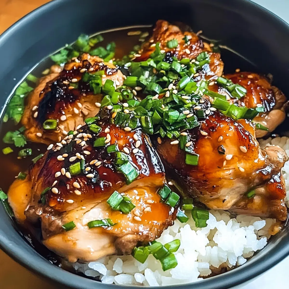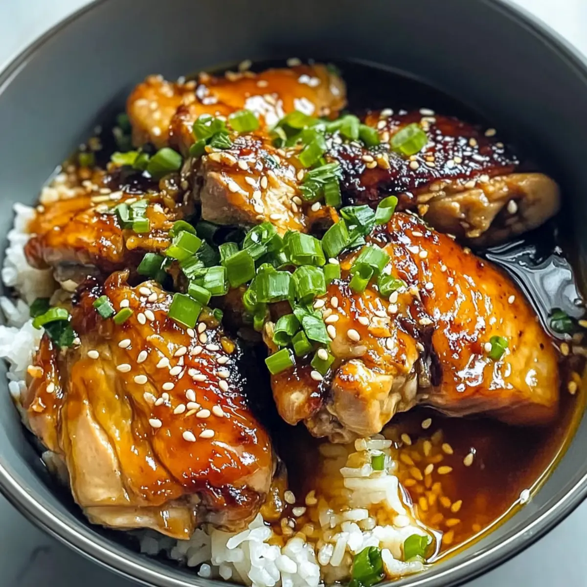 Mache dein Abendessen mit diesem leckeren karamellisierten Soja-Hühnchen in Knoblauch-Ingwer-Brühe mit Reis zu einem unvergesslichen Erlebnis!