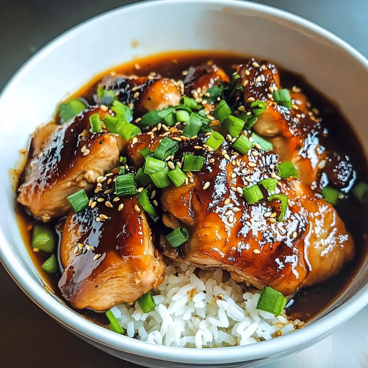 Leckeres karamellisiertes Soja-Hühnchen in Knoblauch-Ingwer-Brühe mit Reis – ein einfaches und aromatisches Gericht für ein besonderes Abendessen.