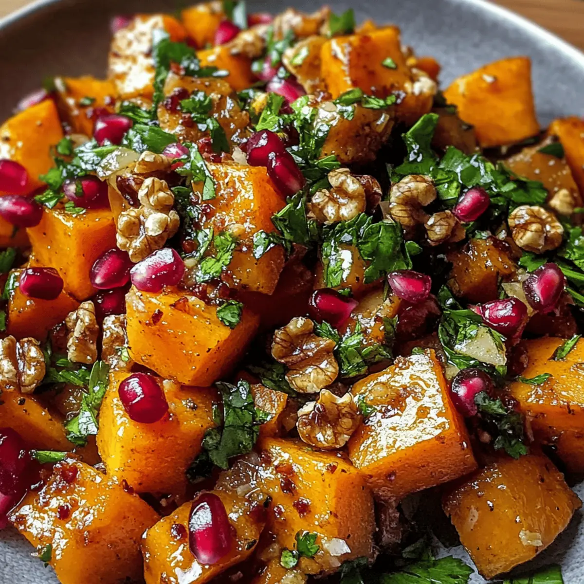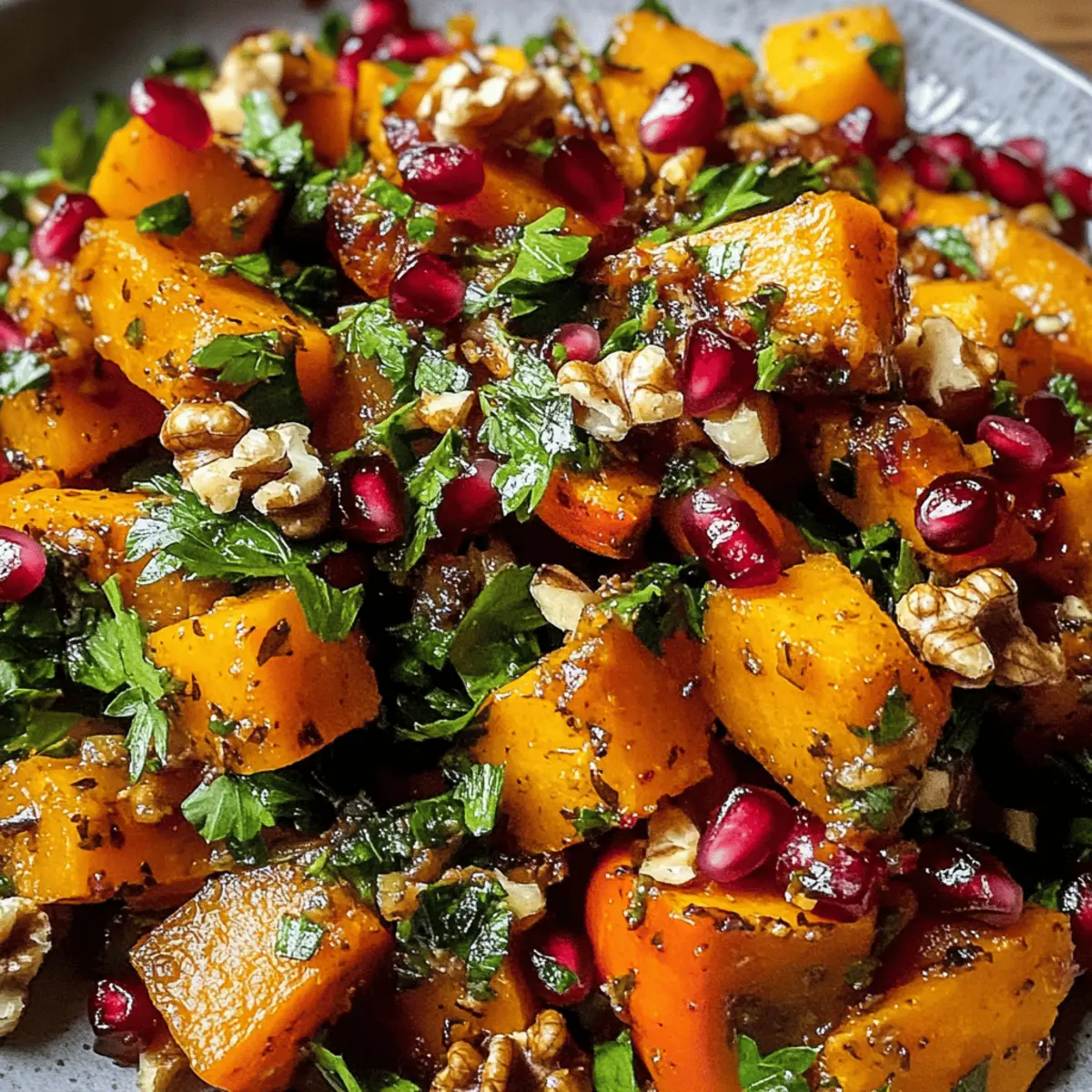 Der Duft von geröstetem Kürbis zaubert sofort ein Lächeln auf mein Gesicht. Dieser Libanesische Geröstete Kürbissalat ist nicht nur ein Fest für die Sinne, sondern auch ein gesundes Highlight auf jedem Tisch. Die Kombination aus süßem, karamellisiertem Kürbis und der knackigen Frische von Walnüssen und Granatapfelkernen ist ein Erlebnis, das Sie nicht verpassen sollten. Zudem ist dieser Salat blitzschnell zubereitet und eignet sich sowohl als schmackhafte Beilage zu herzhaften Gerichten als auch als leichtes Hauptgericht. Perfekt für alle, die eine köstliche, nährstoffreiche Mahlzeit ohne großen Aufwand genießen möchten. Neugierig, wie Sie dieses farbenfrohe Gericht zaubern können? Lassen Sie uns gemeinsam in die Zubereitung eintauchen! Warum ist dieser Kürbissalat so besonders? Einfachheit, die begeistert: Die Zubereitung des Libanesischen Gerösteten Kürbissalats ist kinderleicht und benötigt keine speziellen Kochkünste. Aromenexplosion: Der süße, geröstete Kürbis kombiniert mit aromatischen Gewürzen und frischen Kräutern sorgt für einen unvergleichlichen Geschmack, der Ihre Geschmacksknospen verwöhnt. Vielseitig einsetzbar: Ob als Beilage zu gegrilltem Fleisch oder als leichtes Hauptgericht, dieser Salat passt zu jeder Gelegenheit und sollte auf keinem Tisch fehlen. Gesund und nährstoffreich: Dank der reichhaltigen Inhaltsstoffe ist dieser Salat nicht nur lecker, sondern unterstützt auch eine ausgewogene Ernährung. Schnell zubereitet: In weniger als 30 Minuten zaubern Sie ein gesundes Gericht, das Zeit und Mühe spart – ideal für die geschäftigen Tage! Aufpeppen leicht gemacht: Variieren Sie mit Feta oder anderen Nüssen für eine persönliche Note oder schauen Sie sich unsere Ideen zur Variation des Rezepts an, um neue Geschmackserlebnisse zu entdecken. Libanesischer Gerösteter Kürbissalat Zutaten • Für den Salat Kürbis – Hauptzutat, die durch das Rösten süß und karamellisiert schmeckt; Butternut-Kürbis kann eine tolle Alternative sein. Olivenöl – Ideal zum Rösten, sorgt für köstliche Aromen; Avocadoöl kann als neutralere Option verwendet werden. Kreuzkümmel – Verleiht dem Salat einen orientalischen Touch; Korianderpulver ist ein guter Ersatz, wenn Sie eine Abwechslung wünschen. Zimt – Fügt eine warme Note hinzu, die die Aromen abrundet. Paprikapulver – Gibt Farbe und Geschmacksnuancen; geräuchertes Paprikapulver kann ebenfalls verwendet werden. Salz & Pfeffer – Grundgewürze zur Geschmacksverbesserung. Walnüsse oder Pinienkerne – Sorgt für einen knusprigen Biss und zusätzlichen Geschmack. Frische Petersilie – Bringt Frische und Farbe in den Salat. Granatapfelkerne – Fügt Süße und einen knackigen Biss hinzu; eine köstliche Ergänzung zu Ihrem Libanesischen gerösteten Kürbissalat. • Für die Vinaigrette Essig – Bildet die Basis der Vinaigrette und verbindet die Aromen; Balsamico oder Apfelessig funktionieren hervorragend. Honig oder Ahornsirup – Für eine süßliche Note, die das Gericht abrundet. Senf – Gibt der Vinaigrette einen leichten Kick; Dijon-Senf ist besonders gut geeignet. Gewürze nach Geschmack – Zum Beispiel Knoblauch oder Schalotten für zusätzliche Tiefe. Mit dieser Zutatenliste sind Sie bestens gerüstet, um einen köstlichen und gesunden Libanesischen gerösteten Kürbissalat zuzubereiten! Schritt-für-Schritt-Anleitung für Libanesischer gerösteter Kürbissalat Step 1: Kürbis schneiden und würzen Schneiden Sie den Kürbis in kleine Würfel oder Spalten, sodass sie gleichmäßig rösten. In einer großen Schüssel den Kürbis mit Olivenöl, Kreuzkümmel, Zimt, Paprikapulver, Salz und Pfeffer vermengen. Achten Sie darauf, dass jedes Stück gut mit den Gewürzen überzogen ist, um einen intensiven Geschmack im Libanesischen gerösteten Kürbissalat zu erzielen. Step 2: Kürbis rösten Heizen Sie den Ofen auf 200°C (180°C Umluft) vor. Legen Sie die gewürzten Kürbisstücke auf ein mit Backpapier belegtes Blech und rösten Sie sie für ca. 30 Minuten. Wenden Sie den Kürbis nach 15 Minuten, damit er gleichmäßig bräunt und karamellisiert. Der Kürbis sollte weich und goldbraun sein, wenn er fertig ist. Step 3: Nüsse rösten Während der Kürbis im Ofen röstet, erhitzen Sie eine trockene Pfanne bei mittlerer Hitze. Geben Sie die Walnüsse oder Pinienkerne hinein und rösten Sie sie unter ständigem Rühren für 5-7 Minuten, bis sie leicht gebräunt sind und aromatisch duften. Achten Sie darauf, sie nicht zu verbrennen, da sie sonst bitter werden. Step 4: Kombinieren Lassen Sie den gerösteten Kürbis nach dem Backen kurz abkühlen. In einer großen Schüssel den Kürbis mit den gerösteten Nüssen, frisch gehackter Petersilie und Granatapfelkernen vermengen. Mischen Sie die Zutaten sanft, damit der süße Kürbis und die knackigen Nüsse gleichmäßig verteilt sind. Step 5: Vinaigrette hinzufügen Bereiten Sie die Vinaigrette aus Essig, Honig, Senf und gewünschten Gewürzen vor. Gießen Sie diese über den fertigen Libanesischen gerösteten Kürbissalat und vermengen Sie alles gut miteinander, sodass der Salat gleichmäßig mit der Vinaigrette überzogen ist. Servieren Sie den Salat frisch oder lassen Sie ihn einige Minuten ruhen, damit sich die Aromen entfalten können. Aufbewahrungstipps für Libanesischer Gerösteter Kürbissalat Kühlschrank: Lagern Sie den Salat in einem luftdichten Behälter für bis zu 2 Tage. Um die Frische der Zutaten zu erhalten, bewahren Sie die Vinaigrette separat auf. Freezer: Der Salat ist nicht ideal zum Einfrieren, da der Kürbis nach dem Auftauen seine Textur verliert. Frisch genießen ist die beste Option! Vorbereiten: Sie können die einzelnen Komponenten des Salats (Kürbis, Nüsse, Vinaigrette) im Voraus zubereiten. Halten Sie sie separat und kombinieren Sie sie erst kurz vor dem Servieren. Wiedererwärmen: Sollten Reste übrig bleiben, können Sie den Kürbis sanft in der Mikrowelle erhitzen, jedoch verlieren die Nüsse ihren Crunc