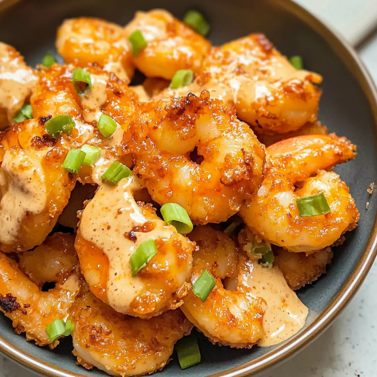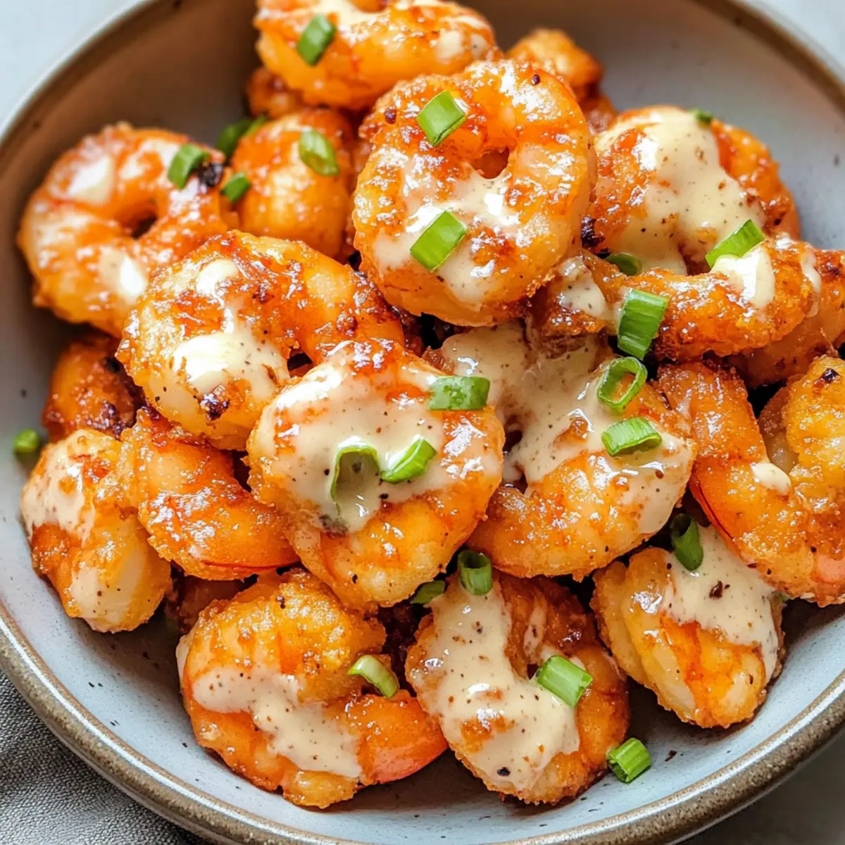 In einem kleinen Café in Asien entdeckte ich einmal die verführerischen Bang Bang Garnelen, die zum absoluten Hit meines Besuchs wurden. Diese knusprigen Luftfritteuse Bang Bang Garnelen sind der perfekte Weg, um diesen unvergesslichen Geschmack zu Hause zu genießen – und das in nur 20 Minuten! Mit ihrer cremigen, würzigen Sauce und dem leichten, knackigen Biss sind sie nicht nur ein köstlicher Snack, sondern auch ein gesundes Gericht mit weniger als 300 Kalorien pro Portion. Egal, ob als appetitlicher Vorspeise oder als vollwertiges Hauptgericht, dieses Rezept begeistert immer wieder. Bist du bereit, deine Freunde und Familie mit diesem einfachen und schnellen Rezept zu überraschen? Warum wirst du dieses Rezept lieben? Einfachheit: Die Zubereitung ist kinderleicht und benötigt keine speziellen Fähigkeiten in der Küche – perfekt für alle, die schnell etwas Leckeres zaubern möchten. Knuspriger Genuss: Die Luftfritteuse sorgt für eine herrlich knusprige Textur der Garnelen, ganz ohne überflüssiges Fett. Würzige Überraschung: Die Kombination aus süßem Thai-Chili-Sauce und Sriracha bringt eine aufregende Schärfe, die deine Geschmacksknospen zum Tanzen bringt. Vielseitig: Ob als Snack für die nächste Feier oder als leichtes Abendessen mit einem frischen Salat oder Reis – dieses Rezept passt zu jedem Anlass. Gesund: Mit weniger als 300 Kalorien pro Portion ist dieses Gericht eine tolle Wahl für gesundheitsbewusste Genießer. Schnell: In nur 20 Minuten sind diese köstlichen Bang Bang Garnelen servierbereit, sodass du mehr Zeit für deine Liebsten hast! Luftfritteuse Bang Bang Garnelen Zutaten • Entdecke die wichtigsten Zutaten für dieses unglaubliche Rezept! Für die Garnelen Jumbo Garnelen – Sie bilden die saftige Basis für dieses Gericht; achte darauf, sie geschält und entdarmt zu verwenden. Mehl oder Maisstärke – Dieser Überzug sorgt für den gewünschten Crunch; Maisstärke hat eine leichtere Textur. Salz & Pfeffer – Essenzielle Gewürze, um den Geschmack der Garnelen zu verstärken. Ei – Bindet das Mehl an die Garnelen für eine bessere Beschichtung. Olivenöl Sprühgar – Hilft, die Knusprigkeit ohne übermäßiges Fett zu erreichen; kann durch ein neutrales Sprühöl ersetzt werden. Für die Bang Bang Sauce Mayonnaise – Die Basis der Sauce, die Cremigkeit bietet; lichte Mayo ist eine gesunde Option. Süße Thai-Chili-Sauce – Sorgt für die Süße und geschmackliche Tiefe, die für den klassischen Bang Bang Geschmack entscheidend ist. Sriracha – Verleiht der Sauce ihre würzige Note; die Menge kann je nach Schärfewunsch angepasst werden. Mit diesen Zutaten wirst du die perfekten Luftfritteuse Bang Bang Garnelen zaubern! Schritt-für-Schritt-Anleitung für Luftfritteuse Bang Bang Garnelen Step 1: Garnelen vorbereiten Trockne die Jumbo Garnelen mit einem Küchentuch, um eine knusprige Beschichtung zu gewährleisten. Dies ist der erste Schritt zu perfekten Luftfritteuse Bang Bang Garnelen. Achte darauf, dass alle Garnelen gut abgetrocknet sind, damit die Panade besser haftet. Step 2: Mehlmischung anrühren Gib in eine Schüssel das Mehl oder die Maisstärke und würze es mit Salz und Pfeffer. Mische alles gut durch, damit die Garnelen gleichmäßig gewürzt werden. Diese Mischung sorgt für die knackige Textur deiner Garnelen, wenn sie in der Luftfritteuse frittiert werden. Step 3: Ei schlagen Schlage das Ei in einer separaten Schüssel kräftig auf. Dieses Ei wird als Bindemittel fungieren, das die Mehlmischung an den Garnelen festhält. Stelle sicher, dass die Mischung gut homogen ist, bevor du zur nächsten Schritt übergehst. Step 4: Luftfritteuse vorbereiten Spray die Körbe deiner Luftfritteuse großzügig mit Olivenöl Sprühgar. Dies hilft, eine zusätzliche fettfreie Knusprigkeit zu erzielen und verhindert, dass die Garnelen ankleben. Der Vorheizprozess ist für gleichmäßiges Garen wichtig. Step 5: Garnelen panieren Tauche jede Garnelen zuerst in das geschlagene Ei und wende sie dann in der Mehlmischung. Achte darauf, dass jede Garnelen vollständig bedeckt ist. Dieser Schritt ist entscheidend für die perfekte Knusprigkeit deiner Luftfritteuse Bang Bang Garnelen. Step 6: Garnelen anordnen Lege die panierten Garnelen in einer einzigen Schicht in den Korb der Luftfritteuse. Überfülle den Korb nicht, um eine gleichmäßige Luftzirkulation zu gewährleisten. Spray die Garnelen leicht mit Olivenöl, um das Frittierergebnis zu optimieren. Step 7: Garnelen frittieren Frittier die Garnelen bei 200 °C (400 °F) für etwa 10-12 Minuten. Achte darauf, dass sie goldbraun und knusprig sind. In der Luftfritteuse wird die Hitze gleichmäßig verteilt, sodass du sie nicht umdrehen musst. Step 8: Sauce zubereiten Während die Garnelen in der Luftfritteuse sind, bereite die Bang Bang Sauce vor. Vermische in einer Schüssel Mayo, süße Thai-Chili-Sauce und Sriracha nach Geschmack. Diese Mischung bringt den charakteristischen Geschmack deiner Garnelen perfekt zur Geltung. Step 9: Garnelen in Sauce wenden Nehme die frisch gebratenen Garnelen aus der Luftfritteuse und gib sie in die Schüssel mit der Bang Bang Sauce. Wende die Garnelen vorsichtig, bis sie gleichmäßig mit der Sauce bedeckt sind. Der Geschmack wird deine Geschmacksknospen überraschen! Step 10: Servieren und genießen Serviere die Luftfritteuse Bang Bang Garnelen sofort, garnier sie nach Belieben. Diese leckeren Garnelen eignen sich hervorragend als Vorspeise oder als Hauptgericht, und ihre Knusprigkeit wird deine Gäste begeistern. Lagerungstipps für Luftfritteuse Bang Bang Garnelen Kühlschrank: Lagere übrig gebliebene Garnelen in einem luftdichten Behälter im Kühlschrank für bis zu 3 Tage. So bleibt ihre Knusprigkeit weitgehend erhalten. Nicht Gefrieren: Es wird empfohlen, die Luftfritteuse Bang Bang Garnelen nicht einzufrieren, da dies die Textur beeinträchtigen kann. Sie schmecken frisch am besten. Wiedererwärmen: Zum Aufwärmen die Garnelen im Ofen oder in der Luftfr