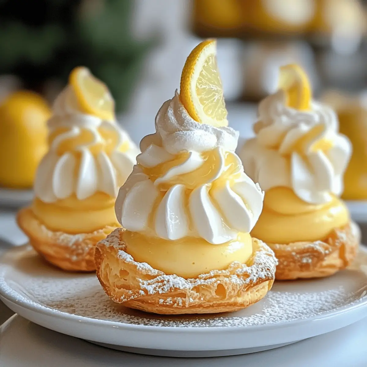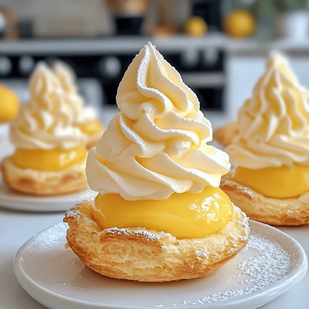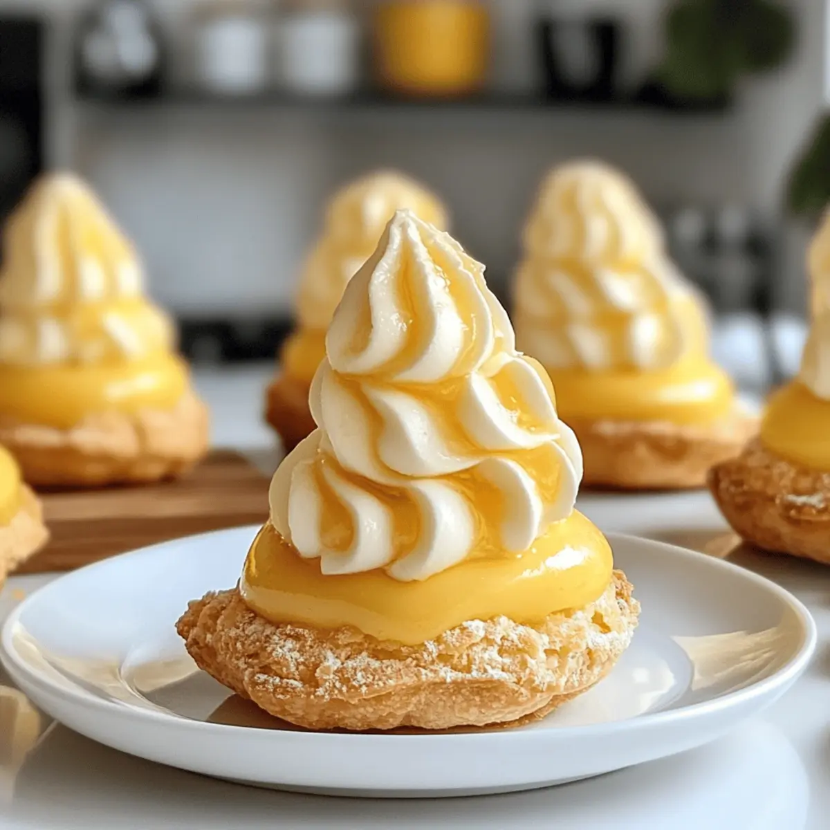 Frisch aus dem Kühlschrank kommen sie, die eleganten Luftigen Brandteiggebäcke gefüllt mit Zitronencreme! Diese tollen Leckereien sind nicht nur ein Fest für die Augen, sondern auch eine erfrischende Ablenkung von schwerem Fast Food. Jedes Gebäck vereint einen knusprigen Keksboden mit einer luftig-leichten Zitronenmousse und einer spritzigen Zitronencreme, die beim ersten Biss gleich für gute Laune sorgt. Ob für fröhliche Frühlingsfeiern oder entspannte Brunches, diese no-bake Köstlichkeiten sind schnell zubereitet und lassen sich prima im Voraus einfrieren. Neugierig geworden, wie man diese kleinen Leckerbissen ganz einfach selbst zaubern kann? Warum sind diese Brandteiggebäcke so besonders? Frisch und leicht: Diese luftigen Brandteiggebäcke sind die perfekte Antwort auf die Frage nach einem erfrischenden Dessert, das sich leicht zubereiten lässt. Mit nur wenigen Zutaten zaubern Sie ein Highlight auf jeder Feier! Fantasievolles Aussehen: Mit ihrer glänzenden Außenschicht sehen die Gebäckstücke nicht nur appetitlich aus, sondern ziehen auch alle Blicke auf sich – ideal für die Präsentation auf Festlichkeiten. Geschmacksexplosion: Der harmonische Mix aus knusprigem Keksboden, zarter Zitronenmousse und spritziger Zitronencreme sorgt für ein Geschmackserlebnis, das alle begeistert. Einfach und praktisch: Sie lassen sich im Voraus zubereiten und einfrieren, sodass sie immer bereit sind, wenn die Lust auf etwas Süßes kommt. Setzen Sie noch einen drauf, indem Sie sie mit einer selbstgemachten Zitronencreme füllen! Vielseitig: Diese schnellem feinen Leckereien sind ideal für verschiedene Anlässe, sei es ein eleganter Brunch oder eine fröhliche Frühlingsfeier! Zutaten für luftige Brandteiggebäcke gefüllt mit Zitronencreme • Für das Keksboden: Graham Crackers – Diese geben dem Boden seine butterige Struktur; sie können auch durch zerbröselte Shortbread-Kekse ersetzt werden. • Für die Zitronenmousse: Sahne – Schlagen Sie die Sahne steif, um eine luftige Textur zu erzielen. Vollfett-Zitronen-Joghurt – Für das beste Ergebnis empfiehlt sich vollfett Zitronen-Joghurt. • Für die Zitronencreme: Zitronensaft – Frisch gepresster Zitronensaft bringt die spritzige Note! Zucker – Sorgt für die nötige Süße der Creme. • Für die Überzugsauce: Weiße Schokolade – Schmelzen Sie sie für eine glänzende äußere Schicht; fügen Sie eventuell gelbe Lebensmittelfarbe hinzu, um das Erscheinungsbild zu verbessern. Diese luftigen Brandteiggebäcke gefüllt mit Zitronencreme sind ein wahrer Genuss, den man sich nicht entgehen lassen sollte! Step-by-Step Instructions für Luftige Brandteiggebäcke gefüllt mit Zitronencreme Step 1: Keksboden vorbereiten Zerbröseln Sie die Graham Crackers und vermengen Sie sie mit geschmolzener Butter zu einer gleichmäßigen Masse. Drücken Sie die Mischung fest in kleine Silikonformen, um die Keksböden zu formen. Lassen Sie diese im Kühlschrank für mindestens 30 Minuten fest werden, damit sie stabil sind. Step 2: Zitronencreme zubereiten In einem kleinen Topf geben Sie den frisch gepressten Zitronensaft und den Zucker. Erwärmen Sie die Mischung bei schwacher Hitze und rühren Sie ständig, bis sich der Zucker vollständig aufgelöst hat. Kochen Sie weiter, bis die Creme leicht eindickt, was etwa 10-15 Minuten dauern sollte. Lassen Sie die Zitronencreme anschließend auf Raumtemperatur abkühlen. Step 3: Zitronenmousse zubereiten Schlagen Sie die Sahne in einer großen Schüssel mit einem Handmixer oder einer Küchenmaschine, bis sie steif ist. Fügen Sie dann vorsichtig den vollfett Zitronen-Joghurt und die abgekühlte Zitronencreme hinzu. Mischen Sie alles sanft, bis eine luftige und cremige Konsistenz erreicht ist, die etwa 5 Minuten dauern sollte. Step 4: Brandteiggebäcke füllen Nehmen Sie die fest gewordenen Keksböden aus dem Kühlschrank und füllen Sie jede Form mit einem Esslöffel der vorbereiteten Zitronencreme. Lassen Sie darüber etwas Platz für die Zitronenmousse. Fügen Sie dann vorsichtig die Zitronenmousse hinzu, sodass die Formen gut gefüllt sind und eine schöne Oberfläche entsteht. Step 5: Überzugsauce zubereiten Schmelzen Sie die weiße Schokolade in einem Wasserbad oder in der Mikrowelle bei niedriger Leistung, bis sie glatt und flüssig ist. Optional können Sie gelbe Lebensmittelfarbe hinzufügen, um eine ansprechende Farbe zu erzielen. Achten Sie darauf, die Schokolade nicht zu überhitzen, damit sie nicht klumpig wird. Step 6: Gebäck überziehen Tauchen Sie die gefüllten Brandteiggebäcke vorsichtig in die geschmolzene weiße Schokolade, bis sie vollständig überzogen sind. Lassen Sie die überschüssige Schokolade abtropfen und setzen Sie die Gebäckstücke auf ein mit Backpapier ausgelegtes Blech, damit die Schokolade aushärten kann. Step 7: Einfrieren Legen Sie die fertigen luftigen Brandteiggebäcke gefüllt mit Zitronencreme für mindestens 2-3 Stunden in den Gefrierschrank, bis sie fest sind und die Schokolade komplett ausgehärtet ist. Dies sorgt dafür, dass die Desserts eine angenehme Konsistenz beim Servieren haben. Step 8: Servieren Nehmen Sie die Brandteiggebäcke aus dem Gefrierschrank und lassen Sie sie für etwa 10-15 Minuten bei Raumtemperatur stehen, bevor Sie sie servieren. So erreichen Sie die optimale Textur der Zitronenmousse und können das erfrischende Dessert in vollen Zügen genießen! Tipps für die besten luftigen Brandteiggebäcke Moldwahl: Verwenden Sie Silikonformen für eine einfache Entfernung und eine schöne Form der Brandteiggebäcke. Länger haltbar: Sie können diese Desserts bis zu einer Woche im Voraus zubereiten und im Gefrierschrank aufbewahren. Richtig auftauen: Lassen Sie die Brandteiggebäcke für 10-15 Minuten bei Zimmertemperatur oder 30 Minuten im Kühlschrank auftauen, um die beste Konsistenz zu erreichen. Refreezing vermeiden: Einmal aufgetaut, sollten die luftigen Brandteiggebäcke gefüllt mit Zitronencreme nicht erneut eingefroren we