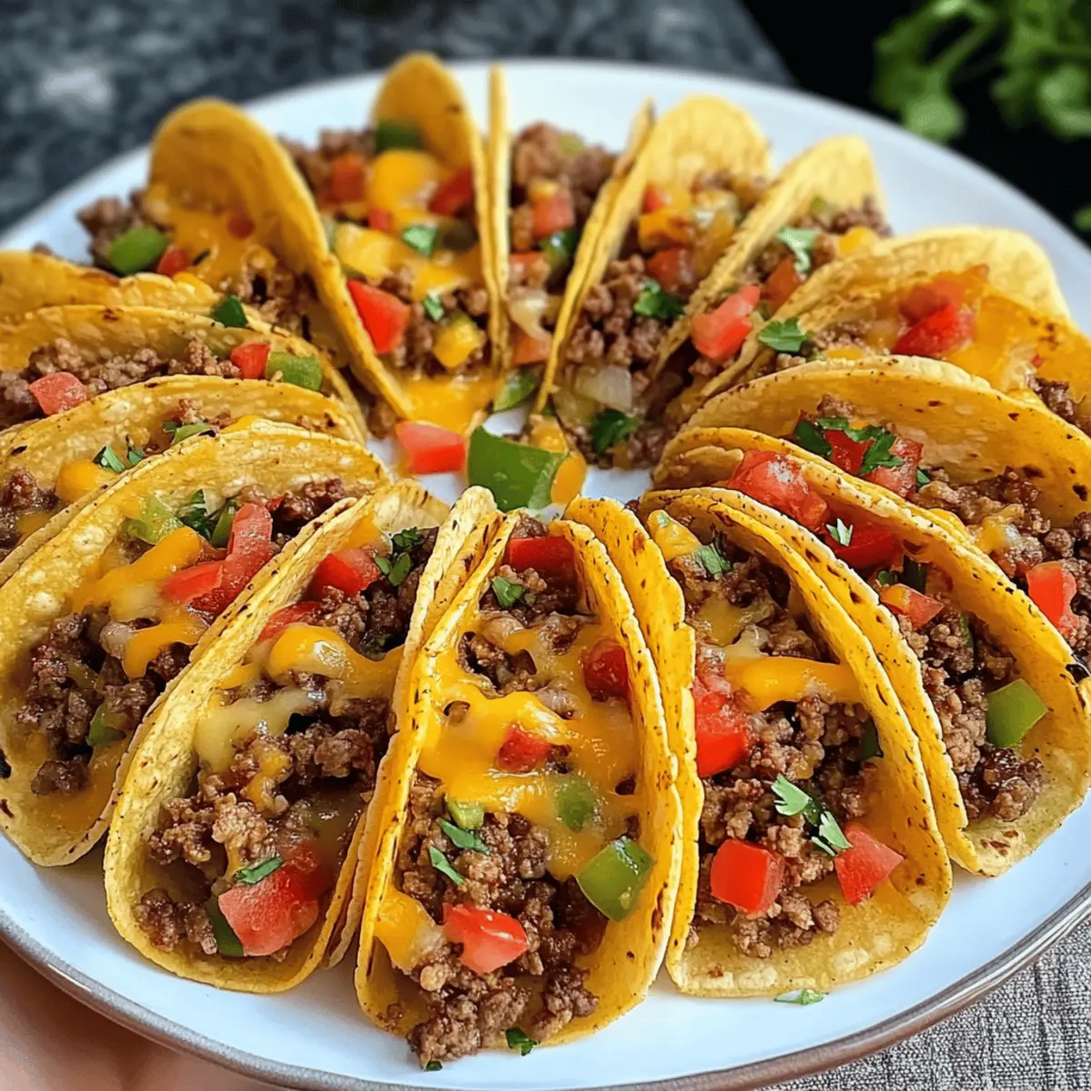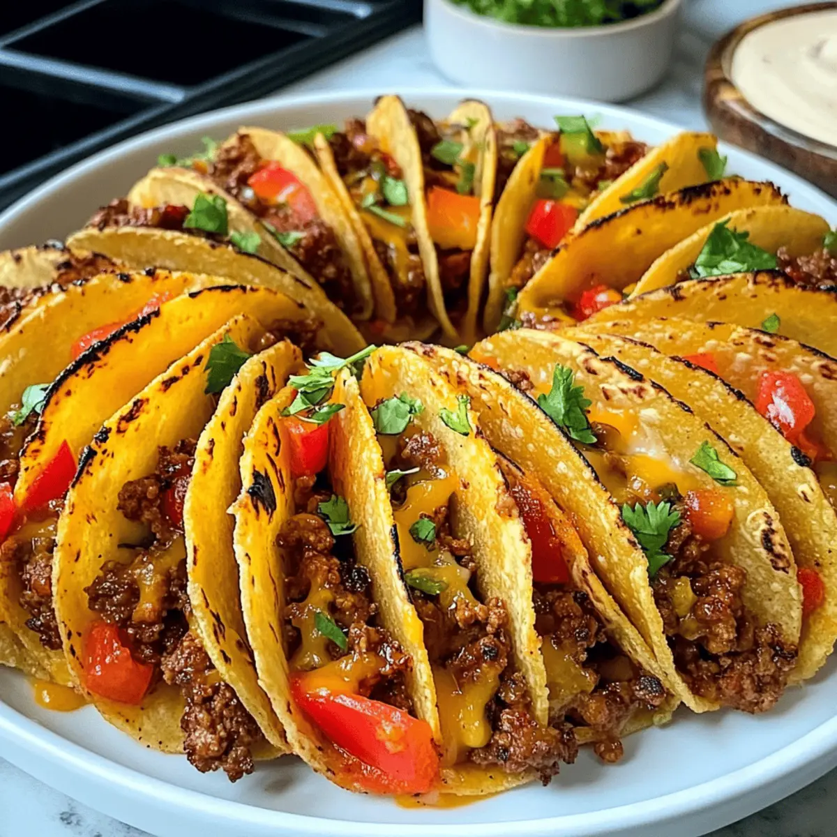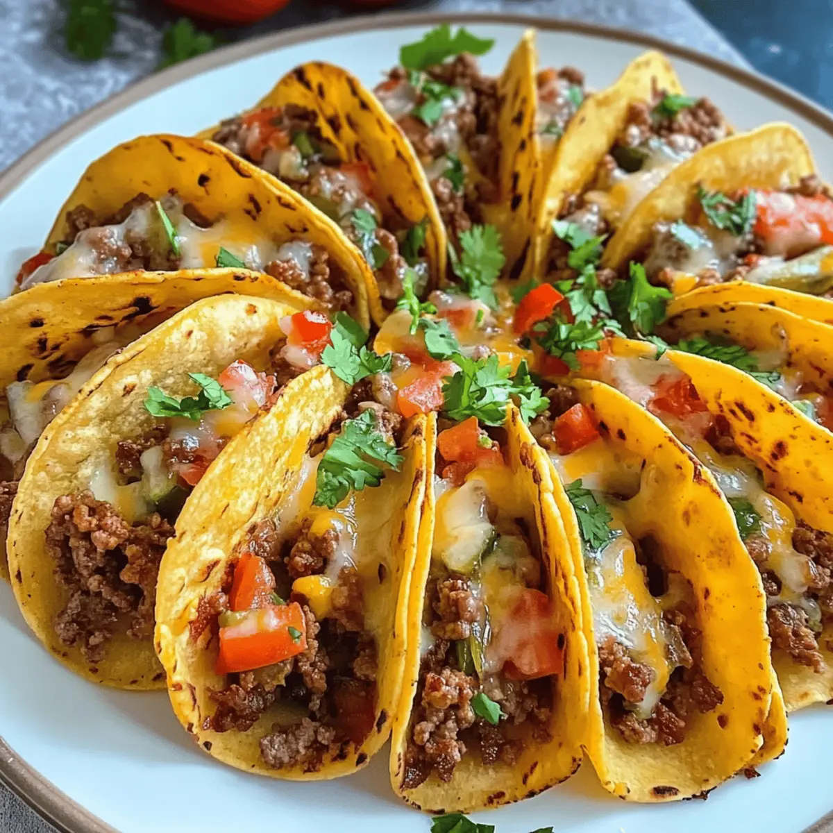 Als ich neulich mit Freunden zusammenkam, fiel mir ein aufmunterndes Geräusch auf: das Knacken von frisch gebackenen Mini-Tacos. Diese knusprigen Mini-Tacos mit würziger Rinderfüllung sind die ideale Lösung, wenn es um schnelles und köstliches Fingerfood geht. Sie sind nicht nur ein echter Hingucker, sondern bieten auch eine Fülle von Geschmack, die begeistern wird. Die Zubereitung ist einfach und lässt viel Raum für kreative Anpassungen – perfekt, um jedem Geschmack gerecht zu werden. Egal, ob als Snack auf einer Party oder als entspanntes Abendessen, diese Taco-Variationen sind immer ein Hit. Was sind eure liebsten Toppings für Mini-Tacos? Warum sind diese Mini-Tacos einzigartig? Einfachheit: Diese Mini-Tacos sind schnell zubereitet und benötigen nur grundlegende Kochkenntnisse. Vielseitigkeit: Die Füllung kann ganz nach gustus verändert werden – von würzigem Rinderhack bis hin zu vegetarischen Alternativen. Fantastische Aromen: Die Kombination aus Gewürzen und frischen Zutaten sorgt für einen intensiven, herzhaften Geschmack, der jeden begeistert. Perfekte Handgröße: Als Fingerfood sind sie die ideale Lösung für Partys oder entspannte Abende – immer leicht zu genießen und perfekt portioniert. Geselligkeit: Serviert mit Dips wie Guacamole oder einer Joghurt-Kräuter-Sauce sorgen sie für eine gesellige Atmosphäre. Wenn ihr weitere kreative Füllideen sucht, schaut euch diese Variationen an! Mini-Tacos mit würzigem Hackfleischfüllung Zutaten • Diese Mini-Tacos mit würziger Hackfleischfüllung sind nach Belieben anpassbar und perfekt für jeden Anlass! Für die Wraps Tortillas – Medium-sized tortillas sind die Basis für perfekte Taco-Schalen; glutenfreie Optionen sind ebenfalls erhältlich. Für die Füllung Rinderhackfleisch (500g) – Sorgt für eine herzliche und geschmackvolle Basis; kann durch Putenhack oder pflanzliche Alternativen ersetzt werden. Canned Diced Tomatoes (400g) – Fügt Feuchtigkeit und eine angenehme Säure hinzu, frische Tomaten sind auch möglich. Käse (150g, gerieben) – Schmilzt wunderbar und verbessert den Geschmack; Cheddar oder Gouda sind empfehlenswert. Süße Paprika (1) – Liefert Süße und zusätzliche Textur; jede Farbe ist verwendbar. Rote Zwiebel (1) – Für einen Hauch von Schärfe in der Füllung; Schalotten sind eine milde Alternative. Mais (1 kleine Dose, abgetropft) – Fügt Süße und Knusprigkeit hinzu; frischer oder gefrorener Mais kann ebenfalls verwendet werden. Knoblauch (3 Zehen) – Bringt ein aromatisches Aroma; Knoblauchpulver kann auch genutzt werden, aber frisch ist empfehlenswert. Kochöl (2 Esslöffel) – Zum Anbraten der Gemüse und des Fleisches; Olivenöl oder neutrales Öl funktionieren gut. Süßes Paprika (1 Teelöffel) – Sorgt für Wärme und Farbe; geräuchertes Paprika gibt noch mehr Tiefe. Scharfes Paprika (½ Teelöffel) – Fügt der Füllung Schärfe hinzu; je nach Vorliebe anpassen. Currypulver (1 Teelöffel) – Bereichert die Geschmackstiefe; optional je nach persönlichem Geschmack. Cayenne-Pfeffer (½ Teelöffel) – Für extra Schärfe; nach Belieben reduzieren oder ganz weglassen. Für das Backen Backpapier oder Öl – Damit die Mini-Tacos nicht kleben bleiben, die Muffinform gut vorbereiten. Schritt-für-Schritt-Anleitung für Mini-Tacos mit würziger Hackfleischfüllung Step 1: Ofen vorheizen Heizen Sie den Ofen auf 200°C (392°F) vor. Dies ist wichtig, um sicherzustellen, dass die Mini-Tacos gleichmäßig und perfekt knusprig gebacken werden. Ein gut vorgeheizter Ofen sorgt dafür, dass die Außenseite der Mini-Tacos schön goldbraun wird. Step 2: Wraps vorbereiten Nehmen Sie die Tortillas und schneiden Sie mit einem Glas oder Ausstecher 4-5 kleine Kreise (7-8 cm Durchmesser) aus jedem Wrap aus. Diese kleinen Wraps werden die Grundlage für Ihre Mini-Tacos mit würziger Hackfleischfüllung bilden. Diese Vorbereitungszeit dauert nur wenige Minuten, ist jedoch entscheidend für die Form der Tacos. Step 3: Gemüse vorbereiten Würfeln Sie die süße Paprika, die rote Zwiebel und die Knoblauchzehen fein. Achten Sie darauf, dass die Stücke gleichmäßig klein sind, damit sie beim Anbraten schnell garen und gut im Tacoschelf verteilt werden können. Dies verleiht der Füllung eine schöne Textur und Aroma. Step 4: Mais abtropfen Öffnen Sie die Dose mit Mais und lassen Sie den Inhalt gut abtropfen. Stellen Sie den abgetropften Mais anschließend beiseite. Dies fügt der Füllung Süße und Knusprigkeit hinzu und hilft, den Geschmack Ihrer Mini-Tacos zu harmonisieren. Step 5: Fleisch anbraten Erhitzen Sie 2 Esslöffel Kochöl in einer großen Pfanne bei mittlerer Hitze. Fügen Sie das Rinderhackfleisch hinzu und braten Sie es an, bis es krümelig und gut durchgegart ist, was ungefähr 5-7 Minuten dauert. Stellen Sie sicher, dass das Fleisch gleichmäßig bräunt, um den vollen Geschmack freizusetzen. Step 6: Gemüse anbraten Sobald das Fleisch gar ist, fügen Sie die gewürfelte Zwiebel, den Knoblauch und die Paprika hinzu. Sautieren Sie das Ganze für etwa 3 Minuten, bis das Gemüse leicht weich wird und die Aromen sich vermischen. Dies wird Ihrer Füllung eine aromatische Tiefe verleihen. Step 7: Füllung verfeinern Löschen Sie die Mischung mit den gewürfelten Tomaten ab und fügen Sie den abgetropften Mais sowie die Gewürze hinzu. Rühren Sie alles gut um und lassen Sie die Mischung 5-10 Minuten bei schwacher Hitze köcheln, bis die Aromen gut vereint sind. Die Füllung sollte dick und aromatisch werden. Step 8: Muffinform vorbereiten Bereiten Sie ein Muffinblech vor, indem Sie es mit Backpapier auskleiden oder einfetten. Dies verhindert, dass die Mini-Tacos kleben bleiben, und sorgt dafür, dass sie beim Backen schön in Form bleiben. Diese Vorbereitung ist wichtig für das Backergebnis! Step 9: Mini-Tacos formen Formen Sie die kleinen Wraps in Taco-Schalen, indem Sie sie in die Muffinform drücken. Füllen Sie dann mit 1-2 Esslöffeln der Hackfleischfüllung und 