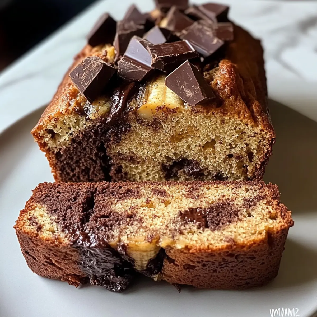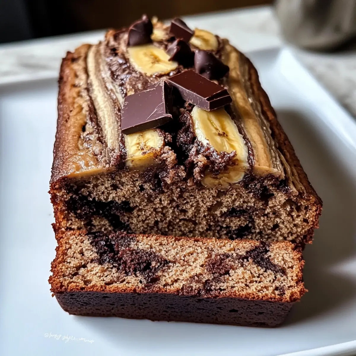 Eines morgens in meiner Küche stieg der verführerische Duft von frisch gebackenem Brot in die Luft und erinnerte mich daran, wie sehr ich die perfekte Kombination aus Schokolade und Kaffee liebe. Das Mocha Bananenbrot Rezept ist meine Antwort auf den Wunsch nach einer süßen Auszeit, die gleichzeitig das Verlangen nach etwas Herzhaftem stillt. Mit nur wenigen Zutaten zaubern Sie ein saftiges Brot, das nicht nur ein schnelles Frühstück verspricht, sondern auch als köstlicher Snack zum Nachmittagskaffee daherkommt. Diese vegane Köstlichkeit bringt die Geschmäcker von reifen Bananen, herzhaftem Kakao und einem Hauch Kaffee zusammen – ein echtes Geschmackserlebnis! Sind Sie bereit, dieses aromatische Stück Glück selbst auszuprobieren? Warum ist dieses Rezept so unwiderstehlich? Einfachheit: Dieses Mocha Bananenbrot Rezept erfordert nur wenige Zutaten und ist unkompliziert in der Zubereitung, perfekt für alle, die im Handumdrehen etwas Leckeres zaubern möchten. Aromatische Kombination: Der harmonische Geschmack von reifen Bananen, intensivem Kakao und starkem Kaffee vereint sich zu einem köstlichen Erlebnis, das Ihre Geschmacksknospen erfreuen wird. Vegan und gesund: Mit gesunden Fetten aus Pflanzenöl und der Süße der Bananen ist dieses Brot nicht nur eine süße Versuchung, sondern auch nährstoffreich. Vielseitiger Genuss: Dieses Brot eignet sich nicht nur als Frühstück, sondern auch als Snack zum Nachmittagskaffee – der ideale Begleiter für jede Tageszeit! Schnelles Backen: In weniger als 90 Minuten genießen Sie ein warmes, frisch gebackenes Brot, das garantiert nicht lange halten wird! Mocha Bananenbrot Rezept Zutaten Für den Teig • Reife Bananen – sorgen für natürliche Süße und Feuchtigkeit; verwenden Sie vollreife Bananen für den besten Geschmack. • Zucker – gibt zusätzliche Süße; können Sie nach Belieben reduzieren, je nach Reife der Bananen. • Eier – binden die Zutaten und sorgen für eine luftige Textur; bei veganem Bedarf Flax-Eier als Ersatz verwenden. • Öl – sorgt für Feuchtigkeit und Geschmack; kann durch geschmolzene vegane Butter ersetzt werden. • Mehl – bildet die Grundlage des Brotes; Vollkornmehl ist eine gesündere Alternative. • Kakaopulver – verleiht dem Brot einen köstlichen Schokoladengeschmack; ungesüßtes Kakaopulver ist empfehlenswert. • Backpulver – lässt das Brot aufgehen; stellen Sie sicher, dass es frisch ist, um die besten Ergebnisse zu erzielen. • Bikarbonat – sorgt zusätzlich für den Auftrieb; wichtig für die Konsistenz des Teigs. • Salz – verstärkt den Geschmack; sollte nicht weggelassen werden, um ein ausgewogenes Ergebnis zu erzielen. • Schokoladenstückchen – bringen reichhaltige Textur und Geschmack ins Brot; alternativ können auch vegane Schokoladenstückchen verwendet werden. • Starker Kaffee – intensiviert den Kaffeegeschmack; Espresso-Pulver kann ebenfalls für ein stärkeres Aroma verwendet werden. Schritt-für-Schritt-Anleitung für Mocha Bananenbrot Rezept Step 1: Ofen vorheizen Heizen Sie Ihren Ofen auf 175°C vor. Bereiten Sie währenddessen eine Kastenform vor, indem Sie sie leicht einfetten oder mit Backpapier auslegen, damit das Brot später problemlos herausgenommen werden kann. Dieser erste Schritt ist wichtig, damit Ihr Mocha Bananenbrot gleichmäßig und perfekt backt, wenn der Teig bereit ist. Step 2: Bananen zerdrücken Legen Sie die reifen Bananen in eine große Schüssel und zerdrücken Sie sie mit einer Gabel oder einem Kartoffelstampfer, bis sie größtenteils glatt sind. Achten Sie darauf, dass keine großen Stücke übrig bleiben, da dies die Textur des Mocha Bananenbrotes beeinflussen kann. Je riper die Bananen sind, desto süßer wird Ihr Brot! Step 3: Zutaten vermengen Fügen Sie nun Zucker, Eier und Öl zu den zerdrückten Bananen hinzu. Vermengen Sie alles gut mit einem Schneebesen oder einer Gabel, bis die Mischung schön cremig wird. Dieser Schritt sorgt dafür, dass alle feuchten Zutaten gleichmäßig verteilt sind, was für das Endergebnis Ihres Mocha Bananenbrotes entscheidend ist. Step 4: Trockene Zutaten einarbeiten Sieben Sie das Mehl, Kakaopulver, Backpulver, Bikarbonat und Salz in die Bananenmischung und rühren Sie vorsichtig mit einem Holzlöffel, bis alles gerade so vermischt ist. Übermixen Sie den Teig nicht, da er sonst zäh wird. Diese Mischung sorgt für die perfekte Konsistenz Ihres Mocha Bananenbrotes. Step 5: Schokoladenstückchen und Kaffee hinzufügen Fügen Sie nun die Schokoladenstückchen und den starken Kaffee zum Teig hinzu. Heben Sie alles vorsichtig unter, damit die Schokoladenstückchen gleichmäßig verteilt sind. Der Kaffee wird die Aromen intensivieren und sorgt für den charakteristischen Mocha-Geschmack, der Ihr Bananenbrot einzigartig macht. Step 6: Teig in die Form füllen Gießen Sie den fertigen Teig in die vorbereitete Kastenform. Verwenden Sie einen Spatel, um den Teig gleichmäßig zu verteilen und die Oberseite zu glätten. Stellen Sie sicher, dass die Kastenform nicht überfüllt ist, damit das Brot beim Backen genug Platz zum Aufgehen hat – das ist wichtig für die luftige Konsistenz! Step 7: Backen Backen Sie das Mocha Bananenbrot im vorgeheizten Ofen für 60 bis 70 Minuten. Überprüfen Sie den Gargrad, indem Sie einen Zahnstocher in die Mitte des Brotes stechen – er sollte sauber herauskommen oder nur ein paar feuchte Krümel haben. Achten Sie darauf, den Ofen während des Backens nicht zu öffnen, um gleichmäßige Hitze zu gewährleisten. Step 8: Abkühlen lassen Nehmen Sie das Mocha Bananenbrot aus dem Ofen und lassen Sie es für etwa 10 Minuten in der Form abkühlen. Danach vorsichtig auf ein Gitterrost stürzen, um es vollständig abkühlen zu lassen. Dies ist eine wichtige Phase, um die perfekte Textur zu gewährleisten, damit es nicht zu feucht wird – ein wesentlicher Punkt, um die reichhaltigen Aromen voll zur Geltung zu bringen! Mocha Bananenbrot Rezept Variationen Lassen Sie I