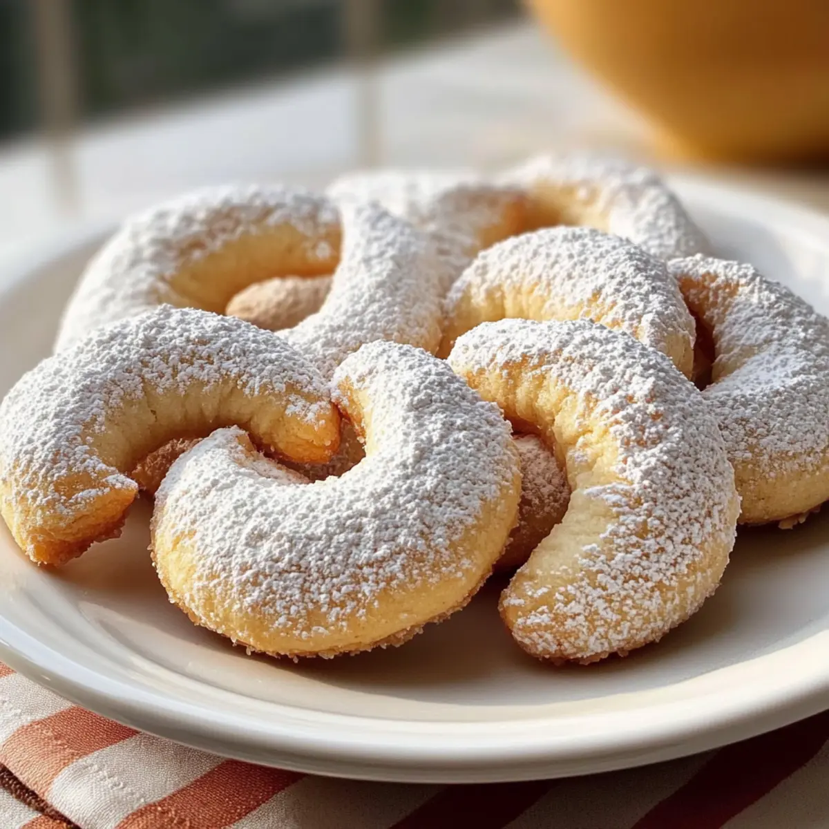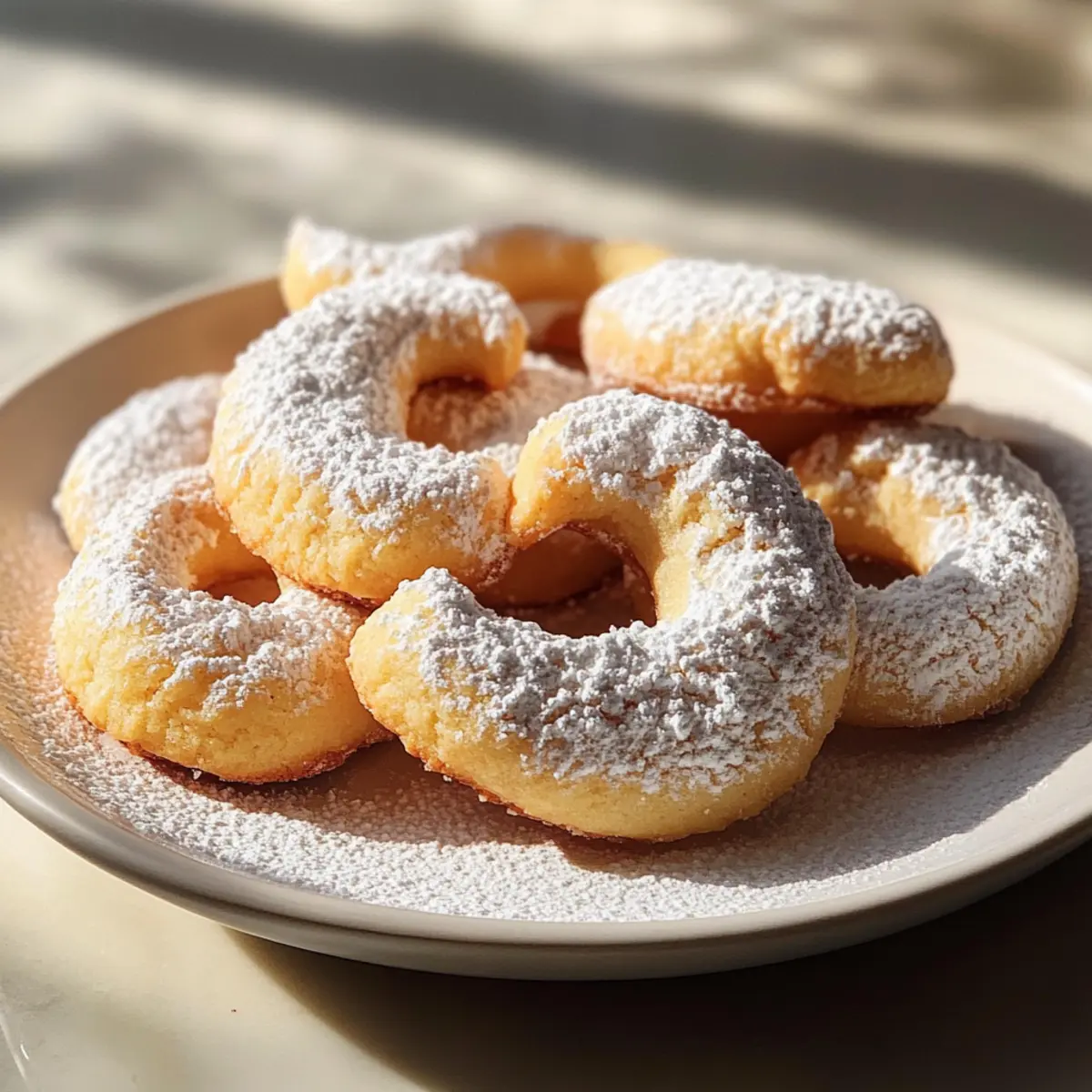 Ein Besuch auf jedem Weihnachtsmarkt in Deutschland ist unvollständig ohne den verführerischen Duft von frisch gebackenen Mürbe Vanillekipferl. Diese zarten, butterartigen Kekse sind nicht nur eine süße Versuchung, sondern auch eine Tradition, die seit Generationen in unseren Familien weitergegeben wird. Mit ihrem schmelzenden Mundgefühl und dem zarten Aroma von Vanille sind Mürbe Vanillekipferl der perfekte Begleiter für festliche Zusammenkünfte oder einfach für gemütliche Nachmittage mit Freunden und Familie. Dank ihrer schnellen Zubereitung sind sie ideal für alle, die sich eine kleine Auszeit vom hektischen Alltag gönnen möchten. Bereit, diese himmlischen Kekse selbst zu backen? Lass uns gemeinsam in die Kunst des Plätzchenbackens eintauchen! Warum sind Mürbe Vanillekipferl ein Muss? Traditioneller Genuss: Diese Mürbe Vanillekipferl sind mehr als nur Kekse – sie sind ein Teil unserer Kultur, die festliche Erinnerungen weckt. Zarte Textur: Mit ihrem schmelzenden Mundgefühl und der buttrigen Konsistenz sind sie eine wahre Gaumenfreude. Einfache Zubereitung: Der unkomplizierte Prozess macht es dir leicht, den Genuss selbst zu Hause zu kreieren – perfekt für alle, die dem Alltag entfliehen möchten! Vielseitige Variationen: Experimentiere mit verschiedenen Nüssen oder Aromen, um deinen persönlichen Twist zu finden, wie etwa mit schokoladigen Akzenten. Perfekt für jede Gelegenheit: Ob zu einem festlichen Anlass oder einfach bei einer Tasse Tee – diese Kekse sind die perfekte Begleitung. Einladung zum Teilen: Lade Freunde ein und genieße gemeinsam diese Leckerei; sie werden sich garantiert nach mehr sehnen! Mürbe Vanillekipferl Zutaten Die perfekten Zutaten für zarte Genussmomente: Für den Teig Weizenmehl Typ 405 – sorgt für die feine Textur der Kekse; andere Mehlsorten könnten das Ergebnis verändern. Puderzucker (Powdered Sugar) – bringt die süße Note und eine feine Konsistenz; probiere auch vanillierten Puderzucker für zusätzlichen Geschmack. Gemahlene Mandeln (Ground Almonds) – fügt feuchte und nussige Aromen hinzu; andere Nüsse wie Haselnüsse oder Walnüsse sind ebenfalls geeignete Alternativen. Salz (Salt) – hebt die süßen Aromen hervor und sorgt für ein rundes Geschmackserlebnis. Vanillezucker oder Vanilleextrakt (Vanilla Sugar or Extract) – verleiht das typische Aroma; für mehr Tiefe kannst du auch den Puderzucker mit einer Vanilleschote aromatisieren. Kaltes Butter (Cold Butter) – schafft die krümelige Textur; achte darauf, dass die Butter sehr kalt ist, um ein fettes Teiggefühl zu vermeiden. Für die Verzierung Puderzucker (Powdered Sugar) – ideal zum Bestäuben der warmen Kekse, damit der Zucker haften bleibt und für den süßen Abschluss sorgt. Step-by-Step Instructions for Mürbe Vanillekipferl Step 1: Teig vorbereiten Vermische in einer großen Schüssel das Weizenmehl, den Puderzucker, die gemahlenen Mandeln, das Salz und den Vanillezucker sorgfältig. Rühre gründlich um, damit keine Klumpen entstehen. Achte darauf, eine gleichmäßige und feine Mischung zu erhalten, um die basische Textur deiner Mürbe Vanillekipferl zu garantieren. Step 2: Butter integrieren Schneide die kalte Butter in kleine Würfel und füge diese zur Mehlmischung hinzu. Benutze einen Teigmischer oder deine Hände, um die Butter schnell unterzuarbeiten, bis ein glatter Teig entsteht. Pass dabei auf, nicht zu lange zu kneten, damit die Plätzchen ihre zarte, krümelige Struktur behalten. Step 3: Teig kühlen Forme den Teig zu einer Kugel und wickele ihn in Frischhaltefolie ein. Lasse den Teig für mindestens 30 Minuten im Kühlschrank ruhen. Dies stabilisiert die Butter und verbessert die Konsistenz, sodass die Mürbe Vanillekipferl später beim Backen perfekt in Form bleiben. Step 4: Plätzchen formen Nimm den gekühlten Teig aus dem Kühlschrank und teile ihn in kleine Portionen. Rolle jede Portion zu kleinen Logs und schneide sie in gleichmäßige Stücke. Forme die Stücke vorsichtig zu Halbmond- oder Crescent-Formen und achte darauf, sie nicht zu fest zu drücken, damit die zarte Struktur bleibt. Step 5: Ofen vorheizen Heize den Backofen auf 180 Grad Celsius (Ober-/Unterhitze) vor. Lege ein Backblech mit Backpapier aus, um ein Ankleben der Mürbe Vanillekipferl zu verhindern. Achte darauf, dass der Ofen vor dem Backen gut durchgeheizt ist, damit die Plätzchen gleichmäßig garen. Step 6: Backen Platziere die geformten Mürbe Vanillekipferl auf dem Backblech mit etwas Abstand. Backe sie für etwa 10-12 Minuten, bis sie leicht goldbraun an den Spitzen sind, aber trotzdem noch eine helle Farbe behalten. Behalte sie während des Backens im Auge, um ein Überbacken zu vermeiden. Step 7: Kekse abkühlen Lasse die Plätzchen nach dem Backen für etwa 5 Minuten auf dem Blech ruhen, damit sie sich setzen können. Dies hilft, ihre Struktur zu bewahren, bevor du sie vorsichtig auf ein Kuchengitter transferierst, um vollständig abzukühlen. Step 8: Mit Puderzucker bestäuben Während die Mürbe Vanillekipferl noch warm sind, wälze sie in Puderzucker, um ihnen eine süße und glitzernde Schicht zu geben. Achte darauf, dies schnell zu tun, damit der Zucker haftet, ohne zu schmelzen. Lasse die Kekse dann vollständig abkühlen und genieße ihre zarte Köstlichkeit. Mürbe Vanillekipferl im Voraus zubereiten Die Mürbe Vanillekipferl sind perfekt für geschäftige Wochen, denn du kannst den Teig bis zu 24 Stunden im Voraus vorbereiten und im Kühlschrank aufbewahren. Stelle einfach den Teig her, forme ihn zu einer Kugel und wickele ihn in Frischhaltefolie ein. Um die bestmögliche Qualität zu erhalten, achte darauf, den Teig gut zu kühlen, damit er nicht an Feuchtigkeit verliert. Wenn du bereit bist, die Kekse zu backen, forme einfach kleine Logs, forme die Halbmonde, und backe sie für etwa 10-12 Minuten. Dieses einfache Vorgehen spart dir Zeit und sorgt dafür, dass deine Mürbe Vanillekipferl frischer und köstlicher bleiben! Expertentipps für