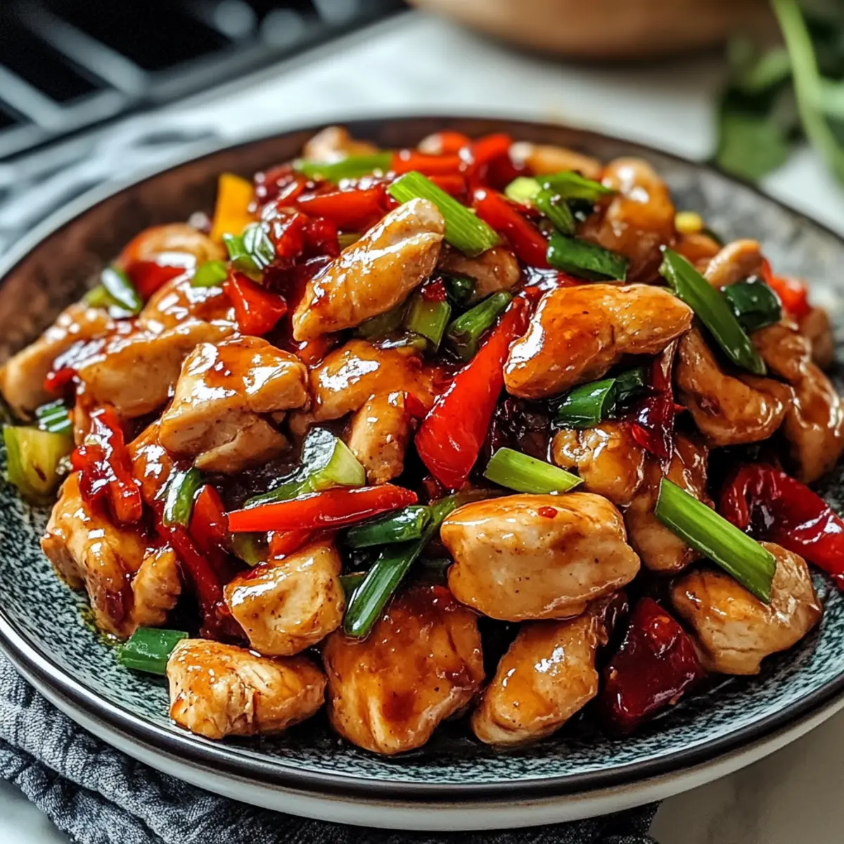 Als ich neulich mit einem Freund in einem kleinen Restaurant in Chinatown saß, wurde mir klar, wie sehr ich die Aromen der asiatischen Küche liebe. Besonders das mundwässrige Hunan-Hühnchen-Rezept hat es mir angetan – ein Gericht, das in nur 25 Minuten zubereitet ist und zugleich ein kulinarisches Fest für die Sinne darstellt. Die Kombination aus zartem Hühnerfleisch, knackigem Gemüse und einer perfekt gewürzten Sauce bringt nicht nur Farbe auf den Tisch, sondern lässt auch Herzen höher schlagen. Egal, ob du auf der Suche nach einer schnellen Abendessen-Idee oder einer glutenfreien Variante bist, dieses Rezept ist wandelbar und wird bestimmt auch deinen Lieblingsabend retten. Bist du bereit, die Geschmacksexplosion zu erleben? Warum wirst du dieses Rezept lieben? Schnelligkeit und Einfachheit: In nur 25 Minuten zauberst du ein köstliches Gericht, das perfekt in deinen hektischen Alltag passt. Aromatische Aromen: Die Kombination aus frisch gehacktem Knoblauch, ingwer und einer Mischung aus Gewürzen sorgt für eine Geschmacksexplosion auf deinem Teller. Vielseitigkeit: Ob glutenfrei oder vegetarisch, dieses Rezept lässt sich leicht an verschiedene Ernährungsbedürfnisse anpassen, sodass jeder davon genießen kann. Bunte Präsentation: Das kräftige Farbenspiel von knackigem Gemüse und zartem Hühnchen macht das Gericht nicht nur lecker, sondern auch ästhetisch ansprechend. Familienfreundlich: Dieses Hunan-Hühnchen eignet sich hervorragend für ein gemeinsames Abendessen mit der Familie. Jeder wird begeistert sein! Mundwässriges Hunan-Hühnchen-Rezept Zutaten Für das Hühnchen • Hühnerkeulen – die Hauptproteinquelle, die beim Kochen zart bleibt. • Maisstärke – sorgt für knusprige Textur und erhält die Feuchtigkeit. • Sojasauce – bringt Salzgehalt und Umami-Geschmack; verwende Tamari für eine glutenfreie Variante. • Sesamöl – ergänzt das Gericht mit Reichhaltigkeit; bei Bedarf kann auch neutrales Öl verwendet werden. Für die Sauce • Dunkle Sojasauce – intensiviert die Farbe und Tiefe; reguliere Sojasauce kann im Notfall ersetzt werden. • Reiswein – entscheidend für den authentischen Geschmack; trockener Sherry oder eine Brühe-Essig-Mischung sind Alternativen. • Zucker – balanciert die herzhaften Aromen; kann für weniger Süße reduziert werden. • Schwarzer Pfeffer – intensiviert das Geschmacksprofil. Für die Aromen und Gemüse • Knoblauch – die Basis für viele Aromen; frisch gehackt ist am besten. • Ingwer – fügt aromatische Tiefe hinzu; entscheidend für den Charakter des Gerichts. • Frische und getrocknete Chilis – sorgen für die nötige Schärfe; passe die Menge je nach Vorliebe an. • Paprika – bietet Crunch; kann durch Zuckerschoten oder Brokkoli ersetzt werden. • Frühlingszwiebeln – bringt eine frische Note und dient als Garnitur. Hinweis: Dieses mundwässrige Hunan-Hühnchen-Rezept ist vielseitig und kann ganz nach deinem Geschmack angepasst werden! Schritt-für-Schritt-Anleitung für das Mundwässriges Hunan-Hühnchen-Rezept Step 1: Hühnchen marinieren Beginne damit, die Hühnerkeulen in einer Schüssel mit Sojasauce, Maisstärke, Sesamöl und einer Prise Salz zu vermengen. Lasse das Hühnchen für mindestens 10 Minuten marinieren, damit es die Aromen gut aufnehmen kann. Während dieser Zeit kannst du alle anderen Zutaten vorbereiten und bereitlegen. Step 2: Sauce zubereiten In einer separaten Schüssel die dunkle Sojasauce, Reiswein, Zucker, Maisstärke, schwarzen Pfeffer und Hühnerbrühe gut miteinander vermischen. Achte darauf, dass keine Klumpen entstehen und die Sauce eine gleichmäßige Konsistenz hat. Dies ist entscheidend für den Geschmack des mundwässrigen Hunan-Hühnchen-Rezepts. Step 3: Wok erhitzen Erhitze deinen Wok bei mittelhoher Temperatur, bis er rauchig wird. Dann gib einen Schuss pflanzliches Öl hinzu und schwenke den Wok, so dass das Öl gleichmäßig verteilt wird. Ein gut erhitzter Wok sorgt dafür, dass das Fleisch eine schöne Kruste bekommt und die Aromen optimal zur Geltung kommen. Step 4: Hühnchen anbraten Füge die marinierten Hühnerkeulen in einer einzigen Schicht in den heißen Wok hinzu. Brate sie für etwa 2-3 Minuten, bis sie goldbraun sind. Dann rühre das Hühnchen um und brate es weiter, bis es vollständig durchgegart ist. Achte darauf, dass das Hühnchen saftig bleibt und eine schöne Farbe annimmt. Step 5: Aromen anbraten Sobald das Hühnchen gar ist, gib die frischen und getrockneten Chilis, den gehackten Knoblauch und den Ingwer hinzu. Brate alles für weitere 30 Sekunden an, bis die Aromen intensiv und duftend werden. Die Kombination dieser Zutaten verleiht dem mundwässrigen Hunan-Hühnchen-Rezept seinen charakteristischen Geschmack. Step 6: Gemüse hinzufügen Jetzt ist es Zeit, die Paprika in den Wok zu werfen und alles kräftig durchzurühren. Brate die Paprika 1-2 Minuten lang an, bis sie weich, aber noch knackig sind. Achte darauf, dass das Gemüse leuchtend und frisch aussieht, um das Gericht optisch ansprechend zu halten. Step 7: Zutaten kombinieren Gib das Hühnchen zurück in den Wok und füge die Frühlingszwiebeln hinzu. Gieße die vorbereitete Sauce über die Mischung und brate alles zusammen, bis die Sauce eindickt und das Gericht gleichmäßig überzogen ist. Der Wok sollte dabei bei mittlerer Hitze bleiben, damit alles gut durchzieht. Step 8: Finale Akzente setzen Zum Abschluss tröpfle etwas Sesamöl über das fertige Gericht und garniere es mit zusätzlichen Frühlingszwiebeln. So erhält das mundwässrige Hunan-Hühnchen-Rezept eine feine, aromatische Note. Serviere es noch heiß und genieße den Anblick der bunten Mischung auf deinem Teller. Was passt gut zum mundwässrigen Hunan-Hühnchen-Rezept? Das Zusammenspiel von Aromen und Texturen kann das Mundwässrige Hunan-Hühnchen-Rezept noch weiter heben und ein unvergessliches Esserlebnis schaffen. Cremige Reisnudeln: Diese zarten Nudeln saugen die köstliche Sauce auf und bieten 