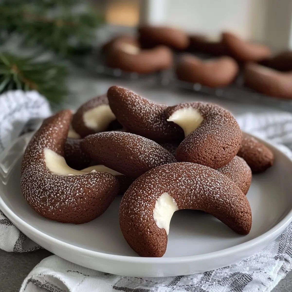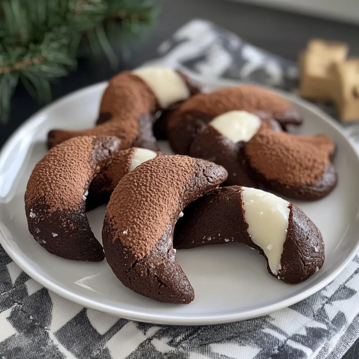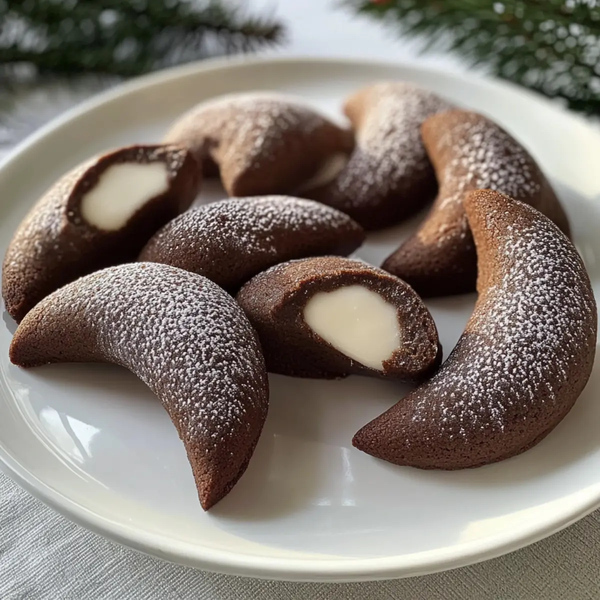 Wenn ich an die Festtage denke, kommen sofort die Erinnerungen an mein Zuhause und den verführerischen Duft von frisch gebackenem Gebäck in den Sinn. Unter all den süßen Versuchungen sticht eines besonders hervor: die Nougat-Kipferl. Diese köstlichen Kekse sind nicht nur ein wahrer Gaumenschmaus, sondern auch perfekt für all jene, die nach einer schnellen und einfachen Möglichkeit suchen, um Familie und Freunde zu begeistern. Mit ihrem zarten, schmelzenden Textur und dem reichhaltigen Schokoladengeschmack sind sie ein Highlight jeder Weihnachtsfeier. Darüber hinaus lassen sich die Nougat-Kipferl auch glutenfrei zubereiten, sodass wirklich jeder in den Genuss kommen kann. Bist du bereit, deine nächste Kaffeetafel mit diesen himmlischen Leckereien zu krönen? Warum wirst du die Nougat-Kipferl lieben? Einfachheit: Die Zubereitung ist unkompliziert und erfordert nur minimalen Aufwand – perfekt für hektische Feiertage. Verführerischer Geschmack: Der reichhaltige Schokoladengeschmack in Kombination mit der zarten Textur wird deine Geschmacksknospen verwöhnen. Vielseitige Anpassungen: Du kannst die Kipferl leicht glutenfrei zubereiten oder mit zusätzlichen Zutaten wie Nüssen oder Trockenfrüchten experimentieren, um deine persönliche Note hinzuzufügen. Familienfreundlich: Diese Kekse sind ein Hit bei Jung und Alt, ideal für deine nächste Kaffeetafel oder als festliches Dessert. Kostbare Erinnerungen: Backe sie zusammen mit deinen Liebsten und erschaffe unvergessliche Momente in der Weihnachtszeit. Verwöhne deine Familie mit diesen köstlichen Leckereien und entdecke auch unsere Tipps für das perfekte Weihnachtsgebäck! Nougat-Kipferl Zutaten Für den Teig • Weizenmehl – Gibt den Keksen Struktur; kann durch glutenfreies Mehl ersetzt werden. • Zucker – Sorgt für die nötige Süße; verwende Kokoszucker für eine niedrigere glykämische Option. • Margarine – Fügt Feuchtigkeit und Reichtum hinzu; ersetzbar durch ungesalzene Butter für einen traditionellen Geschmack. • Backpulver – Wirkt als Backtriebmittel für eine zarte Textur; kann weggelassen werden, um festere Kekse zu erhalten. • Nougatschokolade – Gewährleistet den reichen Schokoladengeschmack; jede bevorzugte Schokoladenmarke ist geeignet. • Kakaopulver – Verstärkt den Schokoladengeschmack; Instantkaffee kann für einen Kaffeegeschmack verwendet werden. Optionaler Belag • Puderzucker – Für einen süßen Schlussakzent; bestäube die fertigen Kekse vor dem Servieren. • Kakaopulver – Für einen intensiveren Schokoladengeschmack; ebenfalls zum Bestäuben verwendbar. Schritt-für-Schritt-Anleitung für Nougat-Kipferl Step 1: Margarine und Zucker cremig rühren In einer großen Rührschüssel die weiche Margarine und den Zucker mit einem Handmixer oder einer Küchenmaschine gut vermengen, bis die Mischung cremig und geschmeidig ist. Dies sollte etwa 3 bis 5 Minuten dauern. Achte darauf, dass keine Klümpchen zurückbleiben und die Masse schön luftig wird. Step 2: Mehl und Backpulver hinzufügen Gib nun das Weizenmehl und das Backpulver schrittweise in die Schüssel. Mische alles, bis ein weicher, homogener Teig entsteht. Das Mischen dauert etwa 2 bis 3 Minuten. Wenn der Teig zusammenkommt und sich von den Rändern der Schüssel löst, ist er perfekt. Step 3: Nougatschokolade und Kakaopulver unterheben Falte die grob gehackte Nougatschokolade und das Kakaopulver vorsichtig in den Teig ein, bis alles gleichmäßig verteilt ist. Achte darauf, den Teig nicht zu überarbeiten. Dies sollte etwa 1 bis 2 Minuten dauern und ergibt einen leckeren, schokoladigen Geschmack in deinen Nougat-Kipferl. Step 4: Teig kühlen Forme den Teig zu einer Kugel und wickele ihn in Frischhaltefolie. Lasse den Teig für etwa 30 Minuten im Kühlschrank ruhen, damit er fester wird. Dies erleichtert das Formen der Kipferl erheblich und verbessert die Textur der Kekse. Step 5: Ofen vorheizen Heize den Ofen auf 180°C (356°F) vor. Während der Ofen auf Temperatur kommt, kannst du bereits ein Backblech mit Backpapier auslegen, um die frisch geformten Nougat-Kipferl gleich darauf platzieren zu können. Step 6: Kipferl formen Nimm den gekühlten Teig aus dem Kühlschrank und forme kleine, halbmondförmige Kipferl. Lege die geformten Kekse auf das vorbereitete Backblech und lasse genügend Abstand zwischen den einzelnen Stücken, damit sie beim Backen nicht zusammenkleben. Dies sollte insgesamt etwa 15 bis 20 Minuten in Anspruch nehmen. Step 7: Backen Backe die Nougat-Kipferl im vorgeheizten Ofen für 12 bis 15 Minuten, bis sie fest, aber nicht bräunlich sind. Achte darauf, die Kekse während des Backens zu beobachten, da sie leicht überbacken werden können. Sie sollten am Ende weich und zart bleiben. Step 8: Auskühlen lassen Lasse die frisch gebackenen Kipferl nach dem Backen etwa 5 Minuten auf dem Blech ruhen, bevor du sie vorsichtig auf ein Kuchengitter zum vollständigen Abkühlen überträgst. Dies hilft, ihre Form zu bewahren und sie optimal abkühlen zu lassen. Expert Tips für perfekte Nougat-Kipferl Teig kühlen: Achte darauf, den Teig vor dem Formen gut zu kühlen; das erleichtert die Verarbeitung erheblich und verhindert ein Verkleben. Zutaten wiegen: Verwende eine Küchenwaage, um die Zutaten präzise abzuwiegen. Dies sorgt für die perfekte Konsistenz deiner Nougat-Kipferl. Backzeit beachten: Lass die Kekse im Ofen nicht zu lange, sie sollten fest, aber nicht braun sein. Zu langes Backen macht sie trocken. Variationen ausprobieren: Experimentiere mit verschiedenen Schokoladensorten oder füge Nüsse hinzu, um deine Nougat-Kipferl nach deinem Geschmack zu verfeinern. Aufbewahrung: Lagere die fertigen Kekse in einem luftdichten Behälter, um ihre Frische zu bewahren. So bleiben sie bis zu einer Woche köstlich. Aufbewahrungstipps für Nougat-Kipferl Raumtemperatur: Bewahre die Nougat-Kipferl in einem luftdichten Behälter auf, wo sie bis zu 3 Tage frisch bleiben. So bleibt ihre zarte Textur erhalten. Kühls