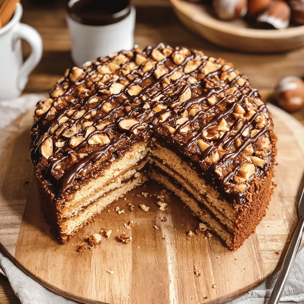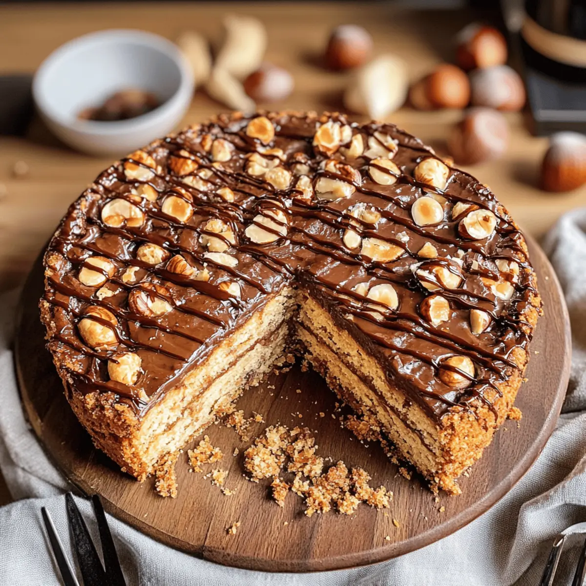 • Schokoladenschicht: Integriert geschmolzene Zartbitterschokolade direkt in die Nussmischung, um dem Kuchen eine reichhaltige, schokoladige Tiefe zu verleihen.