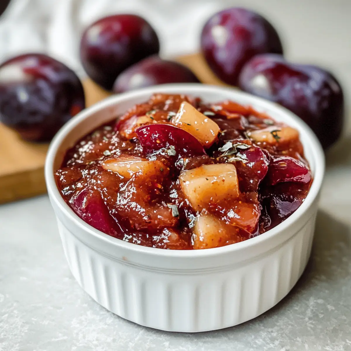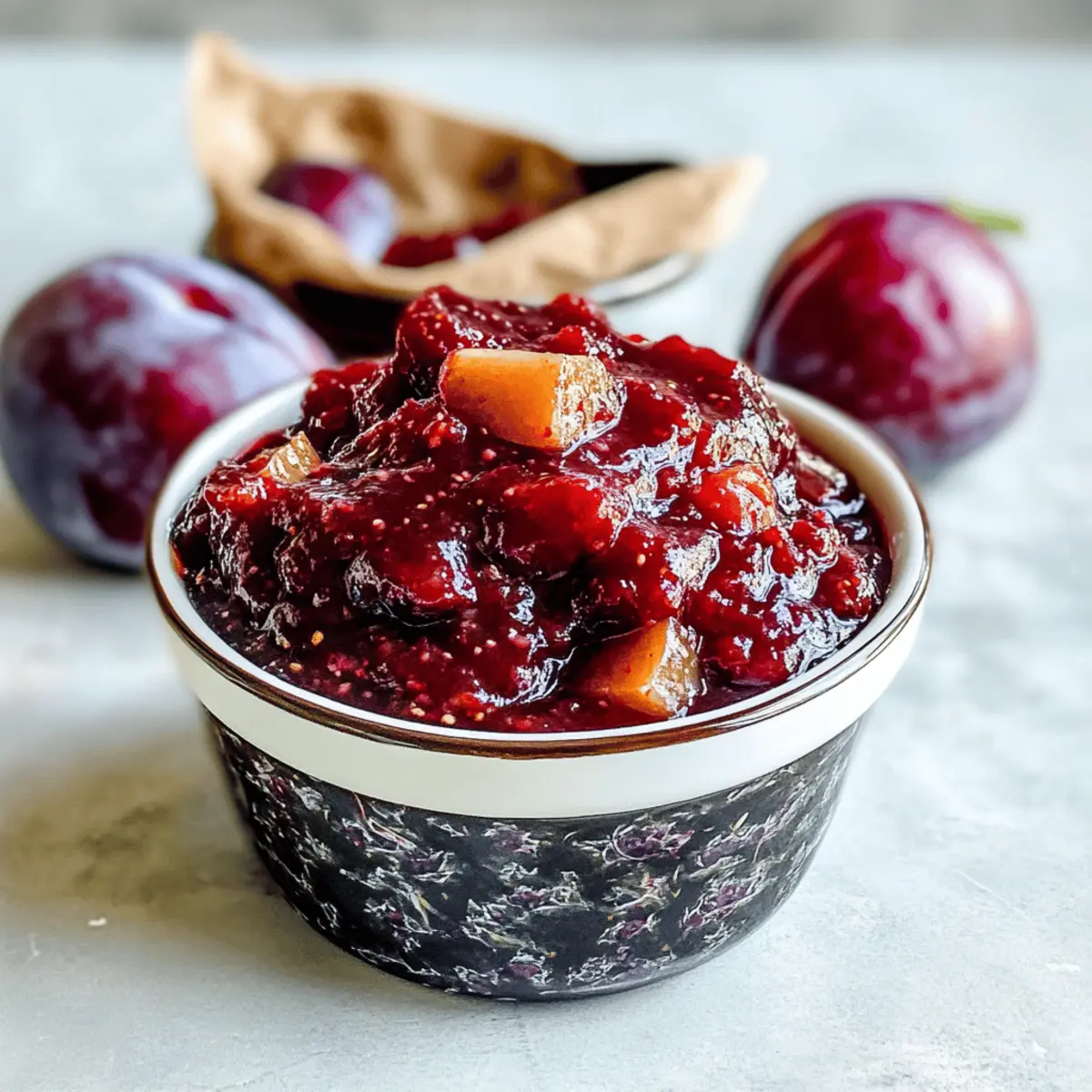 Als ich neulich einen Markt besuchte, überkam mich der verlockende Duft reifer Pflaumen. Diese fruchtigen kleinen Wunder inspirieren mich immer wieder zu kulinarischen Abenteuern, und so landete ich bei meinem neuesten Rezept: Pflaumen Chutney. Dieses einfache, süß-würzige Chutney bringt nicht nur eine herrliche Tiefe und Komplexität auf den Tisch, sondern es ist auch eine fantastische Möglichkeit, den Geschmack von saisonalen Früchten zu bewahren. Mit minimalem Aufwand entsteht ein vielseitiges Element, das perfekt zu Käseplatten oder gegrilltem Fleisch passt. Außerdem ist es eine wunderbare Art, eigene Vorräte anzulegen und das Genussniveau deiner Speisen zu heben. Bist du bereit, mit mir in die Welt des hausgemachten Chutneys einzutauchen? Warum ist Pflaumen Chutney so besonders? Einzigartiger Geschmack: Dieses Pflaumen Chutney vereint süße und scharfe Aromen, die perfekt harmonieren und jedes Gericht aufwerten. Einfache Zubereitung: Mit minimalem Aufwand zauberst du ein köstliches und gesundes Begleitgericht, das dich und deine Gäste begeistert. Vielseitig einsetzbar: Ob zu Käseplatten, gegrilltem Fleisch oder als Brotaufstrich – dieses Chutney passt zu zahlreichen Gerichten und Anlässen. Langhaltbar: Befülle deine Vorratsgläser und genieße die Aromen der Saison auch außerhalb der Pflaumensaison. Und wenn du nach mehr Inspiration suchst, schau dir auch unsere verschiedenen Rezeptideen für Chutneys an! Pflaumen Chutney Zutaten Hinweis: Hier sind die Zutaten für das leckere Pflaumen Chutney, das deinen Gaumen erfreuen wird! Für die Basis: Pflaumen – Hauptzutat, die Süße und Fruchtigkeit liefert; verwende reife, feste Pflaumen für beste Ergebnisse. Zwiebeln – Fügt herzhaften Tiefgang hinzu; gelbe Zwiebeln werden empfohlen. Knoblauch – Verleiht zusätzliche Geschmacksnuancen; frische Knoblauchzehen sind ideal. Olivenöl – Dient als Kochmedium zum Sautieren; kann durch neutrales Öl ersetzt werden. Brauner Zucker – Balanciert die Säure der Pflaumen aus; kann auch durch Ahornsirup ersetzt werden. Weißer Balsamico-Essig – Fügt Säure und Geschmacksfülle hinzu; kann durch Apfelessig ersetzt werden. Chili – Bringt Schärfe; die Menge je nach gewünschtem Schärfegrad anpassen. Zimt – Verleiht Wärme und einen Hauch Gewürz; optional je nach persönlichem Geschmack. Thymian – Bietet kräuterige Noten; frischer Thymian ist ideal, kann aber durch getrockneten ersetzt werden. Pfeffer – Fügt Würze hinzu; verwende schwarzen Pfeffer oder passe nach Geschmack an. Step-by-Step Instructions for Pflaumen Chutney Step 1: Zutaten vorbereiten Wasche die reifen Pflaumen gründlich, schneide sie auf und entferne die Kerne; würfle sie in kleine Stücke. Schneide die Zwiebeln in feine Würfel und hacke die frischen Knoblauchzehen ebenfalls klein. Stelle sicher, alle Zutaten griffbereit zu haben, um den Kochprozess zu erleichtern. Step 2: Aromaten anbraten Erhitze in einem großen Topf bei mittlerer Hitze etwa 2 Esslöffel Olivenöl. Füge die gewürfelten Zwiebeln und den gehackten Knoblauch hinzu und brate alles für ca. 5-7 Minuten an, bis die Zwiebeln glasig und weich sind. Achte darauf, dass der Knoblauch nicht anbrennt, da er bitter werden kann. Step 3: Zutaten kombinieren Gib die vorbereiteten Pflaumen zusammen mit dem braunen Zucker, dem weißen Balsamico-Essig, der gehackten Chili, dem Zimt und dem frischen Thymian in den Topf. Rühre alles gut um, damit sich die Aromen vermischen und die Pflaumen anfangen, ihren Saft freizugeben. Step 4: Köcheln lassen Lasse die Mischung bei schwacher bis mittlerer Hitze etwa 45 Minuten köcheln, wobei du gelegentlich umrührst. Die Konsistenz sollte sich allmählich verdicken, und die Farbe des Pflaumen Chutneys wird intensiver. Achte darauf, dass nichts am Boden des Topfes anhaftet. Step 5: Abfüllen Sobald das Chutney die gewünschte Dicke erreicht hat, nimm den Topf vom Herd und entferne die Thymianzweige. Fülle das heiße Pflaumen Chutney sofort in zuvor sterilisierten Gläsern, bis sie randvoll sind. Verschließe die Gläser sofort, während das Chutney noch heiß ist, um die Haltbarkeit zu gewährleisten. Was passt gut zu Pflaumen Chutney? Erlebe die wunderbaren Kombinationen, die dein Pflaumen Chutney zu einem unvergesslichen Erlebnis machen können. Käseplatte: Eine Auswahl aus würzigem Käse, wie Brie oder Gouda, ergänzt perfekt die Süße des Chutneys. Die Kombination aus cremigem Käse und fruchtigem Chutney sorgt für ein harmonisches Geschmackserlebnis. Gegrilltes Fleisch: Das würzige Chutney verleiht Grillgerichten, wie Hühnchen oder Schweinefleisch, eine einzigartige Note. Es wirkt nicht nur als leckere Sauce, sondern bringt auch eine wunderbare Frische in die Mahlzeit. Brot oder Baguette: Serviere dein Pflaumen Chutney auf frischem, knusprigem Brot oder warmem Baguette. Der Kontrast zwischen der knusprigen Textur und dem glatten Chutney ist einfach himmlisch. Salate: Als Dressing oder feine Beigabe hebt das Chutney den Geschmack von frischen Blattsalaten. Besonders fruchtige oder Nuss-Salate profitieren von diesem süß-würzigen Element. Desserts: Trau dich, das Chutney mit Vanilleeis oder Joghurt zu kombinieren. Die Süße der Pflaumen kann eine schöne Ergänzung zu nahen Geschmäckern sein und überrascht deine Gäste angenehm. Sekt oder Weißwein: Ein spritziger Sekt oder ein trockener Weißwein rundet das gesamte Menü ab und harmoniert mit den fruchtigen Noten des Chutneys. Meal Prep für Pflaumen Chutney leicht gemacht Die Zubereitung von Pflaumen Chutney ist ideal für vielbeschäftigte Köche, da du die Zutaten bis 24 Stunden im Voraus vorbereiten kannst! Beginne damit, die Pflaumen zu waschen, zu entkernen und klein zu würfeln, und lagere sie in einem luftdichten Behälter im Kühlschrank, um ihre Frische zu bewahren. Auch die Zwiebeln und der Knoblauch lassen sich problemlos im Voraus schneiden und ebenfalls kühlen. Wenn du bereit bist, das Chutney zuzubereiten, erhitze das O