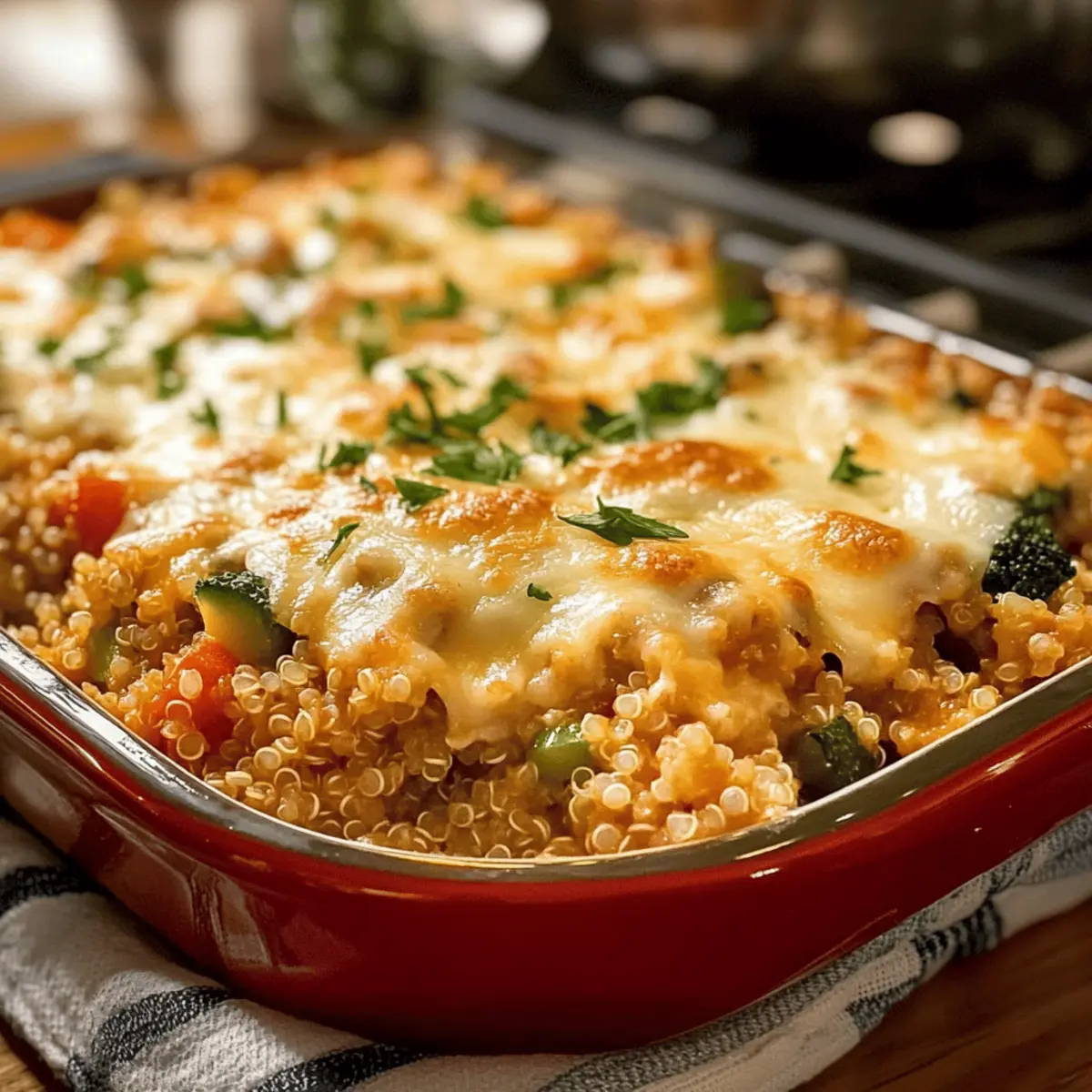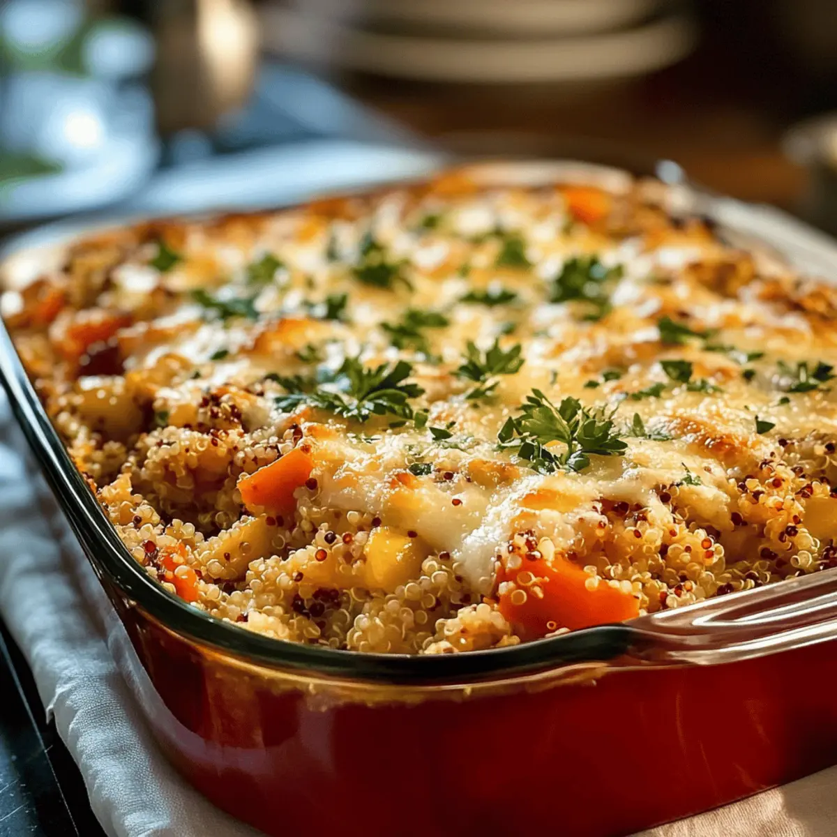 In einem kleinen Café in Italien beobachtete ich einmal eine Gruppe von Freunden, die mit Begeisterung ihre bunten Quinoa-Gerichte genossen. Es war eine wahre Freude zu sehen, wie das gemeinsame Essen im Mittelpunkt stand. Die Veggie-Packed Quinoa Casserole, die ich heute mit euch teile, erinnert mich an diese lebhaften Momente. Sie ist nicht nur ein Augenschmaus mit farbenfrohen Gemüsesorten, sondern bietet auch die Vorteile eines gesunden, schnellen Rezepts, das perfekt für geschäftige Wochentage ist. Mit ihrer cremigen Tomatensauce und dem geschmolzenen Käse ist diese Quinoa-Casserole vollgepackt mit Nährstoffen und sättigenden Zutaten und eignet sich ideal für die Mealprep oder als Highlight bei eurem nächsten Potluck. Seid ihr bereit, eure Küchen mit köstlichen Aromen zu füllen? Warum ist diese Quinoa-Casserole einzigartig? Vielfältige Aromen: Diese Casserole bringt eine bunte Mischung aus frischem Gemüse zusammen, die jeden Bissen zum Genuss macht. Einfach zuzubereiten: Mit minimalem Aufwand ist das Rezept perfekt für beschäftigte Wochentage oder wenn Gäste vorbeikommen. Anpassungsfähig: Du kannst das Gemüse je nach Saison oder Vorlieben variieren und so stets neue Geschmackserlebnisse schaffen. Gesund und nahrhaft: Reich an Proteinen und Vitaminen macht diese Casserole eine wahren Nährstoffbomben für deine Küche. Perfekte Beilage: Sie lässt sich ideal mit einem frischen Salat oder geröstetem Gemüse kombinieren und ist ideal für Mealprep. Lasst euch von diesem Rezept begeistern! Zutaten für Quinoa Casserole mit vielen Gemüseleckereien • Hier sind die wesentlichen Zutaten, die diese köstliche und nahrhafte Quinoa Casserole mit vielen Gemüseleckereien zum Leben erwecken. Für die Casserole Quinoa – Bildet die nahrhafte Basis und sorgt für einen nussigen Geschmack; kann durch braunen Reis oder Farro ersetzt werden. Gemüsebrühe – Verleiht der Quinoa zusätzlichen Geschmack; als Alternative kann auch Wasser verwendet werden. Olivenöl – Gibt Reichtum und hilft beim Anbraten der Gemüse; Avocadoöl ist eine gute Alternative. Zwiebel – Sorgt für aromatische Süße; kann durch Schalotten ersetzt werden. Knoblauch – Fügt Tiefe und Geschmack hinzu; verwenden Sie frischen oder granulierten Knoblauch als Alternative. Paprika – Bringt Süße und Farbe ins Gericht; jede Farbe oder auch Jalapeños für etwas Schärfe sind geeignet. Zucchini – Liefert Feuchtigkeit und Nährstoffe; kann durch gelben Kürbis ersetzt werden. Kirschtomaten – Bieten Süße und Säure; können durch gewürfelte normale Tomaten ersetzt werden. Babyspinat – Bringt Nährstoffe und Volumen; alternativ kann auch Grünkohl verwendet werden. Champignons – Fügen Umami-Geschmack und Textur hinzu; lassen sich durch Auberginen ersetzen oder ganz weglassen. Oregano & Basilikum – Aromatische Kräuter, die das Gericht würzen; getrocknete italienische Gewürze sind eine feine Alternative. Räucherpulver – Fügt Wärme und Rauchgeschmack hinzu; normales Paprika kann für einen milderen Geschmack genutzt werden. Salz und Pfeffer – Essenziell für die Würze; nach Geschmack anpassen. Tomatensauce – Bildet eine cremige, würzige Basis; kann auch mit Marinara oder selbstgemachter Sauce ersetzt werden. Griechischer Joghurt – Sorgt für Cremigkeit ohne Schwere; pflanzlichen Joghurt als vegane Option verwenden. Rote Pfeffersplitter – Bringen Schärfe; können für ein milderes Gericht weggelassen werden. Mozzarella-Käse – Schmilzt wunderbar und sorgt für Komfort; vegane Käsealternativen sind ebenfalls möglich. Parmesan-Käse – Für eine herzhafte Kruste; Nährhefe ist eine vegane Option. Diese Zutaten machen die Quinoa Casserole mit vielen Gemüseleckereien zu einem nahrhaften und befriedigenden Genuss, den du unbedingt ausprobieren solltest! Schritt-für-Schritt-Anleitungen für Quinoa Casserole mit vielen Gemüseleckereien Step 1: Quinoa kochen Bringe in einem Topf die Gemüsebrühe zum Kochen. Füge die abgespülte Quinoa hinzu, reduziere die Hitze und decke den Topf ab. Lass die Quinoa bei schwacher Hitze etwa 12-15 Minuten köcheln, bis die Flüssigkeit vollständig aufgesogen ist. Fluffe die Quinoa mit einer Gabel und stelle sie beiseite. Step 2: Gemüse anbraten Erhitze in einer Pfanne das Olivenöl bei mittlerer Hitze. Sauté die Zwiebel und den Knoblauch für ca. 2 Minuten, bis sie duften. Anschließend gib die Paprika, Zucchini, Champignons und Kirschtomaten dazu und koche sie für 5-7 Minuten, bis sie weich sind. Rühre den Spinat und die Gewürze ein, bis der Spinat verwelkt ist. Nimm die Pfanne vom Herd. Step 3: Sauce vermengen In einer Schüssel mische die Tomatensauce, den griechischen Joghurt und die roten Pfeffersplitter gründlich, bis alles gut kombiniert ist. Diese cremige Mischung wird die Grundlage der Quinoa Casserole mit vielen Gemüseleckereien bilden und den Aromen Tiefe verleihen. Step 4: Ofen vorheizen Heize den Ofen auf 190°C vor, während du die vorbereitete Quinoa, das sautierte Gemüse und die Sauce in einer großen Auflaufform kombinierst. Vermische alles gründlich, sodass die Quinoa gleichmäßig mit dem Gemüse und der Sauce bedeckt ist. Step 5: Casserole backen Decke die Auflaufform mit Alufolie ab und backe die Quinoa Casserole mit vielen Gemüseleckereien etwa 20 Minuten lang im vorgeheizten Ofen. Nimm die Folie danach ab, streue den Mozzarella- und Parmesan-Käse darüber und backe das Gericht weitere 10 Minuten, bis der Käse sprudelnd und goldbraun ist. Step 6: Servieren und genießen Lass die fertige Casserole für 5 Minuten ruhen, damit sich die Aromen setzen. Garnier das Gericht nach Belieben mit frischer Petersilie oder Basilikum und serviere die Quinoa Casserole mit vielen Gemüseleckereien heiß. Variationen & Alternativen Lass deiner Kreativität freien Lauf und passe diese Quinoa-Casserole ganz nach deinem Geschmack an! Glutenfrei: Verwende statt Quinoa eine Mischung aus Reis und Hülsenfrüchten für eine ebenso s