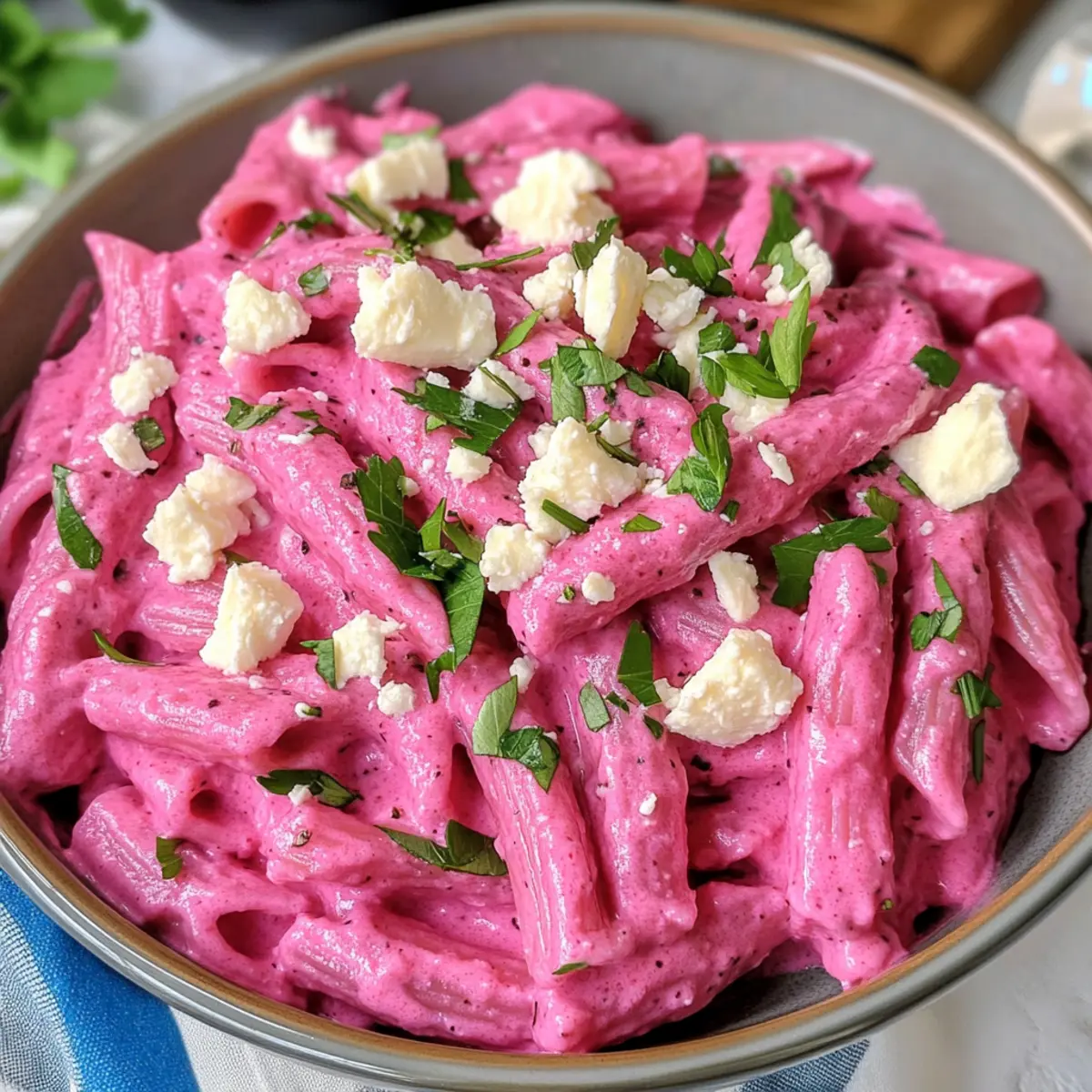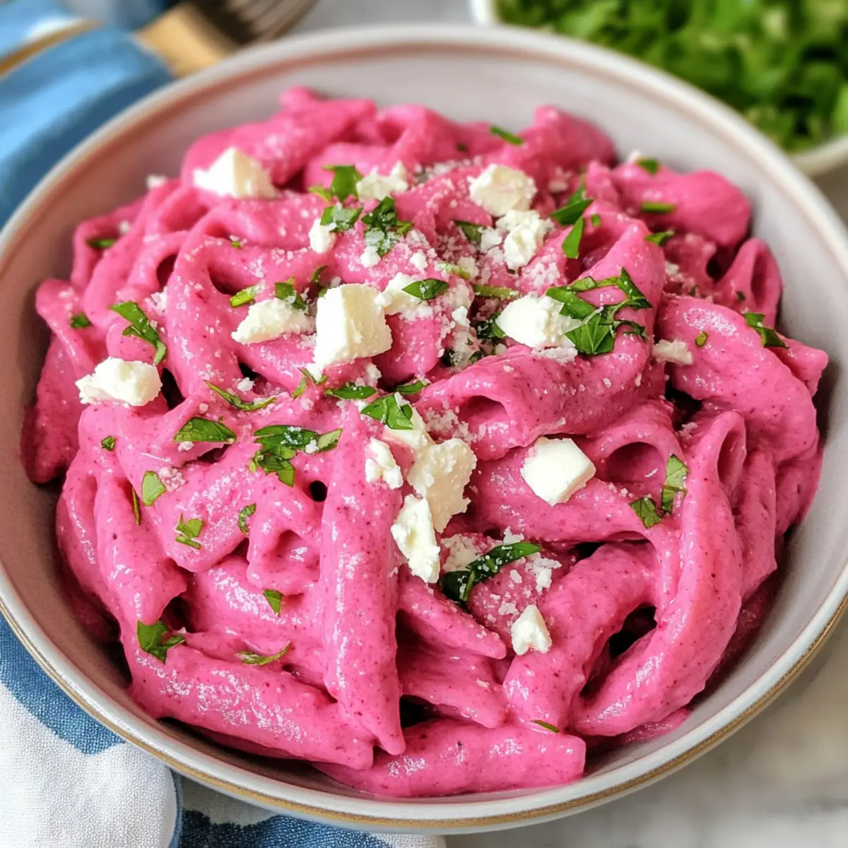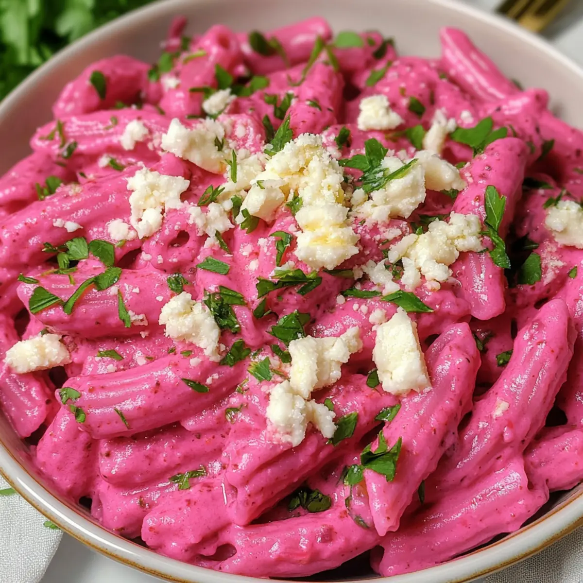Als ich das erste Mal Rote-Bete-Pasta-Sauce zubereitete, war ich skeptisch, ob meine Familie die leuchtend pinke Farbe wirklich mögen würde. Doch schon beim ersten Bissen war klar: Diese Pasta ist mehr als nur ein Auge-gemäßer Gag. Die Kombination aus süßem, geröstetem Rüben und cremigem Feta oder Paneer macht diese Rote-Bete-Pasta zu einem Lieblingsgericht – nicht nur bei den Erwachsenen, sondern auch bei den Kindern! Sie ist schnell zubereitet und bietet eine gesunde, schmackhafte Alternative zu herkömmlichen Pasta-Gerichten. Wenn Sie auf der Suche nach einem Rezept sind, das sowohl einfach als auch nahrhaft ist, könnte dieses Gericht die perfekte Wahl für Ihre nächste Mahlzeit sein. Möchten Sie das Geheimnis eines köstlichen vegetarischen Abendessens entdecken? Warum ist diese Rote-Bete-Pasta so besonders? Einzigartig in Farbe: Die leuchtend pinke Rote-Bete-Pasta bringt Farbe auf den Tisch und macht jede Mahlzeit zum Erlebnis. Gesund und Nahrhaft: Rote Bete ist nicht nur schmackhaft, sondern auch vollgepackt mit Vitaminen und Nährstoffen. Eine perfekte Auswahl für gesundheitsbewusste Essgewohnheiten! Einfach zuzubereiten: Die Schritte sind kinderleicht, sodass auch weniger erfahrene Köche perfekte Ergebnisse erzielen können. Vielseitig anpassbar: Egal ob mit Feta, Paneer oder veganen Alternativen – diese Sauce lässt sich ganz nach Geschmack abwandeln! Familienfreundlich: Mit dieser Pasta-Version bekommen selbst die kleinsten Gemüseverweigerer ihre Portion Nährstoffe. Kombinieren Sie es einfach mit einem frischen Salat oder knusprigem Brot für eine vollkommene Mahlzeit. Rote-Bete-Pasta-Sauce Zutaten • Diese Rote-Bete-Pasta-Sauce ist nicht nur köstlich, sondern auch einfach zuzubereiten! Für die Pasta • Pasta – Verwenden Sie Röhrenformen wie Penne oder Rigatoni, um die Sauce gut zu halten. Glutenfreie Optionen sind ebenfalls möglich. Für die Sauce • Rote Bete – Der Hauptbestandteil, der nicht nur die Farbe, sondern auch den einzigartigen Geschmack liefert; kann vorgekocht werden, um Zeit zu sparen. • Knoblauch – Sorgt für eine aromatische Tiefe; frisch ist am besten! • Zitronensaft – Balanciert die Süße der Rote Bete mit einer erfrischenden Säure; nach Geschmack anpassen. • Feta oder Paneer – Trägt zur Cremigkeit und zum Proteingehalt bei; Feta bringt eine salzige Note, während Paneer milder ist – vegan können Sie mit pürierter Seidentofu oder Cashew-Nüssen arbeiten. • Olivenöl – Ideal zum Anbraten der Zutaten und verleiht einen köstlichen Geschmack; andere Öle können ebenfalls verwendet werden. • Salz & Pfeffer – Grundlegende Gewürze, um den Geschmack zu optimieren; nach Geschmack hinzufügen. • Chili-Flocken (optional) – Für die Scharfen! Variieren Sie die Menge nach Belieben. Die Rote-Bete-Pasta-Sauce begeistert mit ihrer einzigartigen Farbe und einem tollen Geschmack, der sowohl Kinder als auch Erwachsene anspricht! Schritt-für-Schritt-Anleitung für Rote-Bete-Pasta-Sauce Step 1: Rote Bete vorbereiten Die Rote Bete gründlich waschen, schälen und in kleine Stücke schneiden. In einer Pfanne 2 Esslöffel Olivenöl erhitzen und den gehackten Knoblauch für 30–40 Sekunden anbraten, bis er aromatisch ist. Dann die Rote Bete und eine Prise Salz hinzufügen, weitere 1–2 Minuten anbraten. Fügen Sie 100 ml Wasser hinzu, decken Sie die Pfanne ab und lassen Sie die Mischung 13–15 Minuten bei mittlerer Hitze köcheln, bis die Rote Bete weich ist. Step 2: Pasta kochen In einem großen Topf ausreichend gesalzenes Wasser zum Kochen bringen. Die Pasta nach Packungsanweisung al dente kochen. Vergessen Sie nicht, 120 ml des Nudelwasser zurückzubehalten, bevor Sie die Pasta abgießen. Lassen Sie die gekochte Pasta abtropfen und stellen Sie sie beiseite, während Sie die Rote-Bete-Pasta-Sauce zubereiten. Step 3: Sauce zubereiten Die gekochte Rote Bete mit dem angebratenen Knoblauch in einen Standmixer geben. Fügen Sie 100 g Feta oder Paneer, den Saft einer Zitrone und die reservierten 120 ml Nudelwasser hinzu. Alles gut pürieren, bis eine cremige und glatte Konsistenz entsteht. Bei Bedarf noch mehr Wasser hinzufügen und die Sauce nach Geschmack mit Salz und Pfeffer würzen. Step 4: Pasta kombinieren Die cremige Rote-Bete-Pasta-Sauce in den großen Kochtopf mit der abgetropften Pasta geben. Alles sanft vermengen, sodass die Sauce gleichmäßig die Pasta umhüllt. Falls nötig, etwas mehr Nudelwasser hinzufügen, um die optimale Konsistenz zu erreichen. Zum Schluss die Pasta mit zerbröckeltem Feta oder Paneer und frischen Kräutern garnieren und servieren. Aufbewahrungstipps für Rote-Bete-Pasta-Sauce Zimmertemperatur: Bewahren Sie die Sauce nicht länger als 2 Stunden bei Zimmertemperatur auf, um die Frische zu erhalten. Kühlschrank: Reste der Rote-Bete-Pasta-Sauce können in einem luftdichten Behälter bis zu 3 Tage im Kühlschrank aufbewahrt werden. Gefrierfach: Die Sauce lässt sich bis zu 2 Monate im Gefrierfach aufbewahren. Füllen Sie sie in einen gefrierfesten Behälter und lassen Sie etwas Platz für die Ausdehnung. Wiederaufwärmen: Zum Erwärmen die gefrorene Sauce über Nacht im Kühlschrank auftauen und dann sanft in einem Topf erhitzen, dabei gegebenenfalls etwas Nudelwasser hinzufügen, um die gewünschte Konsistenz zu erreichen. Rote-Bete-Pasta-Sauce Variationen Lassen Sie Ihrer Kreativität freien Lauf und passen Sie die Rote-Bete-Pasta-Sauce ganz nach Ihrem Geschmack und Ihren Bedürfnissen an! Vegan-Option: Verwenden Sie statt Feta oder Paneer pürierte Seidentofu oder Cashew-Nüsse, um die Sauce cremig zu machen. Glutenfrei: Ersetzen Sie die Pasta durch glutenfreie Alternativen wie Linsen- oder Kichererbsenpasta, um das Gericht glutenfrei zu genießen. Extra Würze: Geben Sie frische Chilis oder geräucherte Paprika hinzu, um der Sauce eine feurige Note zu verleihen. Dies sorgt für ein aufregendes Geschmackserlebnis! Kräutervielfalt: Experimentieren Sie mit verschiedenen frischen Kräut