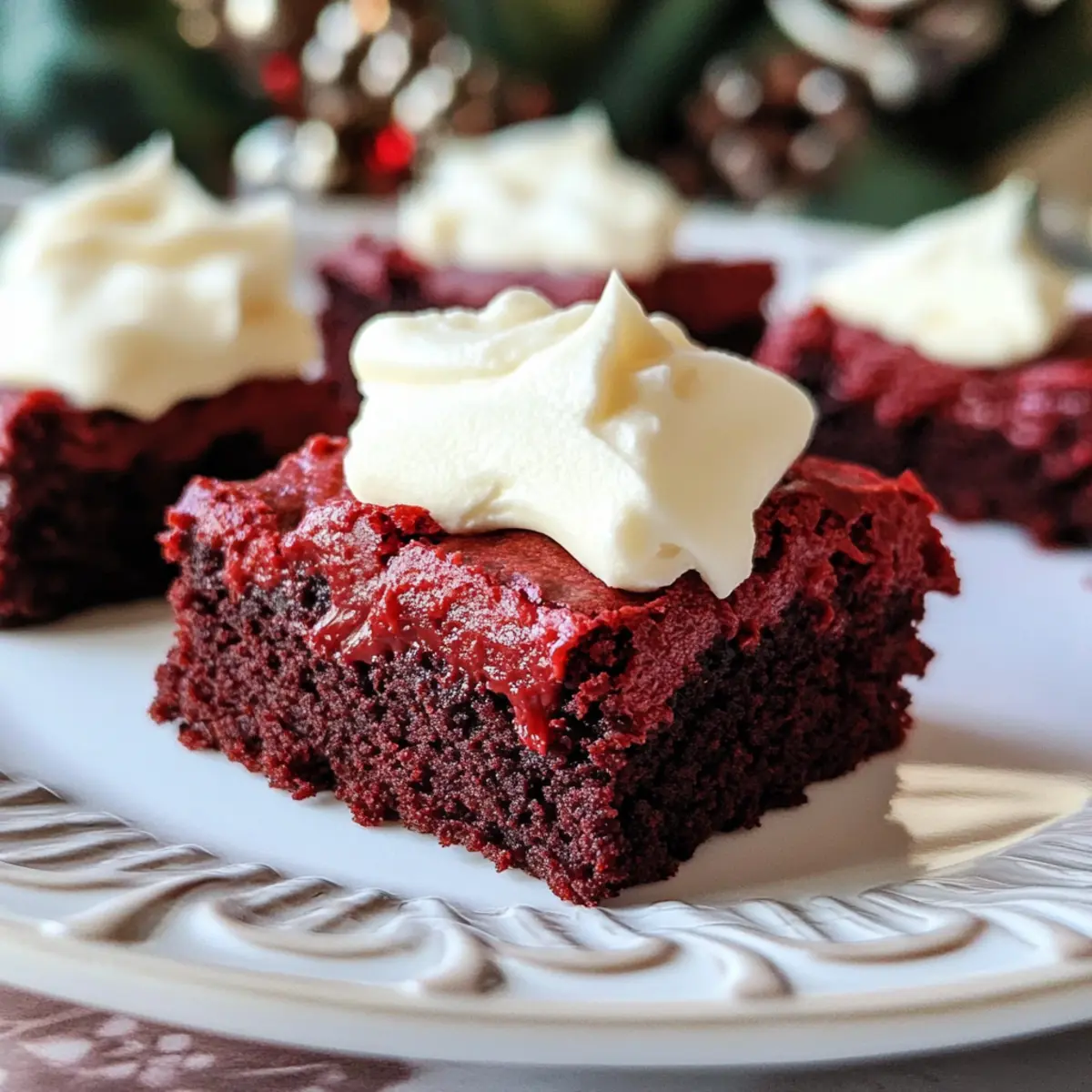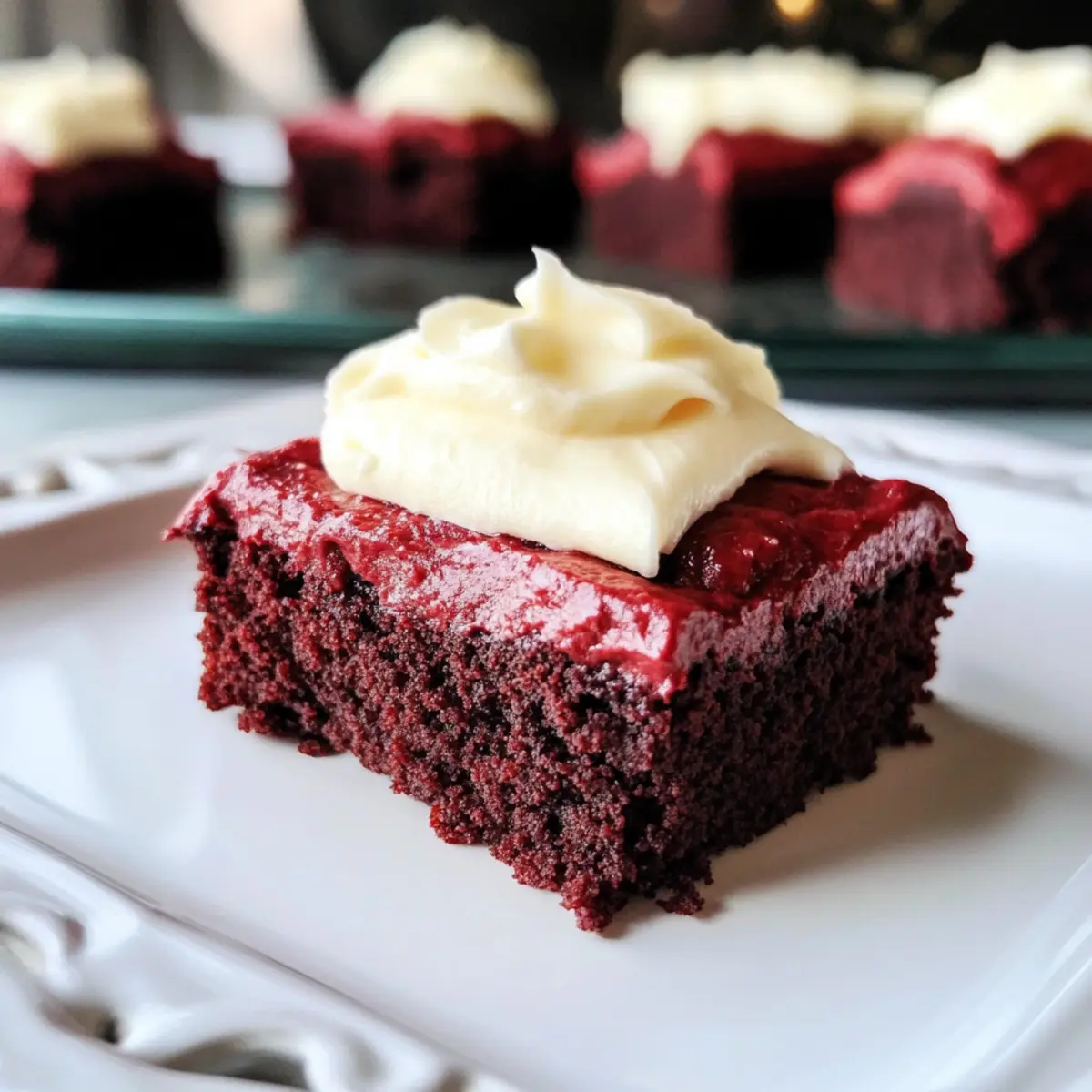 Kaum etwas kann so sehr die Sinne betören wie der Anblick von frisch gebackenen Rotvelvet-Braunies mit einer cremigen Frischkäse-Glasur. Diese köstlichen Leckerbissen sind mehr als nur ein Dessert; sie sind der perfekte Ausdruck von Liebe und Geselligkeit, ideal für Feiertage oder romantische Abende. Die Zubereitung der Chewy Rotvelvet-Braunies ist erfreulich einfach und das Ergebnis wird selbst die anspruchsvollsten Naschkatzen begeistern. Die saftigen, chewy Texturen harmonieren wunderbar mit dem zarten, leicht säuerlichen Geschmack der Frischkäse-Glasur. Sind Sie bereit, Ihre nächste Kuchenschlacht zu gewinnen? Tauchen wir ein in dieses verführerische Rezept! Warum sind Rotvelvet-Braunies so unwiderstehlich? Unvergleichlicher Geschmack: Die Kombination aus zartem Schokoladengeschmack und frischem Frischkäse sorgt für ein Geschmackserlebnis, das Sie lieben werden. Einfache Zubereitung: Dieses Rezept ist unkompliziert und eignet sich hervorragend für Hobbyköche, die sich nicht lang mit der Küche aufhalten möchten. Perfekte Konsistenz: Die chewy Textur der Brownies wird durch das cremige Frosting perfekt ergänzt – ein wahrer Genuss in jedem Bissen. Vielfältig anpassbar: Ob mit Nüssen oder Schokoladenstückchen, die Variationen sind unendlich! Dieses Rezept ist zudem ideal für Feierlichkeiten, sodass Sie Ihre Lieben stets beeindrucken können. Wenn Sie weitere kreative Ideen suchen, probieren Sie doch auch unseren Rote Bete Dip als Sidekick! Zutaten für Rotvelvet-Braunies Für die Brownies: • Ungesalzene Butter – sorgt für Feuchtigkeit und Reichhaltigkeit in den Brownies. Margarine kann bei Bedarf substituiert werden. • Weizenmehl – liefert Struktur und Textur. Für glutenfreie Optionen verwenden Sie eine glutenfreie Mehlmischung. • Kakaopulver – verleiht einen subtilen Schokoladengeschmack und ist essenziell für den Rotvelvet-Geschmack. • Backpulver – wirkt als Treibmittel und sorgt für eine luftige Textur. • Feines Meersalz – hebt die Süße und den Gesamteindruck des Geschmacks hervor. • Große Eier – binden die Zutaten und sorgen für Feuchtigkeit; achten Sie darauf, dass sie zimmerwarm sind für besseres Mischen. • Zucker – süßt die Brownies und trägt zur chewy Textur bei. Brauner Zucker kann für einen intensiveren Geschmack verwendet werden. • Echter Vanilleextrakt – intensiviert den Gesamtgeschmack; ersetzen Sie ihn nach Möglichkeit nicht durch Aromastoffe. • Weiße Essig – bringt eine leichte Säure, die hilft, die perfekte Textur und Geschmacksbalance zu erreichen. kann im Notfall durch Zitronensaft ersetzt werden. • Rote Lebensmittelfarbe – gibt den Brownies ihre charakteristische Farbe; Gel-Farbe kann als Alternative für einen intensiveren Farbton verwendet werden. Für das Frischkäse-Frosting: • Ungesalzene Butter – Basis für das Frosting, sorgt für eine cremige Textur. • Frischkäse – Hauptgeschmacksträger und cremige Komponente; sollte zimmerwarm sein für optimales Mischen. • Puderzucker – süßt und verdickt das Frosting für eine streichbare Konsistenz. • Echter Vanilleextrakt – fügt dem Frosting eine Geschmackstiefe hinzu. • Feines Meersalz – balanciert die Süße im Frosting. Schritt-für-Schritt-Anleitung für Rotvelvet-Braunies mit Frischkäse-Frosting Step 1: Ofen vorheizen Heizen Sie den Ofen auf 175°C vor und fetten Sie eine 20×20 cm große Backform mit etwas Butter oder Backpapier ein. Dieser Schritt sorgt dafür, dass die Rotvelvet-Braunies gleichmäßig backen und nach dem Backen leicht aus der Form gelöst werden können. Step 2: Butter schmelzen Schmelzen Sie die ungesalzene Butter in einem mikrowellengeeigneten Behälter für etwa 30 Sekunden bis 1 Minute, bis sie vollständig geschmolzen ist. Lassen Sie die Butter anschließend etwas abkühlen, damit sie beim Mischen nicht die Eier kocht. Step 3: Trockenzutaten vermengen In einer Schüssel vermengen Sie das Weizenmehl, Kakaopulver, Backpulver und feines Meersalz. Verwenden Sie einen Schneebesen, um die Zutaten gut zu vermischen. Diese Mischung sorgt für die optimale Konsistenz der Rotvelvet-Braunies, damit sie schön luftig und saftig werden. Step 4: Flüssige Zutaten vermischen In einer großen Rührschüssel schlagen Sie die Eier auf und fügen Zucker, Vanilleextrakt, weißen Essig und die rote Lebensmittelfarbe hinzu. Vermischen Sie alles gründlich, bis eine homogene Masse entsteht, die schön leuchtet. Dies bildet die Grundlage für den köstlichen Geschmack der Brownies. Step 5: Geschmolzene Butter einrühren Fügen Sie die abgekühlte, geschmolzene Butter langsam zur Ei-Zucker-Mischung hinzu, während Sie kontinuierlich rühren. Achten Sie darauf, dass die Butter nicht zu heiß ist, um ein Kochen der Eier zu vermeiden. Dies wird den Rotvelvet-Braunies eine schöne, reichhaltige Textur verleihen. Step 6: Trockene Zutaten unterheben Geben Sie die trockenen Zutaten nach und nach zur Flüssigmischung und falten Sie sie vorsichtig mit einem Spatel ein, bis gerade so ein Teig entsteht. Vermeiden Sie es, zu viel zu rühren, da dies die Brownies zäh machen könnte. Der Teig sollte schön glatt sein, ohne Klumpen. Step 7: Teig in die Form füllen Verteilen Sie den Teig gleichmäßig in der vorbereiteten Backform und glätten Sie die Oberfläche mit einem Spatel. Stellen Sie sicher, dass der Teig gleichmäßig in der Form sitzt, damit die Rotvelvet-Braunies gleichmäßig backen und den perfekten Biss erhalten. Step 8: Backen Backen Sie die Rotvelvet-Braunies im vorgeheizten Ofen für etwa 28 Minuten, bis die Oberfläche fest und ein Zahnstocher in der Mitte leicht feucht, aber nicht nass herauskommt. Achten Sie darauf, dass die Brownies nicht überbacken werden, um ihre chewy Textur zu bewahren. Step 9: Abkühlen lassen Nehmen Sie die Backform aus dem Ofen und lassen Sie die Brownies auf einem Kuchengitter vollständig abkühlen, bevor Sie mit dem Frosting fortfahren. Dieser Schritt ist wichtig, damit das Frosting