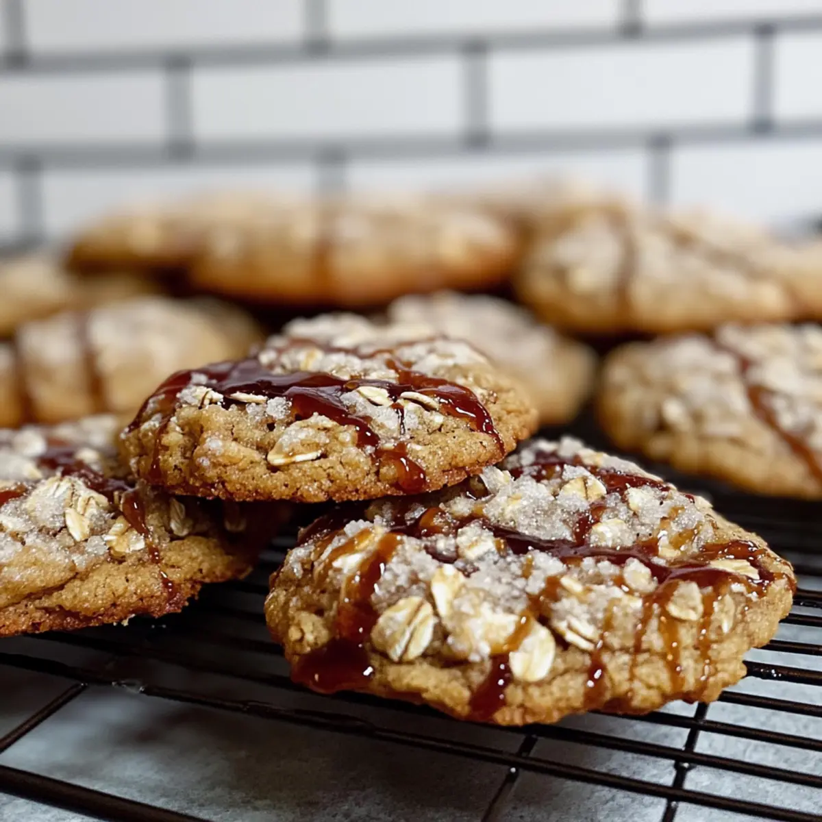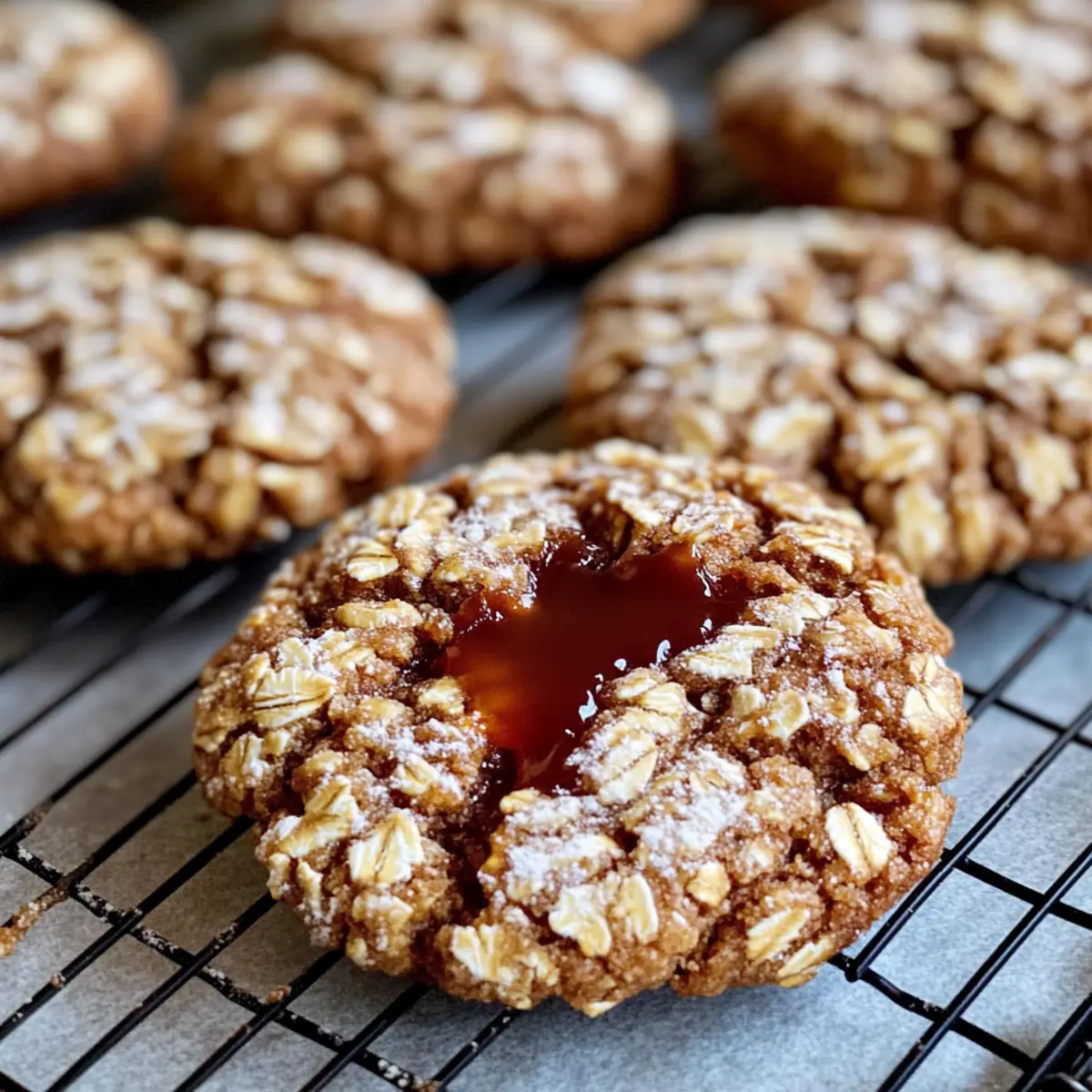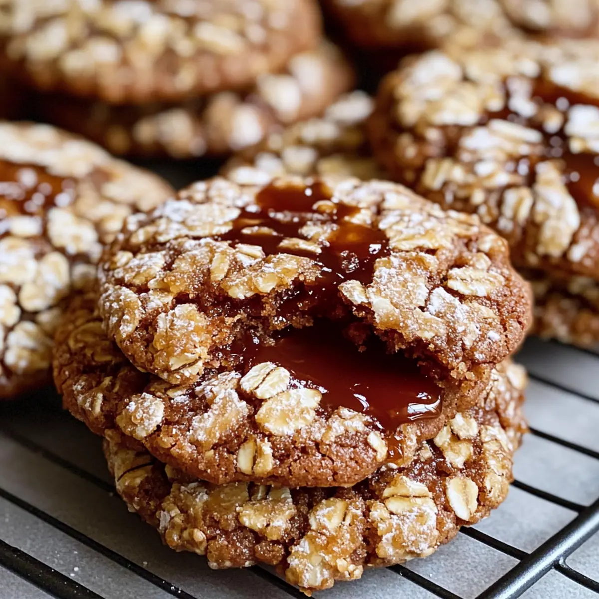 Es gab diesen einen Nachmittag, als der Duft von frisch gebackenem Karamell durch die Küche zog und mir sofort das Wasser im Mund zusammenlaufen ließ. Saftige Karamell-Haferflocken-Cookies sind eine echte Gaumenfreude, die mit ihrem flüssigen Karamellkern alle Erwartungen übertreffen. Diese Leckerei vereint zarte Haferflocken und süßes Karamell zu einem unvergleichlichen Erlebnis, perfekt für gemütliche Nachmittage oder das nächste Familientreffen. Was ich an diesem Rezept besonders schätze, ist die einfache Zubereitung – ideal für alle, die wenig Zeit haben, aber nicht auf Genuss verzichten möchten. Außerdem lässt sich der Teig problemlos aufbewahren und frieren, sodass du jederzeit einen süßen Snack zur Hand haben kannst. Bist du bereit, deine Küche in eine Karamell-Oase zu verwandeln? Warum wirst du dieses Rezept lieben? Einfachheit pur: Die Zubereitung dieser Karamell-Haferflocken-Cookies erfordert keine besonderen Backkünste, perfekt für Küchenneulinge und Profis gleichermaßen. Unvergleichlicher Geschmack: Die Kombination aus zarten Haferflocken und flüssigem Karamell entführt dich in eine Welt des Genusses. Vielseitigkeit: Ob bei Festen oder als süße Überraschung in der Kaffeepause, diese Cookies sind immer ein Hit! Zeitersparnis: Du kannst den Teig leicht aufbewahren oder einfrieren – so hast du immer einen köstlichen Snack parat. Gemeinsames Backerlebnis: Schaffe unvergessliche Momente mit Familie und Freunden, während ihr diese Leckerei zusammen zubereitet. Du möchtest mehr über kreative Snackideen erfahren? Schau dir auch Huettenkaese Chips Hochprotein an! Saftige Karamell-Haferflocken-Cookie Zutaten Für den Teig Zimmerwarme Butter (120 g) – Baut die Basis für die Cookies auf und sorgt für eine zarte Struktur. Tipp: Butter mindestens eine Stunde vor dem Backen aus dem Kühlschrank nehmen. Brauner Zucker (100 g) – Fügt Süße und Feuchtigkeit hinzu. Substitution: Weißzucker könnte verwendet werden, jedoch ändert sich der Geschmack. Weißer Zucker (50 g) – Stellt die Süße in den Vordergrund und trägt zur Karamellisierung beim Backen bei. Ei (1 großes Stück) – Bindet die Zutaten und sorgt für eine geschmeidige Textur. Vanilleextrakt (1 Teelöffel) – Fügt ein warmes Aroma hinzu, verstärkt den Geschmack. Weizenmehl (150 g, Typ 405 oder 550) – Gibt Struktur ohne zu fest zu sein. Tipp: Typ 405 ist empfehlenswerter für weiche Cookies. Natron (1/2 Teelöffel) – Agiert als Treibmittel und sorgt für Lockerheit. Salz (1/4 Teelöffel) – Balanciert die Süße und intensiviert die Aromen. Zarte Haferflocken (150 g) – Verleihen der Cookie-Masse eine chewy Textur und ein nussiges Aroma. Für den flüssigen Kern Karamellbonbons (15-20 Stück oder 150 g Karamellcreme) – Der Hauptzutat für den flüssigen Kern. Tipp: Karamellstücke vor Verwendung kühlen. Für die Dekoration Zartbitterschokolade (50 g) – Zum Schmelzen und Drizzeln über die abgekühlten Cookies; fügt einen eleganten Kontrast zur Süße hinzu. Mach dich bereit für diese köstlichen saftigen Karamell-Haferflocken-Cookies, die perfekt zur Weihnachtszeit und jedem Genussmoment passen! Schritt-für-Schritt-Anleitung für Saftige Karamell-Haferflocken-Cookies mit flüssigem Kern Step 1: Karamell vorbereiten Halbiere die Karamellbonbons oder forme Karamellcreme zu kleinen Kugeln. Lege diese auf einen Teller und stelle sie für mindestens 15 Minuten in den Kühlschrank, damit sie fest werden. Dies stellt sicher, dass der flüssige Kern beim Backen nicht ausläuft, sondern einen köstlichen Überraschungseffekt bietet. Step 2: Backofen vorheizen Heize den Backofen auf 180°C Ober-/Unterhitze vor. Dies ist die ideale Temperatur für die perfekten Saftigen Karamell-Haferflocken-Cookies, die außen leicht knusprig und innen zart bleiben. Bereite währenddessen ein Backblech vor, indem du es mit Backpapier auslegst. Step 3: Butter und Zucker cremig schlagen In einer großen Schüssel die zimmerwarme Butter, den braunen Zucker und den weißen Zucker mit einem Handmixer oder einer Küchenmaschine für 3–4 Minuten cremig schlagen. Die Mischung sollte leicht und fluffig sein, was die Basis für die saftige Textur der Cookies bildet. Achte darauf, die Schüssel zwischendurch abzukratzen, um alles gut zu vermengen. Step 4: Ei und Vanille hinzufügen Füge das große Ei und den Vanilleextrakt zur Zucker-Butter-Mischung hinzu. Rühre alles gut um, bis die Zutaten vollkommen verbunden sind und eine glatte Masse entstehen. Diese Schritt sorgt für die wichtige Feuchtigkeit und den herrlichen Geschmack der Saftigen Karamell-Haferflocken-Cookies. Step 5: Trockene Zutaten vermischen In einer separaten Schüssel das Weizenmehl, Natron und Salz miteinander vermischen. Diese trockenen Zutaten sollten gut vermengt werden, um ein gleichmäßiges Backergebnis zu gewährleisten. Danach füge diese Mischung nach und nach zur nassen Masse hinzu und rühre nur so lange, bis alles gut kombiniert ist. Step 6: Haferflocken unterheben Sobald die trockenen Zutaten gut mit der feuchten Mischung verbunden sind, hebe die zarten Haferflocken vorsichtig unter. Achte darauf, dass die Haferflocken gleichmäßig verteilt sind, um die chewy Textur der Cookies zu erhalten. Jetzt ist der Teig für die Saftigen Karamell-Haferflocken-Cookies bereit für das nächste Abenteuer. Step 7: Karamell einwickeln Nimm jeweils einen Esslöffel Teig und drücke ihn flach. Platziere ein Karamellstück in die Mitte und forme dann mit einem weiteren Esslöffel Teig eine Kugel, um das Karamell vollständig zu umhüllen. Achte darauf, dass die Teighälften gut überlappen, um ein Austreten des flüssigen Kerns während des Backens zu vermeiden. Step 8: Cookies auf das Blech legen Platziere die geformten Cookies mit ausreichend Abstand auf das vorbereitete Backblech. Dies ermöglicht, dass die Cookies beim Backen genügend Platz zum Ausdehnen haben. Du solltest etwa 12-15 Cookies pro Blech unterbringen, je nachdem, wie gro