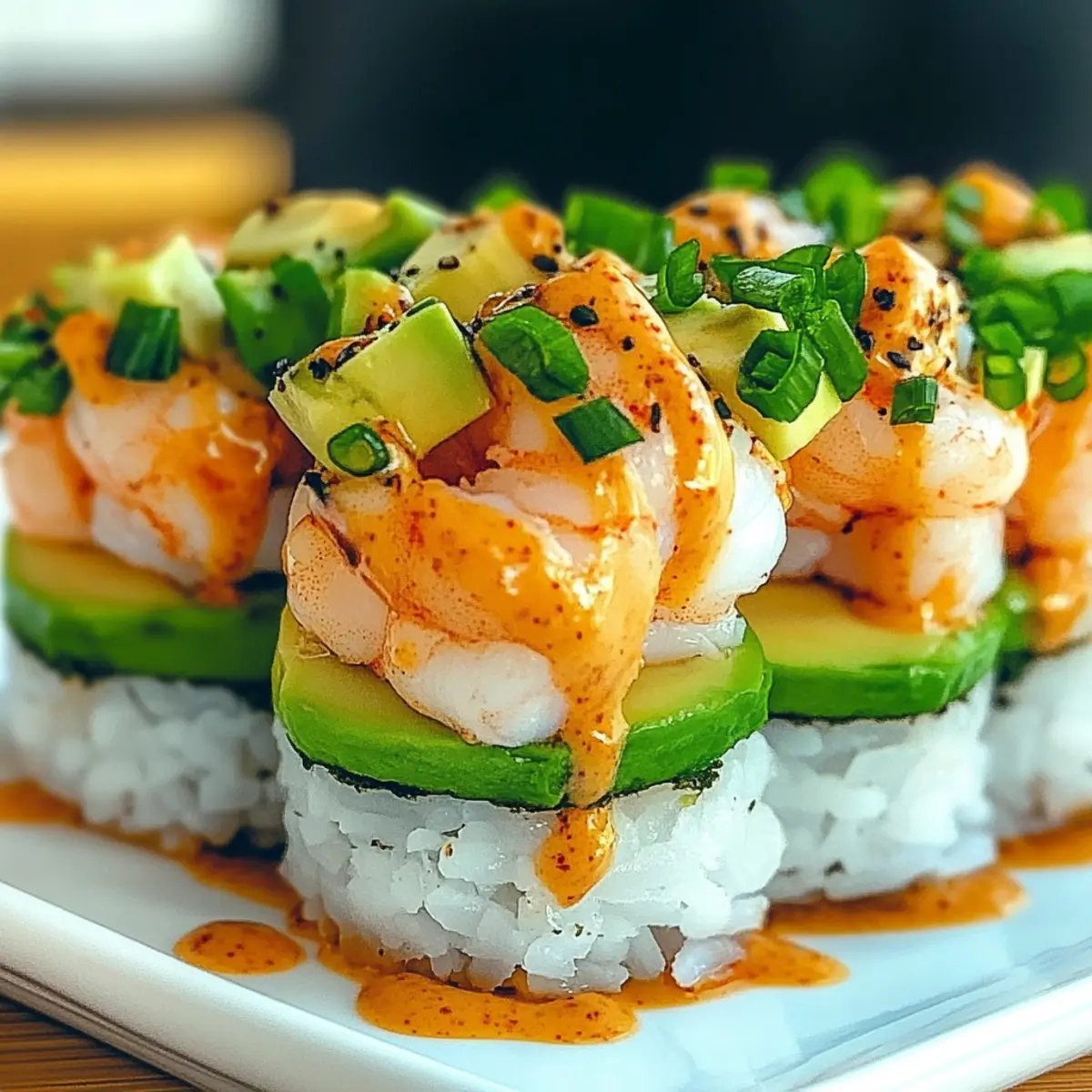 Der Duft von frischen Zutaten und die Vorfreude auf ein außergewöhnliches Essen liegen in der Luft, während ich mich an das Zubereiten dieser Scharfen Garnelen Sushi Stacks mache. Diese köstlichen Stapel vereinen zarte Garnelen mit cremiger Avocado und knackiger Gurke, alles schichtweise auf perfekt gewürztem Sushi-Reis. Das Besondere daran? Sie sind nicht nur schnell und einfach zuzubereiten, sondern beeindrucken auch jeden Gast — perfekt für ein gemütliches Abendessen oder einen besonderen Anlass. Es ist wie ein Restaurantbesuch in den eigenen vier Wänden! Seid ihr bereit, eure Geschmacksnerven auf eine wilde Reise zu schicken und gleichzeitig Spaß in der Küche zu haben? Warum sind diese Sushi Stacks einzigartig? Frische Zutaten: Die Kombination aus zarten Garnelen, cremiger Avocado und knackiger Gurke bringt den ultimativen Sushi-Geschmack direkt in eure Küche. Einfachheit: Die Zubereitung ist kinderleicht — ideal für Kochanfänger, die dennoch beeindrucken möchten. Vielseitigkeit: Ihr könnt die Garnelen problemlos durch Krabben oder Tofu ersetzen, um verschiedene Geschmäcker zu bedienen. Visuelle Herrlichkeit: Diese farbenfrohen Stacks sehen nicht nur toll aus, sondern sind auch ein echter Hingucker auf jedem Tisch. Perfekte Abendessen: Ideal für besondere Anlässe oder gemütliche Abende zu Hause — mit einem Schuss Sojasauce und eingelegtem Ingwer wird jeder Biss zum Genuss. Wenn ihr mehr interessante Rezepte sucht, schaut euch auch meine Butternut Kurbis Rezept oder Nudelauflauf Mit Hackfleisch an! Scharfe Garnelen Sushi Stacks Zutaten • Für ein köstliches Erlebnis mit Scharfen Garnelen Sushi Stacks, findet hier die Zutatenliste, die Ihren Gaumen erfreuen wird: Für die Garnelen Garnelen – Frisch oder gefroren, deveinierte Garnelen sind die Hauptproteinquelle; sicherstellen, dass gefrorene Garnelen vollständig aufgetaut sind. Spicy Mayo – Eine Mischung aus Mayonnaise und Sriracha sorgt für eine pikante Note; Sriracha nach Belieben anpassen, um den Schärfegrad zu steuern. Für den Reis Sushi Reis – Kurzkörniger Reis nimmt Aromen wunderbar auf, was für einen perfekten Stapel unerlässlich ist; gründlich abspülen für beste Ergebnisse. Reisessig – Verleiht dem Reis einen charakteristischen Sushi-Geschmack; gewürzter Reisessig kann die Süße verstärken. Für das Gemüse Avocado – Reife Avocados geben eine cremige Note; Wählen Sie Avocados, die leicht nachgeben, wenn man sie drückt. Gurke – Dünn geschnittene Gurkenscheiben sorgen für einen knackigen Biss; frische, knackige Gurken auswählen für maximalen Geschmack. Grüne Zwiebeln – Gehackte grüne Zwiebeln bringen Frische und Farbe; nur die grünen Spitzen für die Garnitur verwenden. Zum Garnieren Geröstete Sesamsamen – Verbessern den Geschmack und das visuelle Erscheinungsbild; großzügig über jeden Stapel streuen. Die Scharfen Garnelen Sushi Stacks sind nicht nur ein Fest für die Sinne, sondern auch anpassungsfähig für verschiedene Geschmäcker! Schritt-für-Schritt-Anleitung für Scharfe Garnelen Sushi Stacks Step 1: Sushi-Reis kochen Kocht den Sushi-Reis gemäß den Anweisungen auf der Verpackung. Spült den Reis gründlich ab, um überschüssige Stärke zu entfernen, dann bringt ihn zum Kochen und lasst ihn etwa 20 Minuten bei niedriger Hitze köcheln. Nach dem Garen, mischt den Reisessig unter den warmen Reis und lasst ihn auf Raumtemperatur abkühlen. Step 2: Garnelen zubereiten Erhitzt eine mittlere Pfanne bei mittlerer Hitze und gebt die Garnelen hinein. Bratet die Garnelen für 3-4 Minuten pro Seite, bis sie rosa und durchgegart sind. Nehmt sie von der Hitze und vermischt sie vorsichtig mit der spicy Mayo, um den Garnelen einen herzhaften, würzigen Geschmack zu verleihen. Step 3: Gemüse schneiden Schnappt euch ein scharfes Messer und schneidet die Gurke in dünne Scheiben und die Avocado in kleine Würfel. Achte darauf, dass die Gurke frisch und knackig ist, um einen perfekten Kontrast zu den anderen Zutaten in euren Scharfen Garnelen Sushi Stacks zu schaffen. Step 4: Stacks aufbauen Verwendet einen Ringausstecher oder eine Form, um die Scharfen Garnelen Sushi Stacks zusammenzubauen. Beginnt mit einer Schicht Sushi-Reis, gefolgt von einer Schicht der gewürzten Garnelen, gefolgt von Avocado und Gurke. Drückt jede Schicht sanft zusammen, damit die Stapel gut zusammenhalten. Step 5: Toppings hinzufügen Gegengleicht die gestapelten Zutaten, indem ihr etwas zusätzliche spicy Mayo darüber träufelt. Streut großzügig geröstete Sesamsamen und die gehackten grünen Zwiebeln als Garnitur über die oberste Schicht der Sushi Stacks, um einen schönen visuellen Effekt zu erzielen. Step 6: Sofort servieren Nehmt vorsichtig die Ringe oder die Form von den Sushi Stacks ab und platziert sie auf einem schönen Teller. Diese Scharfen Garnelen Sushi Stacks sollten sofort serviert werden, damit ihr die frischen Aromen und die perfekte Textur genießen könnt — ideal für ein beeindruckendes Dinner oder einen besonderen Anlass! Was passt zu Scharfen Garnelen Sushi Stacks? Der Duft von frischen Zutaten und die Vorfreude auf ein außergewöhnliches Essen begleiten diese köstlichen Sushi Stacks, die euren Gaumen verwöhnen werden. Sojasauce: Ein Spritzer Sojasauce verstärkt den herzhaften Geschmack der Garnelen und sorgt für eine salzige Note, die das Gericht perfekt abrundet. Eingelegter Ingwer: Dieser süß-säuerliche Genuss hilft, den Gaumen zu reinigen und harmoniert wunderbar mit den würzigen Sushi Stacks. Miso-Suppe: Eine warme Miso-Suppe bietet eine umami-reiche Beilage und sorgt für Gemütlichkeit, besonders an kühlen Abenden. Edamame: Diese knackigen Sojabohnen sind eine hervorragende Quelle für pflanzliches Eiweiß und ergänzen die Texturen der Sushi Stacks perfekt. Grüner Salat: Ein frischer Salat mit einem leichten Dressing bringt eine erfrischende Note und unterstützt die Leichtigkeit des Gerichts. Schaumwein: Ein prickelnder Schaumwein oder Sekt biete
