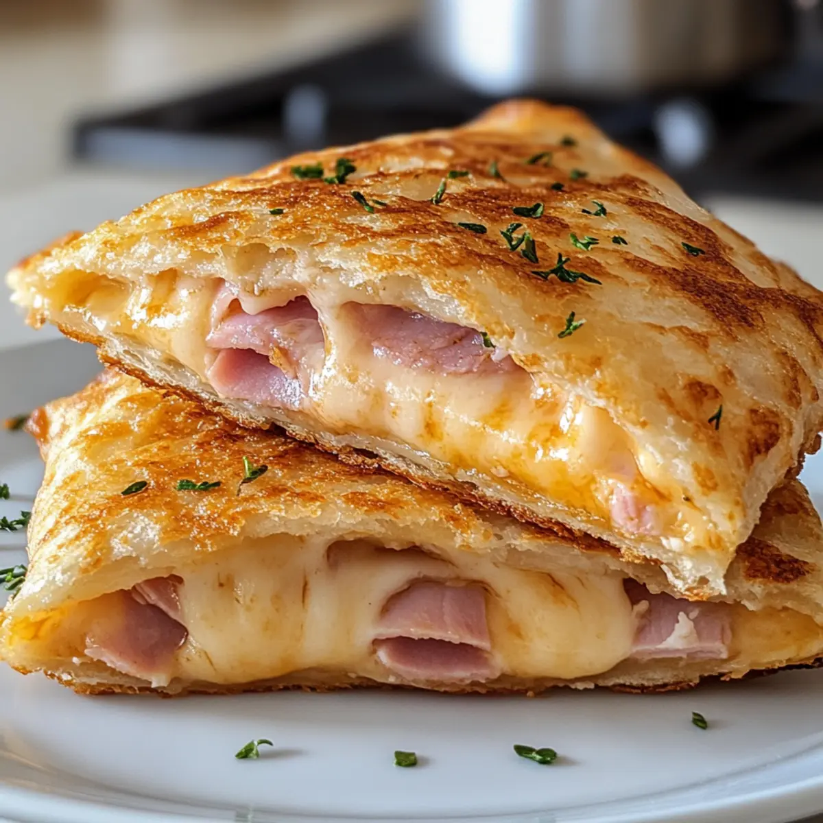 Ein verführerischer Duft von frisch gebackenem Brot durchströmt die Küche, und sofort überkommt mich die Vorfreude auf die perfekten Snacks für einen gemütlichen Abend. Die Schinken-Käse-Taschen im Airfryer sind genau das, was ich brauche: schnell zubereitet, goldbraun und knusprig außen, mit einer köstlichen, schmelzenden Füllung aus würzigem Schinken und zartem Käse. Diese kleinen Leckerbissen sind nicht nur kinderleicht zuzubereiten, sondern sie sind auch der Hit auf jedem Tisch – ideal für das Mittagessen im Büro oder als Snack für die ganze Familie. Außerdem lassen sie sich hervorragend für die Vorratshaltung vorbereiten und sind perfekt für spontane Hungerattacken. Sind Sie bereit, diesen köstlichen Snack zu entdecken und Ihre Lieben damit zu überraschen? Warum sind Schinken-Käse-Taschen so beliebt? Einfache Zubereitung: Mit dieser Rezeptur sind sie im Handumdrehen fertig, selbst für Anfänger in der Küche! Köstlicher Geschmack: Die Mischung aus würzigem Schinken und schmelzendem Käse sorgt für ein unvergleichliches Geschmackserlebnis. Vielseitig: Sie können die Füllung ganz nach Ihrem Geschmack anpassen, zum Beispiel mit gemüsefüllung oder Gewürzen für eine besondere Note. Ideal für Meal Prep: Bereiten Sie einfach mehrere Portionen vor und genießen Sie diese immer dann, wenn der Hunger zuschlägt. Familienfreundlich: Diese kleinen Snacks sind perfekt für Kinder und Erwachsene und eignen sich gut für jeden Anlass, sei es ein Feierabend oder ein Kindergeburtstag. Schinken-Käse-Taschen im Airfryer Zutaten • Diese Zutaten sind der Schlüssel zu köstlichen Schinken-Käse-Taschen im Airfryer, die Ihre Familie lieben wird! Für die Taschen Weizentortillas (4, 20 cm) – Der Hauptbestandteil, der für die einfache Handhabung und knusprige Textur sorgt. Substitution: Vollkorn- oder Protein-Tortillas sind auch möglich, aber benötigen eventuell eine längere Garzeit. Kochschinken (4 Scheiben) – Liefert den herzhaften Geschmack und wertvolles Protein. Substitution: Kann durch Truthahnschinken, Salami oder vegetarische Alternativen ersetzt werden. Geriebener Käse (120 g, Cheddar & Mozzarella) – Sorgt für die cremige und zart schmelzende Füllung. Substitution: Andere Käsemischungen können verwendet werden, um verschiedene Geschmäcker zu erkunden. Frischkäse (1 EL, optional) – Fügt zusätzliche Cremigkeit hinzu und hilft, die Zutaten zu verbinden. Substitution: Kann für eine leichtere Variante weggelassen werden. Olivenöl oder Butter (1 TL) – Gewährleistet eine knusprige Außenschicht. Substitution: Jedes Kochöl ist ausreichend, aber Olivenöl hebt den Geschmack hervor. Salz & Pfeffer – Grundlegende Gewürze, die den Geschmack der Füllung verstärken. Schritt-für-Schritt-Anleitung für Schinken-Käse-Taschen im Airfryer Step 1: Airfryer vorheizen Heizen Sie Ihren Airfryer auf 180 °C vor. Dies sorgt dafür, dass die Schinken-Käse-Taschen gleichmäßig garen und eine goldbraune, knusprige Konsistenz erreichen. Warten Sie etwa 5 Minuten, bis das Gerät die gewünschte Temperatur erreicht hat. Step 2: Tortillas vorbereiten Nehmen Sie eine Weizentortilla und bestreichen Sie diese dünn mit Frischkäse, wenn Sie diesen verwenden möchten. Legen Sie dann je eine Scheibe Kochschinken und eine großzügige Menge geriebenen Käse darauf. Achten Sie darauf, die Füllung gleichmäßig zu verteilen, um ein optimales Geschmackserlebnis zu erzielen. Step 3: Ränder versiegeln Befeuchten Sie die Ränder der Tortilla leicht mit Wasser. Falten Sie die Tortilla in der Mitte und drücken Sie die Ränder mit einer Gabel fest, um eine gute Versiegelung zu gewährleisten. Dies verhindert, dass die Füllung beim Garen herausläuft und sorgt dafür, dass die Schinken-Käse-Taschen im Airfryer schön zusammenhalten. Step 4: Mit Öl bestreichen Bestreichen Sie die Außenseite der gefüllten Tortilla leicht mit Olivenöl oder geschmolzener Butter. Diese Schicht sorgt dafür, dass die Schinken-Käse-Taschen im Airfryer schön knusprig und goldbraun werden. Achten Sie darauf, nicht zu viel Fett zu verwenden, um ein übermäßiges Frittieren zu vermeiden. Step 5: Garen im Airfryer Legen Sie die vorbereiteten Schinken-Käse-Taschen vorsichtig in den Airfryer-Korb. Stellen Sie sicher, dass sie nicht überlappen und genügend Platz für die Luftzirkulation bleibt. Garen Sie die Taschen für 5-7 Minuten bei 180 °C, bis sie goldbraun sind. Wenden Sie sie nach der Hälfte der Garzeit, um eine gleichmäßige Bräunung zu gewährleisten. Step 6: Temperatur erhöhen für Extra-Knusprigkeit Nach den ersten 5-7 Minuten können Sie die Temperatur auf 190 °C erhöhen und die Schinken-Käse-Taschen für die letzten Minuten weitergaren. Dies verstärkt die Knusprigkeit und sorgt für eine verlockende Textur. Behalten Sie die Taschen im Auge, um sicherzustellen, dass sie nicht verbrennen. Step 7: Abkühlen lassen Nach dem Garen nehmen Sie die Schinken-Käse-Taschen vorsichtig aus dem Airfryer und legen Sie sie auf ein Kuchengitter. Lassen Sie sie kurz abkühlen, damit die Unterseite knusprig bleibt. Das Abkühlen verhindert auch, dass die Füllung beim ersten Bissen herausquillt. Step 8: Servieren Servieren Sie die Schinken-Käse-Taschen warm mit einem Dip Ihrer Wahl. Sie sind perfekt als Snack oder leichtes Mittagessen und sorgen für ein tolles Geschmackserlebnis. Genießen Sie die Kombination aus knuspriger Außenhülle und schmelzendem inneren Käse! Schinken-Käse-Taschen im Airfryer Variationen Entdecken Sie die vielen Möglichkeiten, wie Sie diese leckeren Taschen nach Ihrem Geschmack anpassen können, um Abwechslung auf den Tisch zu bringen! Für mehr Schärfe: Fügen Sie in Scheiben geschnittene Jalapeños oder zerdrückte rote Pfefferflocken hinzu. Diese kleinen Würzteilchen bringen einen aufregenden Kick in jede Tasche. Veggie-Variante: Ersetzen Sie den Schinken durch sautierten Spinat, Champignons oder getrocknete Tomaten. So erstellen Sie eine bunte und ge