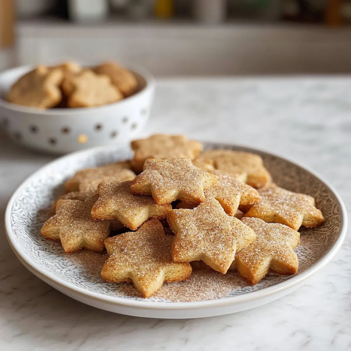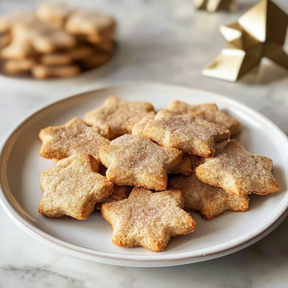 Ein heimeliger Duft von Zimt und frisch gebackenen Plätzchen erfüllt die Luft und zieht jeden in die weihnachtliche Stimmung. Diese Schmand-Zimt-Plätzchen sind nicht nur ein Fest für die Sinne, sondern auch unglaublich einfach zuzubereiten – mit nur drei Zutaten seid ihr im Handumdrehen bereit für die Feiertage! Mit ihrer zarten Konsistenz und dem süßen, würzigen Geschmack sind sie ein wahrer Publikumsliebling, der in keiner Plätzchendose fehlen darf. Überrascht eure Familie und Freunde mit diesen schnellen und köstlichen Keksen, die perfekt zur festlichen Teestunde passen. Welche Geschichten und Erinnerungen werden beim Genuss dieser Plätzchen in euren Familien entstehen? Warum werden diese Plätzchen deine Herzen erobern? Einfachheit: Die Zubereitung dieser Schmand-Zimt-Plätzchen ist unkompliziert und benötigt nur drei Zutaten, was sie perfekt für spontane Weihnachtsbackaktionen macht. Himmlischer Duft: Während sie im Ofen backen, verbreitet sich ein verführerischer Zimtduft, der jeden in Weihnachtsstimmung versetzt. Vielfältig: Diese Kekse sind nicht nur zur Weihnachtszeit ein Hit, sondern können das ganze Jahr über genossen werden. Familienfreundlich: Groß und Klein werden von der zarten Konsistenz und dem süßen Geschmack begeistert sein, ideal für gemütliche Familienabende. Lange Haltbarkeit: In einer luftdichten Dose aufbewahrt, bleiben sie bis zu einer Woche frisch und lecker. Wenn ihr mehr Variationen ausprobieren möchtet, schaut euch auch unsere Tipps an, wie ihr die Plätzchen mit verschiedenen Gewürzen verfeinern könnt! Schmand-Zimt-Plätzchen Zutaten • Für die schnelle Vorbereitung dieser köstlichen Kekse sind nur drei Hauptzutaten erforderlich. Für den Teig Schmand – sorgt für Feuchtigkeit und einen reichen Geschmack; kannst du auch durch Sauerrahm oder griechischen Joghurt ersetzen. Butter (zimmerwarm) – verleiht den Plätzchen einen köstlichen Geschmack und eine zarte Konsistenz; stelle sicher, dass sie Raumtemperatur hat, um leichter eingearbeitet werden zu können. Mehl (Weizenmehl) – ist die Basis für die Kekse; verwende am besten Allzweckmehl und passe die Menge bei hoher Luftfeuchtigkeit an. Zucker – süßt den Teig; weißer Haushaltszucker ist ideal und kann durch Kokoszucker für eine gesündere Option ersetzt werden. Für die Zimt-Zucker-Mischung Zucker (für Zimt-Zucker-Mix) – fügt Süße und Geschmack der Beschichtung hinzu; nutze eine gleiche Mischung von weißem Zucker. Zimt – hebt das Aroma der Plätzchen hervor; verwende gemahlenen Zimt und füge für zusätzlichen Wärme gerne etwas Muskatnuss hinzu. Verliere nicht die Chance, diese Schmand-Zimt-Plätzchen zuzubereiten – eine köstliche und einfache Ergänzung zu deiner Weihnachtsbackliste! Schritt-für-Schritt-Anleitung für Schmand-Zimt-Plätzchen Step 1: Butter und Zucker cremig rühren In einer großen Rührschüssel die zimmerwarme Butter mit dem Zucker etwa 3-4 Minuten lang schaumig schlagen, bis die Mischung leicht und fluffig ist. Achte darauf, dass keine Klumpen mehr vorhanden sind. Dies ist die Basis für deine Schmand-Zimt-Plätzchen und sorgt für einen reichhaltigen Geschmack. Step 2: Schmand hinzufügen Füge nun den Schmand zur Butter-Zucker-Mischung hinzu und rühre alles gut mit einem Handmixer oder einer Küchenmaschine auf niedriger Stufe, bis die Zutaten gleichmäßig miteinander verbunden sind. Dies sollte etwa 2 Minuten dauern. Die Mischung sollte cremig und glatt sein, bevor du mit dem nächsten Schritt fortfährst. Step 3: Mehl unterkneten Gib allmählich das Mehl in die Schüssel und knete alles von Hand oder mit einem Rührgerät, bis ein glatter, homogener Teig entsteht. Dies dauert ca. 3-4 Minuten. Achte darauf, dass der Teig nicht zu klebrig ist; er sollte gut zusammenhalten. Wenn nötig, kannst du etwas mehr Mehl hinzufügen. Step 4: Teig kühlen Forme den Teig zu einer Kugel, wickele ihn in Frischhaltefolie und lege ihn für mindestens 30 Minuten in den Kühlschrank. Dies hilft, die Plätzchen beim Backen in Form zu halten. Während der Teig kühlt, kannst du deinen Ofen vorheizen. Step 5: Ofen vorheizen Heize den Ofen auf 180 °C (Umluft) vor. Dieser Schritt ist wichtig, damit deine Schmand-Zimt-Plätzchen gleichmäßig backen und eine schöne goldene Farbe erhalten. Stelle sicher, dass das Backblech mit Backpapier ausgelegt ist, sodass die Plätzchen nicht ankleben. Step 6: Teig ausrollen Nimm den gekühlten Teig aus dem Kühlschrank und rolle ihn auf einer bemehlten Fläche gleichmäßig auf etwa 4-5 mm Dicke aus. Dies sorgt dafür, dass die Plätzchen gleichmäßig backen und die perfekte Konsistenz erreichen. Achte darauf, dass die Oberfläche nicht zu klebrig ist, indem du bei Bedarf etwas Mehl hinzufügst. Step 7: Plätzchen ausstechen Verwende Ausstechformen, um Sterne oder andere Formen aus dem ausgerollten Teig auszustechen, und lege die Plätzchen auf das vorbereitete Backblech. Platziere sie mit genügend Abstand zueinander, damit sie beim Backen keinen Platzmangel haben. Dies sollte zügig erfolgen, damit der Teig nicht zu warm wird. Step 8: Backen Backe die Schmand-Zimt-Plätzchen insgesamt 10-12 Minuten lang im vorgeheizten Ofen, bis sie leicht goldbraun sind. Achte darauf, dass die Ränder fest und die Mitte noch leicht weich ist. Überprüfe regelmäßig den Backprozess, um ein Überbacken zu vermeiden. Step 9: Plätzchen mit Zimt-Zucker bestreuen Nehme die Plätzchen sofort nach dem Backen aus dem Ofen und wälze sie noch warm in der Zimt-Zucker-Mischung, damit sie die süße Kruste gut aufnehmen. Lasse sie kurz abkühlen, bevor du sie auf ein Gitter platzierst, damit sie nicht durch Dampfen matschig werden. Aufbewahrung und Einfrieren der Schmand-Zimt-Plätzchen Zimmertemperatur: Lagere die Plätzchen in einer luftdichten Dose bis zu einer Woche. Diese praktische Aufbewahrungsmethode erhält den frischen Geschmack und die zarte Konsistenz der Schmand-Zimt-Plätzchen. Kühlschrank: Für längere Haltbarkeit 
