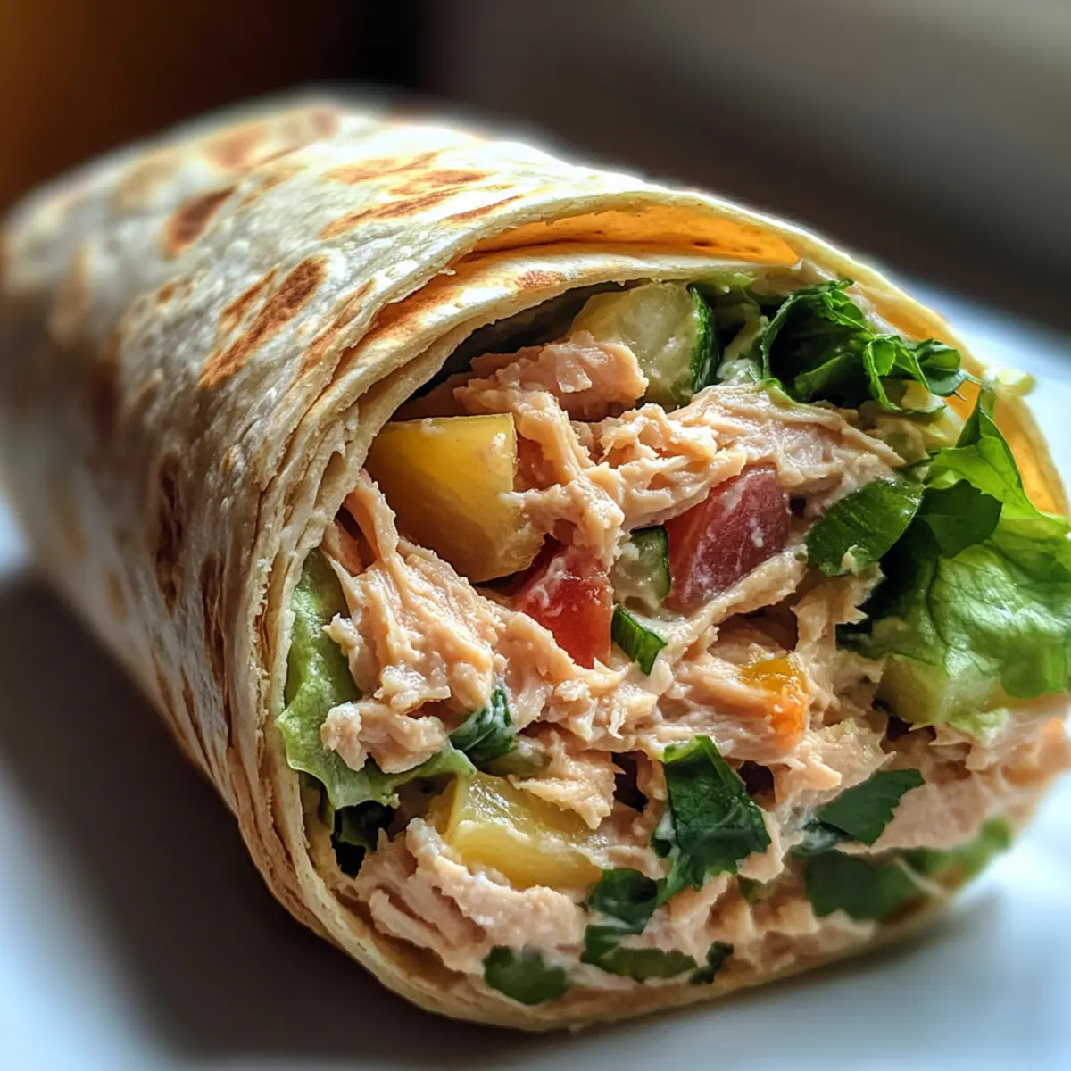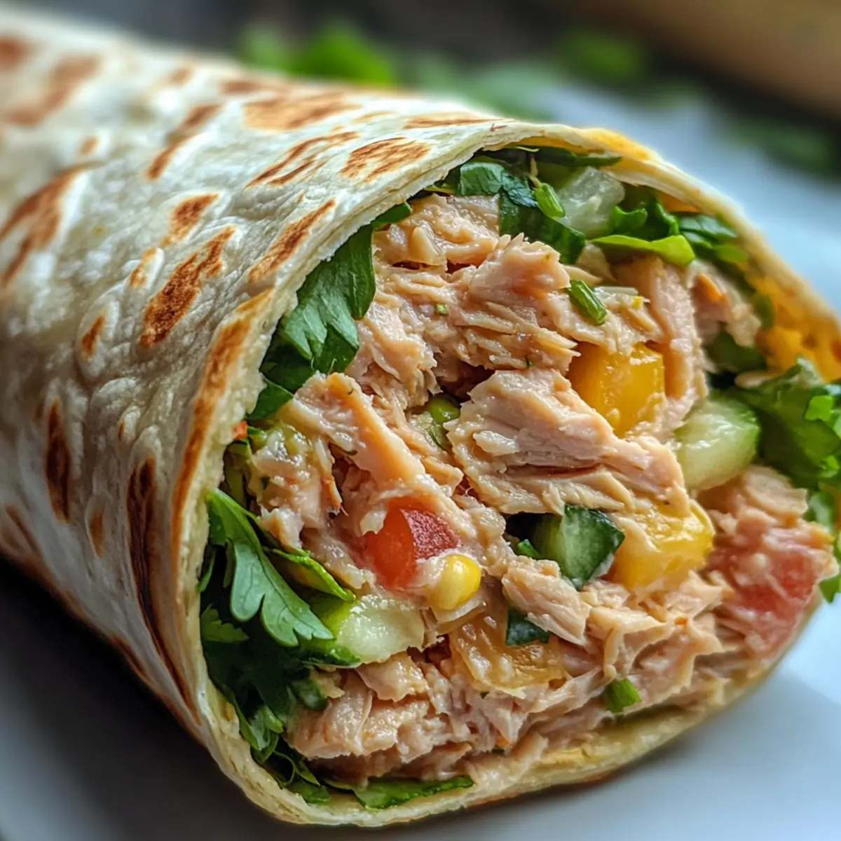 Schon mal darüber nachgedacht, wie eine einfache Zutat im Handumdrehen ein köstliches Mittagessen zaubern kann? Mein schneller Thunfisch-Wrap ist genau das, was du brauchst! Diese Mischung aus cremigen Thunfisch, knackigem Gemüse und frischen Kräutern bringt nicht nur Abwechslung in deine Lunch-Routine, sondern ist auch eine zeitsparende Alternative zu herkömmlichen Sandwiches. In wenigen Minuten hast du ein leichtes und nahrhaftes Gericht, das ideal für unterwegs ist. Stell dir vor, du beißt in dieses perfekte Zusammenspiel von Aromen und Texturen – jeder Bissen ist ein Genuss! Bereit, deine Mittagspause aufzupeppen? Warum solltest du diesen Wrap lieben? Schnelligkeit: In weniger als 15 Minuten bereitet, ist dieser Thunfisch-Wrap die perfekte Lösung für ein schnelles Mittagessen. Vielfalt: Ob als herzhaftes Snack oder leichtes Hauptgericht, du kannst ihn ganz nach deinem Geschmack anpassen. Frische: Die Kombination aus knackigem Gemüse und frischen Kräutern bringt Farbe und Aroma auf deinen Teller. Nahrhaft: Reich an Proteinen und Vitaminen, ist dieser Wrap eine gesunde Alternative zu Fast Food. Und vergiss nicht, dass du mit diesen Variationen deine ganz persönliche Note hinzufügen kannst! Schneller Thunfisch-Wrap Zutaten • Bereite dich auf schnelle und leckere Wraps vor! Für die Füllung Thunfisch – sorgt für Protein und Cremigkeit; verwende Dosen-Thunfisch in Wasser oder Öl. Gemüse – fügt einen knackigen Geschmack hinzu; experimentiere mit Paprika, Gurken oder Salat für frische Texturen. Frische Kräuter – verleihen zusätzlichen Geschmack; Dill, Petersilie oder Koriander sind besonders lecker. Kräuter-Frischkäse – dient als cremige Basis; ersetze ihn durch Hummus für eine milchfreie Variante. Für den Wrap Tortillas – die ideale Grundlage; wähle Vollkorn- oder glutenfreie Optionen, um deinen Bedürfnissen gerecht zu werden. Führe diesen Schneller Thunfisch-Wrap schnell und einfach in deine Mahlzeiten ein und genieße ein köstliches Mittagessen! Step-by-Step Instructions for Schneller Thunfisch-Wrap Step 1: Thunfisch vorbereiten Beginne damit, eine Dose Thunfisch zu öffnen und den Inhalt in eine Schüssel zu geben. Lass das Wasser oder Öl gut abtropfen, damit der Wrap nicht matschig wird. Füge dann Kräuter-Frischkäse hinzu und mische alles gründlich mit einer Gabel, bis eine cremige, gleichmäßige Masse entsteht. Dies sollte etwa 2–3 Minuten in Anspruch nehmen. Step 2: Gemüse und Kräuter hinzufügen Nimm deine frischen Gemüse und Kräuter, wie Paprika und Petersilie, und schneide sie klein. Gib das geschnittene Gemüse und die Kräuter in die Schüssel mit der Thunfischmasse. Rühre die Mischung gut um, bis alles gleichmäßig verteilt ist. Dieser Schritt dauert etwa 2 Minuten und sorgt für zusätzliche Frische im Schneller Thunfisch-Wrap. Step 3: Tortilla vorbereiten Nimm eine Tortilla und lege sie flach auf das Schneidebrett oder eine saubere Arbeitsfläche. Verteile die Thunfisch-Gemüse-Mischung gleichmäßig auf der Tortilla, sodass sie gut gefüllt ist, aber noch Platz am Rand bleibt. Verwende einen Löffel, um sicherzustellen, dass die Füllung nicht überläuft, und dieser Schritt sollte rasch erledigt sein. Step 4: Tortilla rollen Beginne am unteren Ende der Tortilla und rolle sie vorsichtig auf, während du die Füllung mit den Händen sanft nach innen drückst. Achte darauf, die Enden etwas einzufalten, während du rollst, um zu verhindern, dass die Füllung herausfällt. Dies sollte innerhalb von 1–2 Minuten geschehen, sodass dein Wrap gut gesichert ist. Step 5: Wrap schneiden und servieren Schneide den fertig gerollten Schneller Thunfisch-Wrap schräg durch die Mitte in zwei gleich große Hälften. Wenn nötig, sichere die Wrap-Hälften mit Zahnstochern, um sie in Form zu halten. Du kannst die Wraps sofort servieren oder in Aluminiumfolie einwickeln, um sie später snacken zu können. Dies gibt dir die Flexibilität für ein schnelles, leckeres Mittagessen unterwegs! Expert Tips für den besten Schneller Thunfisch-Wrap Tuna gut abtropfen: Achte darauf, den Thunfisch gründlich abtropfen zu lassen, um ein matschiges Ergebnis zu vermeiden und die perfekte Textur zu erreichen. Frische Kräuter verwenden: Setze auf frische Kräuter statt getrockneter Varianten, um den Geschmack zu intensivieren. Frische Zutaten bringen mehr Aroma in deinen Schneller Thunfisch-Wrap! Gemüse vorbereiten: Schneide das Gemüse gleichmäßig klein, damit es gut in die Füllung integriert wird und jeder Biss knackig bleibt. Unterschiedliche Formen können das Wrap-Erlebnis abwechslungsreicher gestalten. Wrap frisch halten: Wenn du den Wrap vorbereiten möchtest, verwahre die Füllungen und die Tortilla getrennt, bis du bereit bist zu essen, um die Frische zu bewahren. Variationen ausprobieren: Scheue dich nicht, den Schneller Thunfisch-Wrap mit anderen Zutaten zu variieren – so bleibt er spannend und ganz nach deinem Geschmack! Schneller Thunfisch-Wrap Variationen Mach diesen Wrap noch interessanter und ganz nach deinem Geschmack! Lass deiner Kreativität freien Lauf und entdecke neue, aufregende Möglichkeiten. Vegetarisch: Ersetze den Thunfisch durch Kichererbsen für eine proteinreiche, fleischfreie Option. Einfach die Kichererbsen zerdrücken und mit den anderen Zutaten vermengen. Avocado: Verwende zerdrückte Avocado anstelle von Kräuter-Frischkäse für eine cremige Variante. Der zarte Geschmack der Avocado bringt eine ganz neue Note in deinen Wrap. Schärfe: Füge eine Prise Chili-Pulver oder frische Jalapeños hinzu, um deinem Wrap eine würzige Note zu verleihen. Ein bisschen Schärfe sorgt für das gewisse Etwas. Zusätzlicher Käse: Streue etwas geriebenen Käse oder Frischkäse in die Füllung für eine reichhaltigere und schmelzende Textur. Der Käse schmilzt leicht und harmoniert gut mit dem Thunfisch. Würzige Senfsoße: Probiere eine Würzmischung mit Senf und Honig als Aufstrich, um einen süß-sauren Kick hinzuzufügen. Die